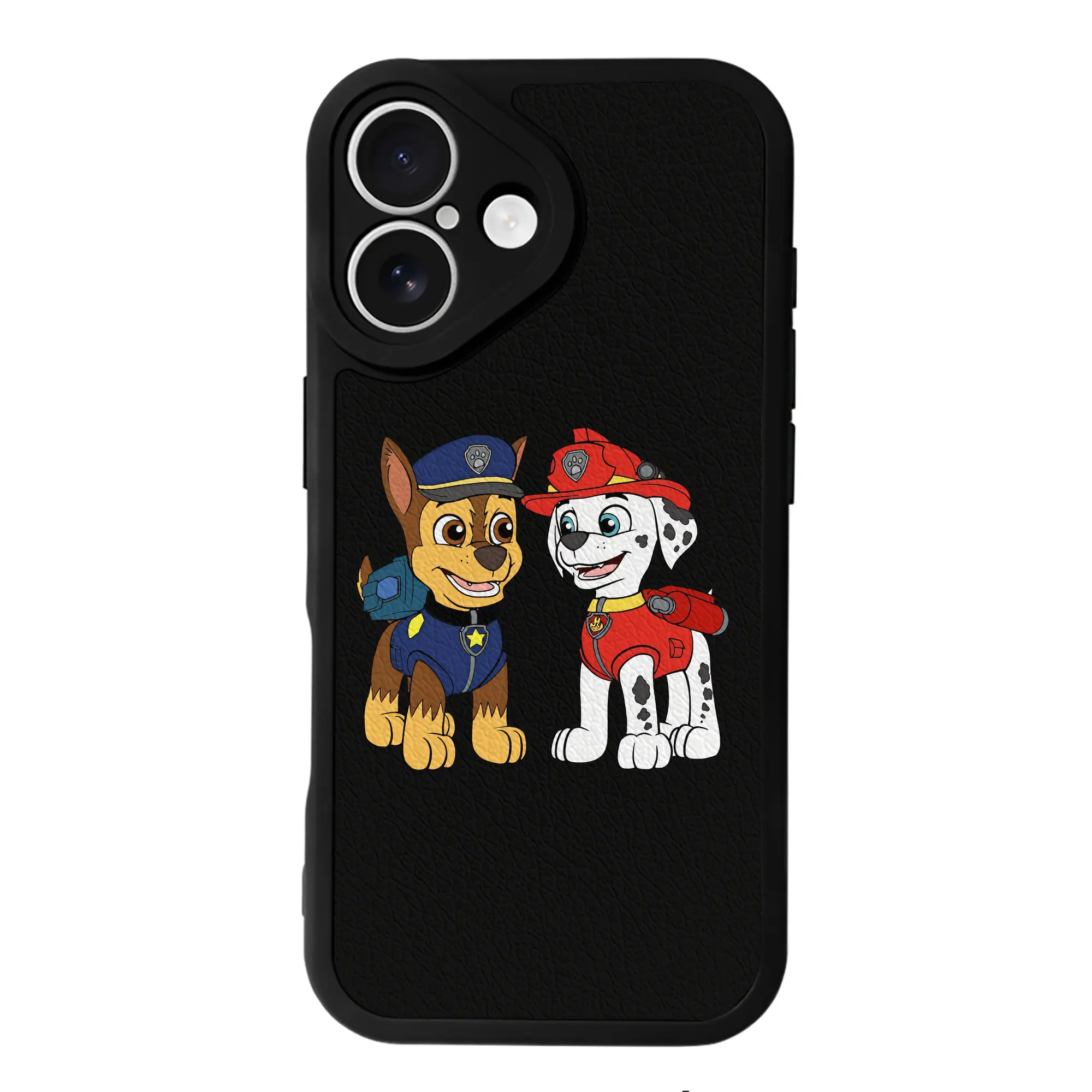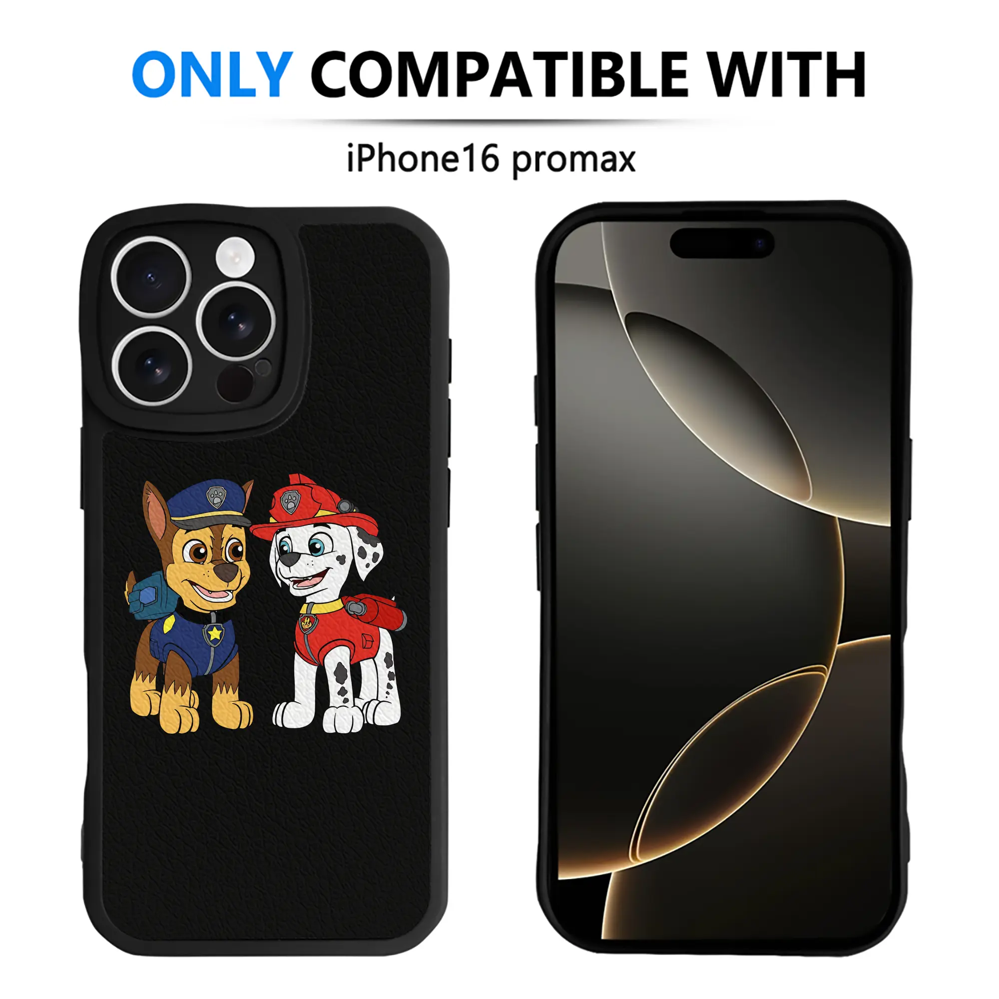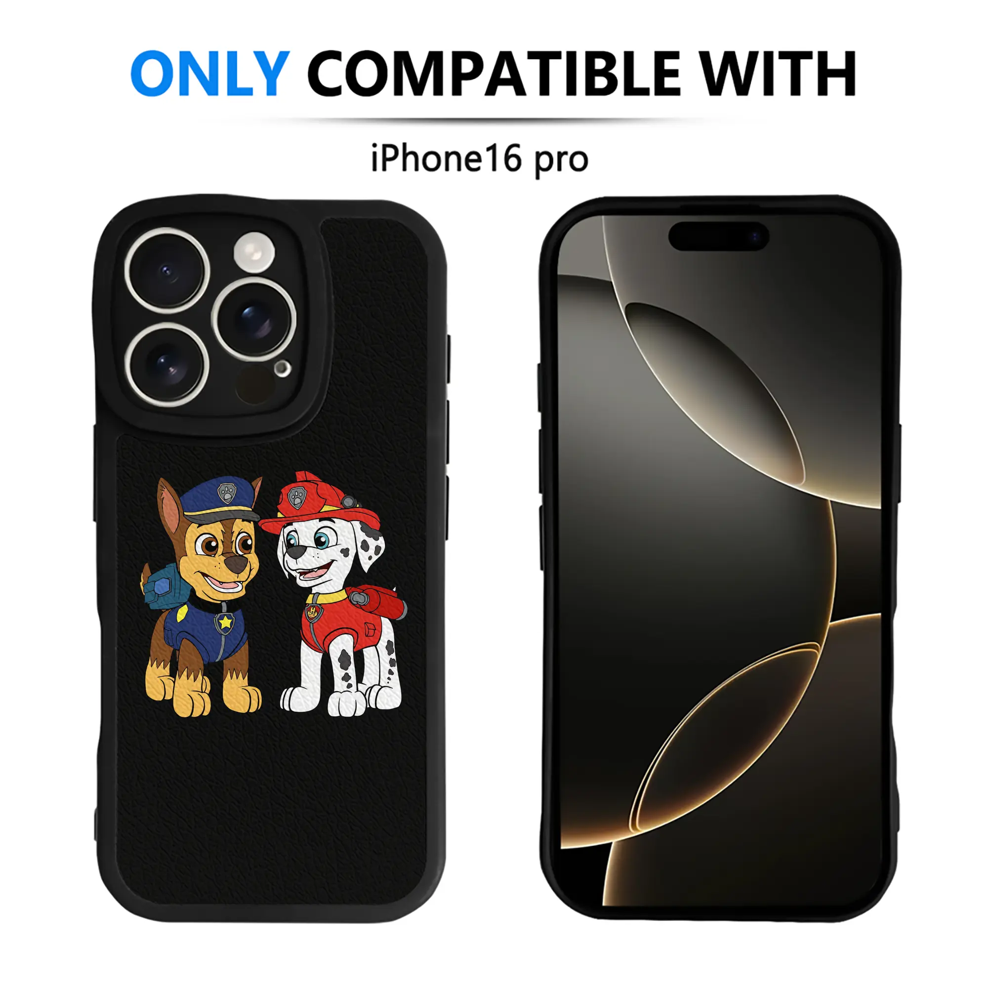 パウ・パトロール グッズ マーシャル - IPhone 16シリーズ対応 ・ シリコンスマホケース ・ レザー調 ・ 高精度フィット ・ 耐衝撃 ・ ワイヤレス充電対応 ・ 精密カット