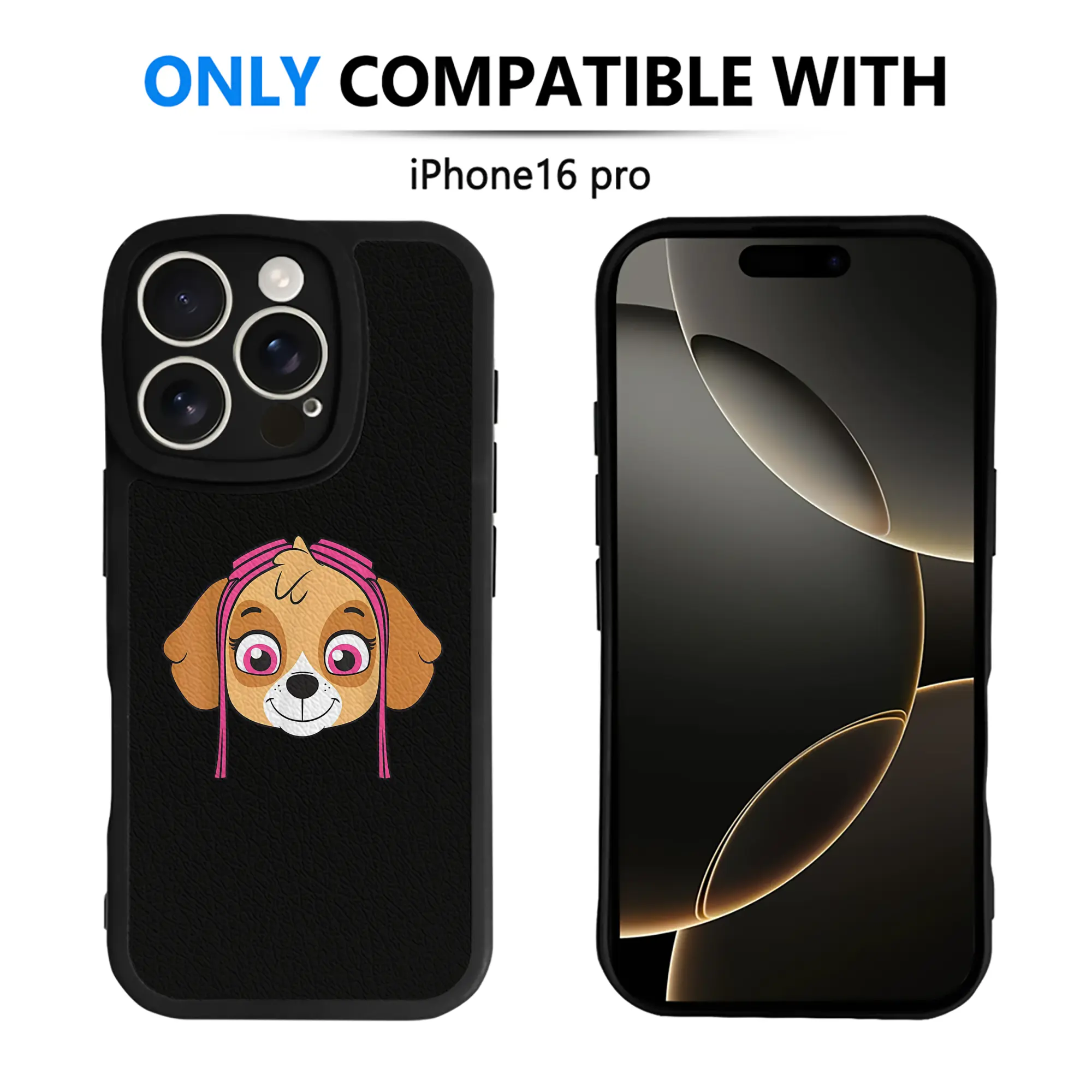 パウ・パトロール グッズ,スカイ - IPhone 16シリーズ対応 ・ シリコンスマホケース ・ レザー調 ・ 高精度フィット ・ 耐衝撃 ・ ワイヤレス充電対応 ・ 精密カット