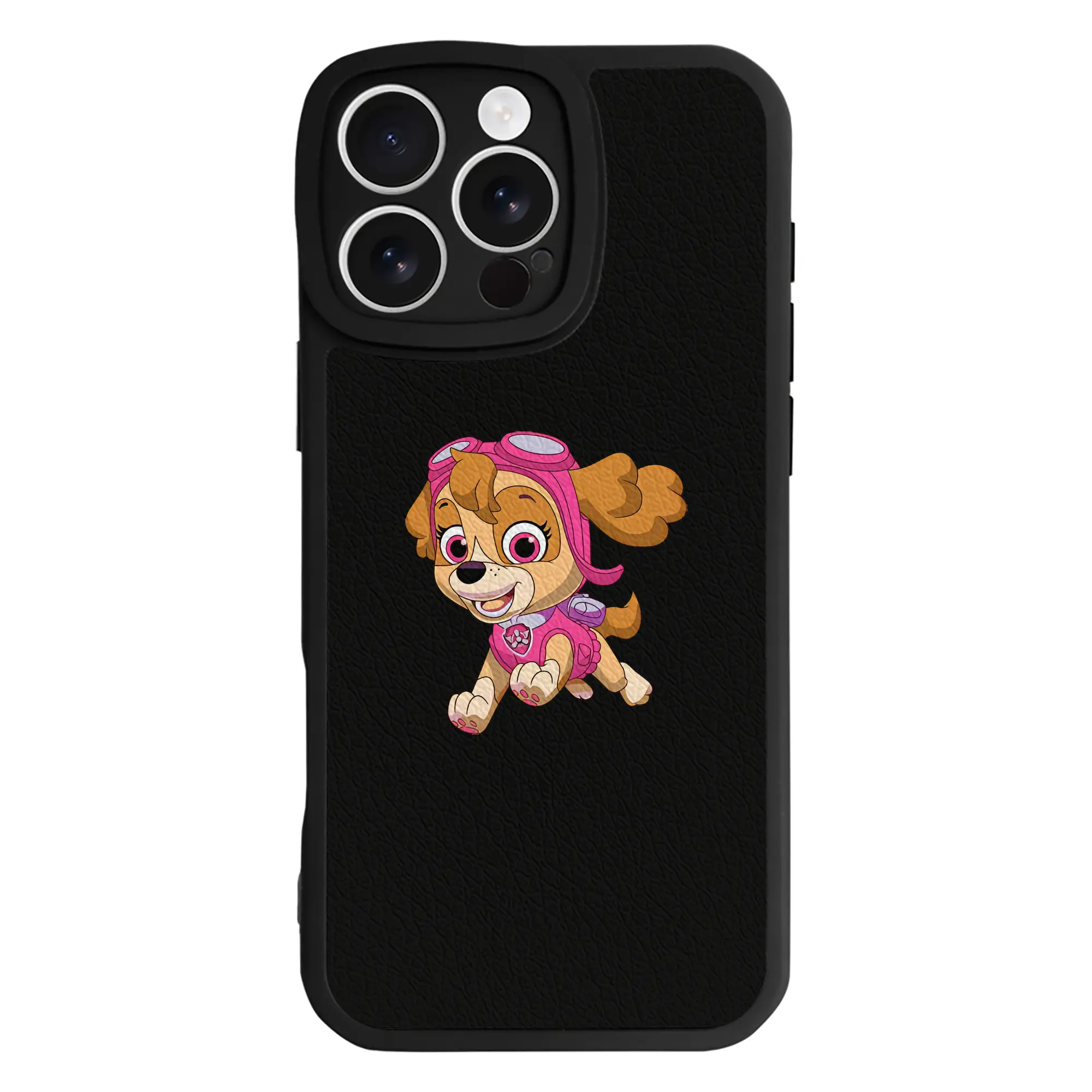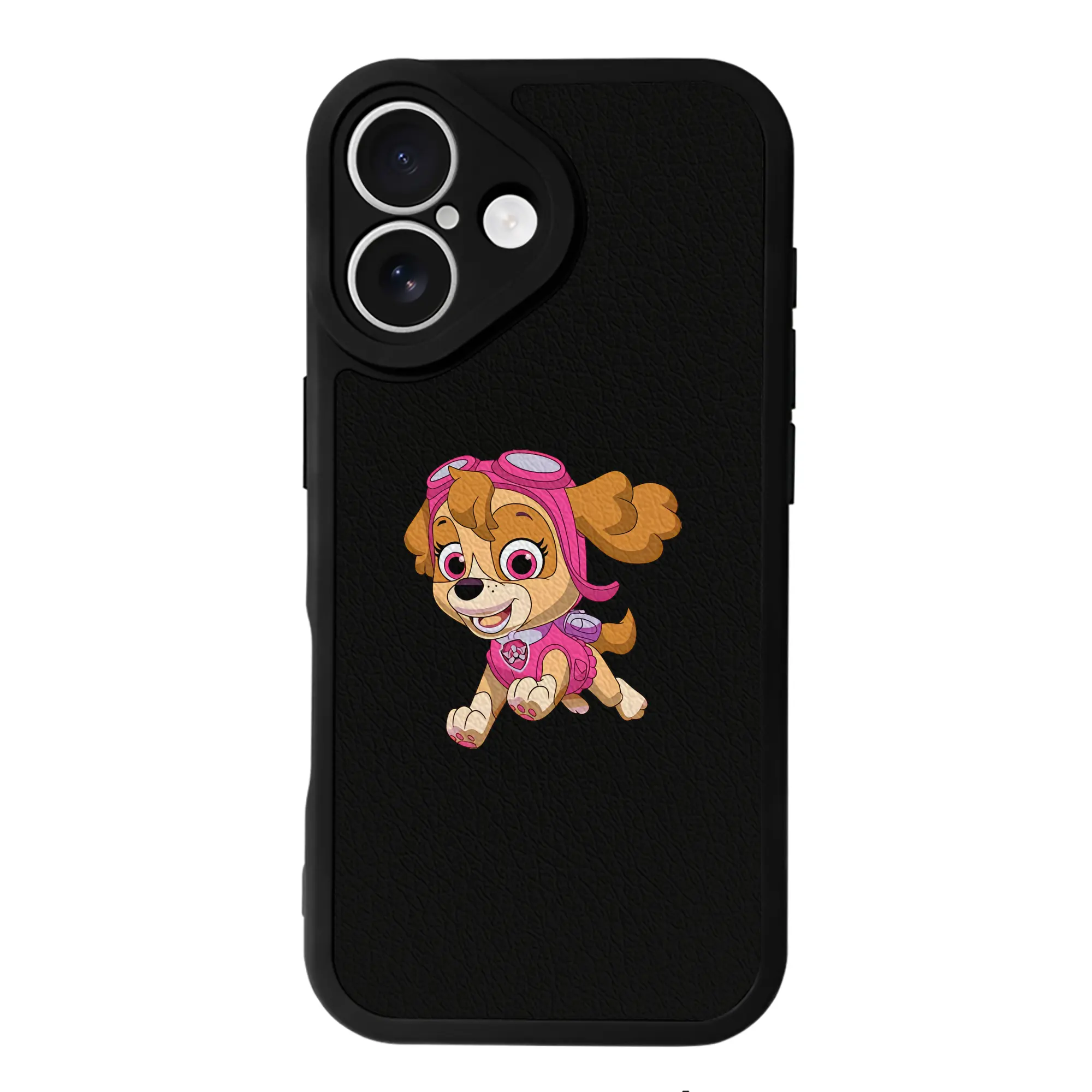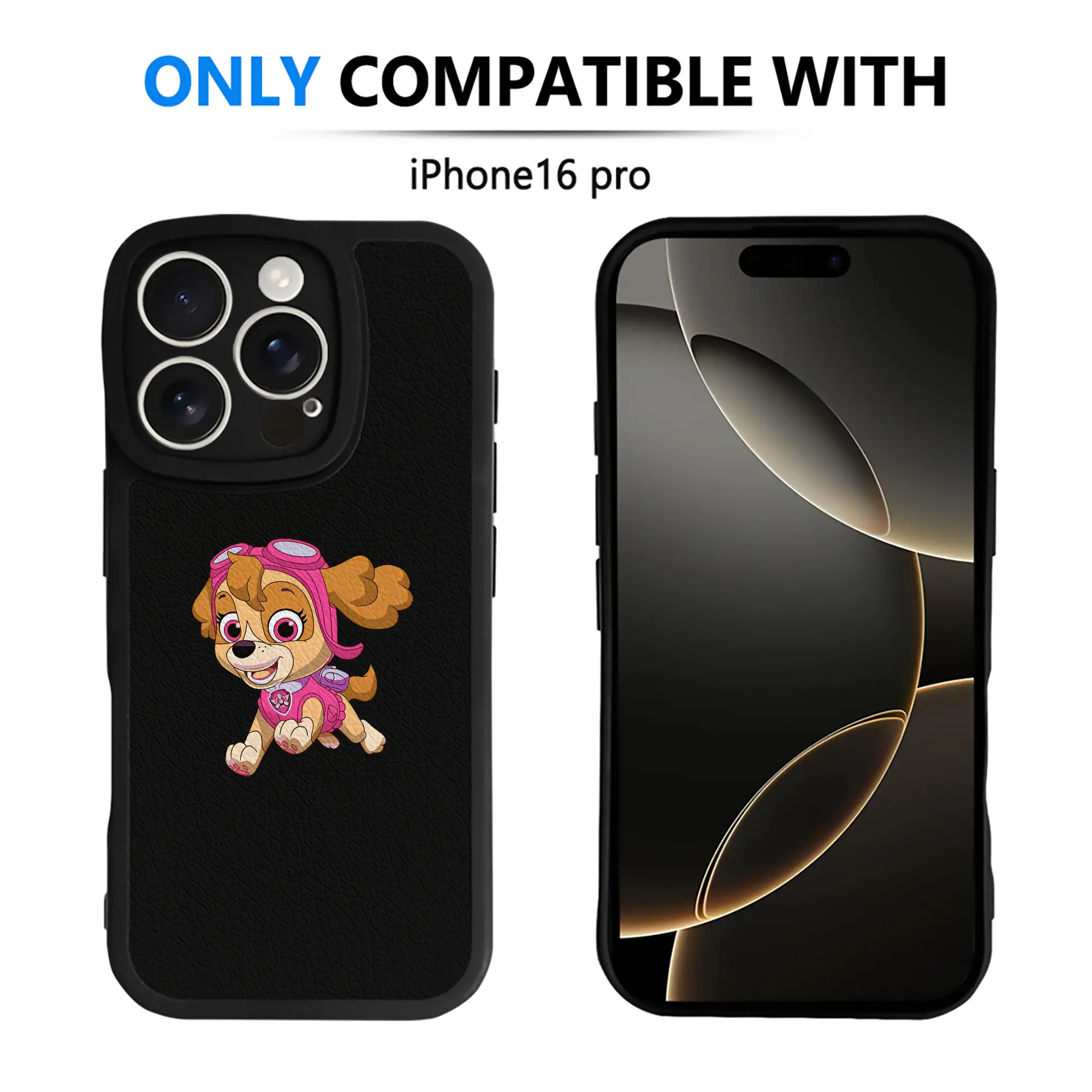 パウ・パトロール グッズ,スカイ - IPhone 16シリーズ対応 ・ シリコンスマホケース ・ レザー調 ・ 高精度フィット ・ 耐衝撃 ・ ワイヤレス充電対応 ・ 精密カット