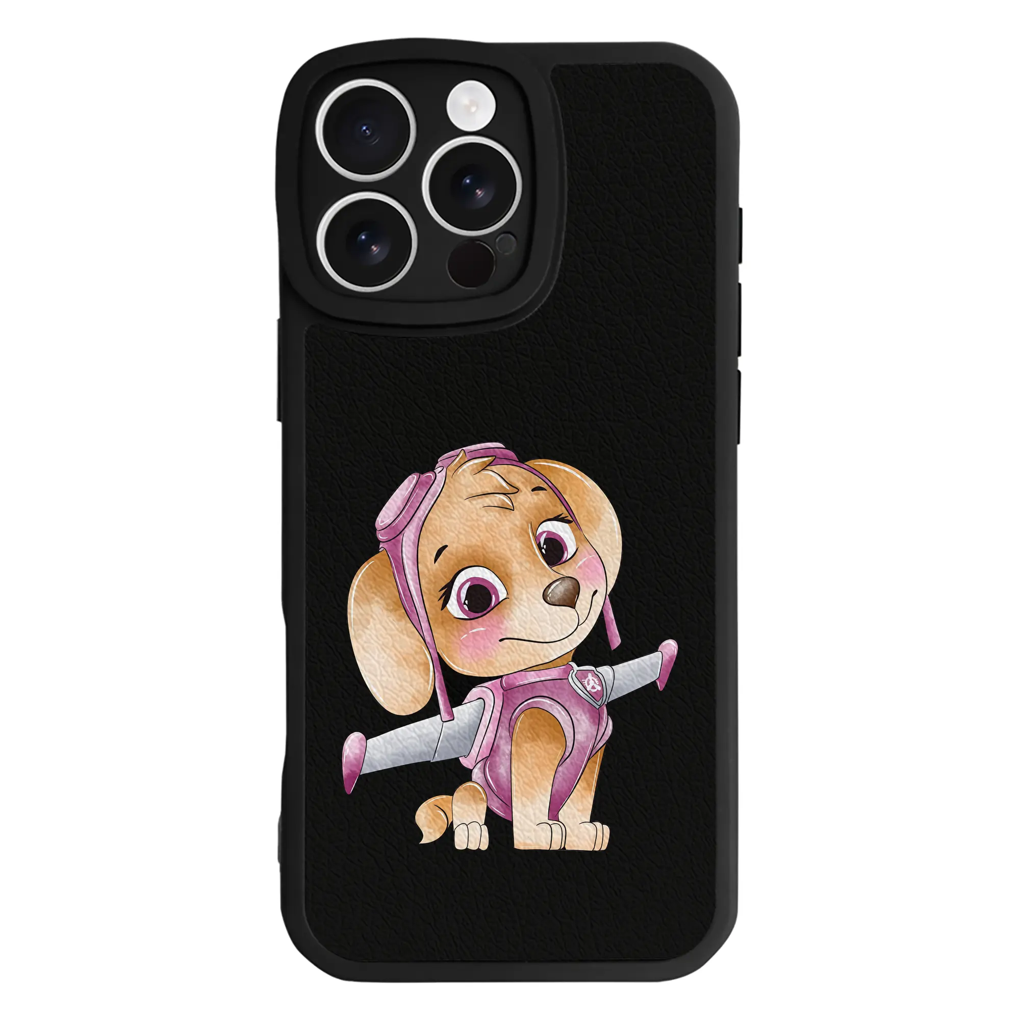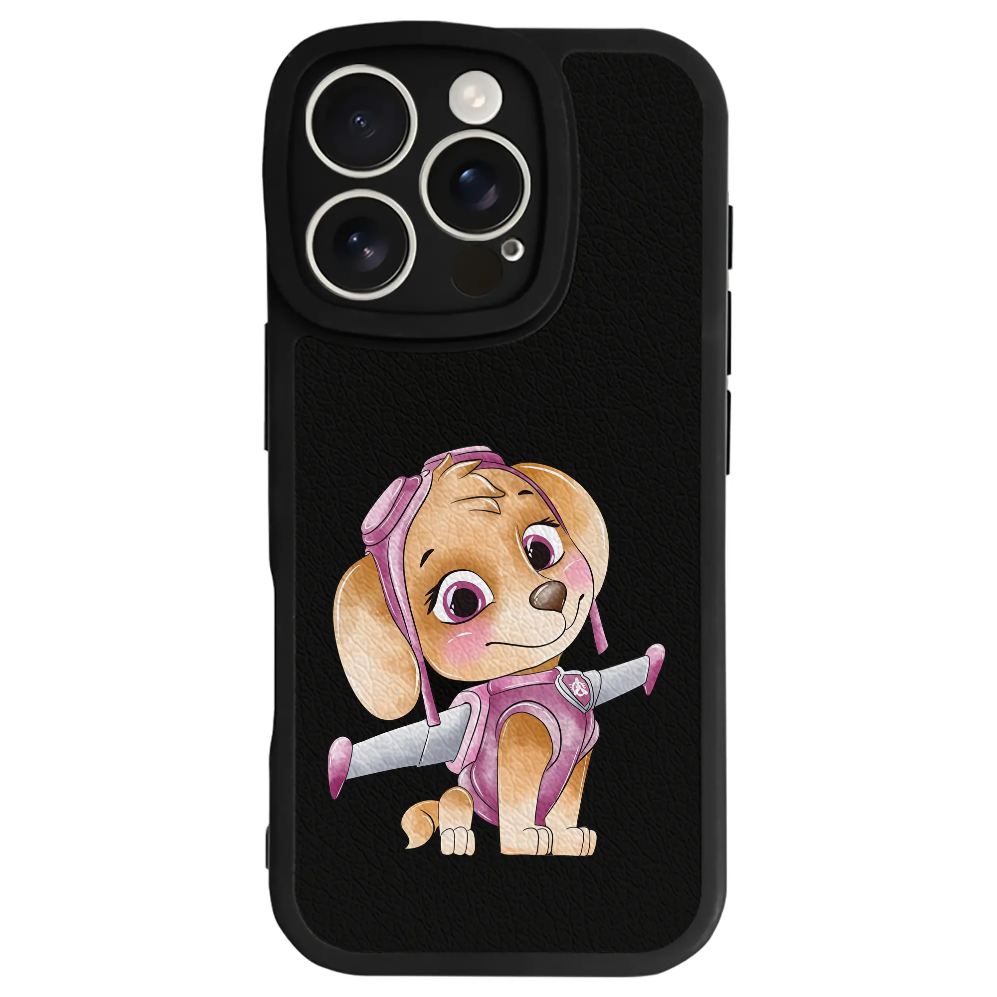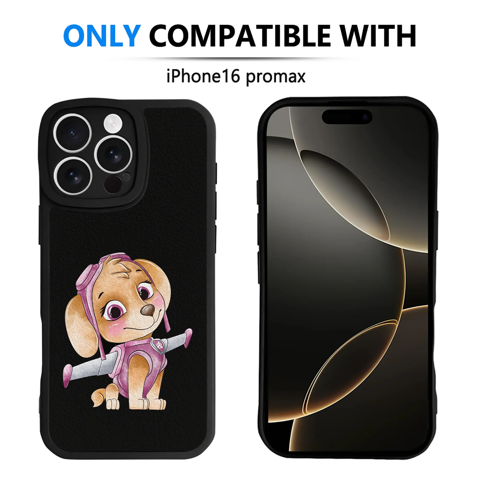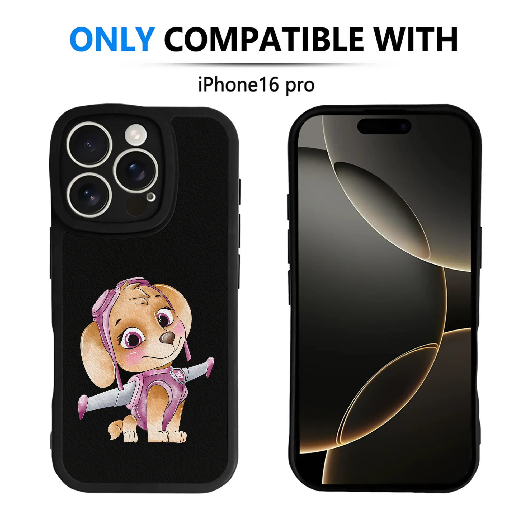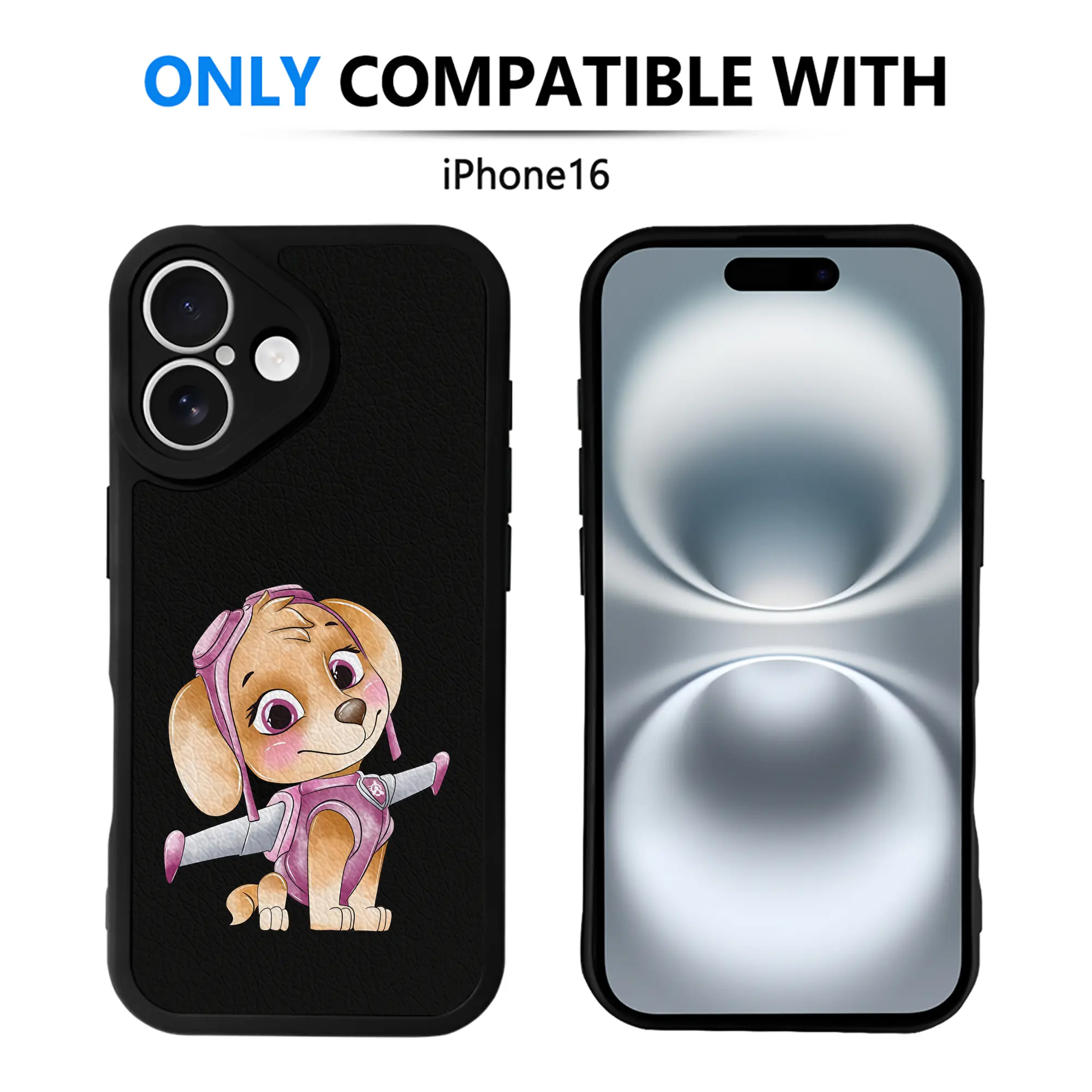 パウ・パトロール グッズ,スカイ - IPhone 16シリーズ対応 ・ シリコンスマホケース ・ レザー調 ・ 高精度フィット ・ 耐衝撃 ・ ワイヤレス充電対応 ・ 精密カット
