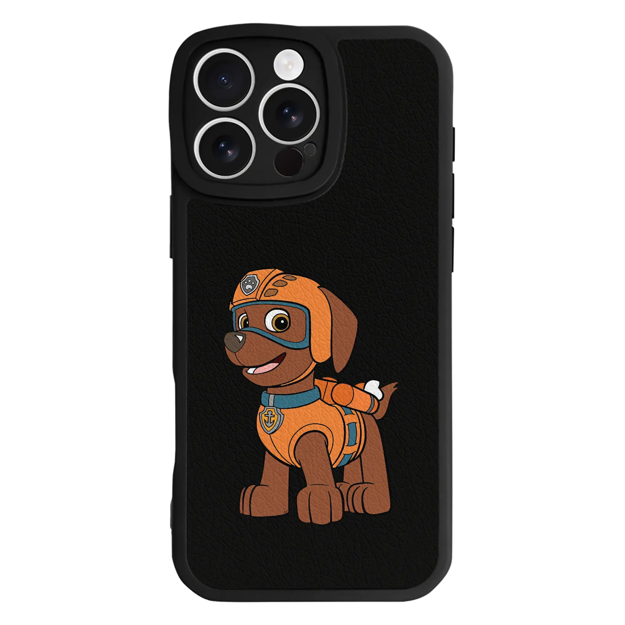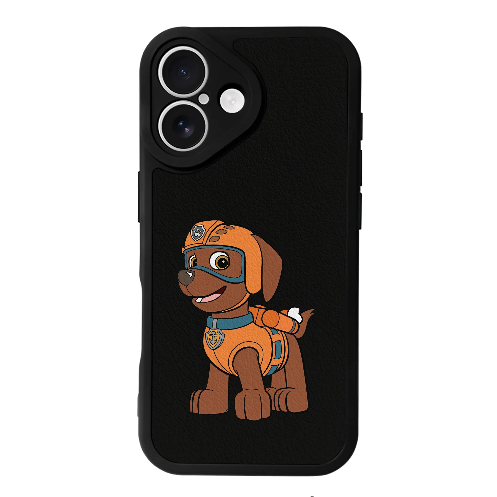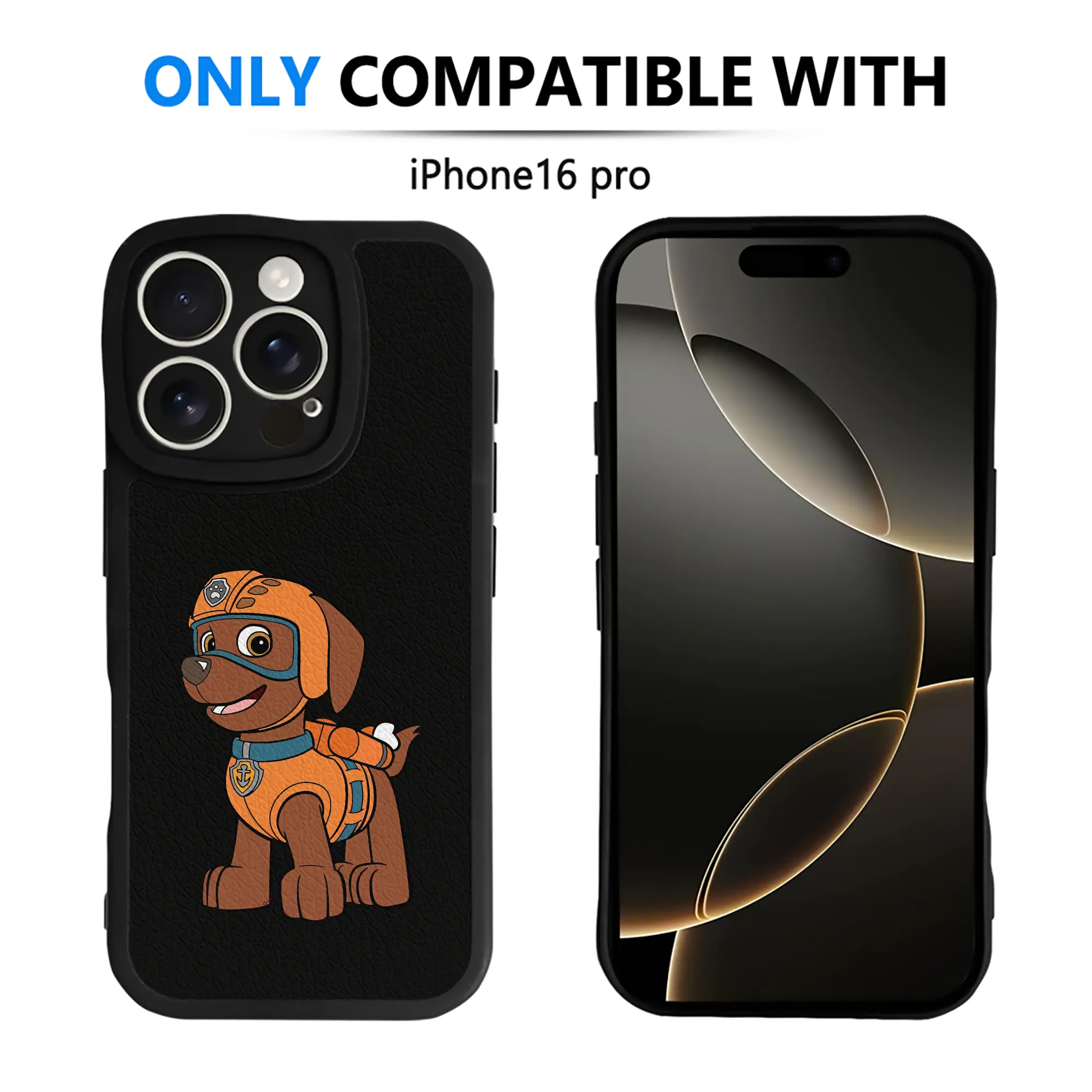 パウ・パトロール グッズ ズーマ - IPhone 16シリーズ対応 ・ シリコンスマホケース ・ レザー調 ・ 高精度フィット ・ 耐衝撃 ・ ワイヤレス充電対応 ・ 精密カット