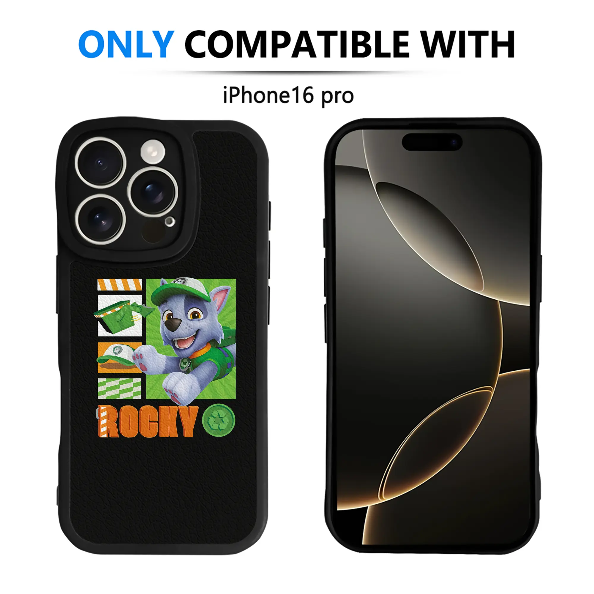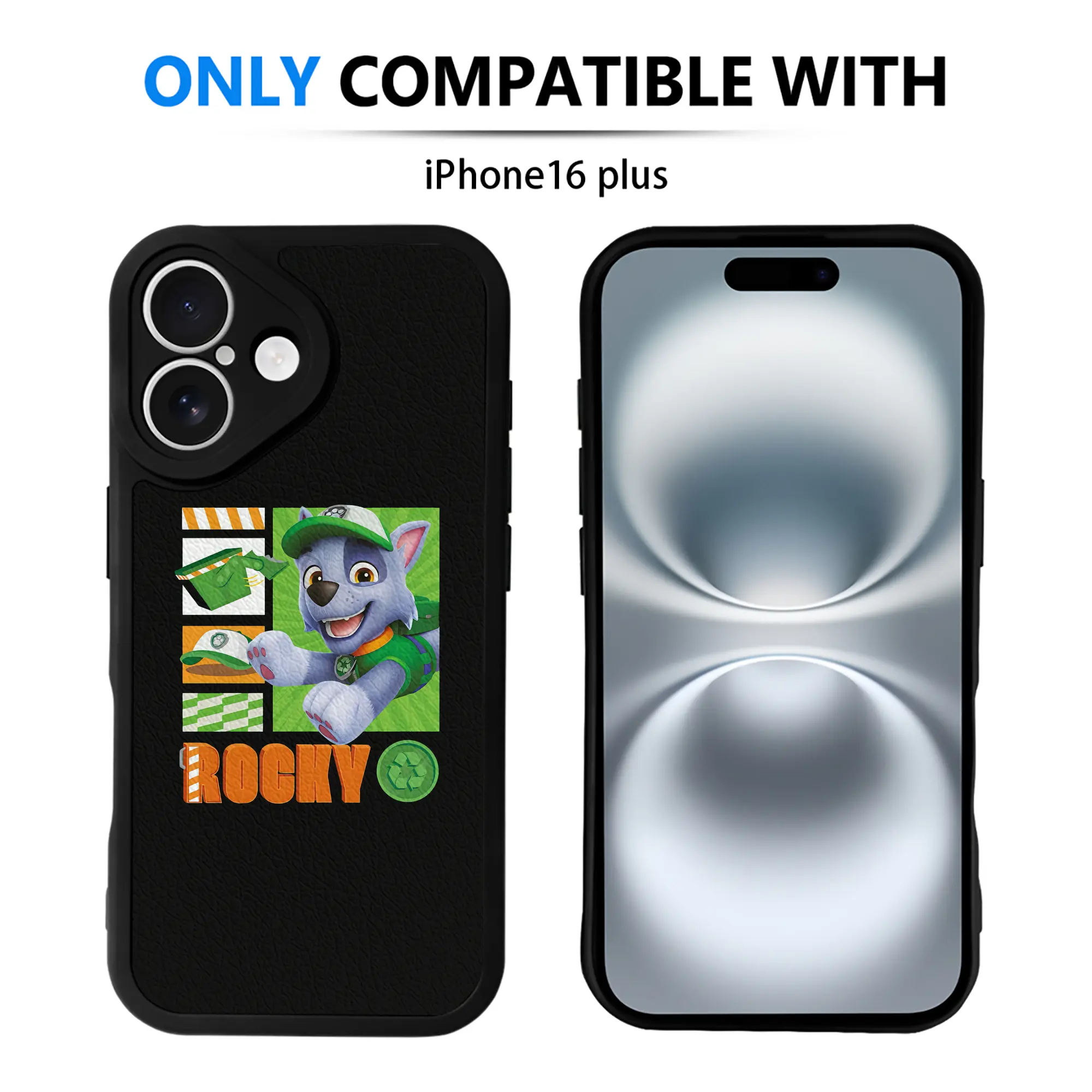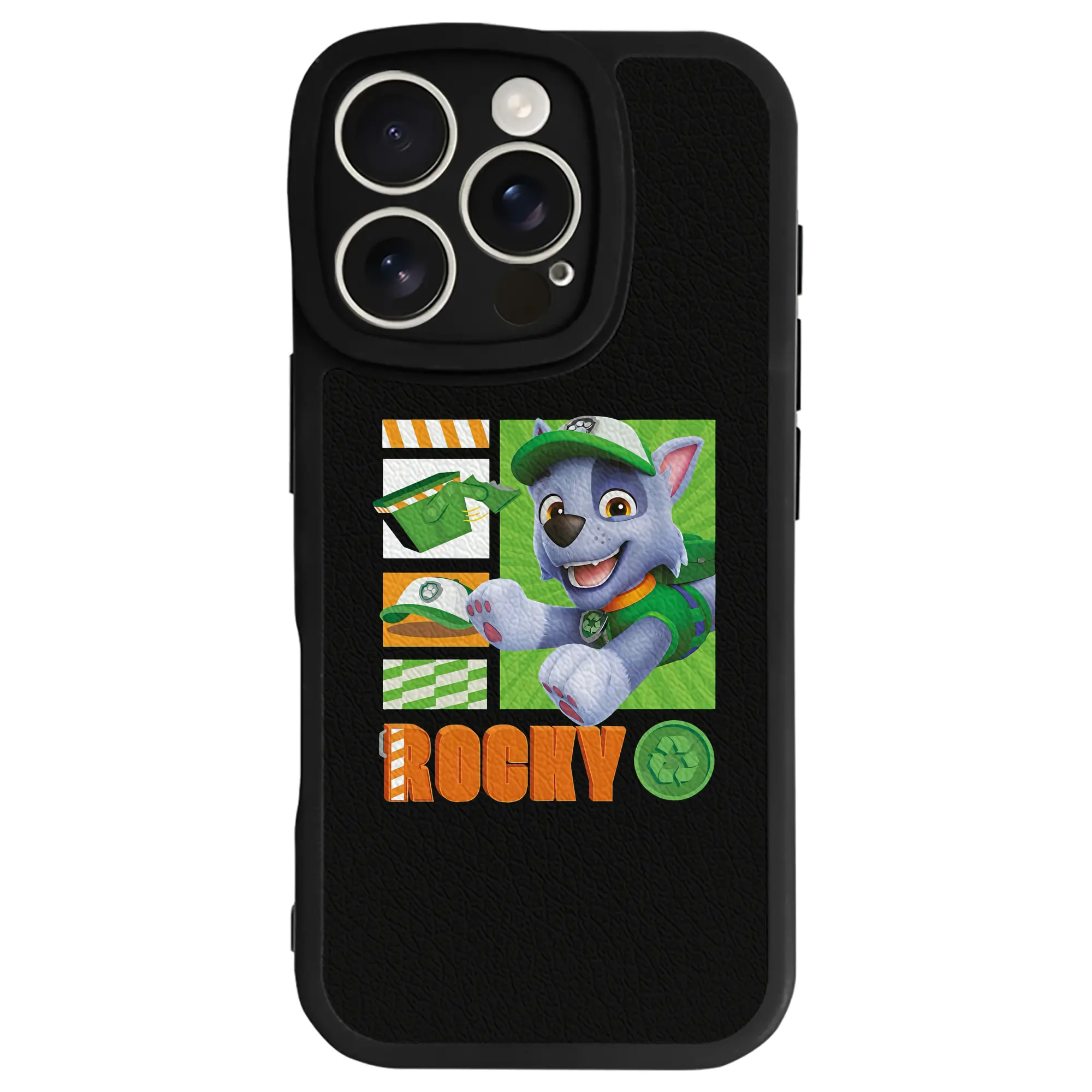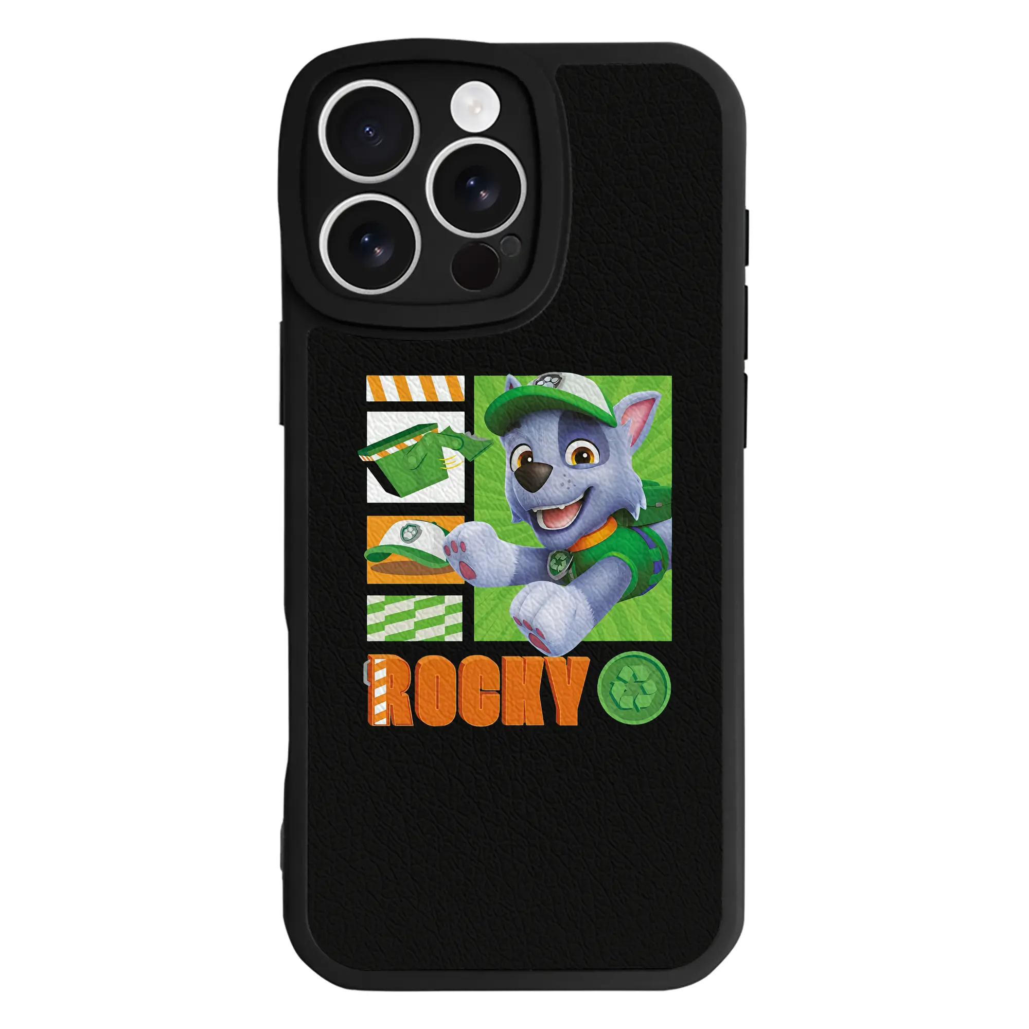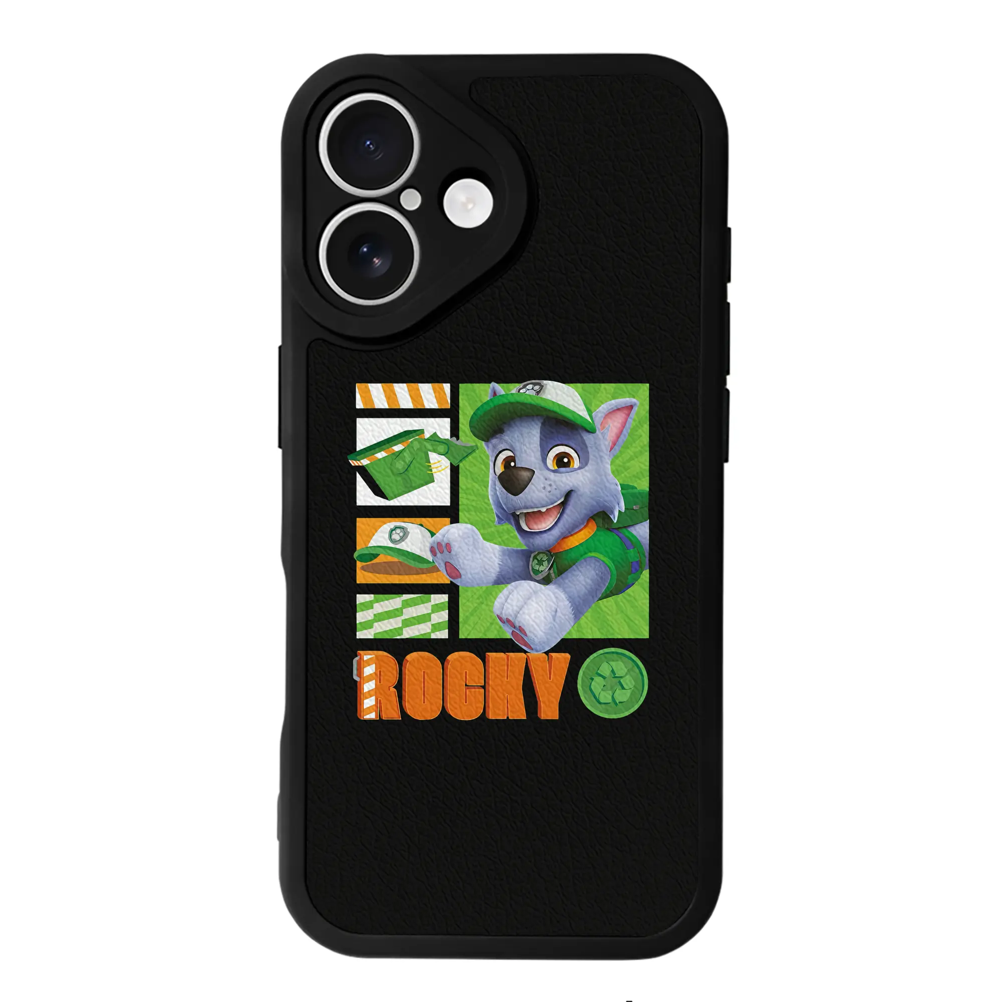 パウ・パトロール グッズ ロッキー - IPhone 16シリーズ対応 ・ シリコンスマホケース ・ レザー調 ・ 高精度フィット ・ 耐衝撃 ・ ワイヤレス充電対応 ・ 精密カット