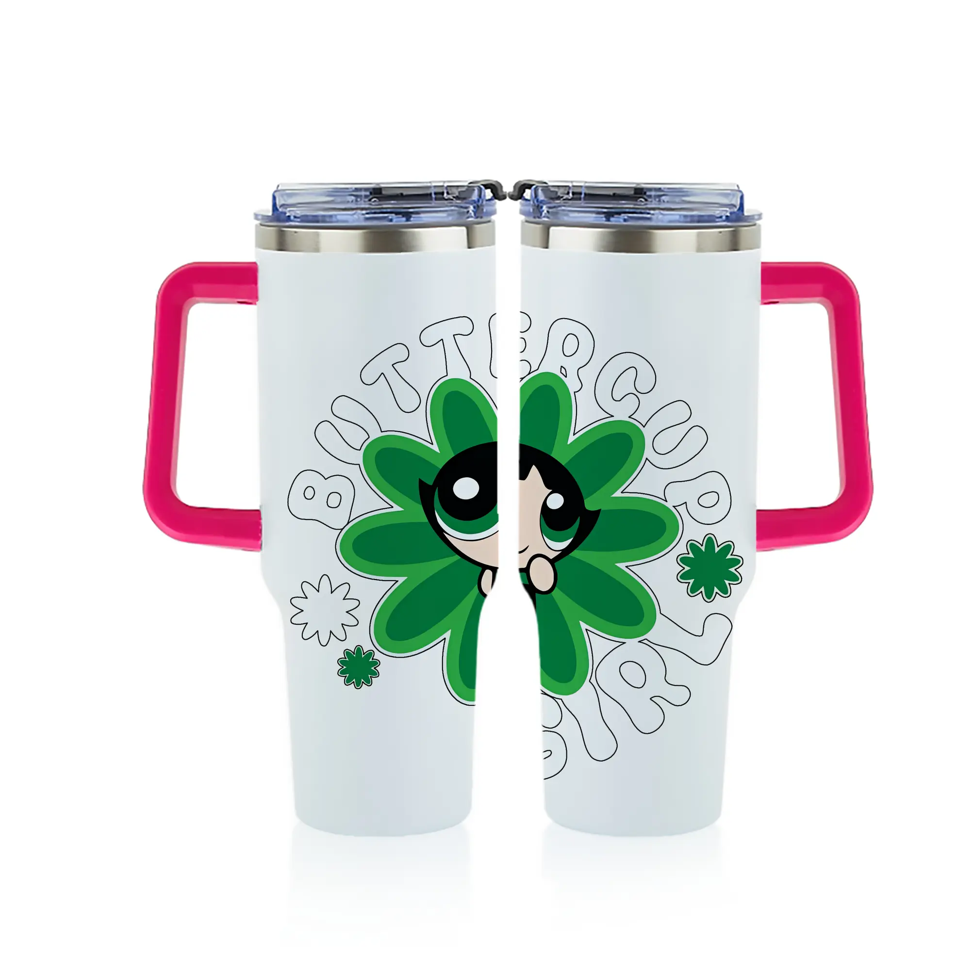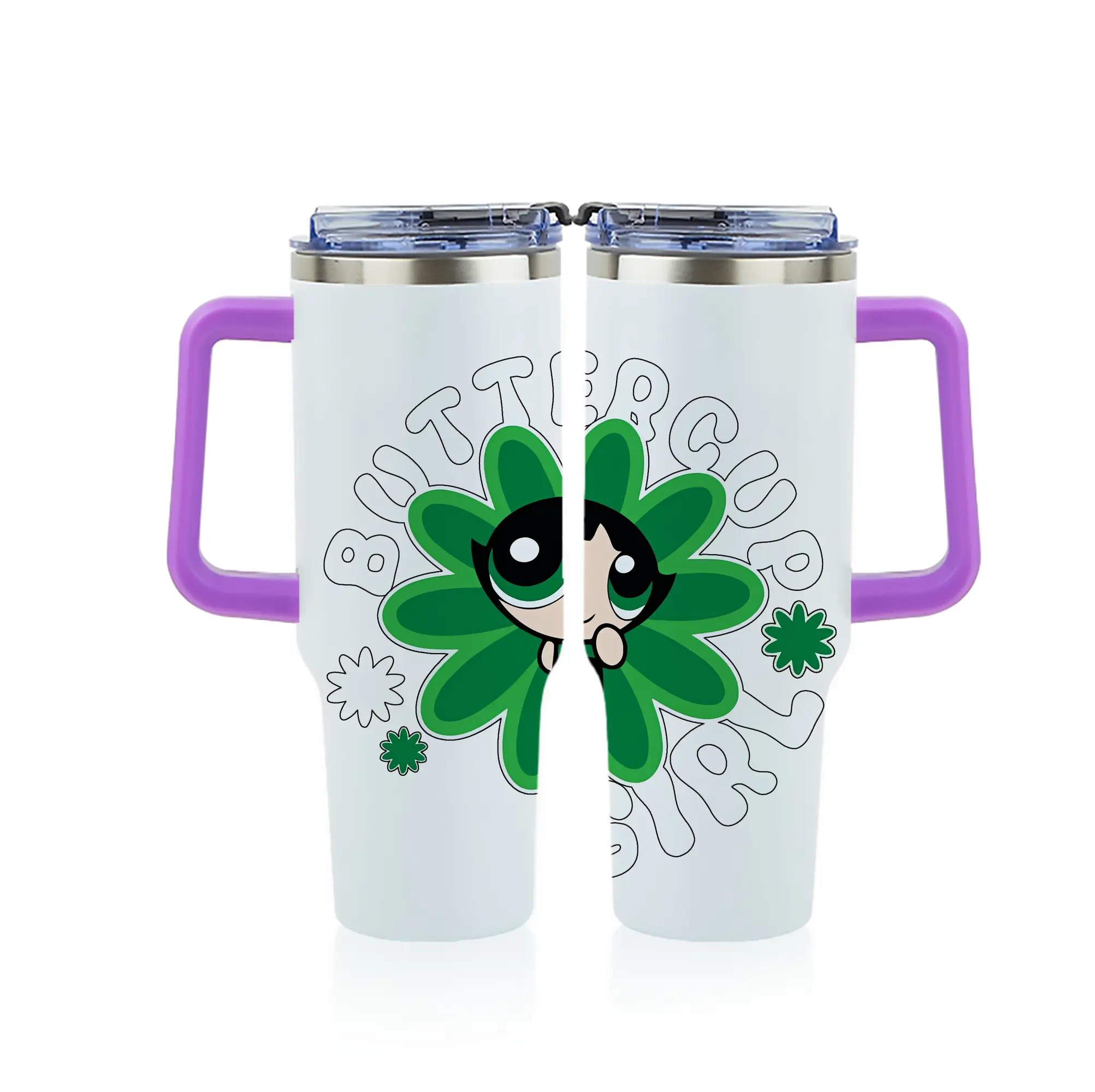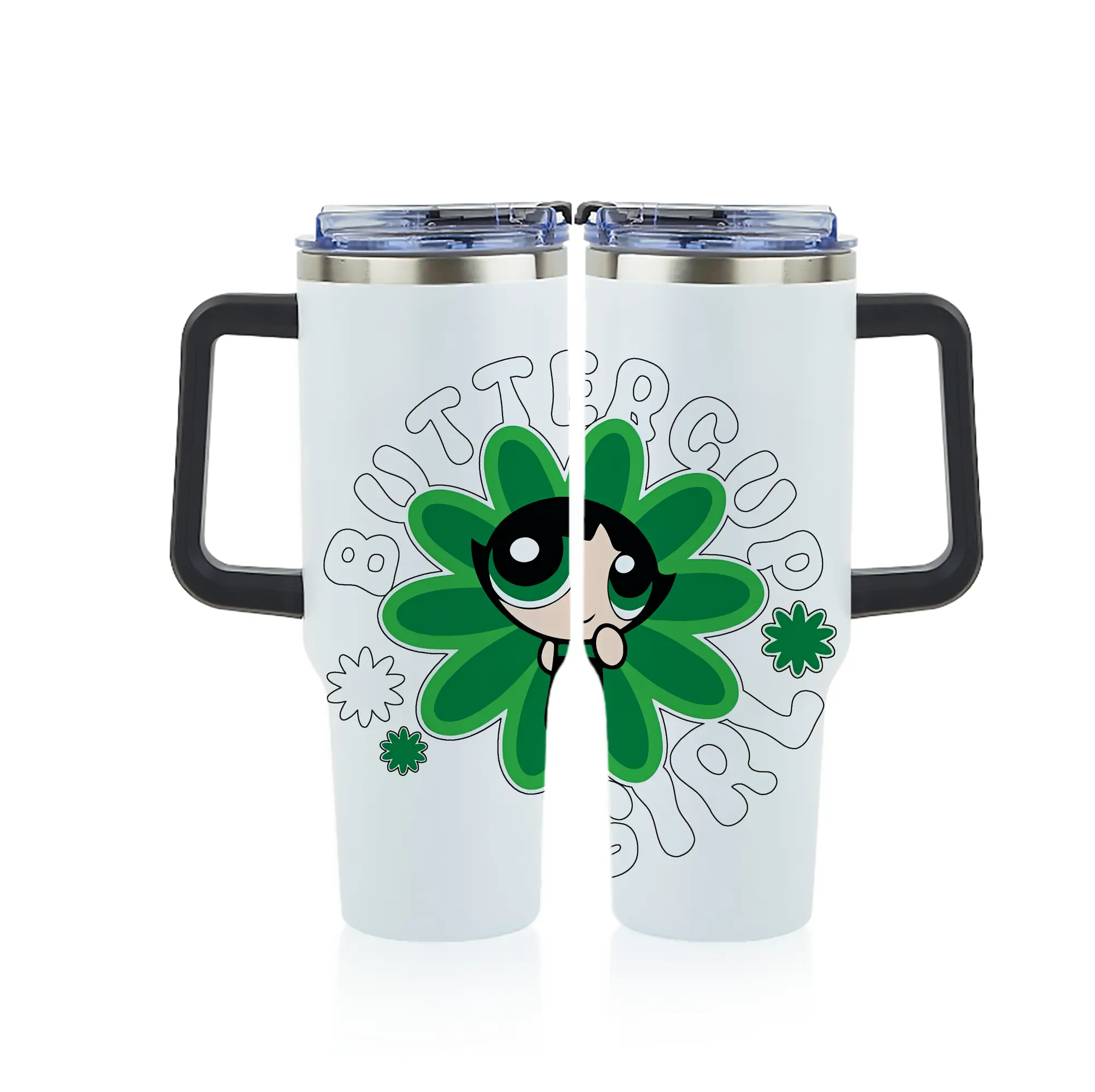 パワパフガールズ グッズ バターカップ - 1200mL フルプリント車用タンブラー ・ 304ステンレス 内側 ・ 201ステンレス 外側 ・ 保温 保冷 ・ 通勤 ドライブ アウトドア用