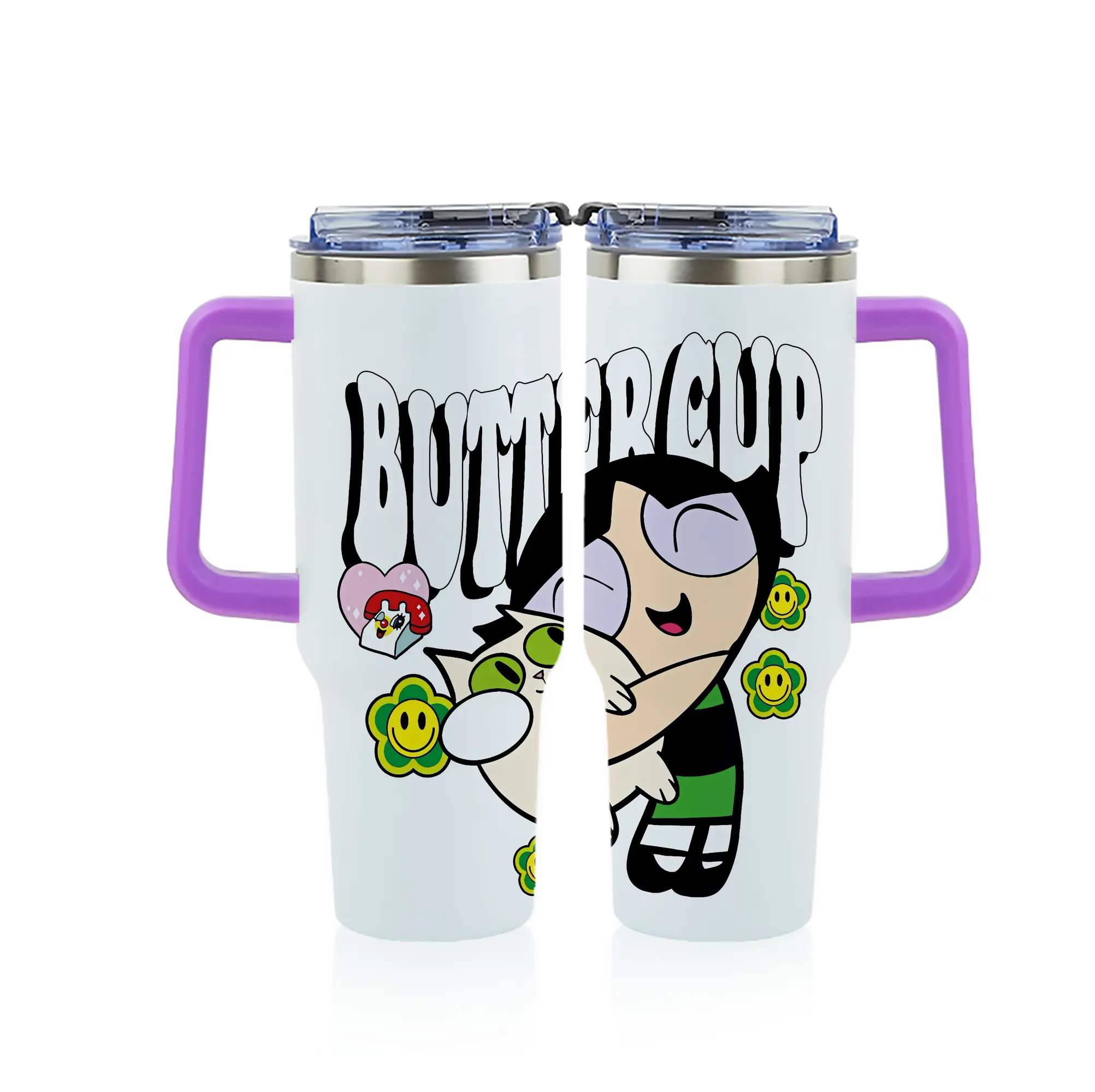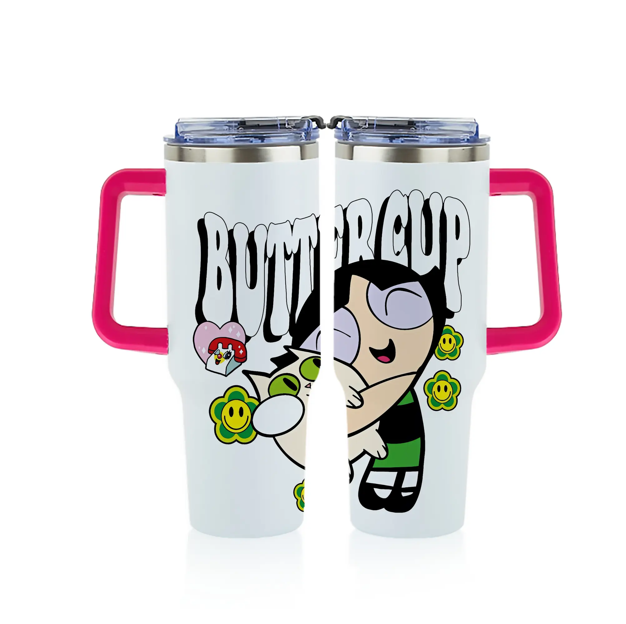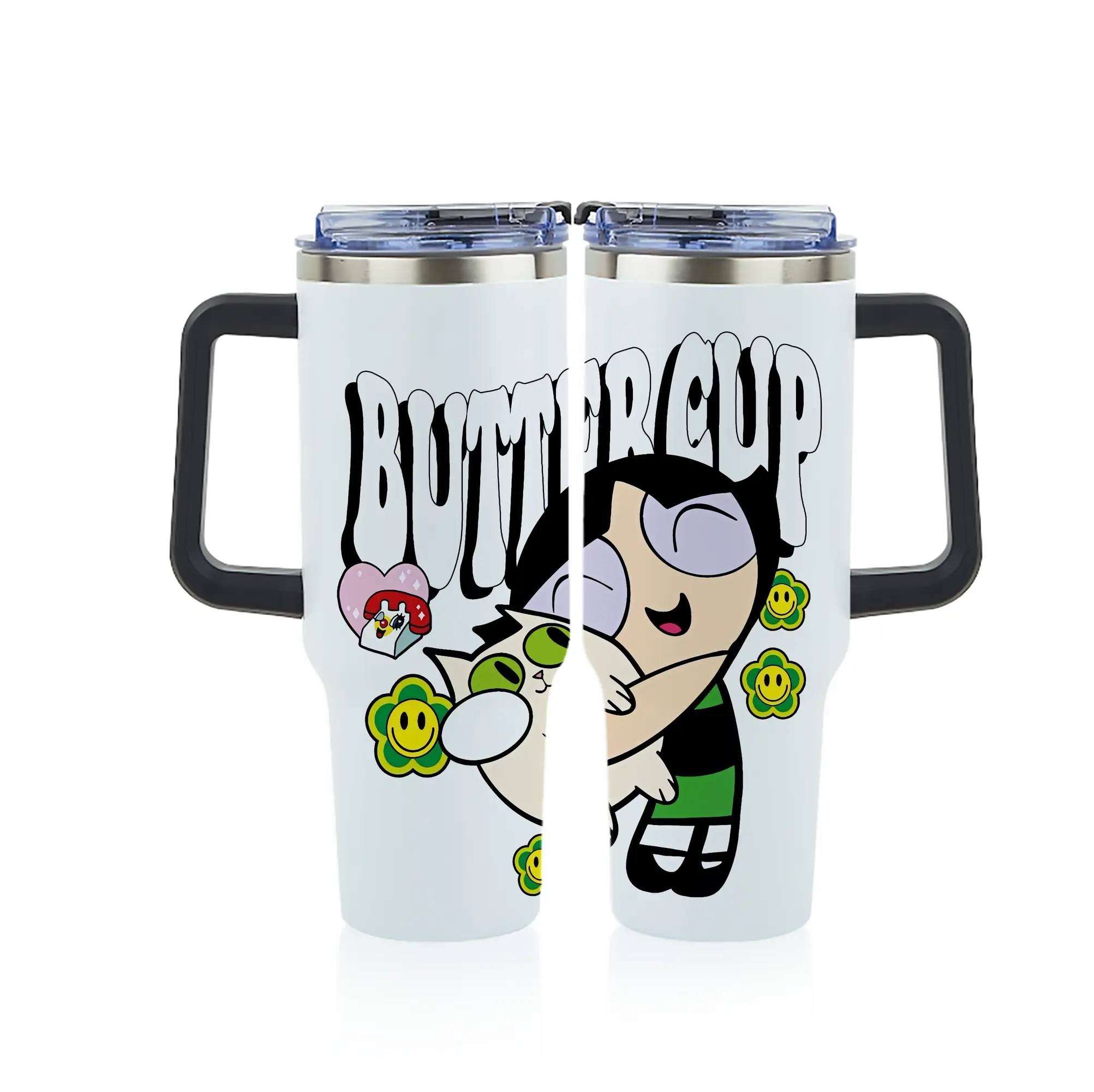 パワパフガールズ グッズ バターカップ - 1200mL フルプリント車用タンブラー ・ 304ステンレス 内側 ・ 201ステンレス 外側 ・ 保温 保冷 ・ 通勤 ドライブ アウトドア用