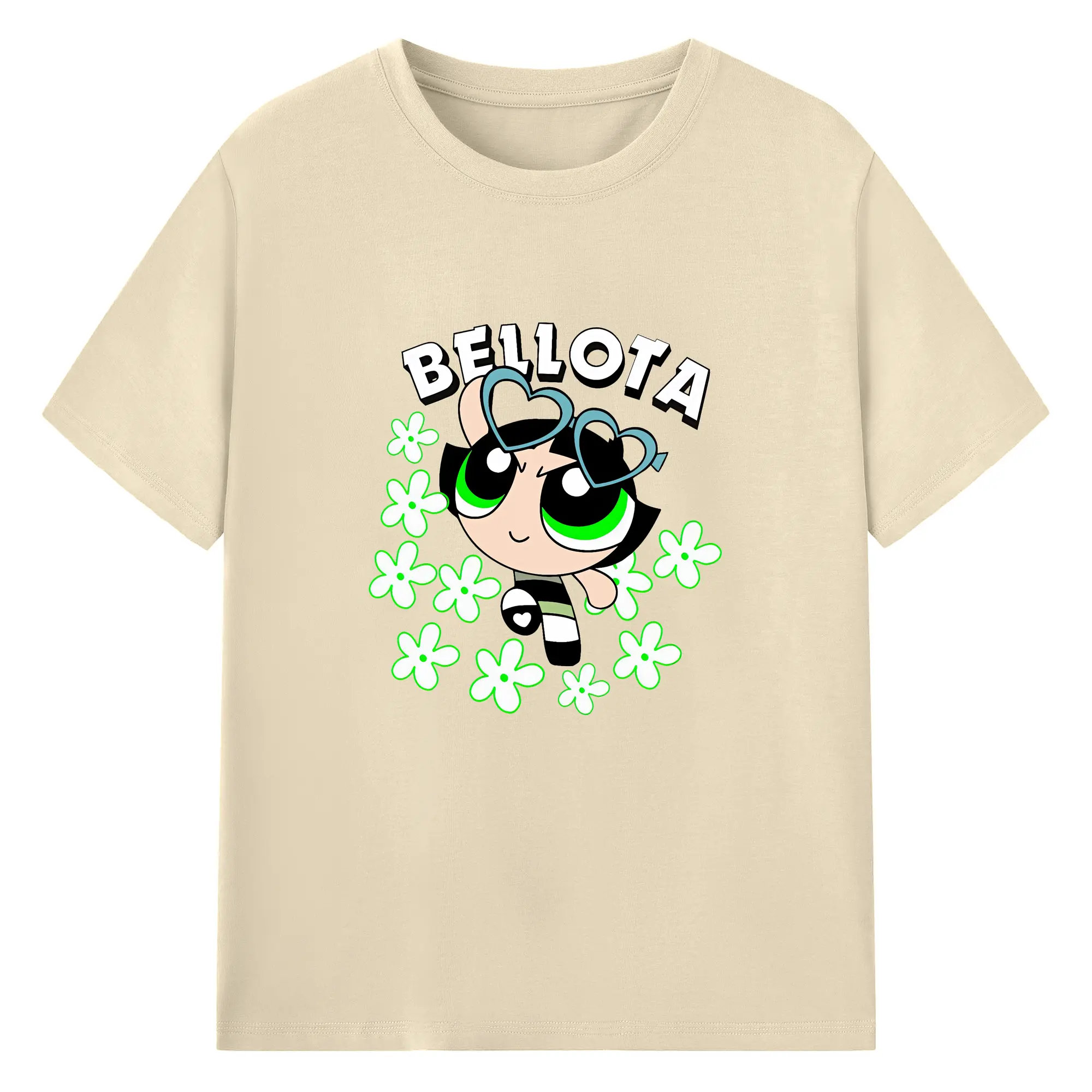 パワパフガールズ グッズ バターカップ - 綿100% 半袖Tシャツ ・ バックプリント ・ 快適 通気性 ・ 日常使い 散歩 スポーツ用