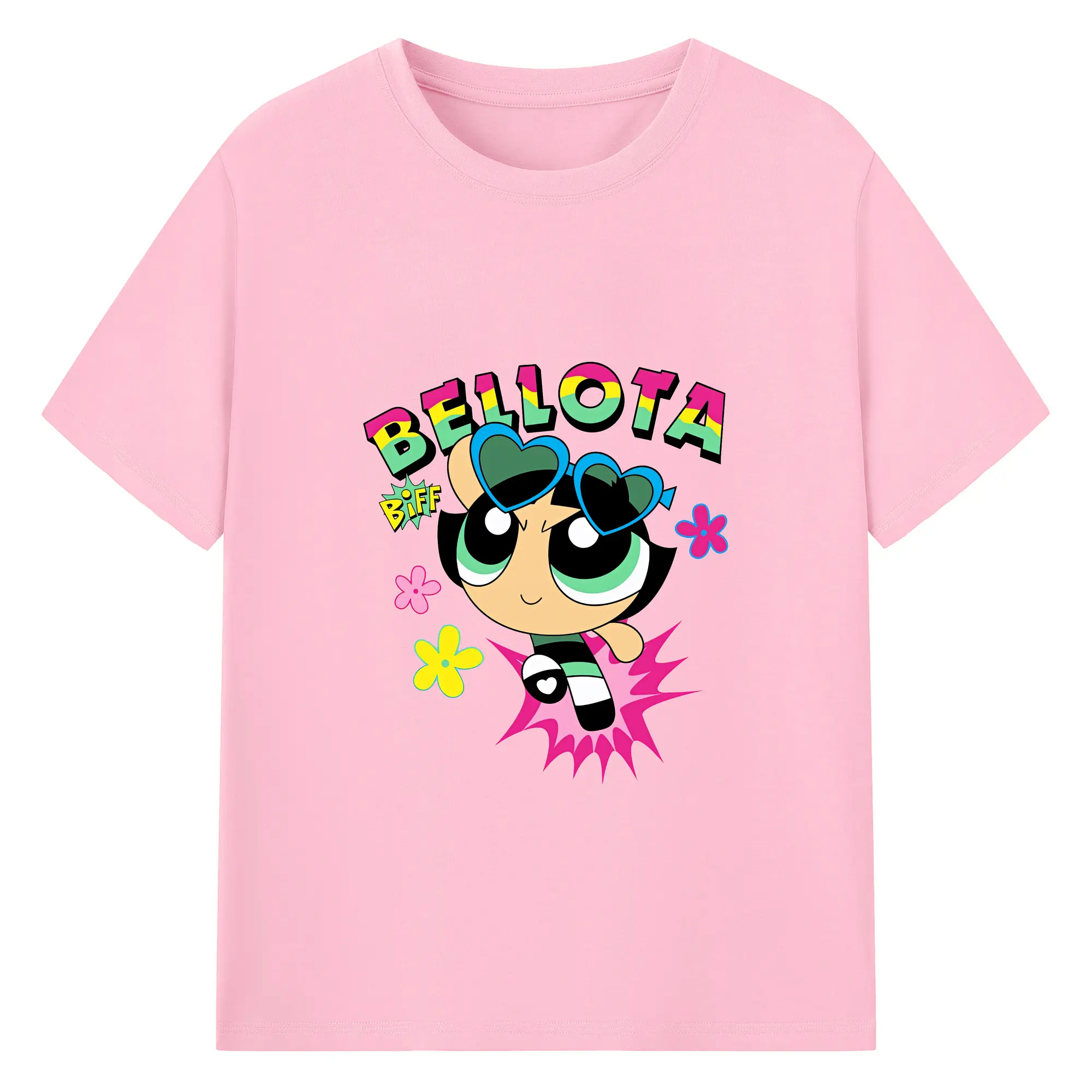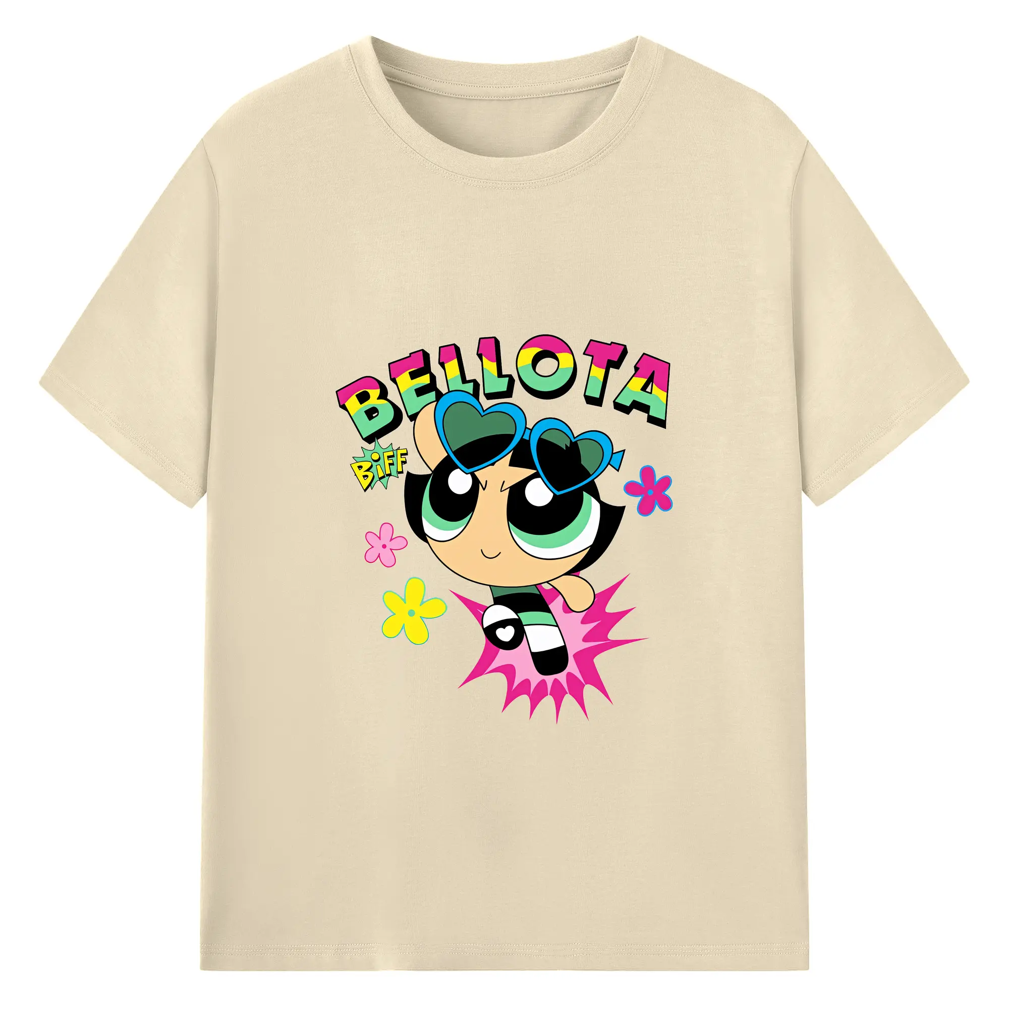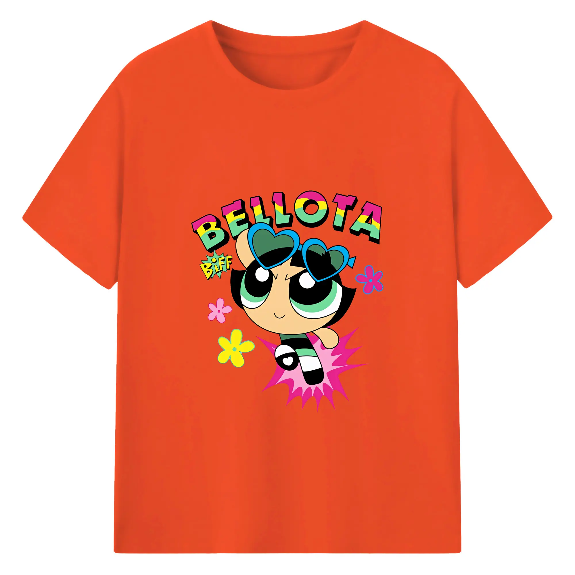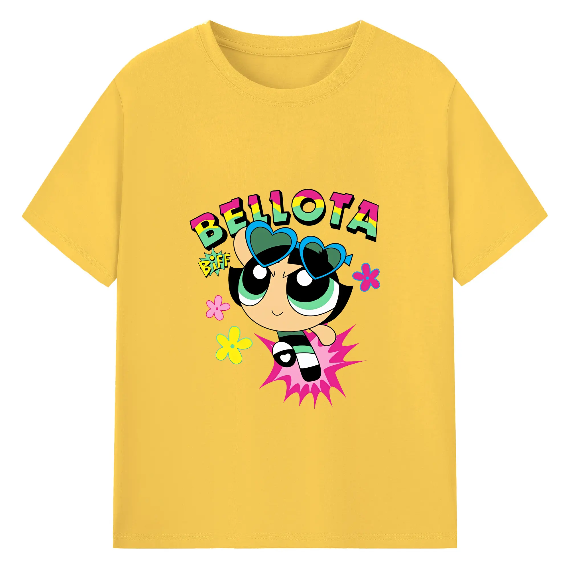 パワパフガールズ グッズ バターカップ - 綿100% 半袖Tシャツ ・ バックプリント ・ 快適 通気性 ・ 日常使い 散歩 スポーツ用