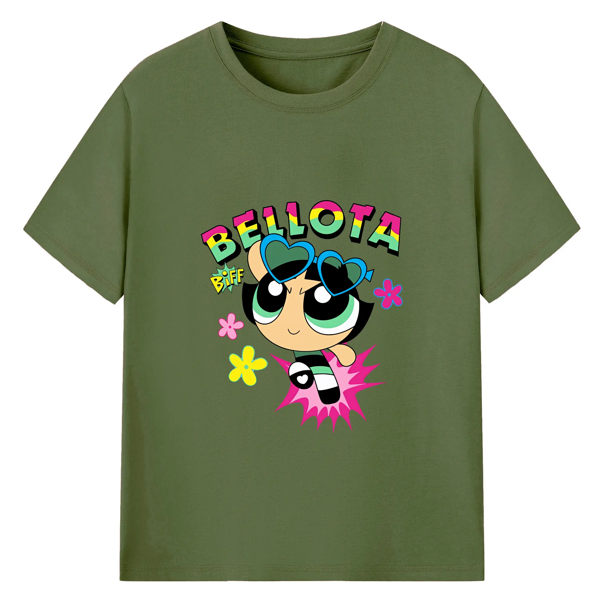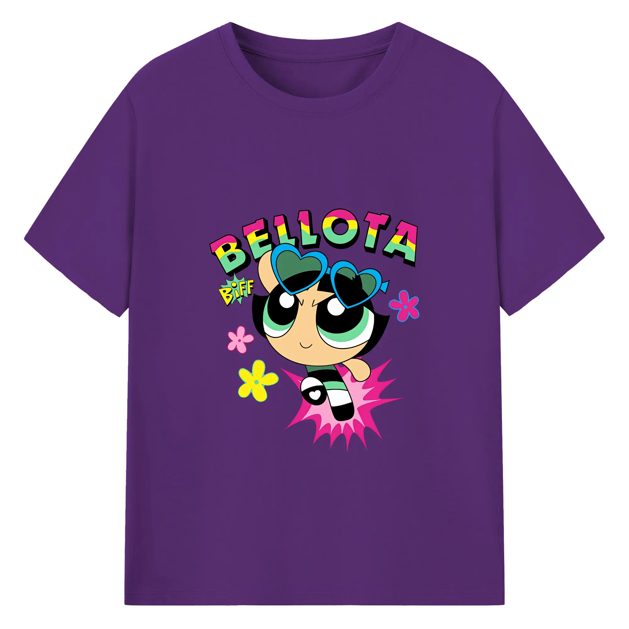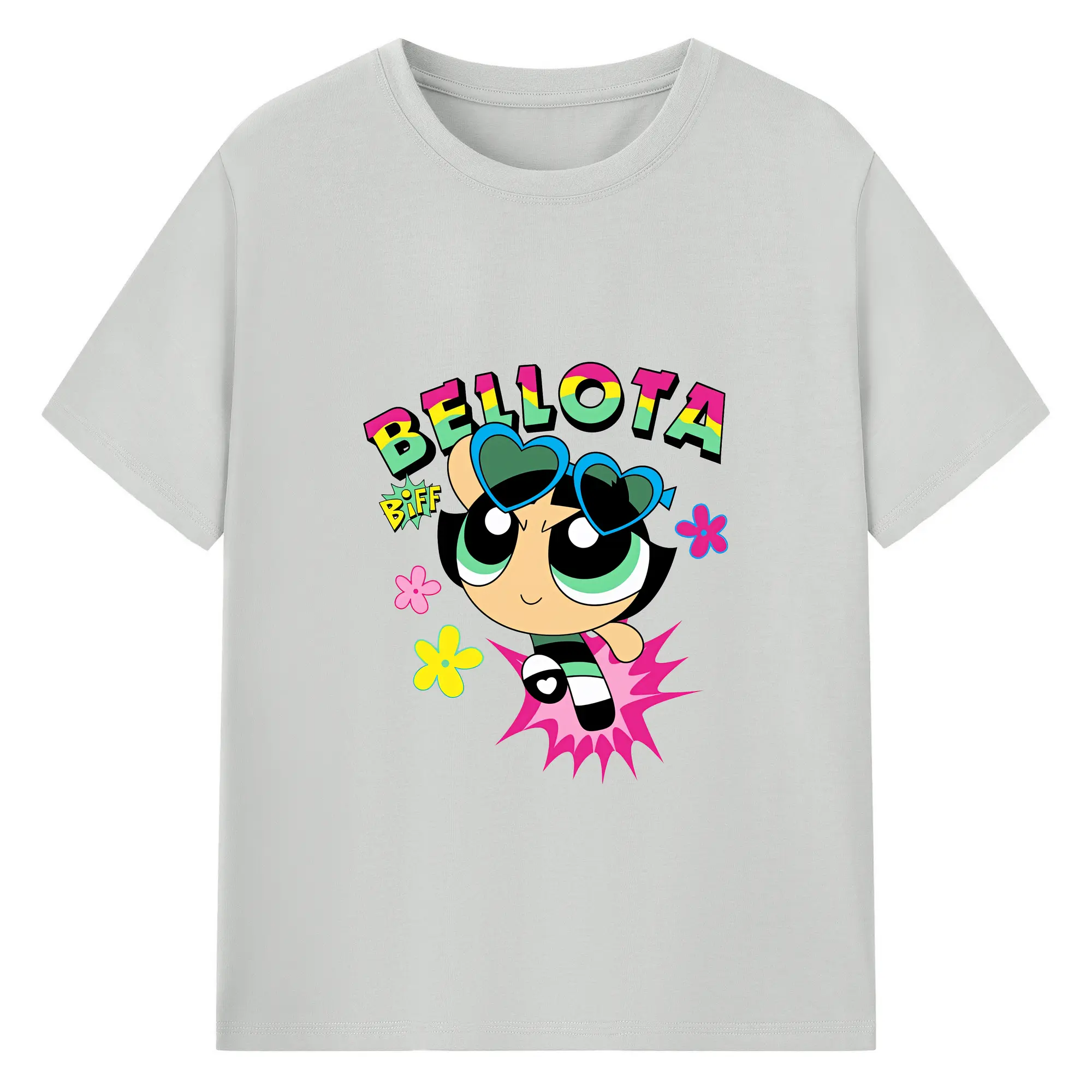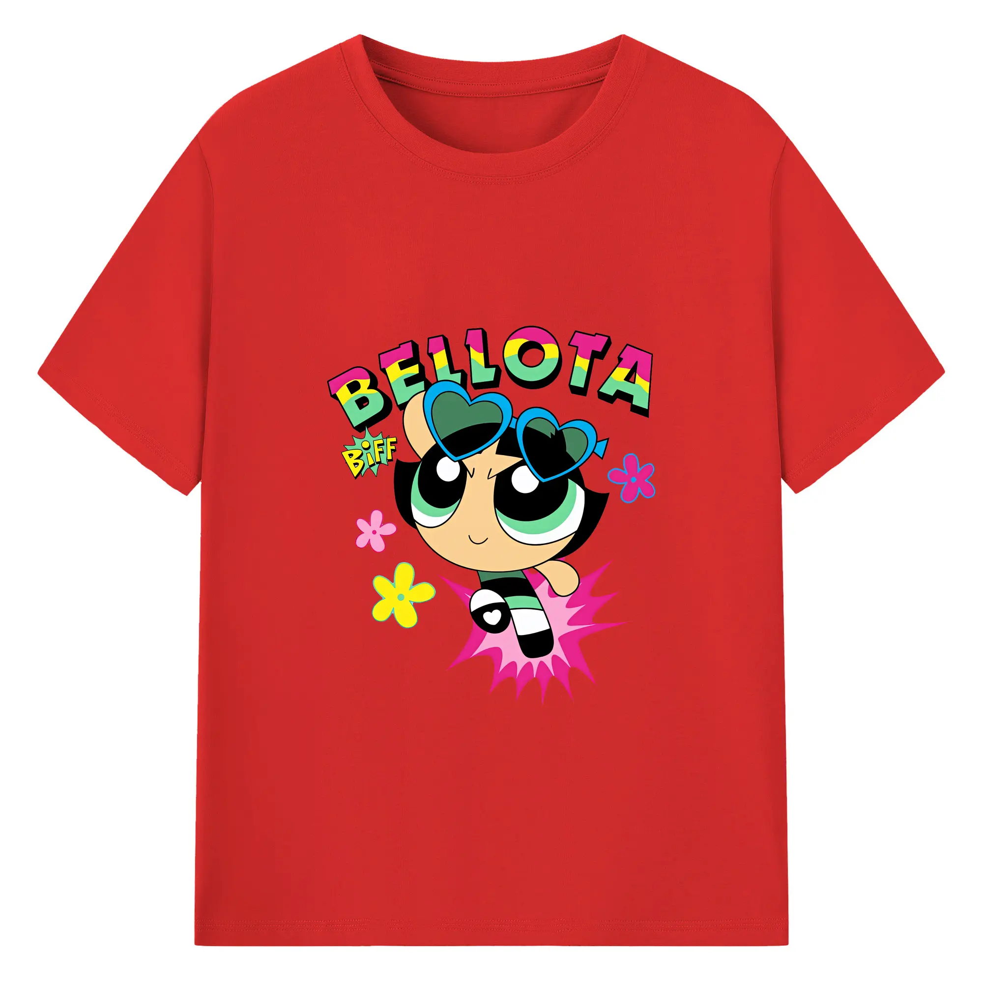 パワパフガールズ グッズ バターカップ - 綿100% 半袖Tシャツ ・ バックプリント ・ 快適 通気性 ・ 日常使い 散歩 スポーツ用