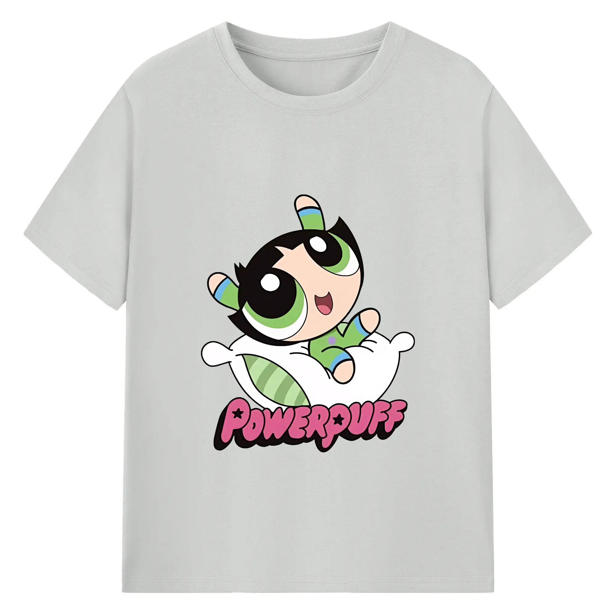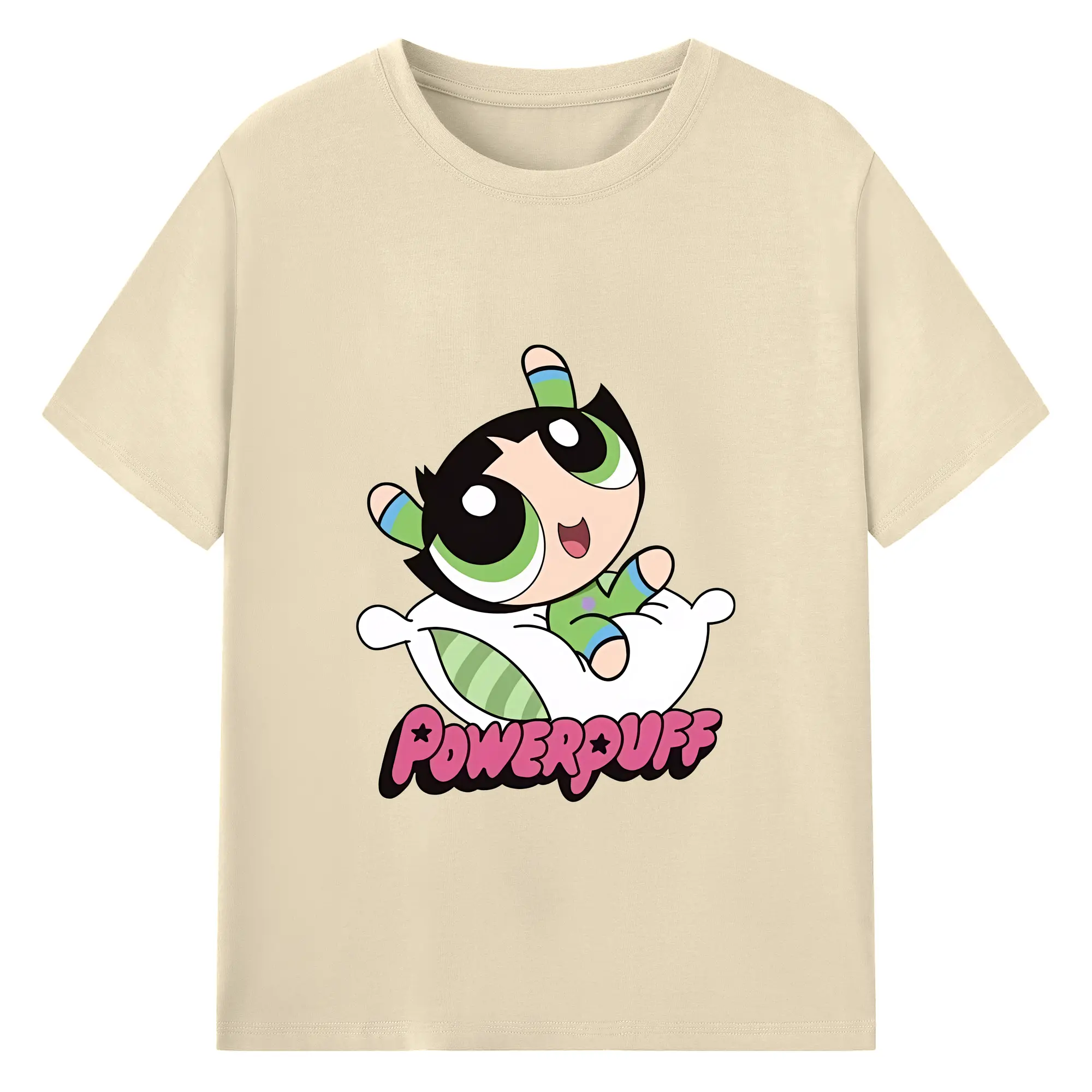 パワパフガールズ グッズ バターカップ - 綿100% 半袖Tシャツ ・ バックプリント ・ 快適 通気性 ・ 日常使い 散歩 スポーツ用