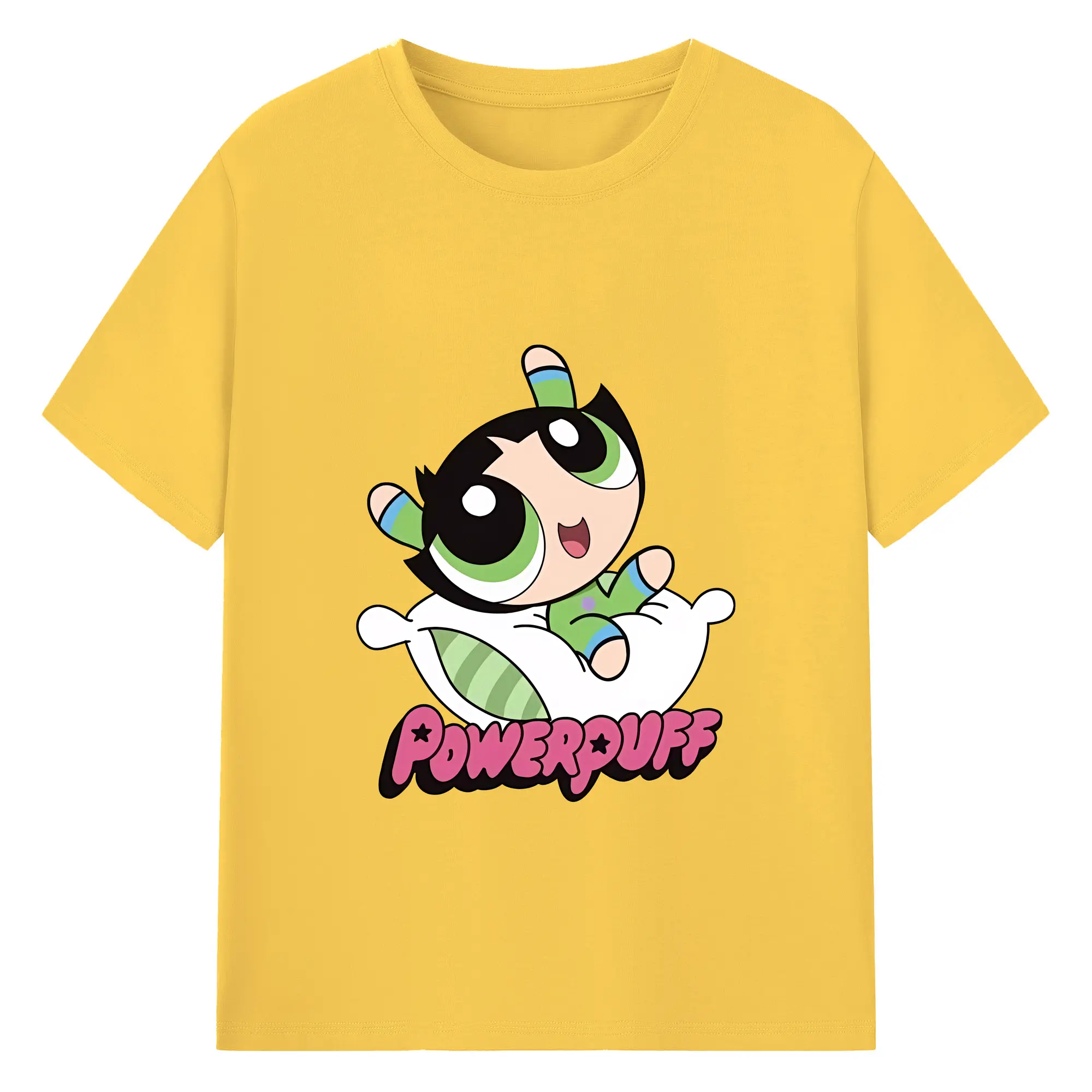 パワパフガールズ グッズ バターカップ - 綿100% キッズTシャツ ・ フロントプリント ・ 快適 通気性 ・ スポーツ カジュアル 散歩用