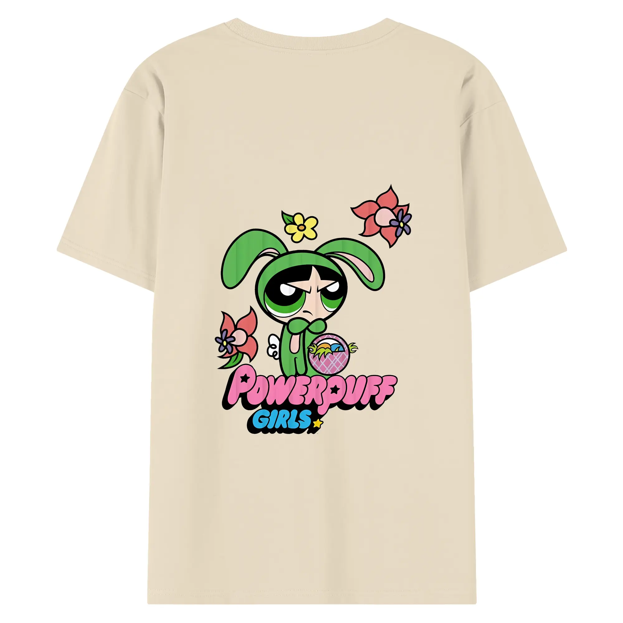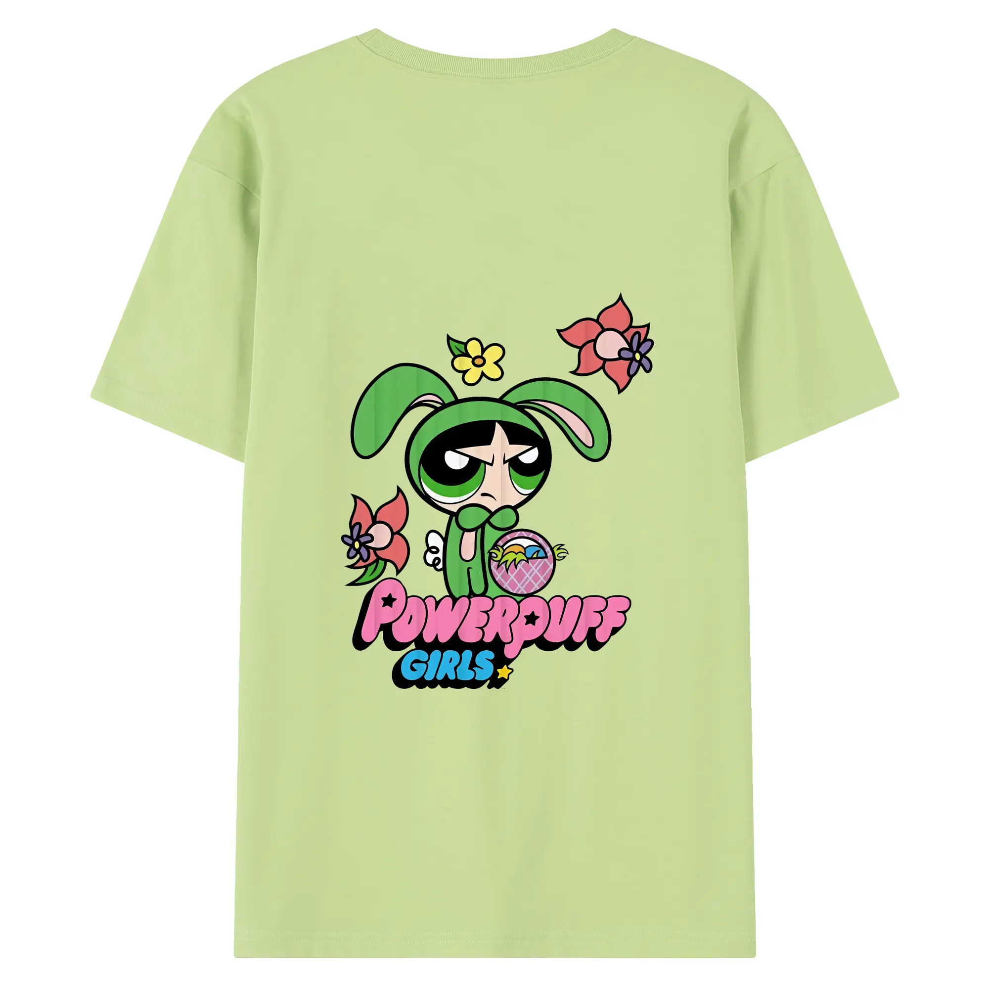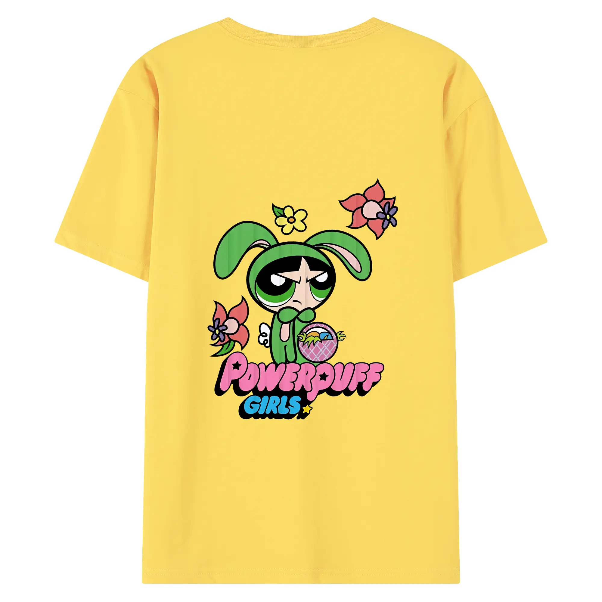 パワパフガールズ グッズ バターカップ - 綿100% ヴィンテージ風 半袖Tシャツ ・ 背面プリント ・ 柔らか肌触り ・ 通気性 快適 ・ スポーツ カジュアル 外出用