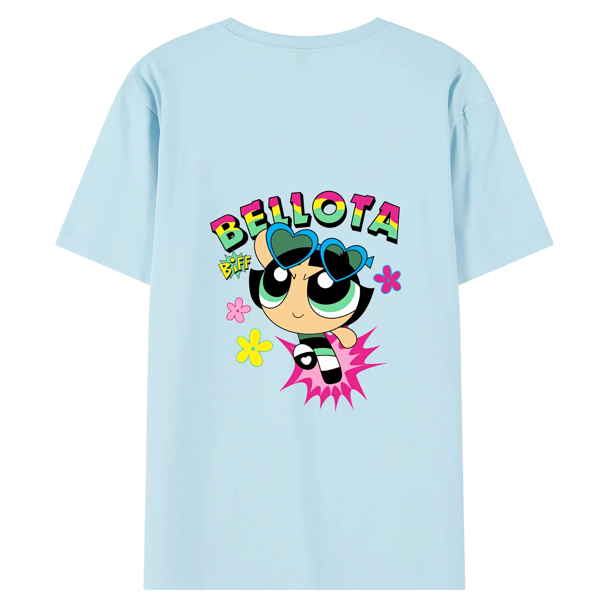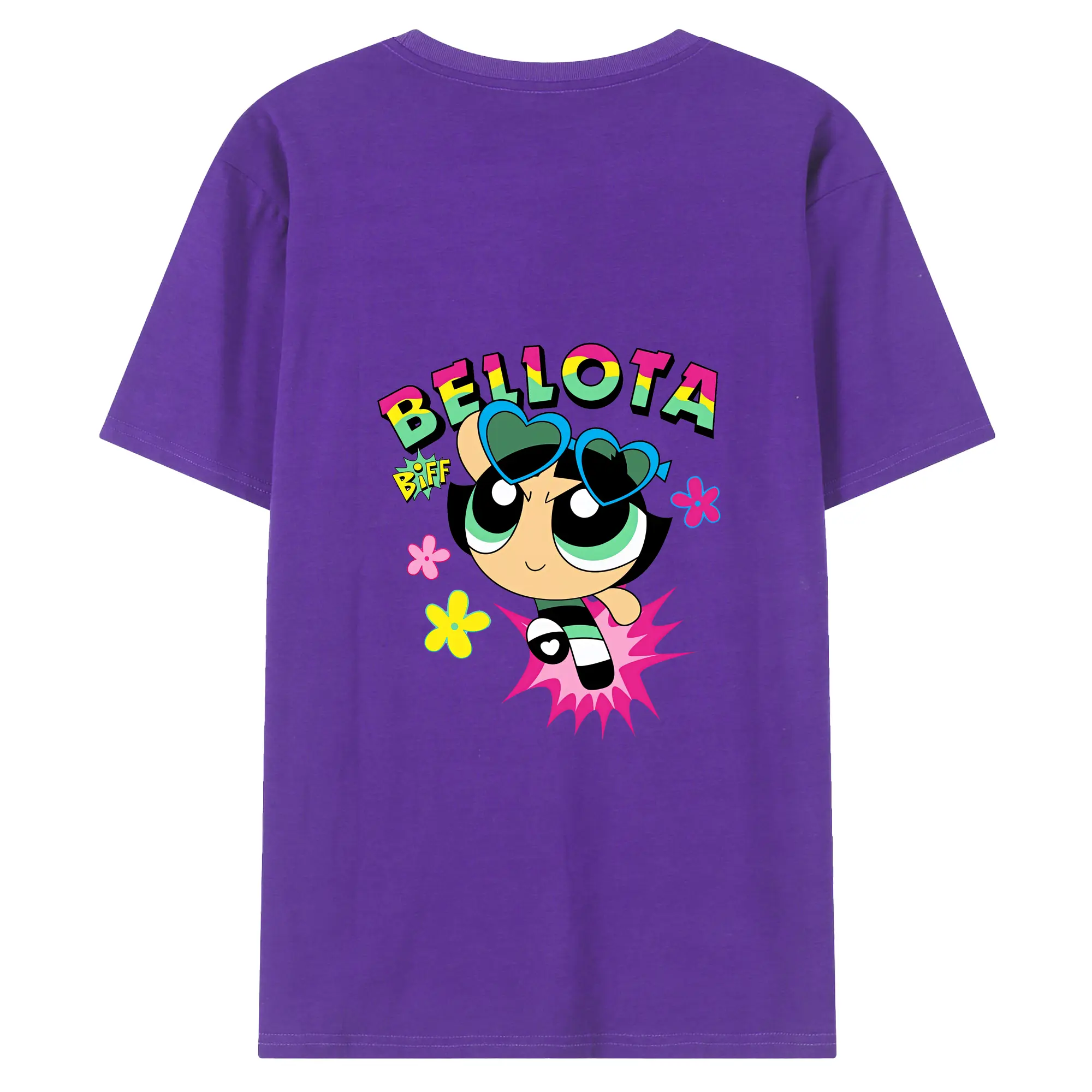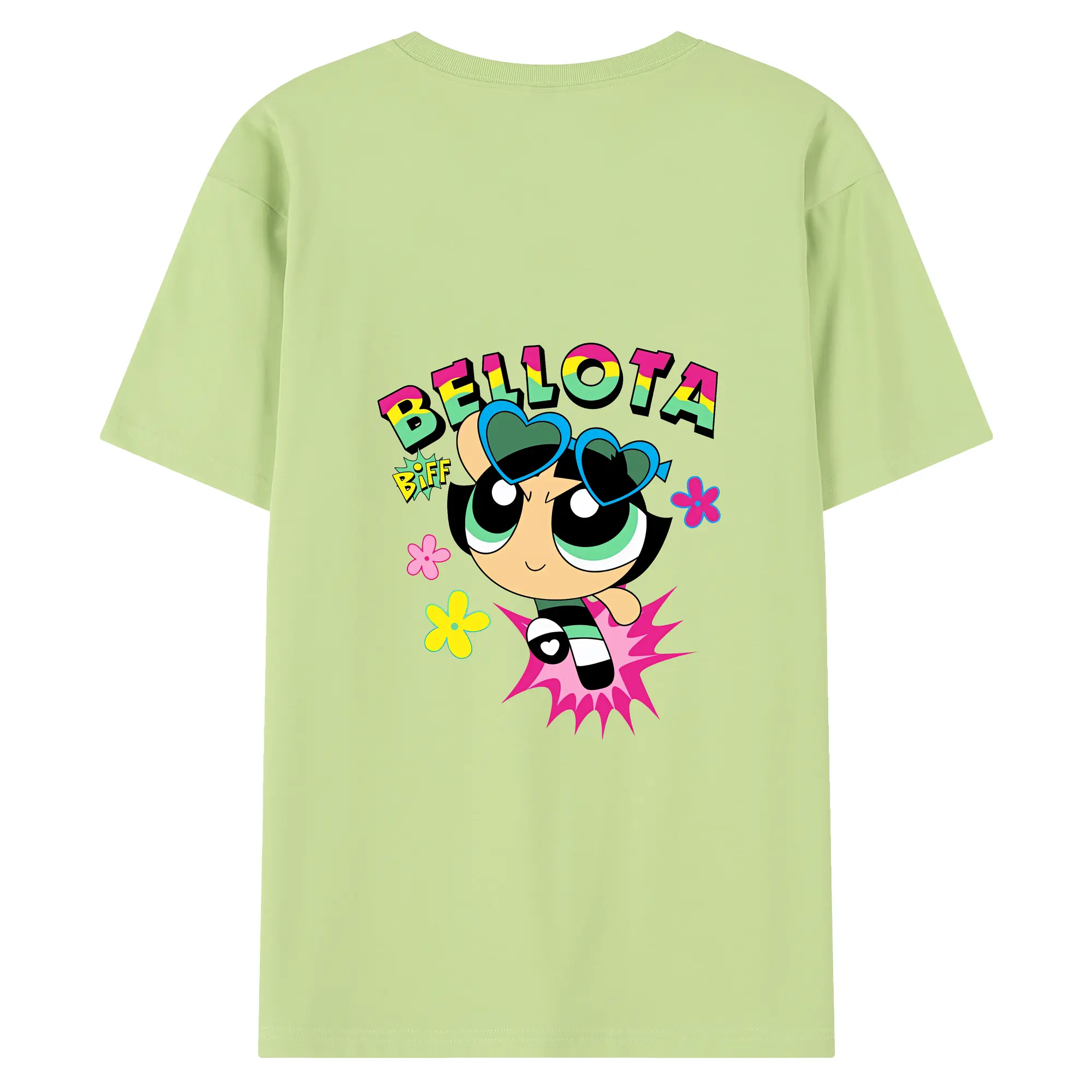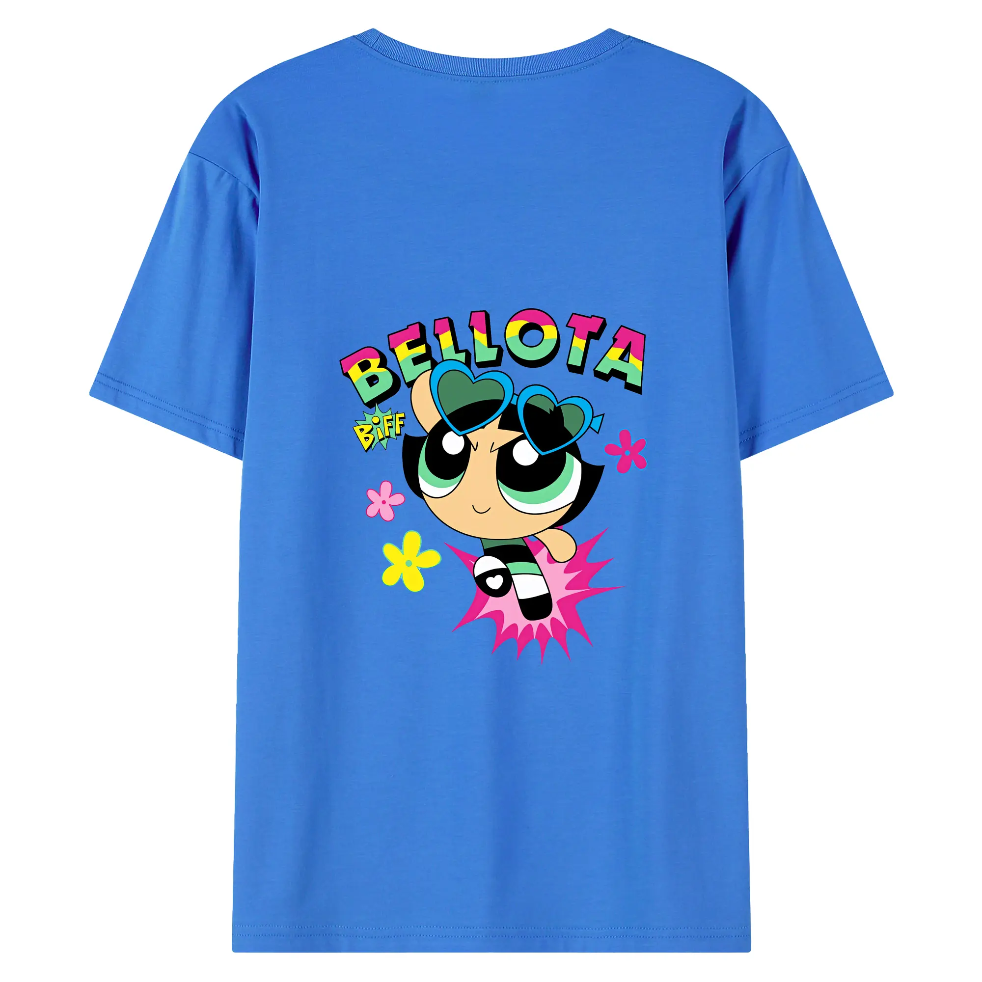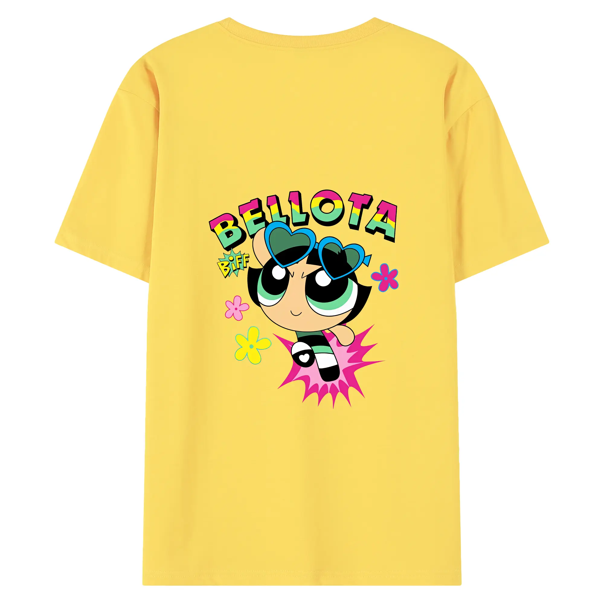 パワパフガールズ グッズ バターカップ - 綿100% 半袖Tシャツ ・ フロントプリント ・ 快適 通気性 ・ 日常使い 散歩 スポーツ用