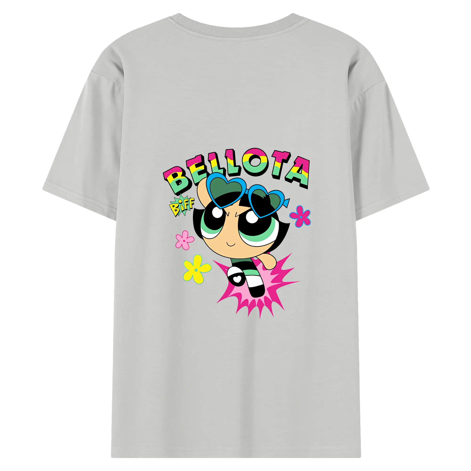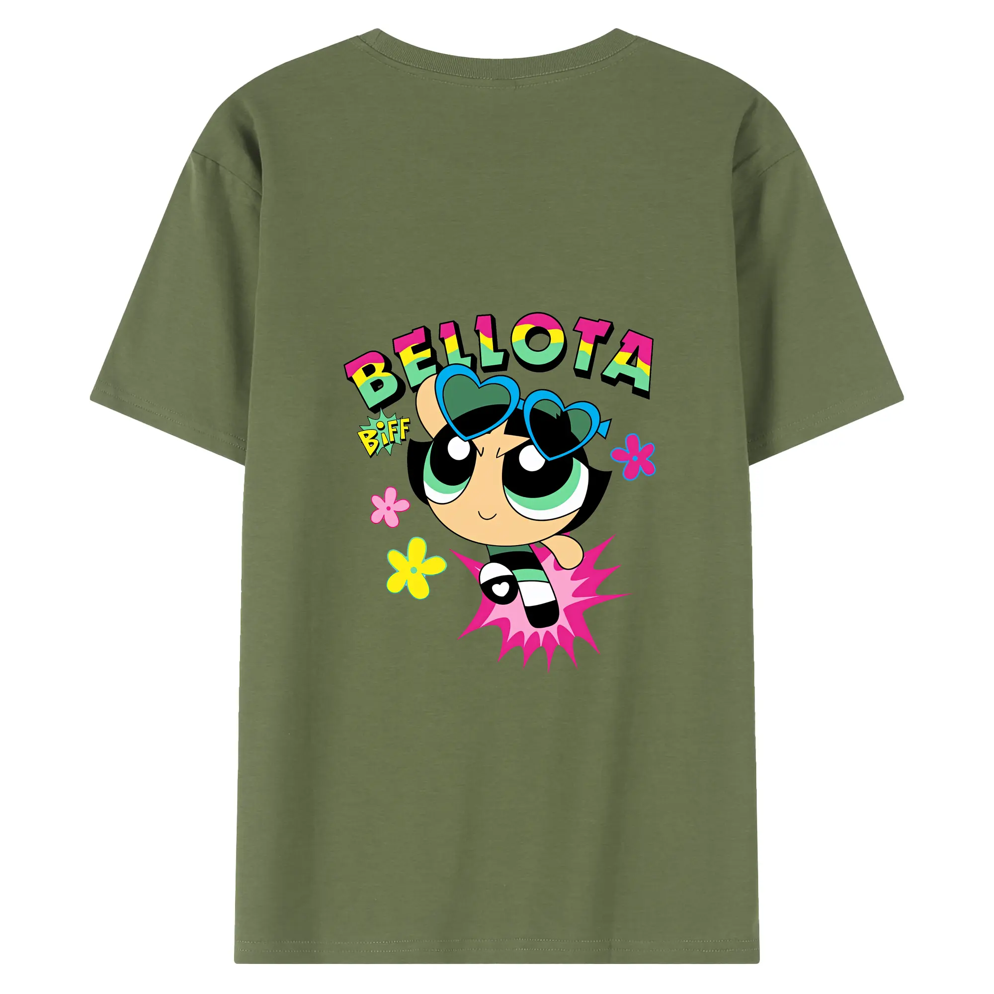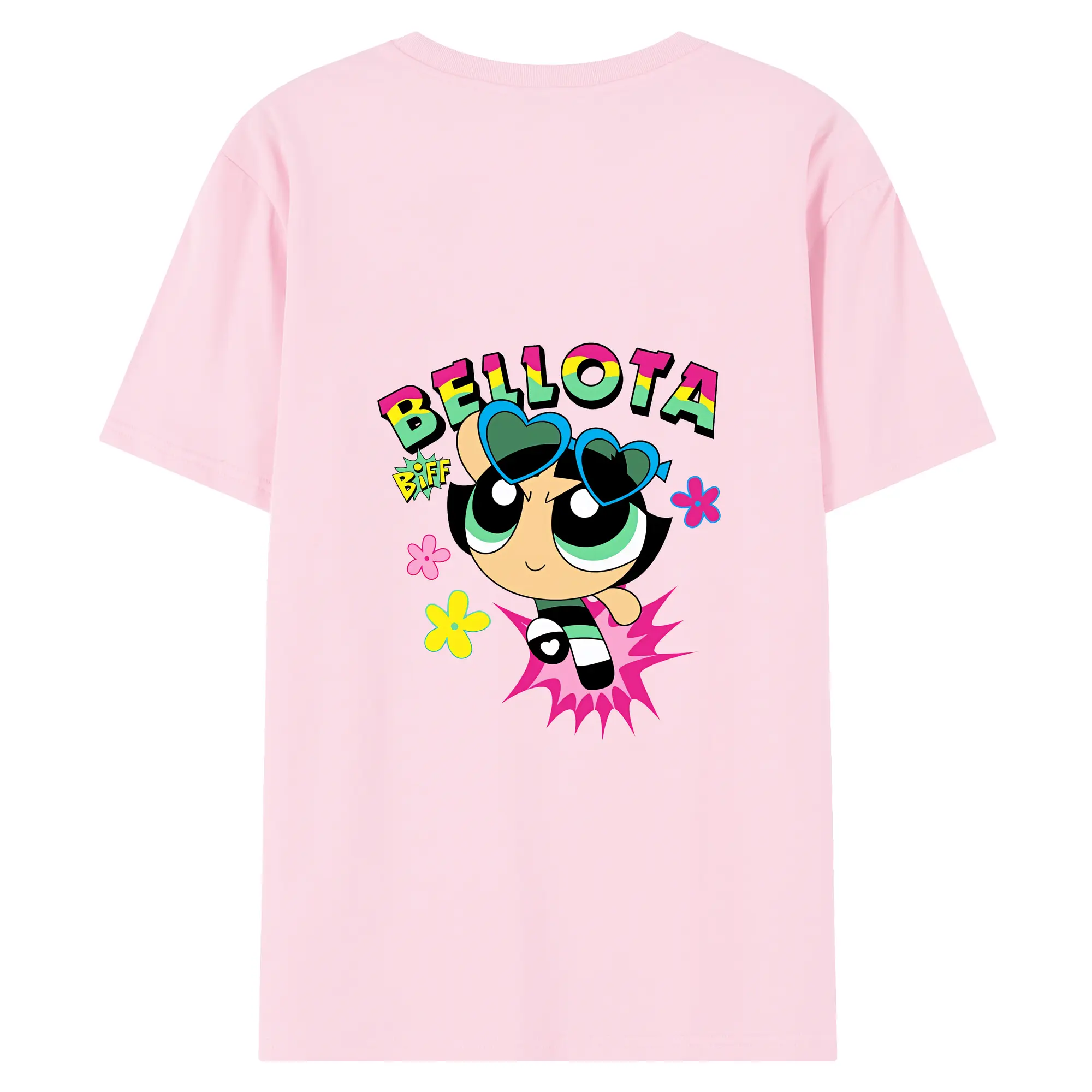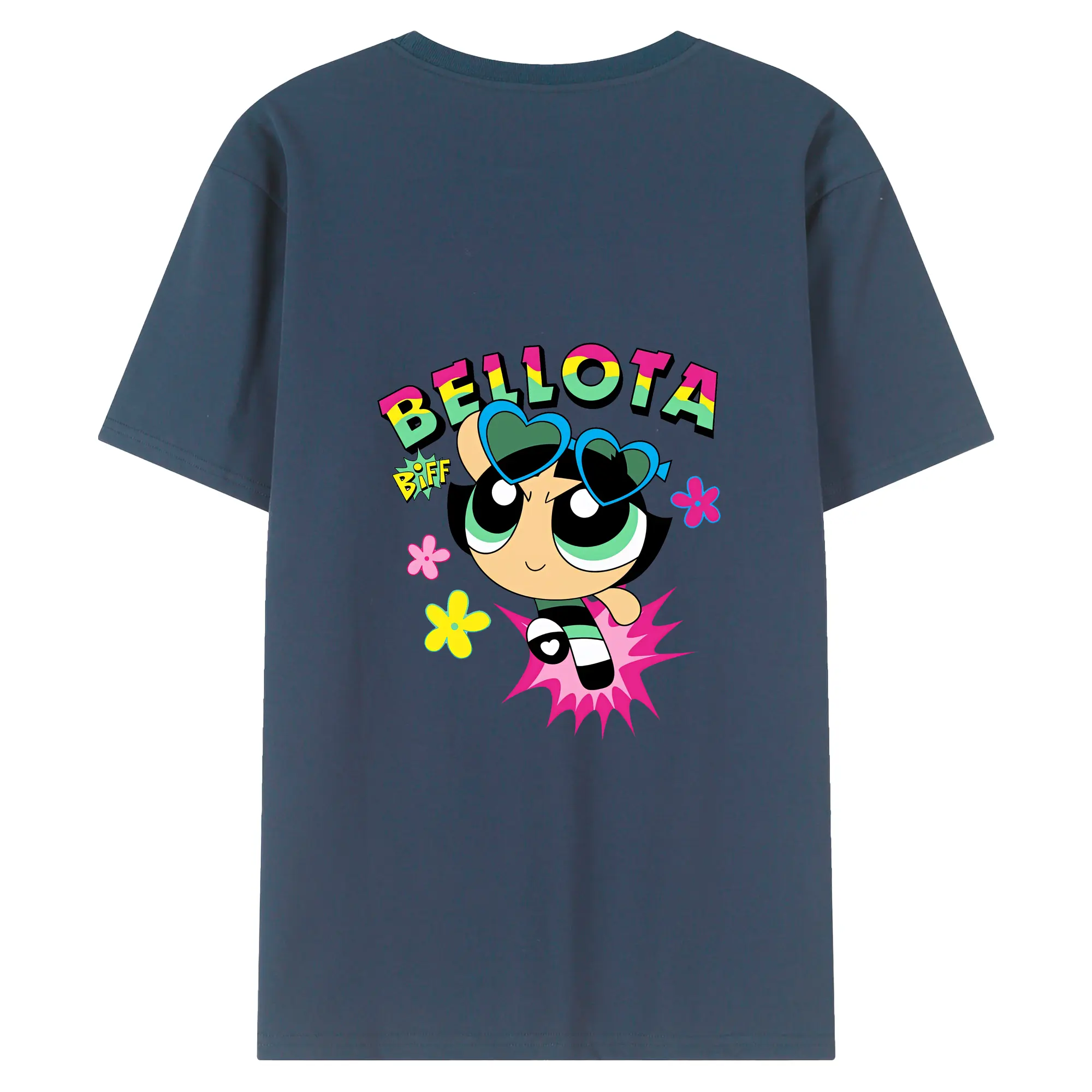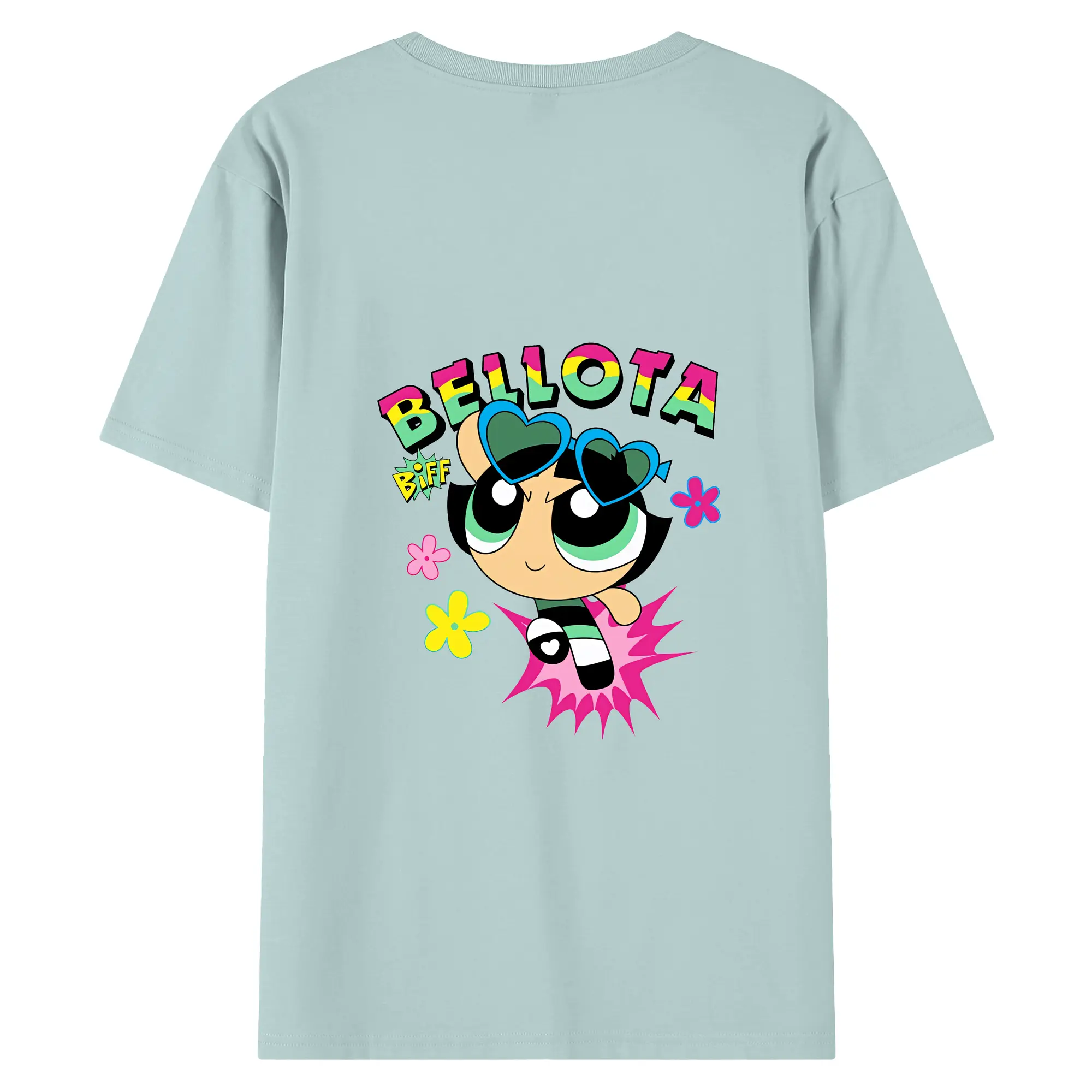 パワパフガールズ グッズ バターカップ - 綿100% 半袖Tシャツ ・ フロントプリント ・ 快適 通気性 ・ 日常使い 散歩 スポーツ用