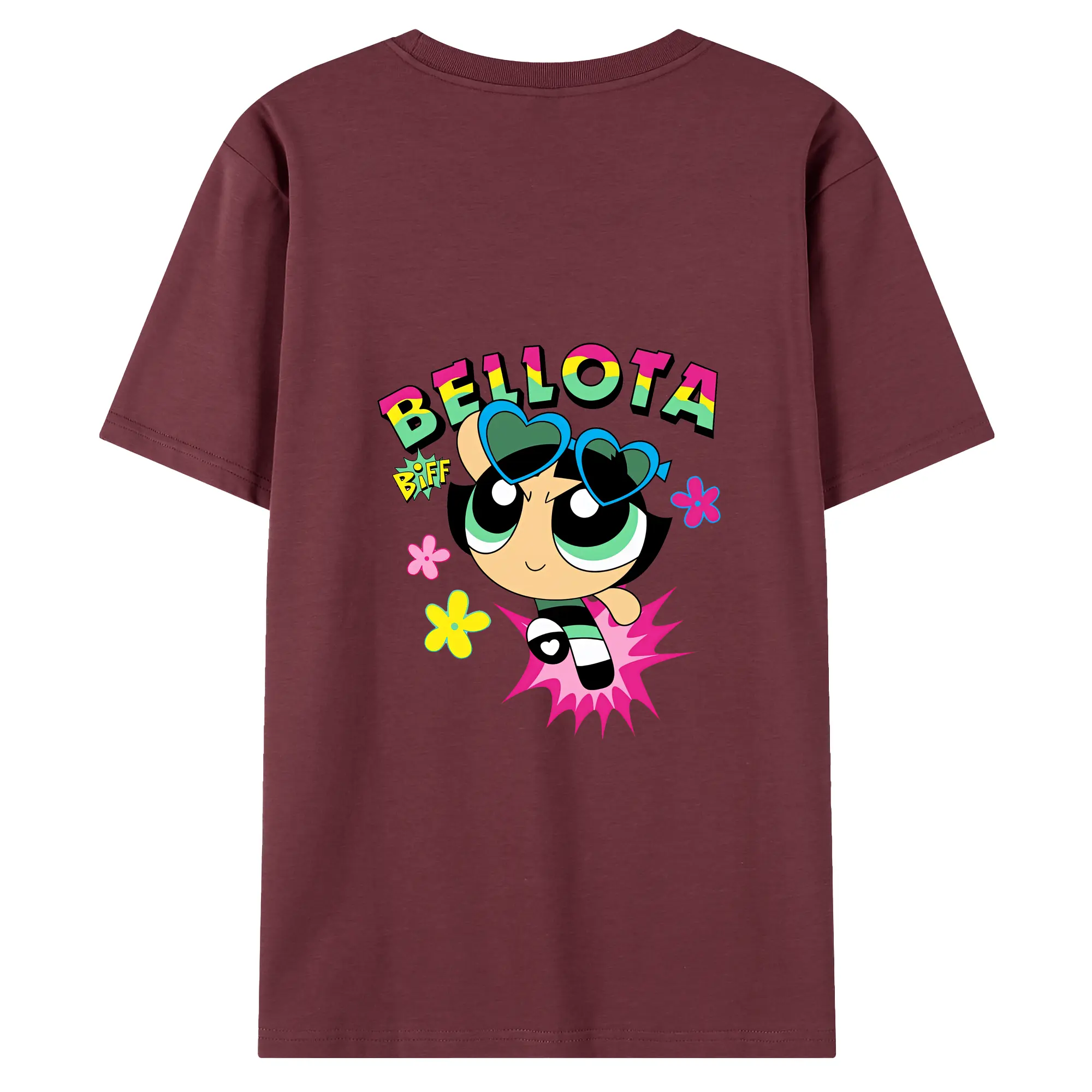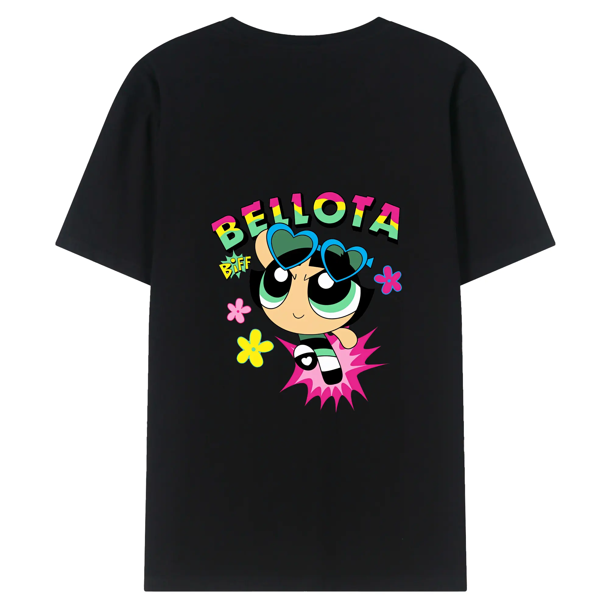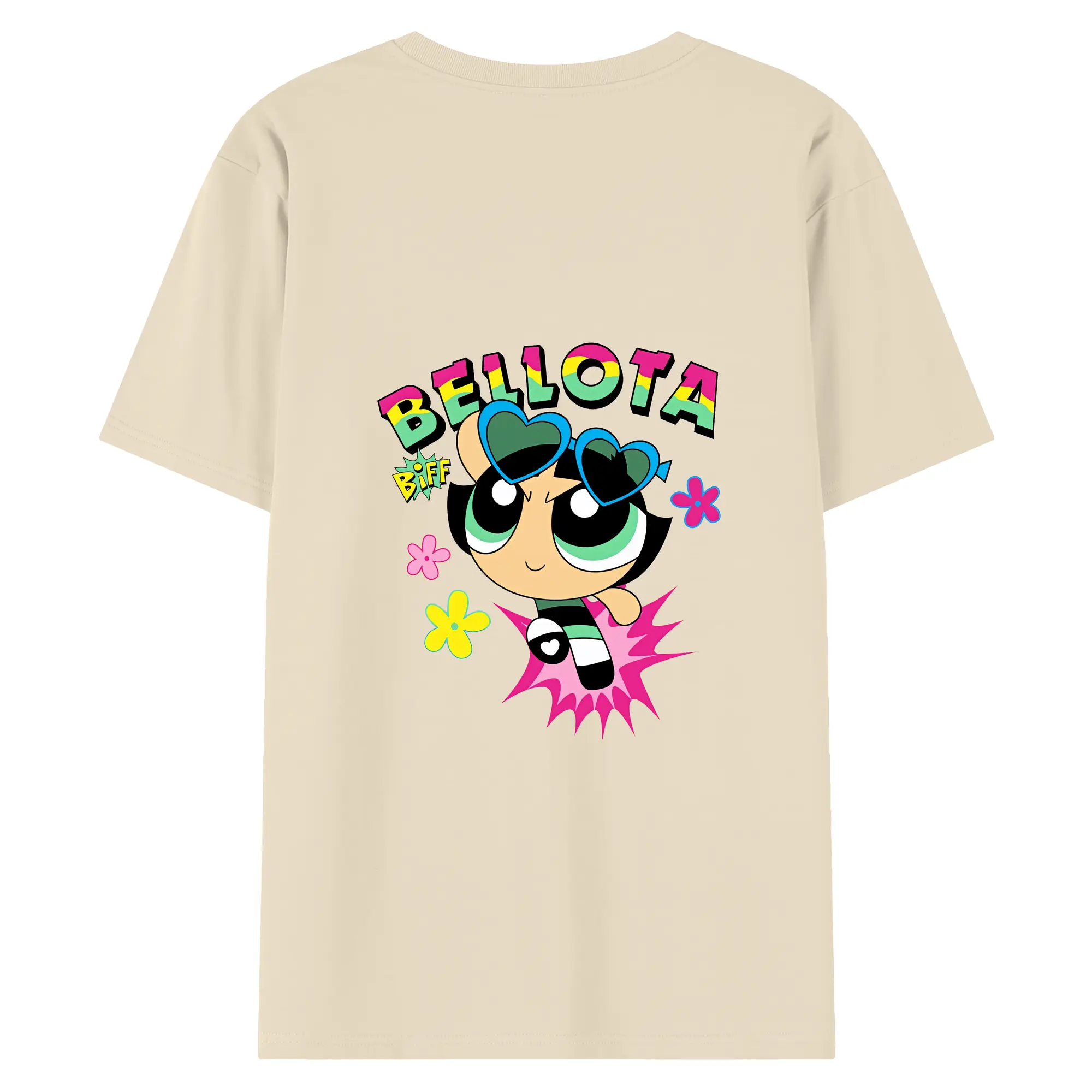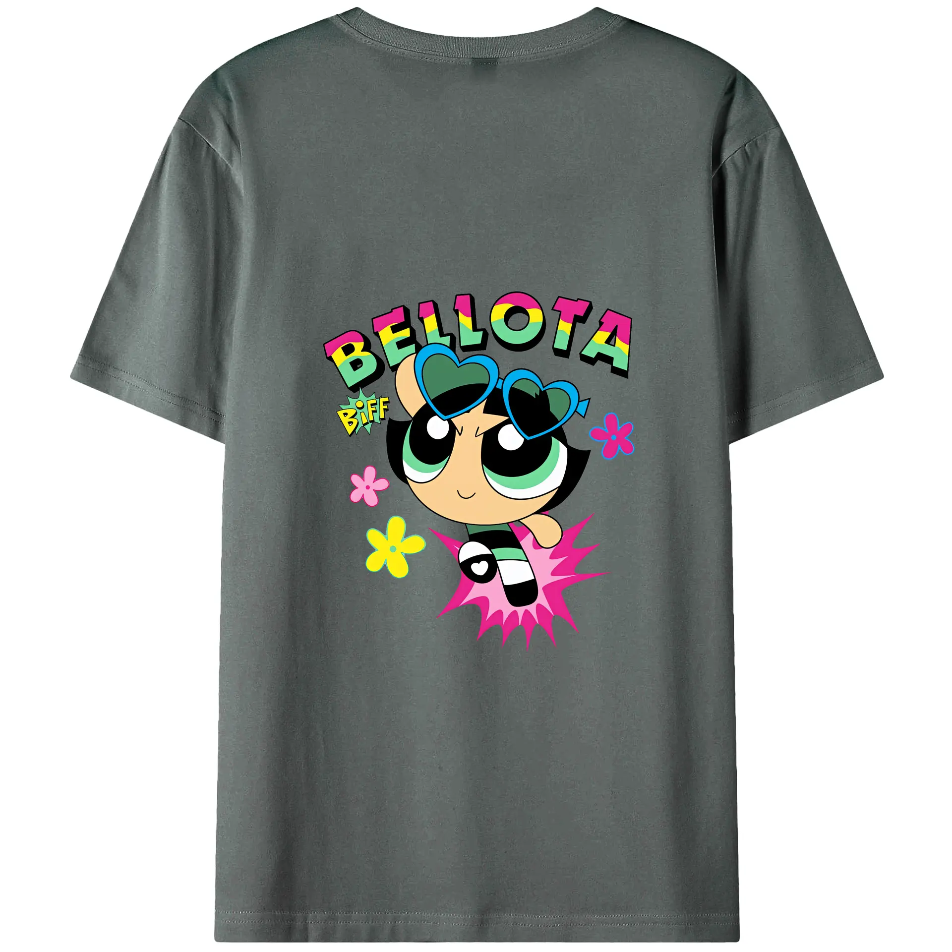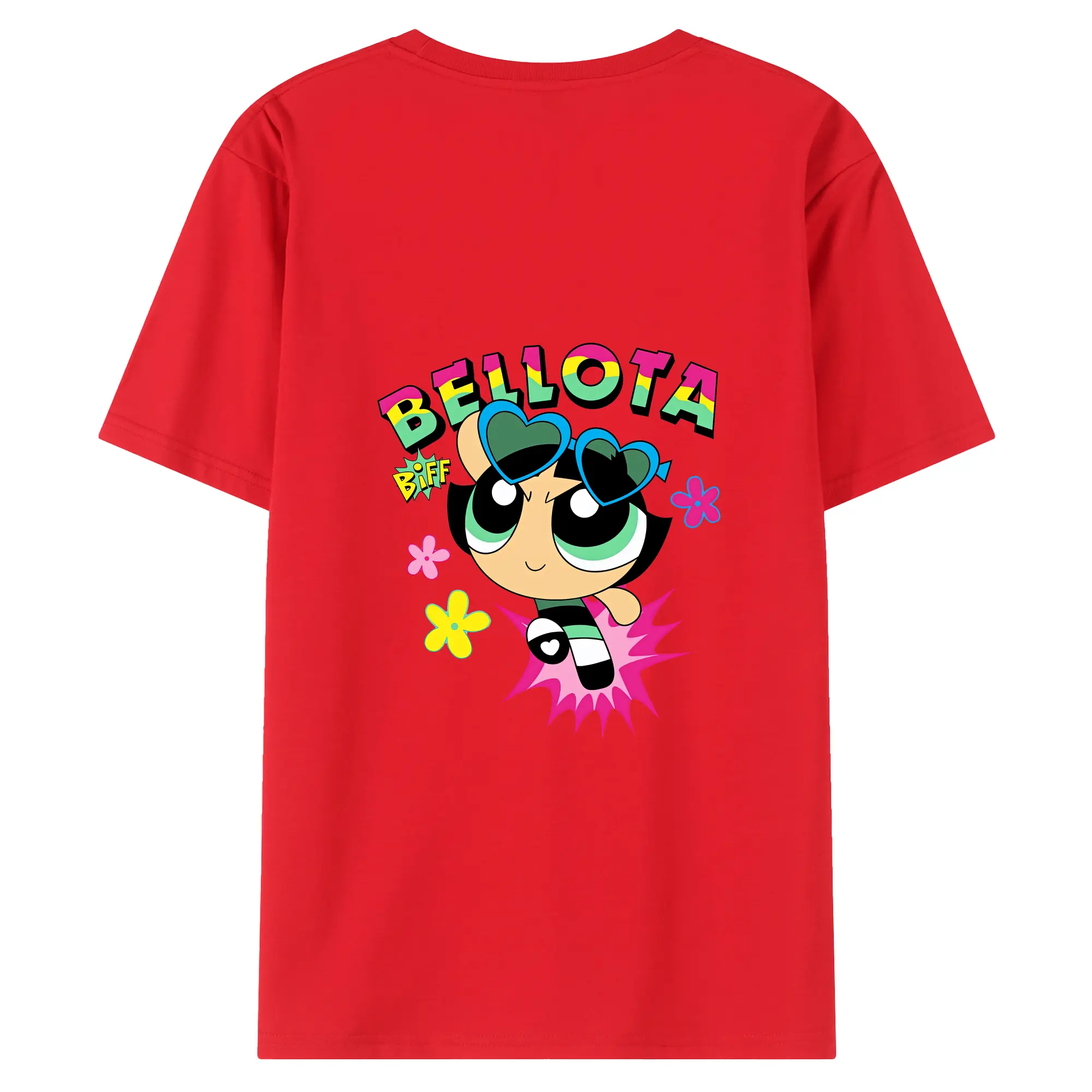 パワパフガールズ グッズ バターカップ - 綿100% 半袖Tシャツ ・ フロントプリント ・ 快適 通気性 ・ 日常使い 散歩 スポーツ用