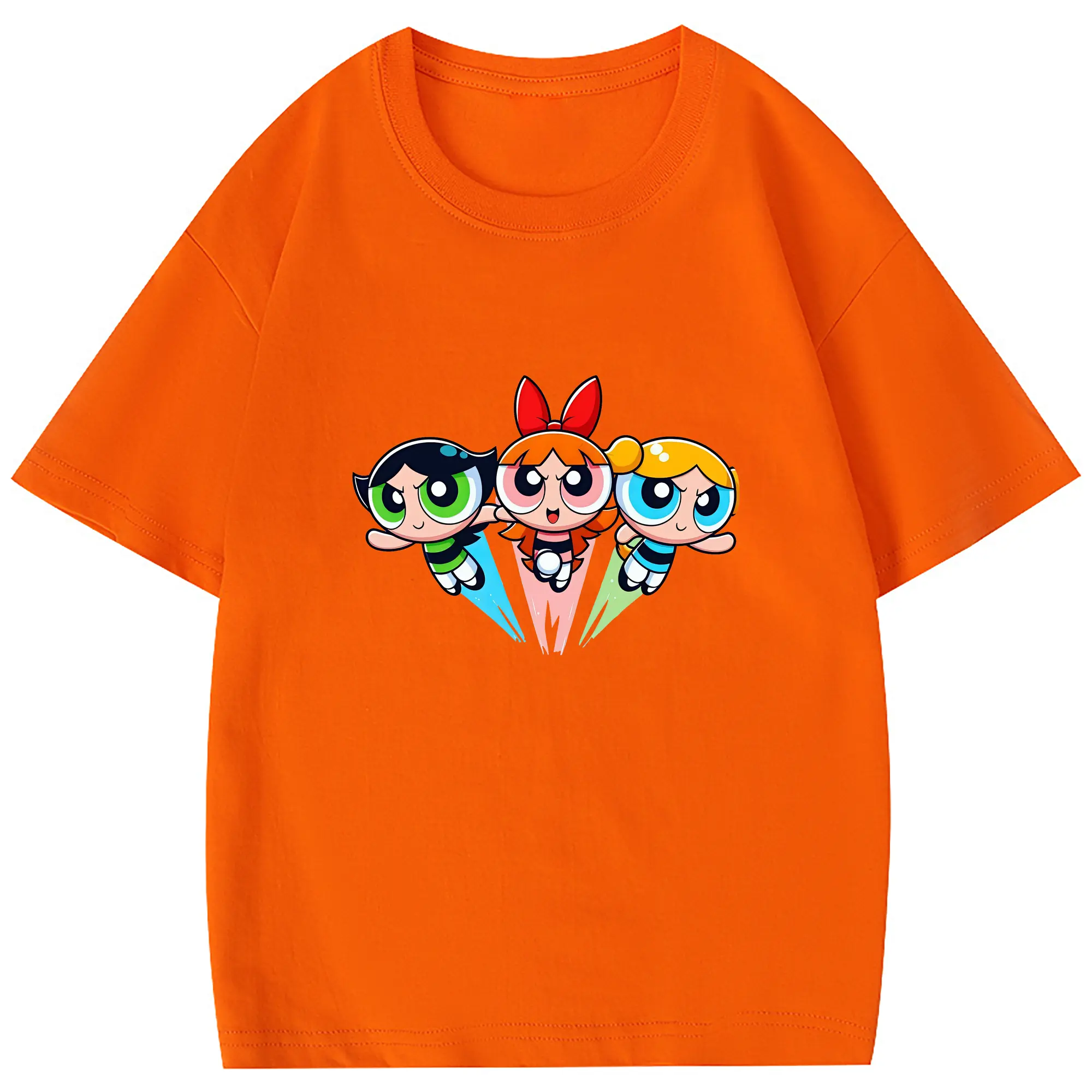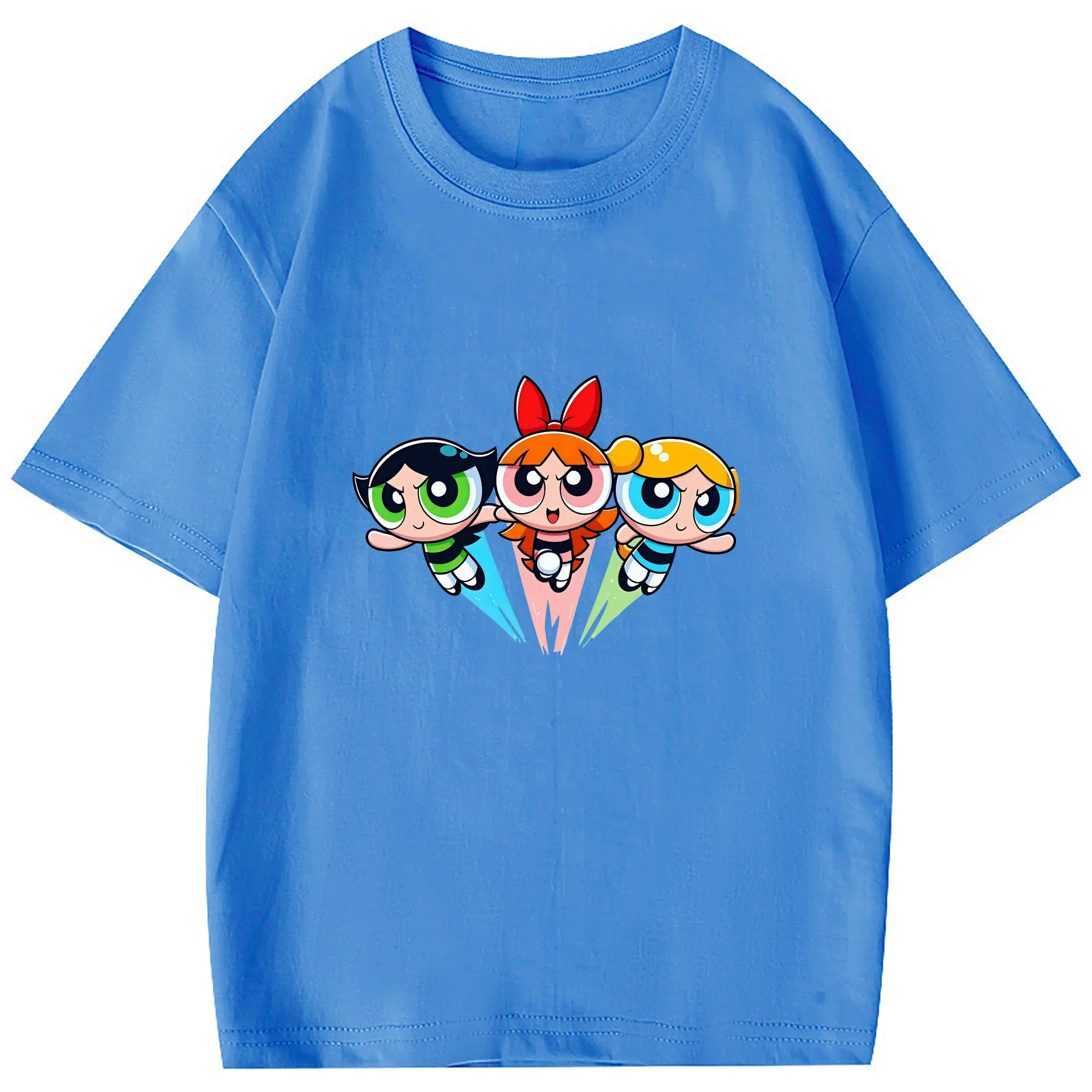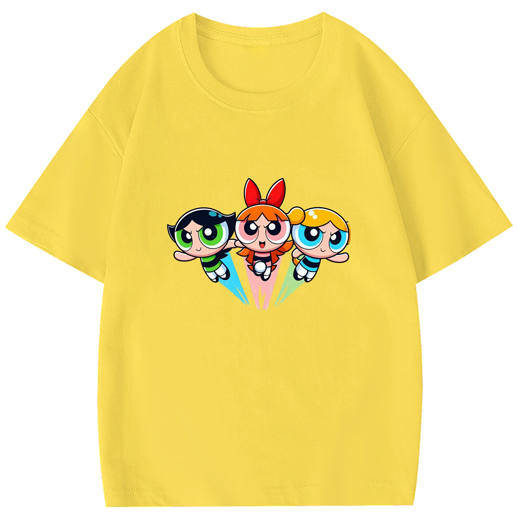 パワパフガールズ グッズ バターカップ - 綿100% 半袖Tシャツ ・ フロントプリント ・ 快適 通気性 ・ 日常使い 散歩 スポーツ用