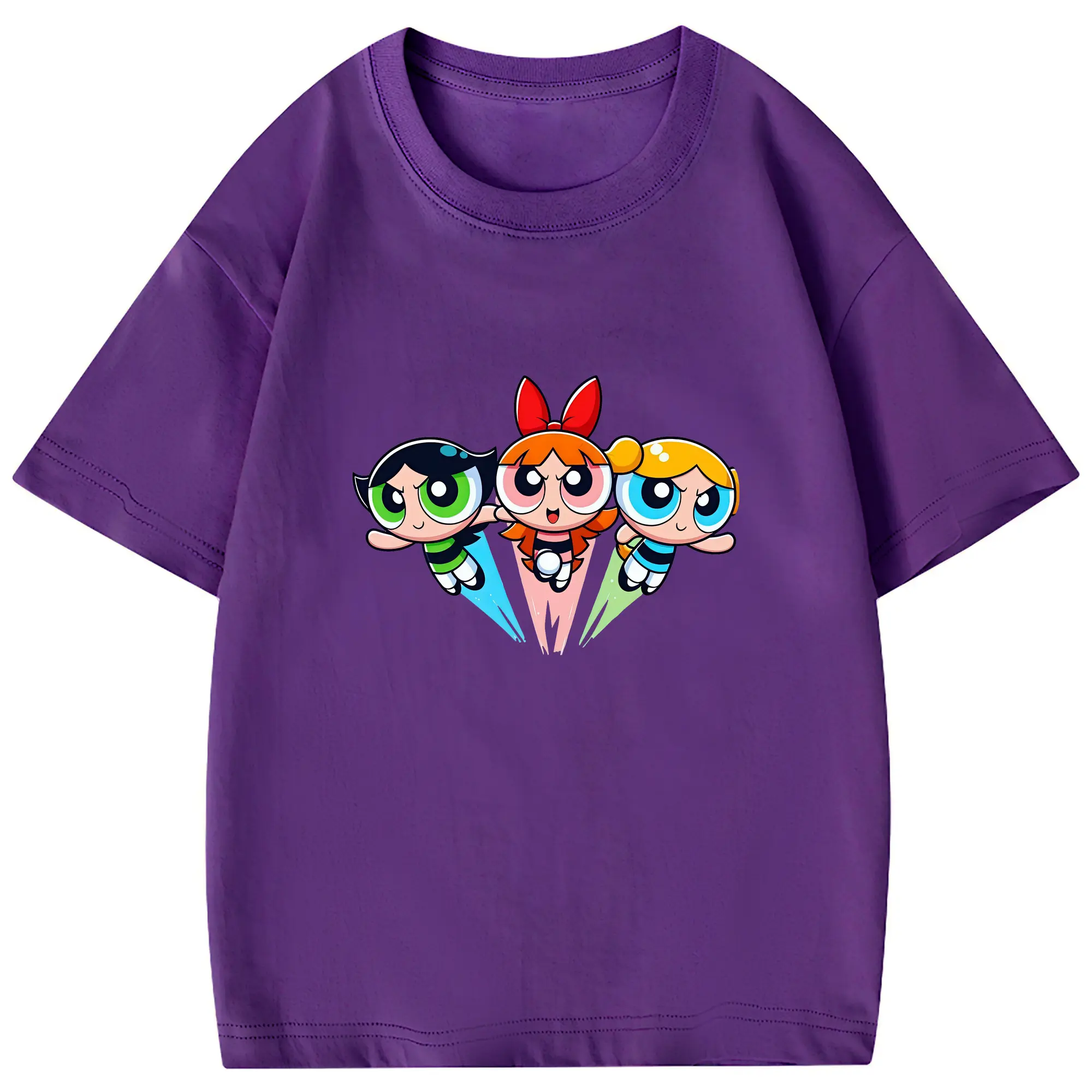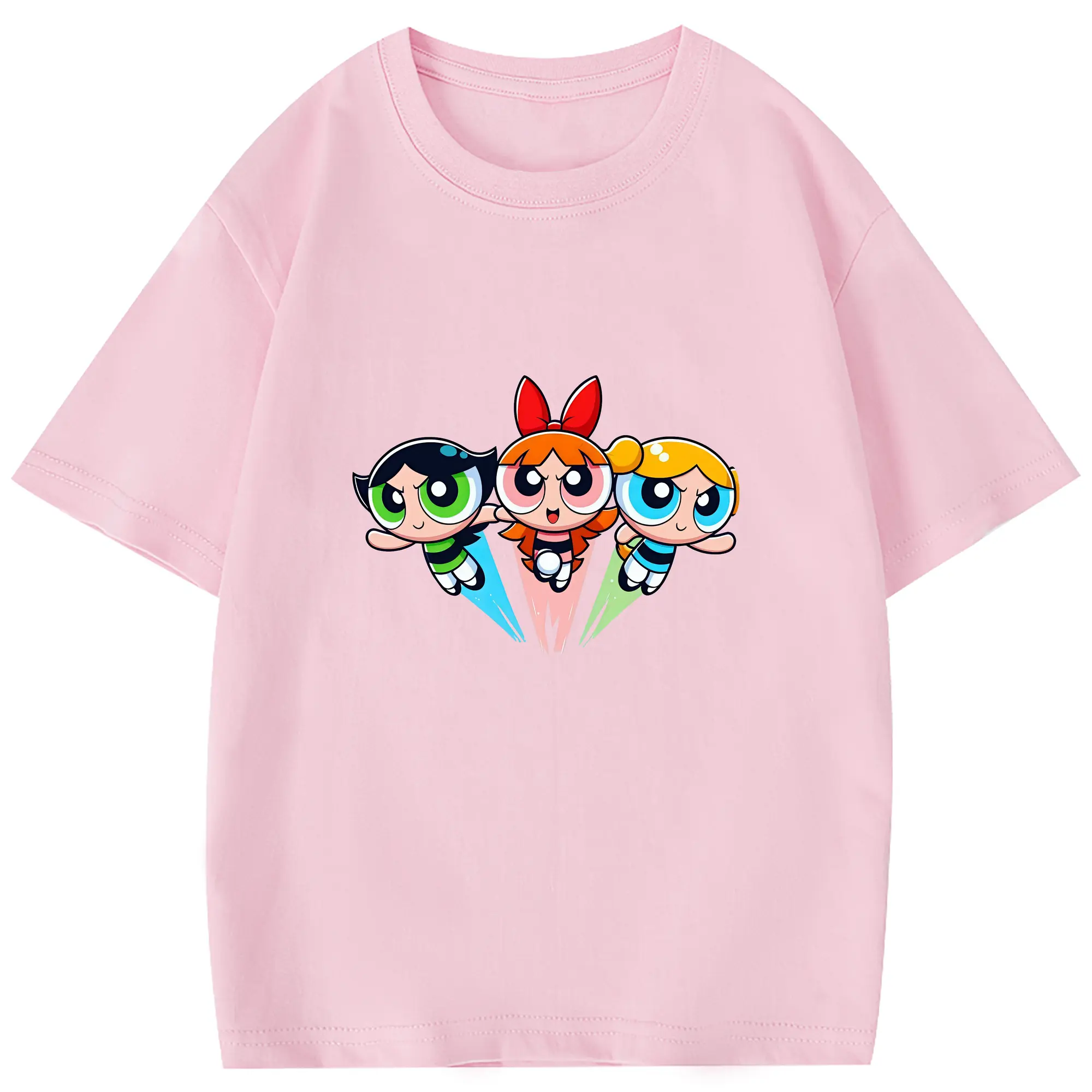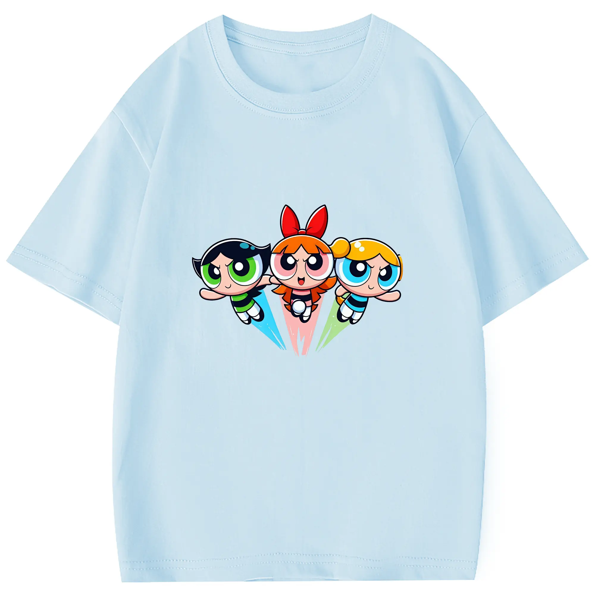 パワパフガールズ グッズ バターカップ - 綿100% 半袖Tシャツ ・ フロントプリント ・ 快適 通気性 ・ 日常使い 散歩 スポーツ用