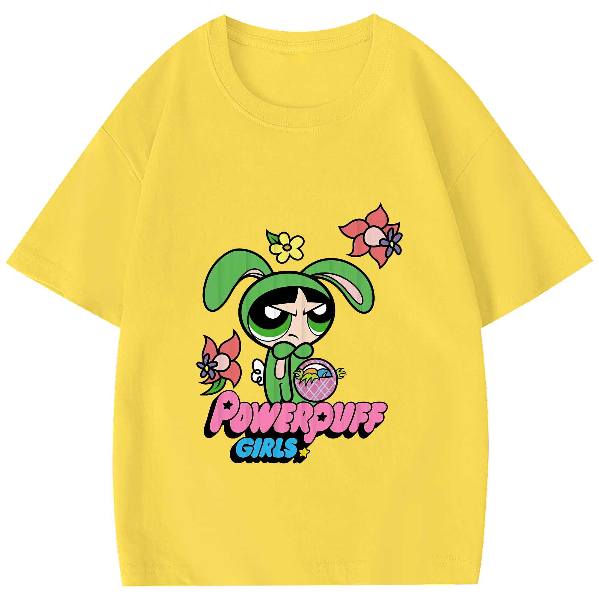 パワパフガールズ グッズ バターカップ - 綿100% 半袖Tシャツ ・ フロントプリント ・ 快適 通気性 ・ 日常使い 散歩 スポーツ用