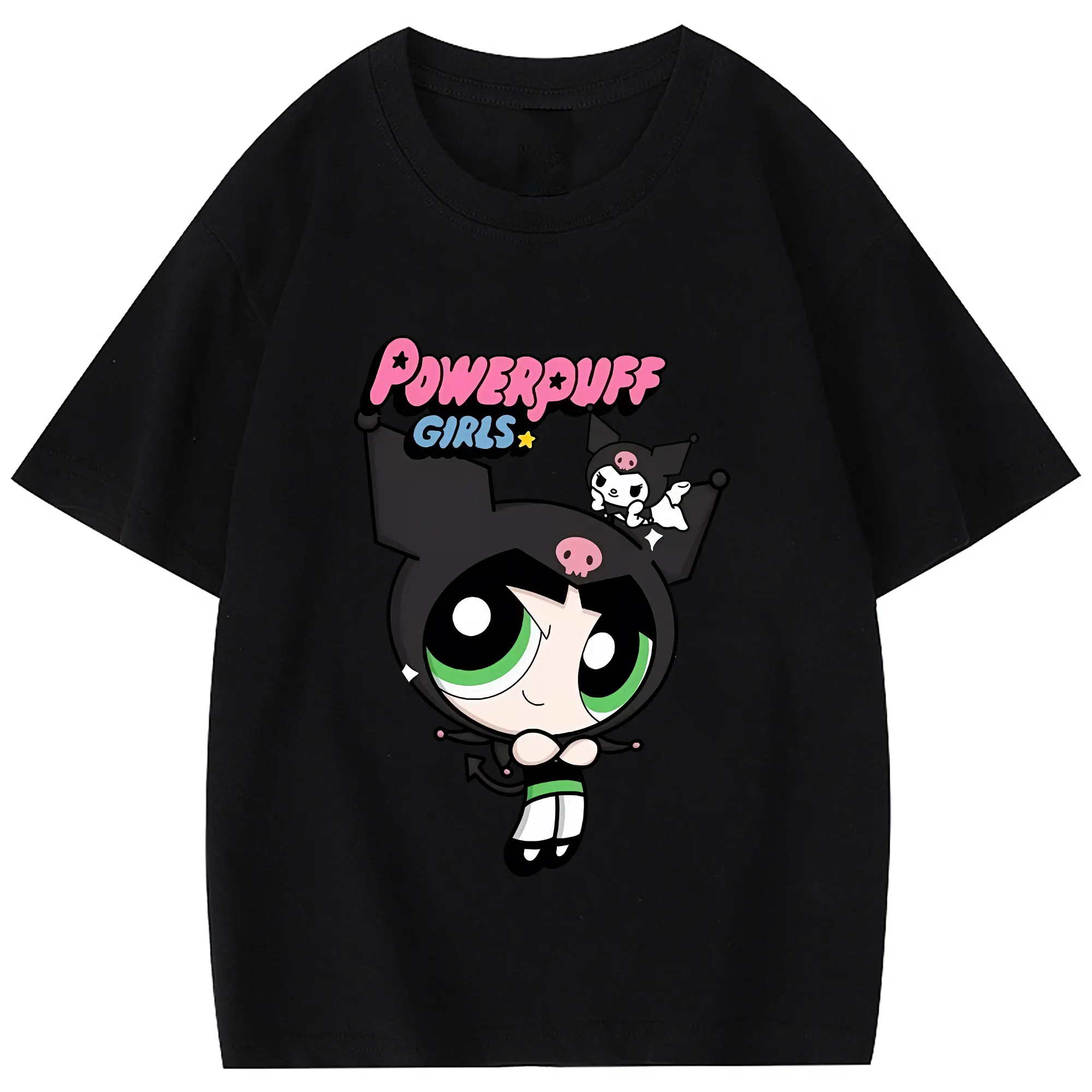 パワパフガールズ グッズ バターカップ - 綿100% 半袖Tシャツ ・ バックプリント ・ 快適 通気性 ・ 日常使い 散歩 スポーツ用