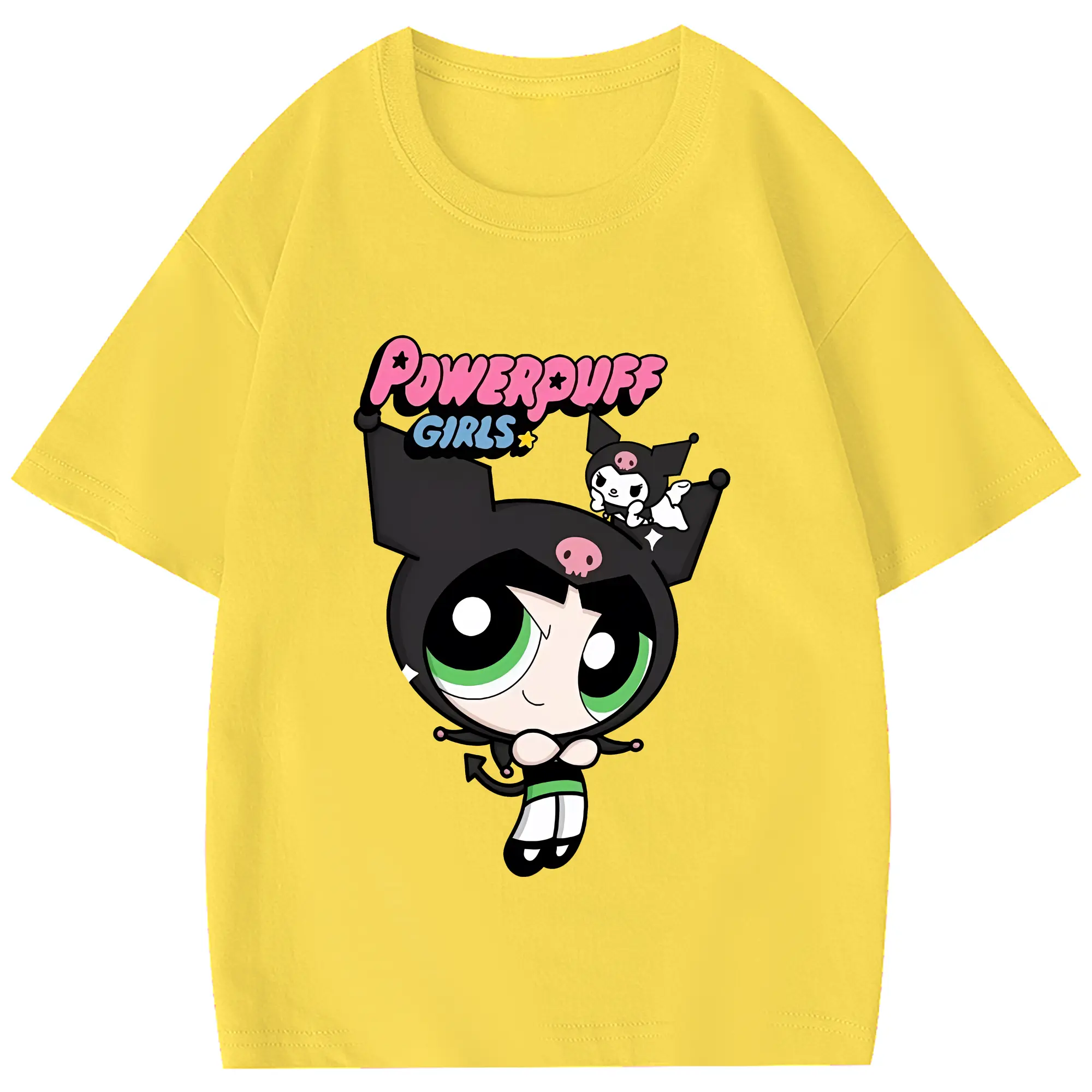 パワパフガールズ グッズ バターカップ - 綿100% 半袖Tシャツ ・ フロントプリント ・ 快適 通気性 ・ 日常使い 散歩 スポーツ用