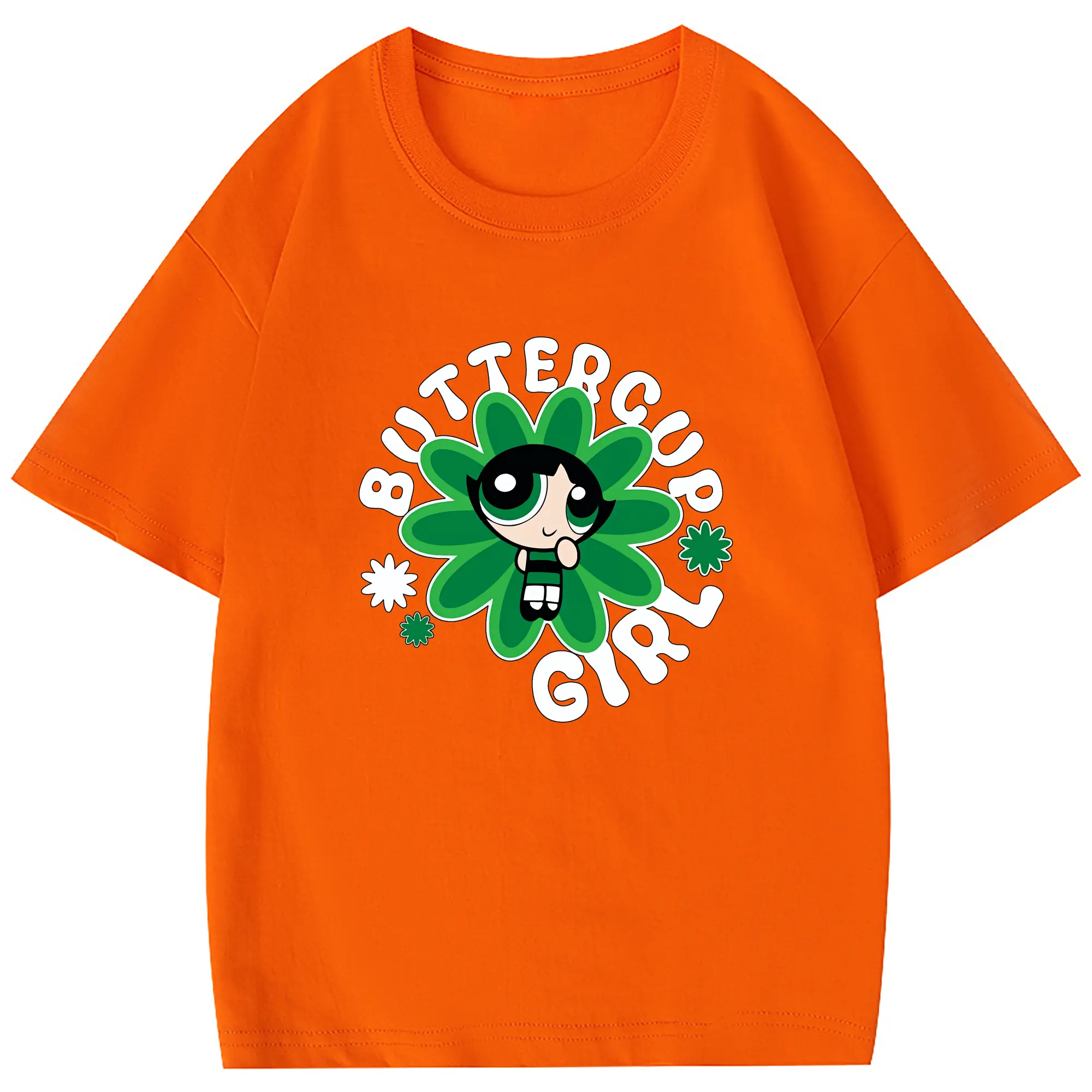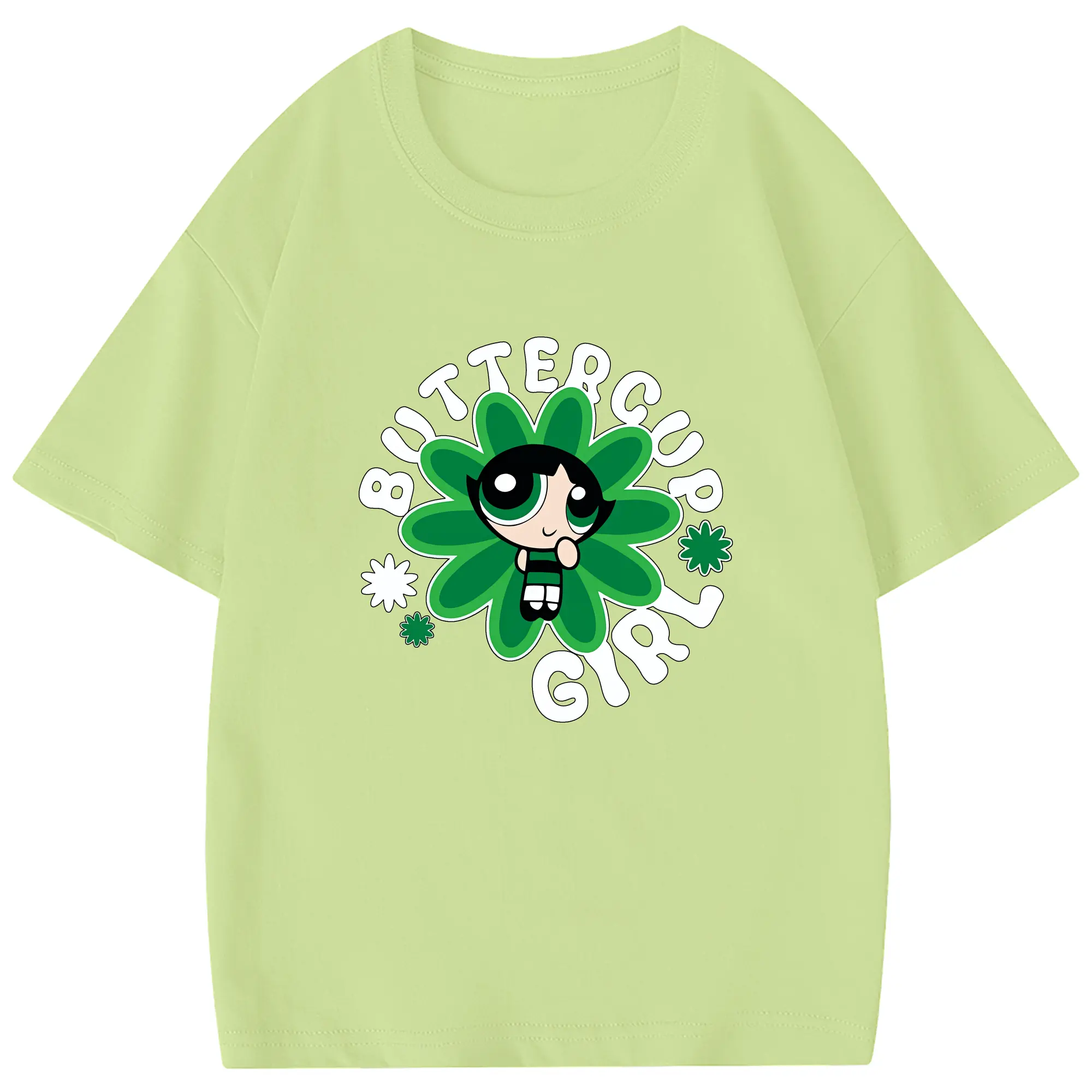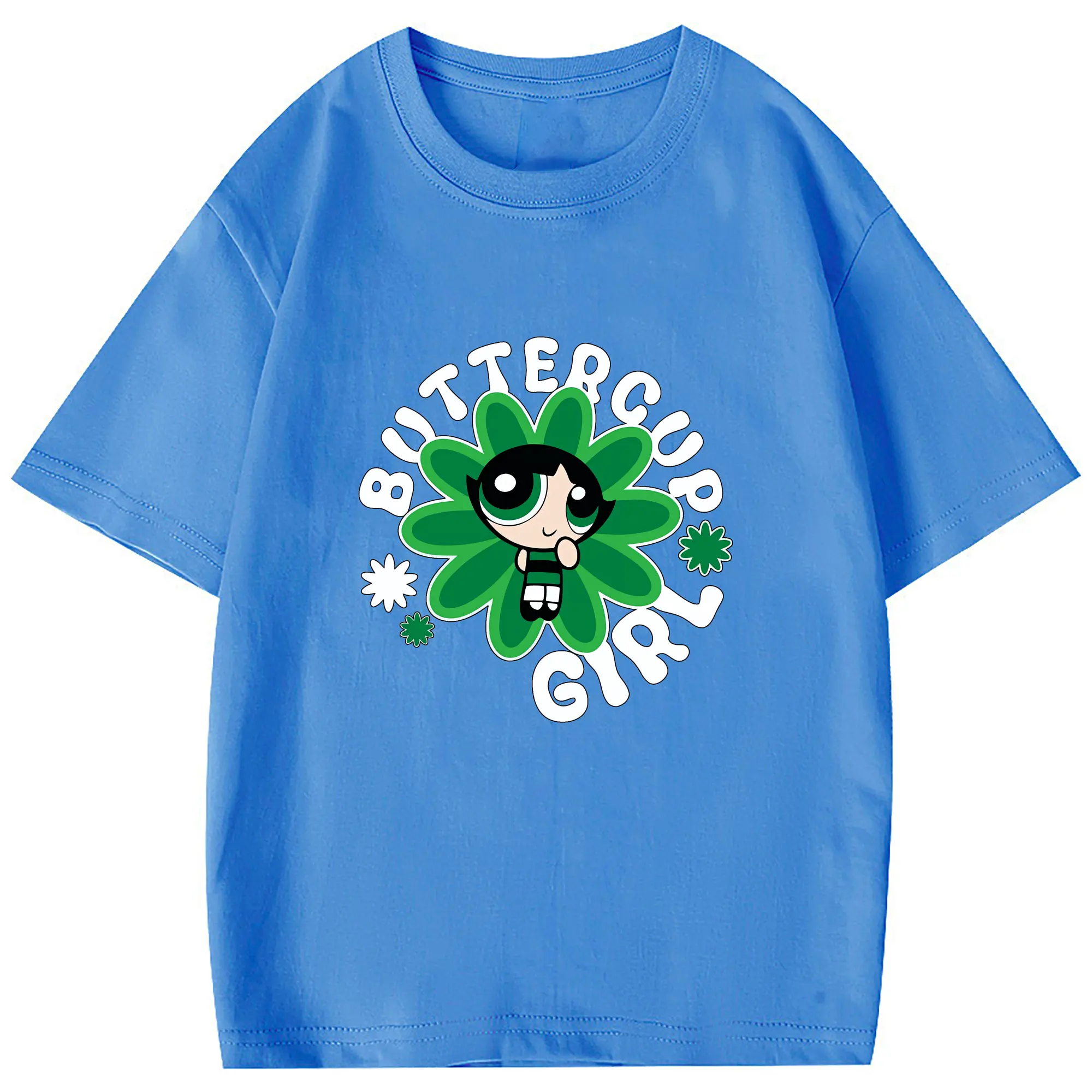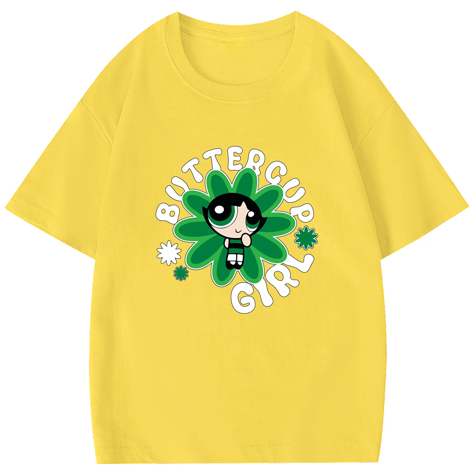パワパフガールズ グッズ バターカップ - 綿100% 半袖Tシャツ ・ フロントプリント ・ 快適 通気性 ・ 日常使い 散歩 スポーツ用