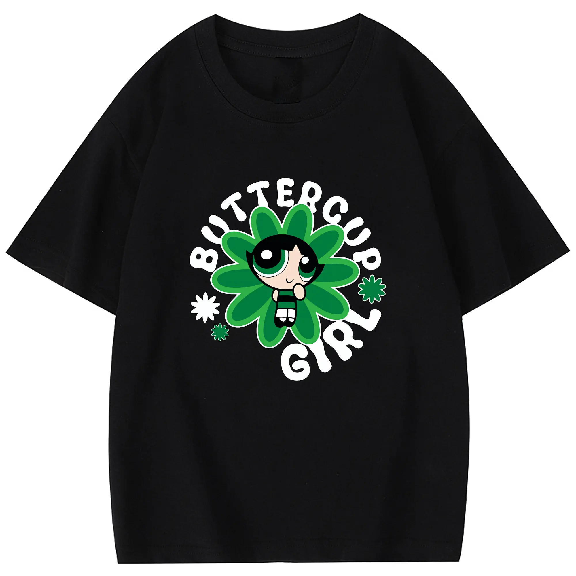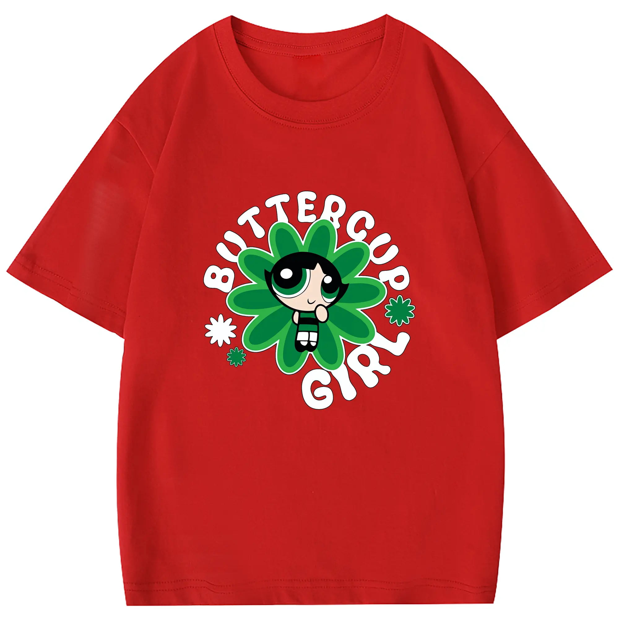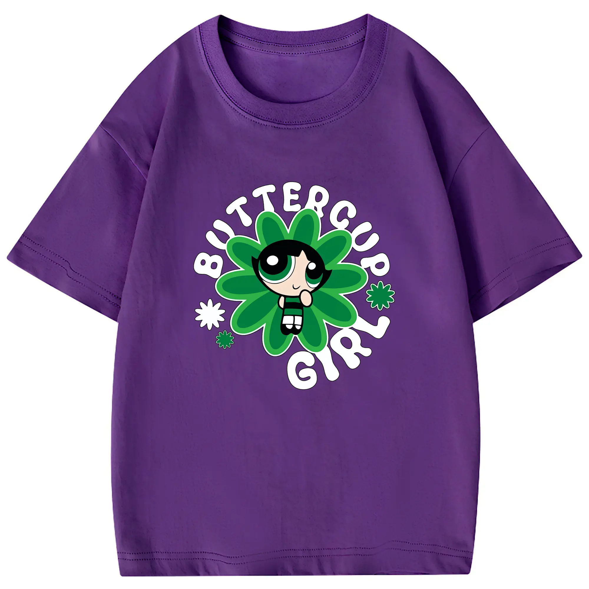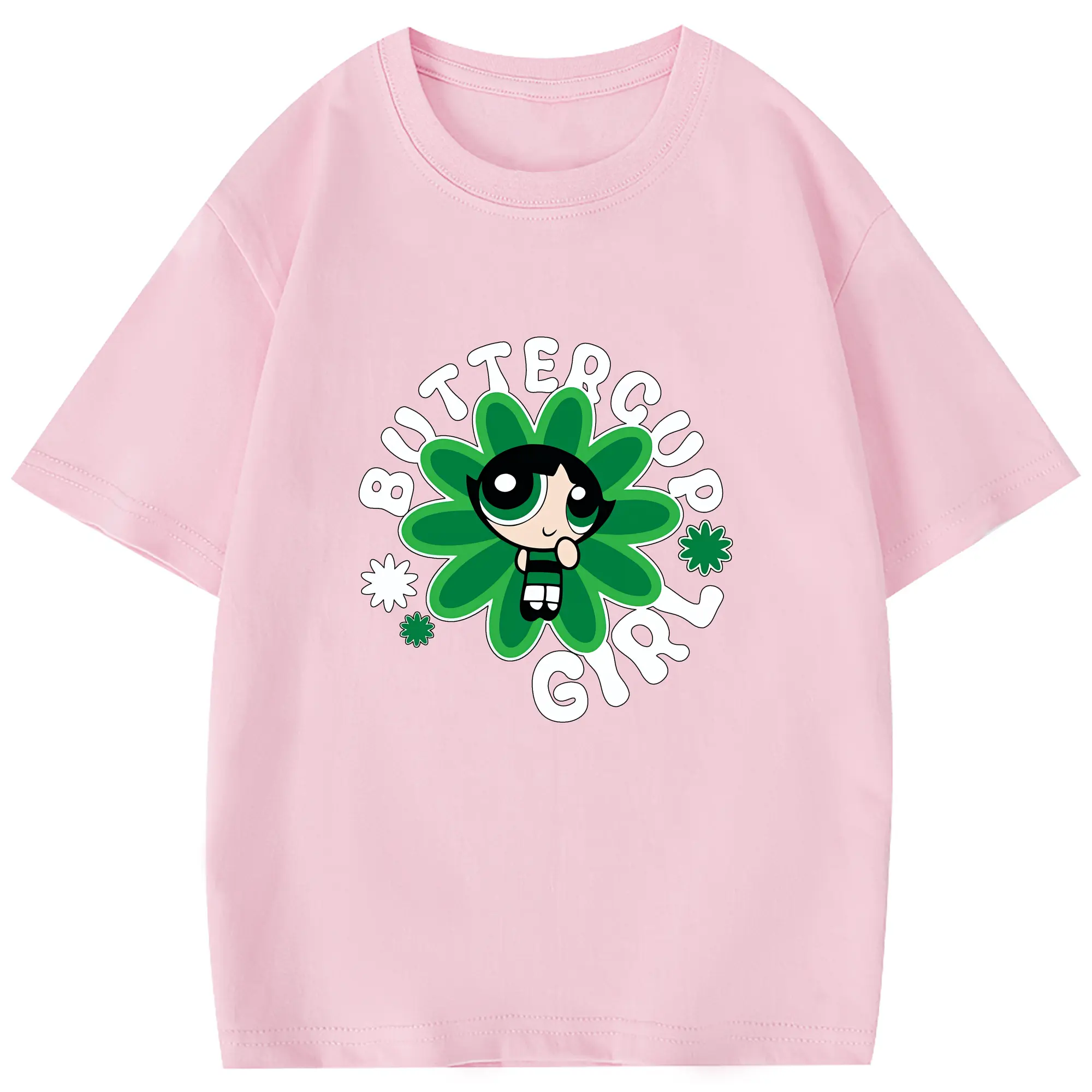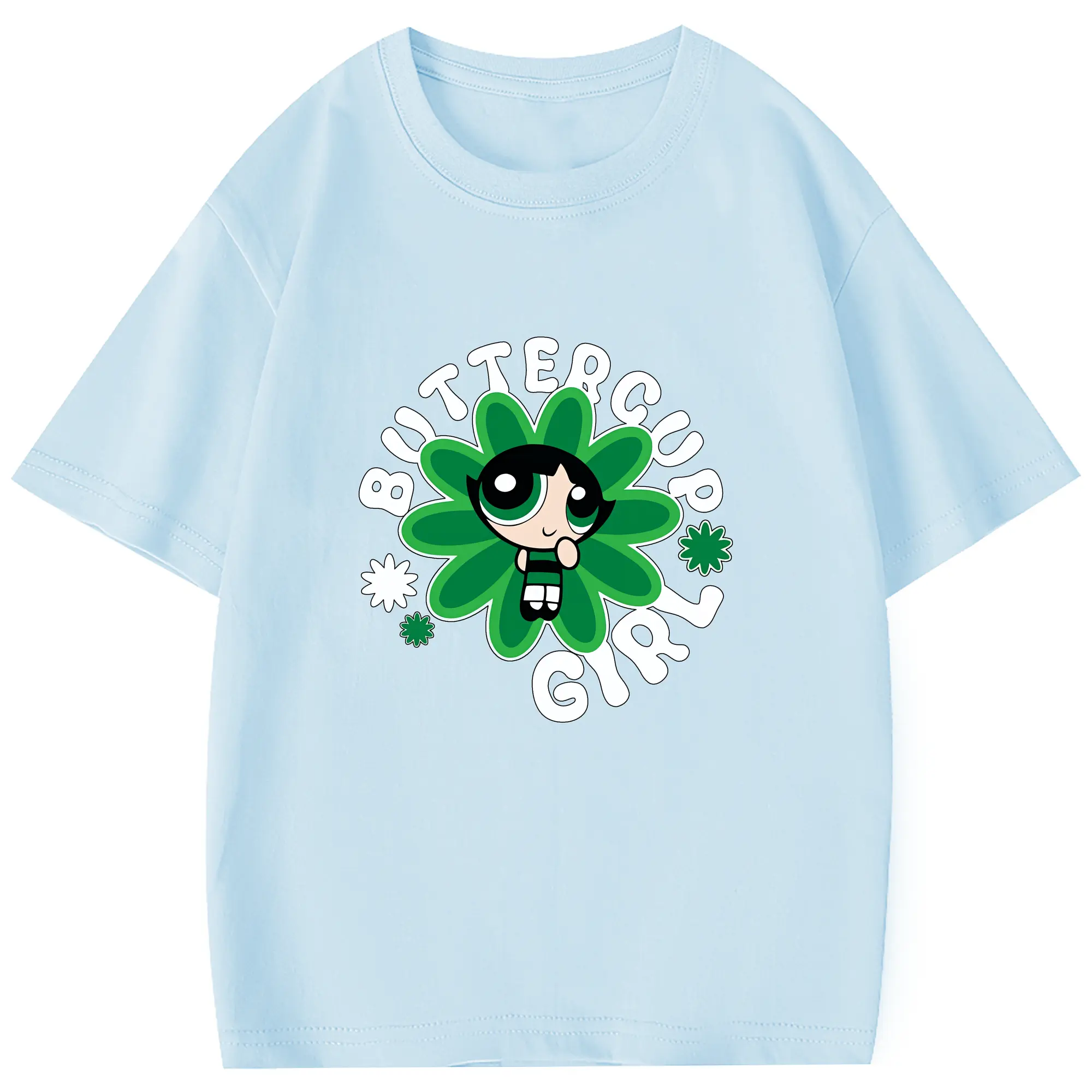 パワパフガールズ グッズ バターカップ - 綿100% 半袖Tシャツ ・ フロントプリント ・ 快適 通気性 ・ 日常使い 散歩 スポーツ用
