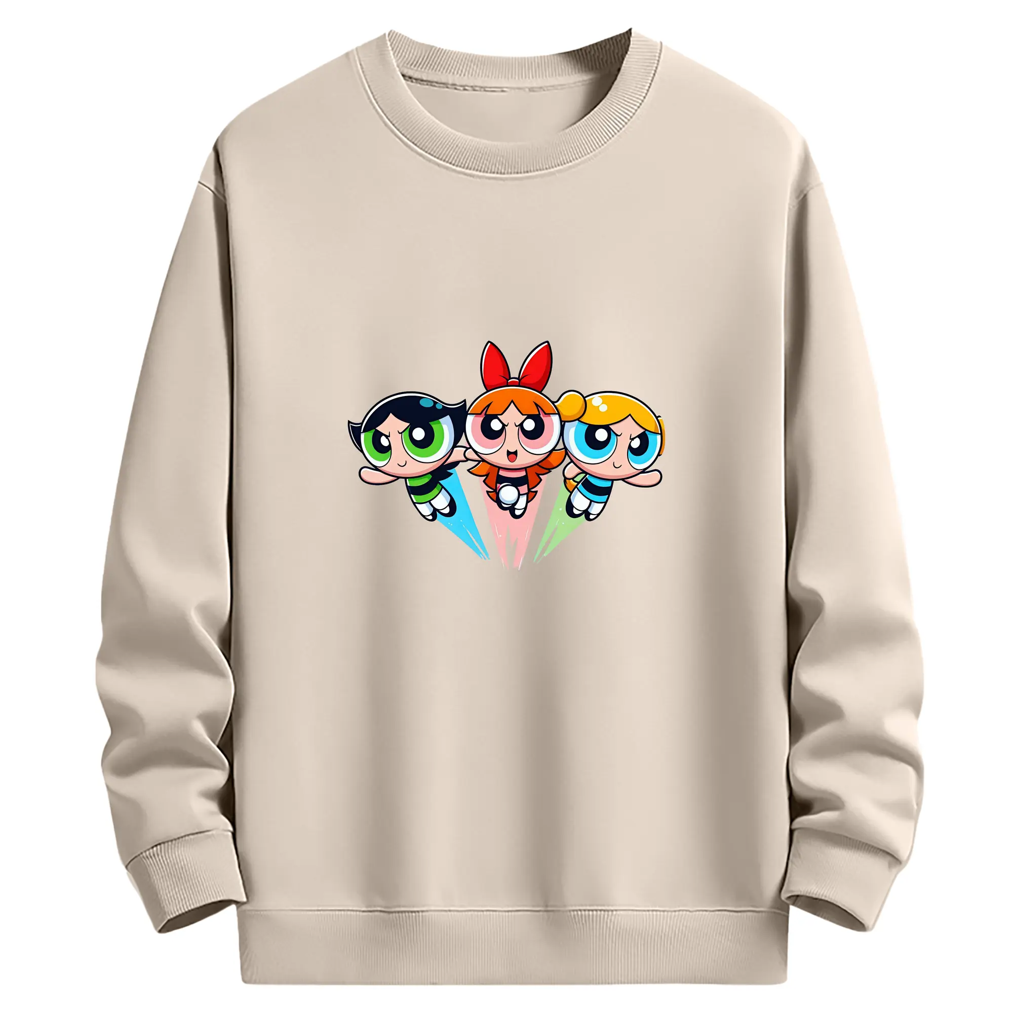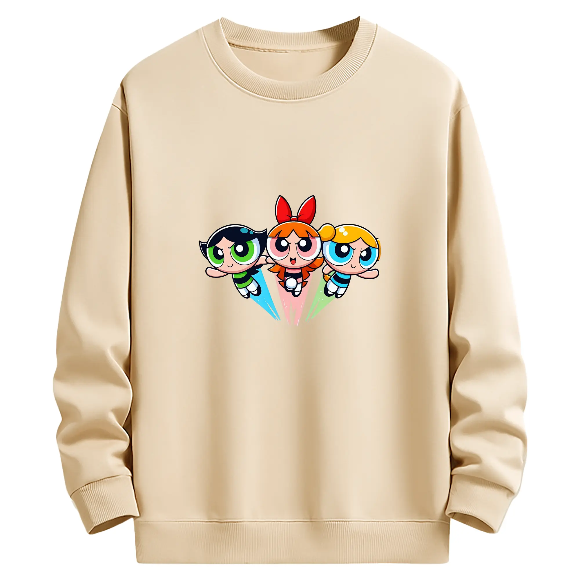 パワパフガールズ グッズ バターカップ - 薄手 クルーネック スウェット 裏毛260g · ポリエステル 春秋向け カジュアル 男女兼用 · トレーナー デイリー スポーツ 散歩に最適