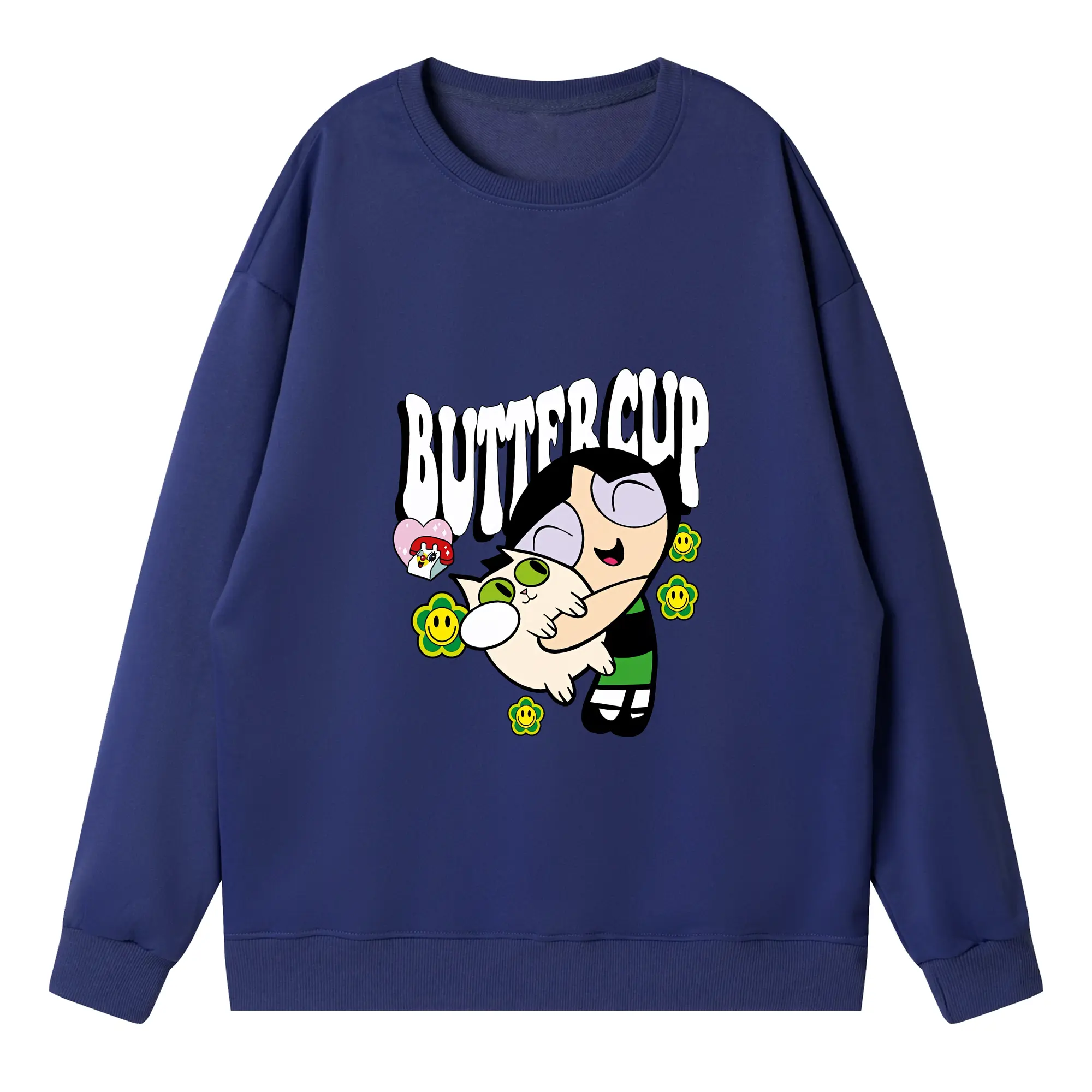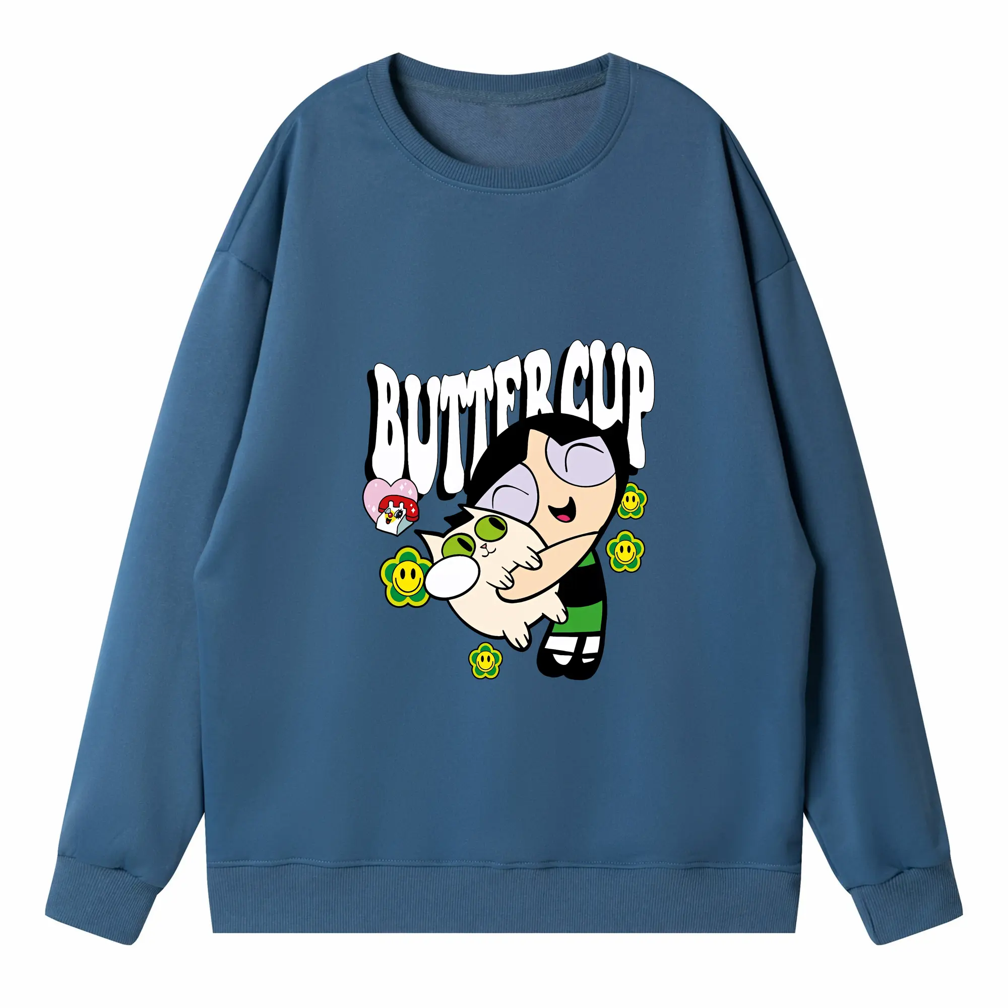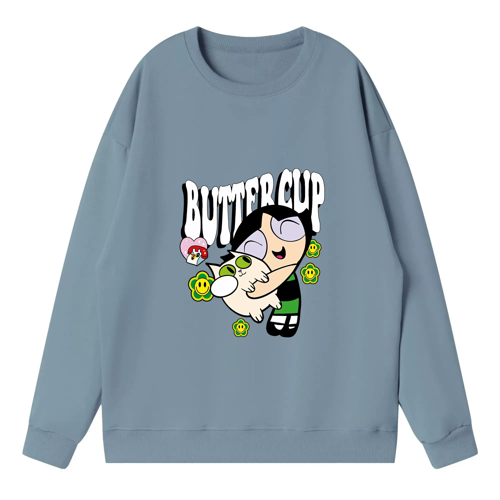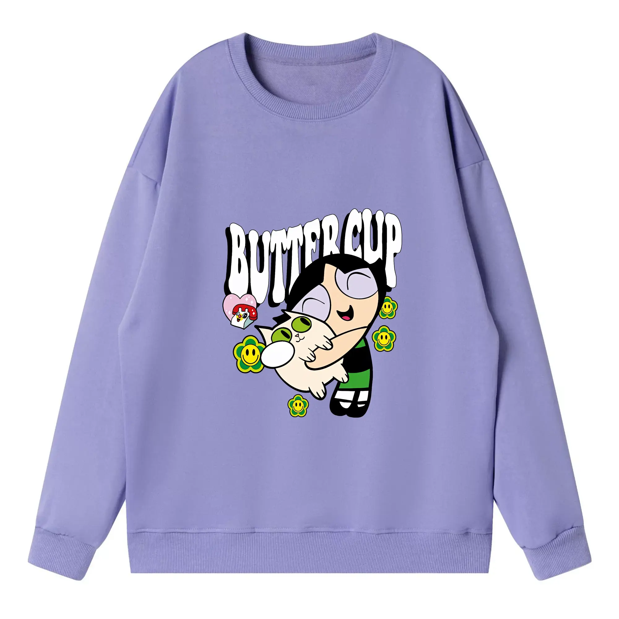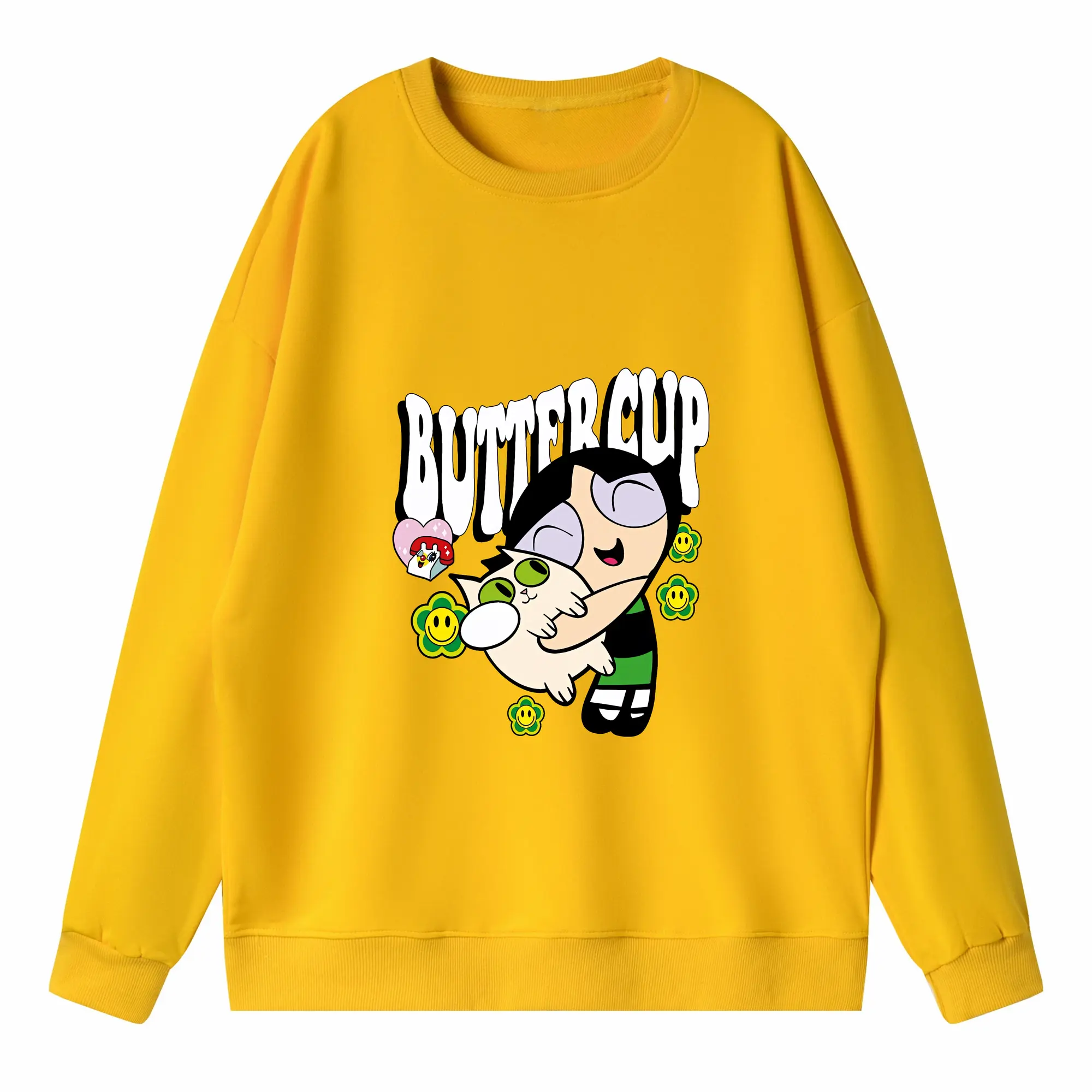 パワパフガールズ グッズ バターカップ - 高品質 クルーネック スウェット ・ コットン59% ポリエステル41% ・ ユニセックス 長袖 トレーナー ・ カジュアル デイリー スポーツ 散歩用