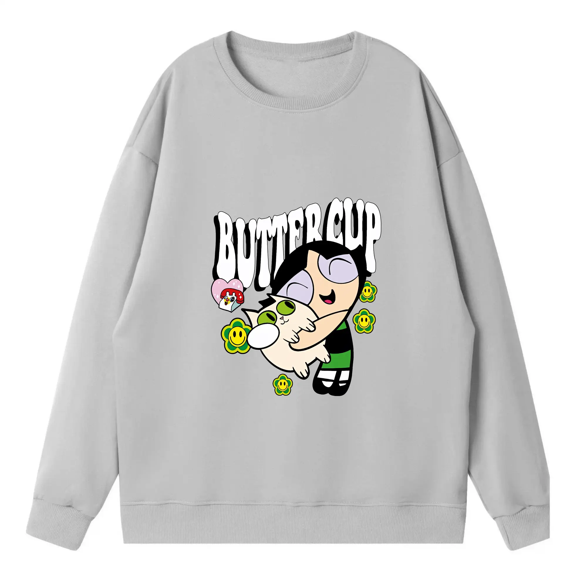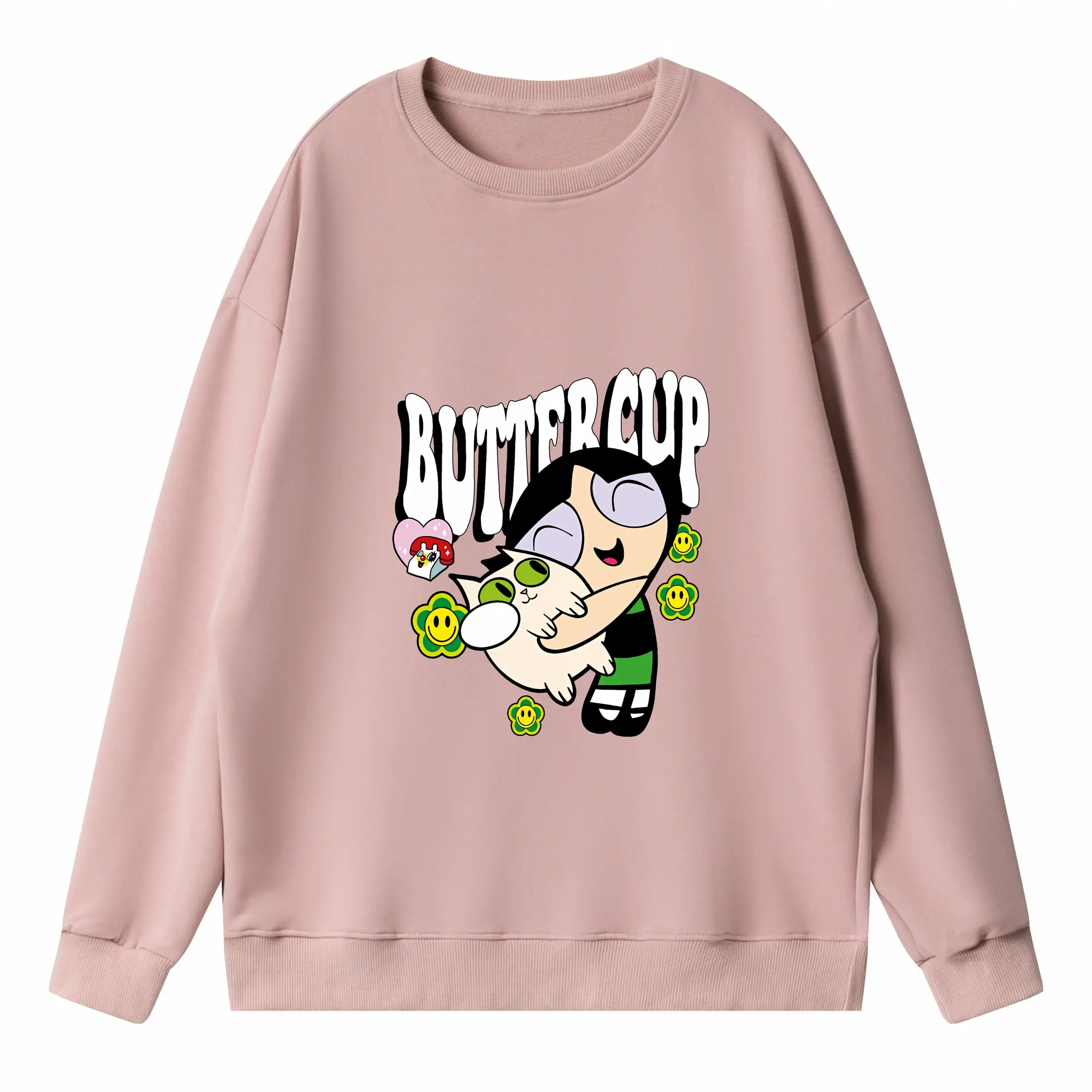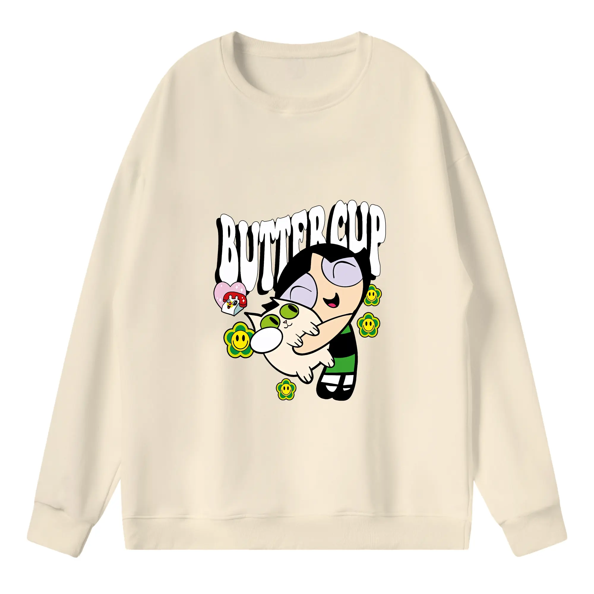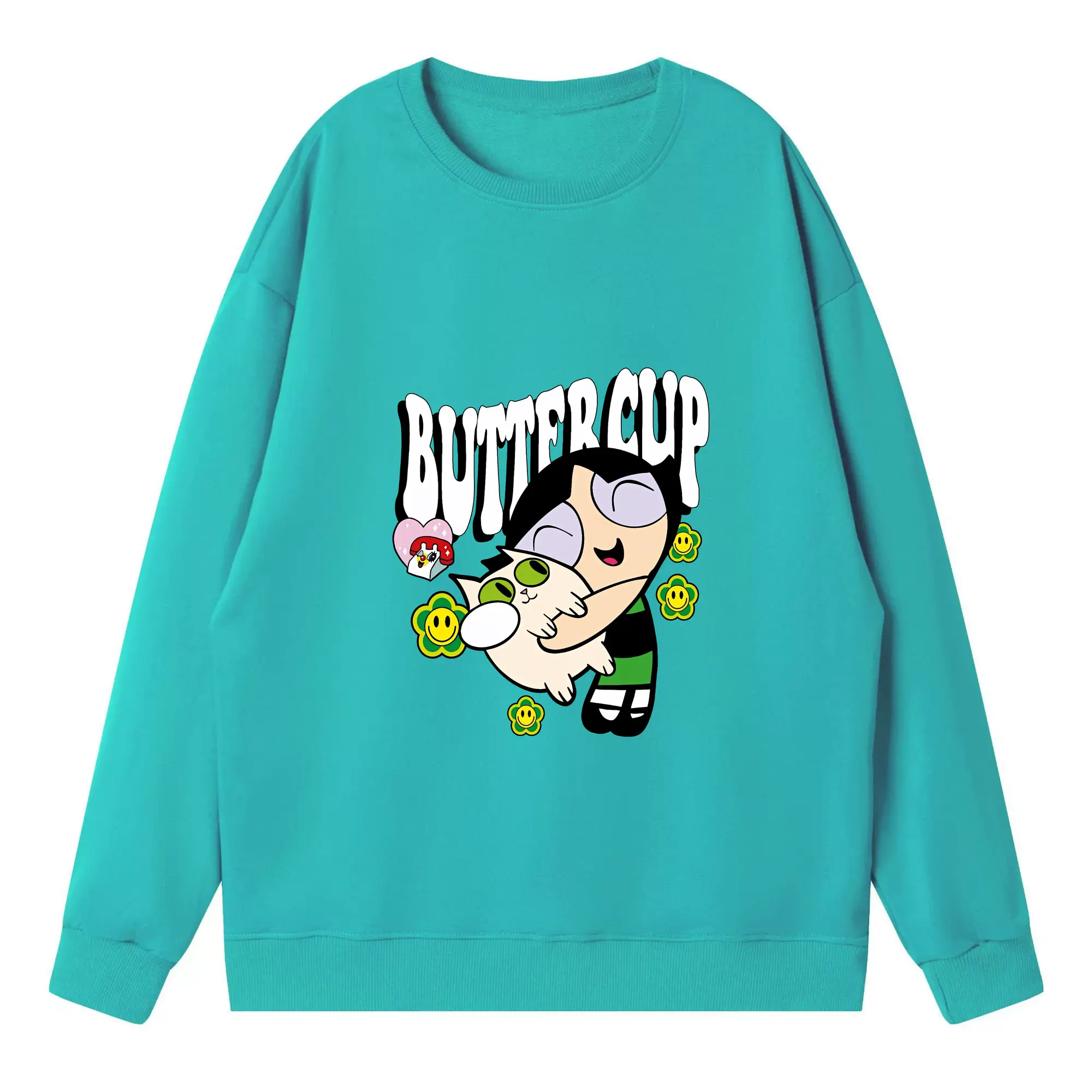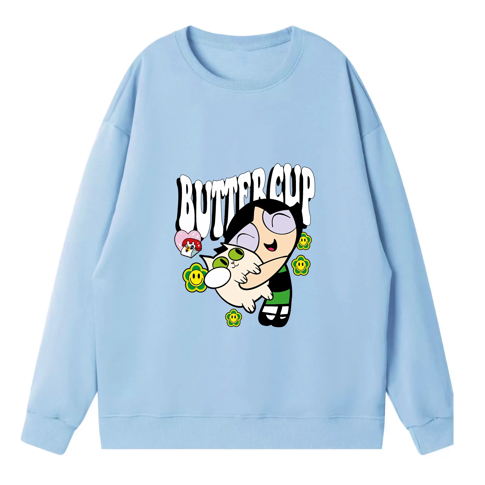 パワパフガールズ グッズ バターカップ - 高品質 クルーネック スウェット ・ コットン59% ポリエステル41% ・ ユニセックス 長袖 トレーナー ・ カジュアル デイリー スポーツ 散歩用