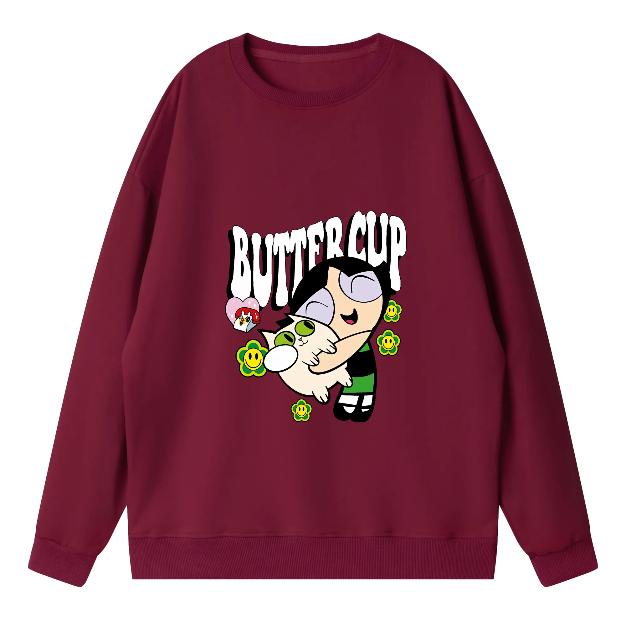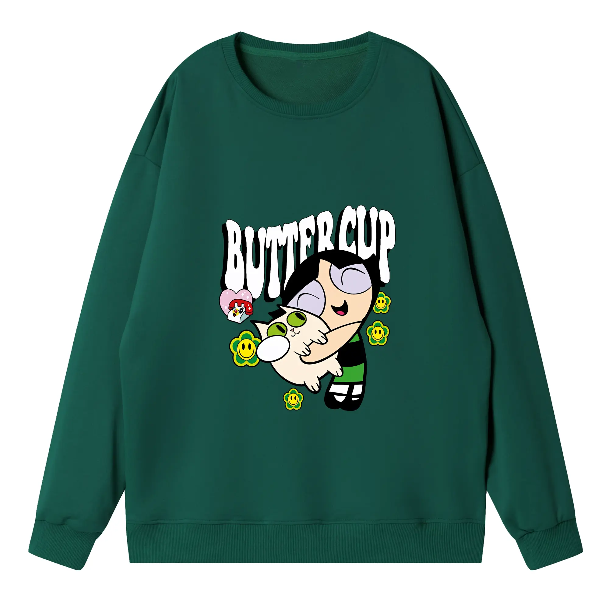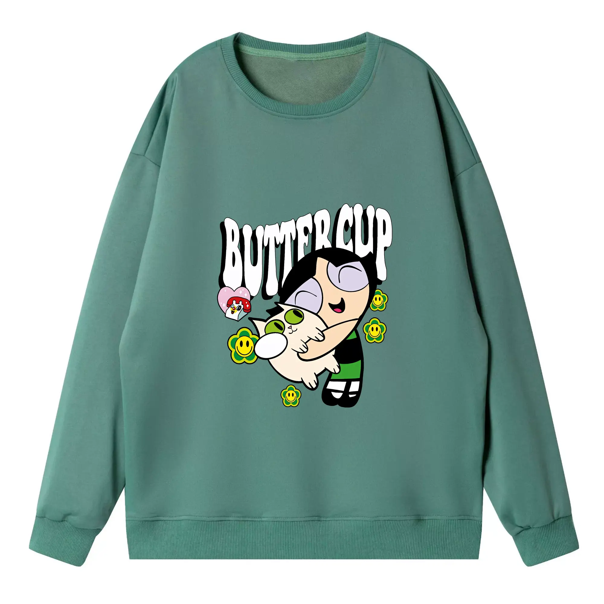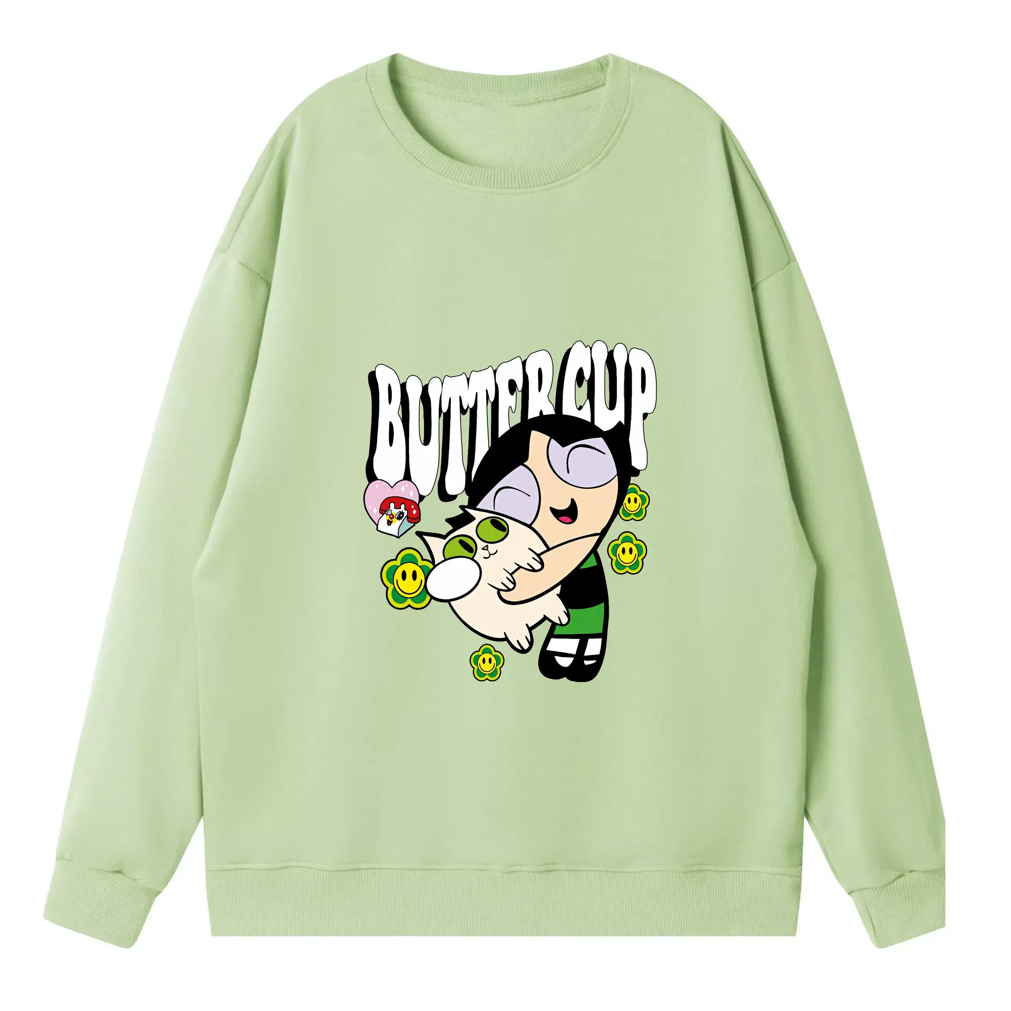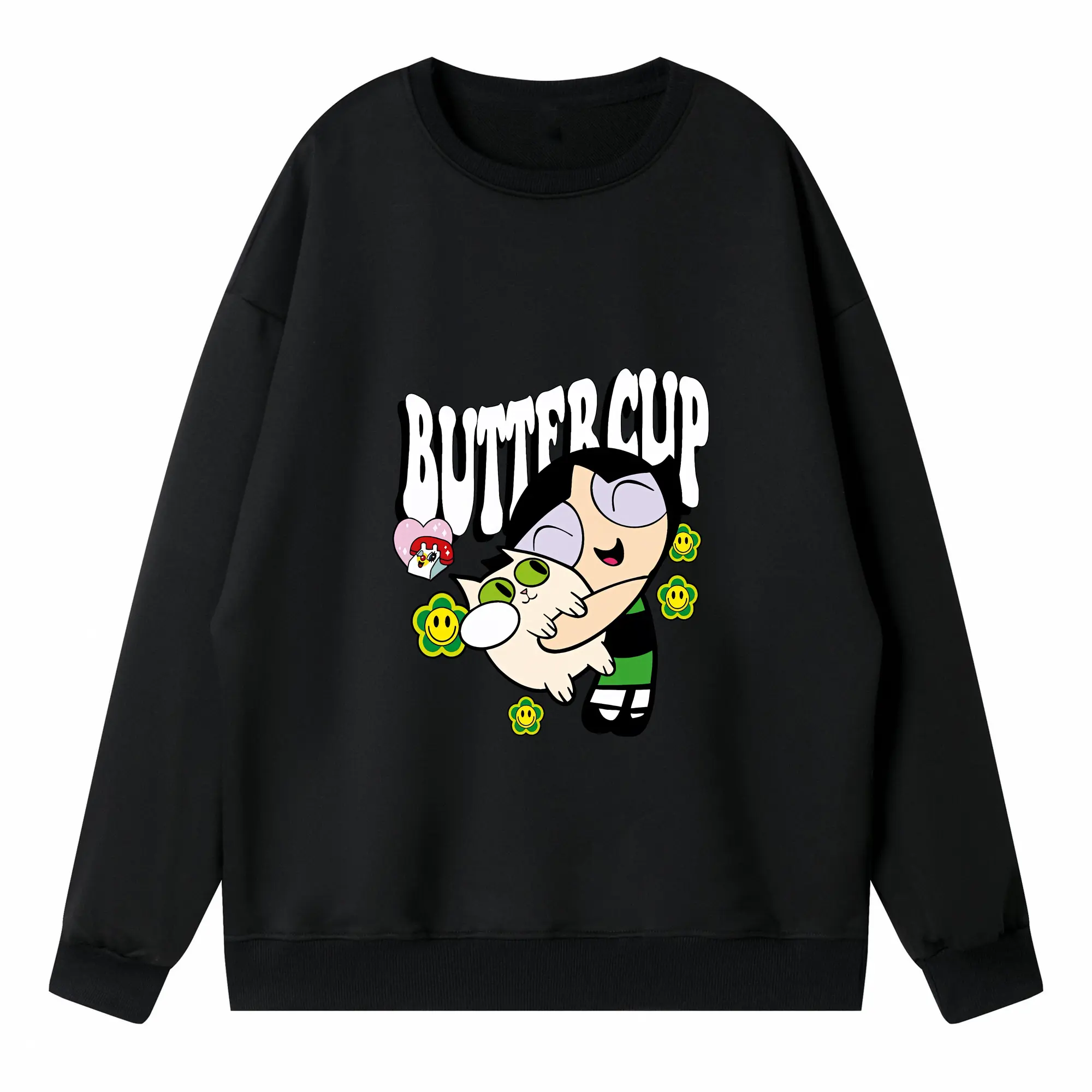 パワパフガールズ グッズ バターカップ - 高品質 クルーネック スウェット ・ コットン59% ポリエステル41% ・ ユニセックス 長袖 トレーナー ・ カジュアル デイリー スポーツ 散歩用