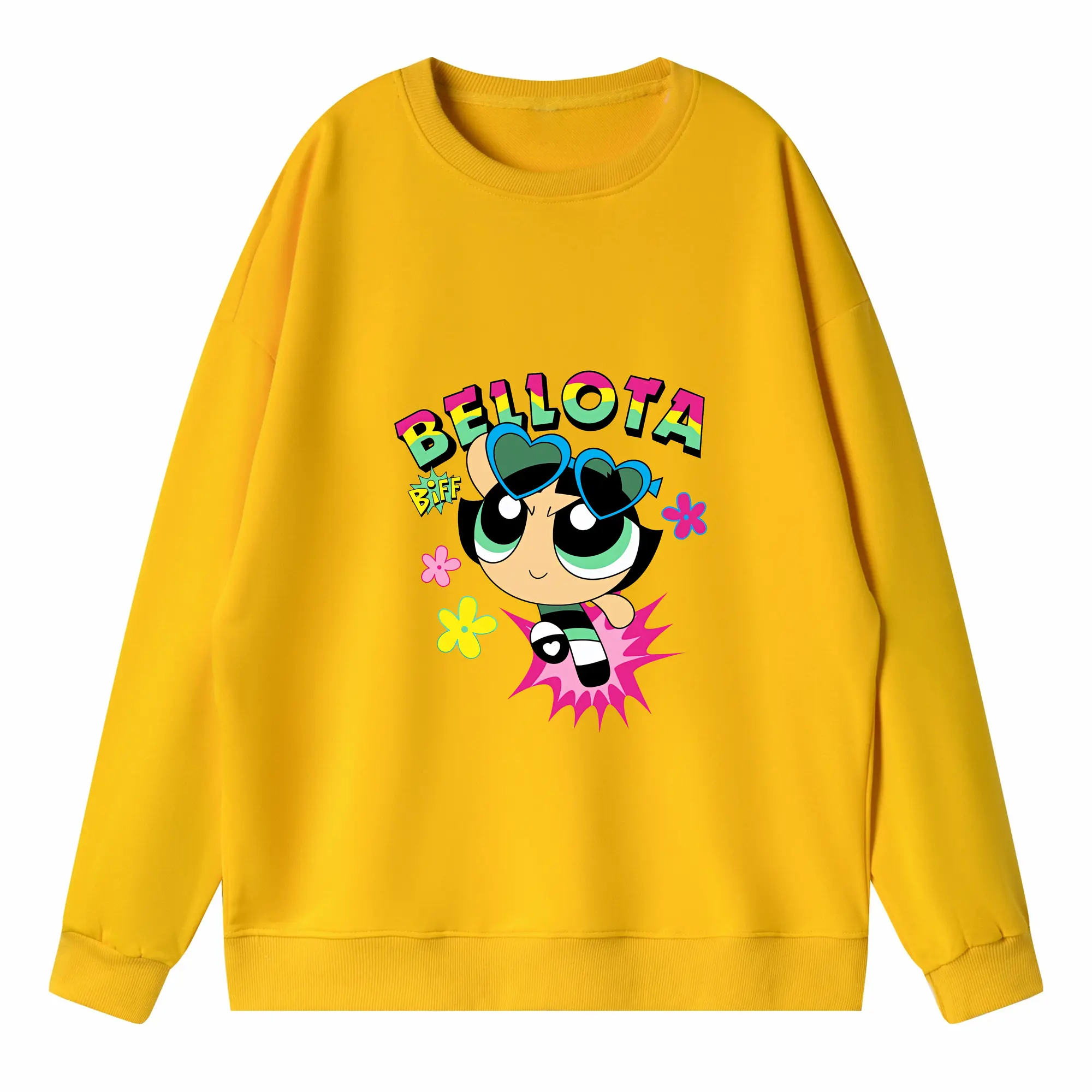 パワパフガールズ グッズ バターカップ - 高品質 クルーネック スウェット ・ コットン59% ポリエステル41% ・ ユニセックス 長袖 トレーナー ・ カジュアル デイリー スポーツ 散歩用