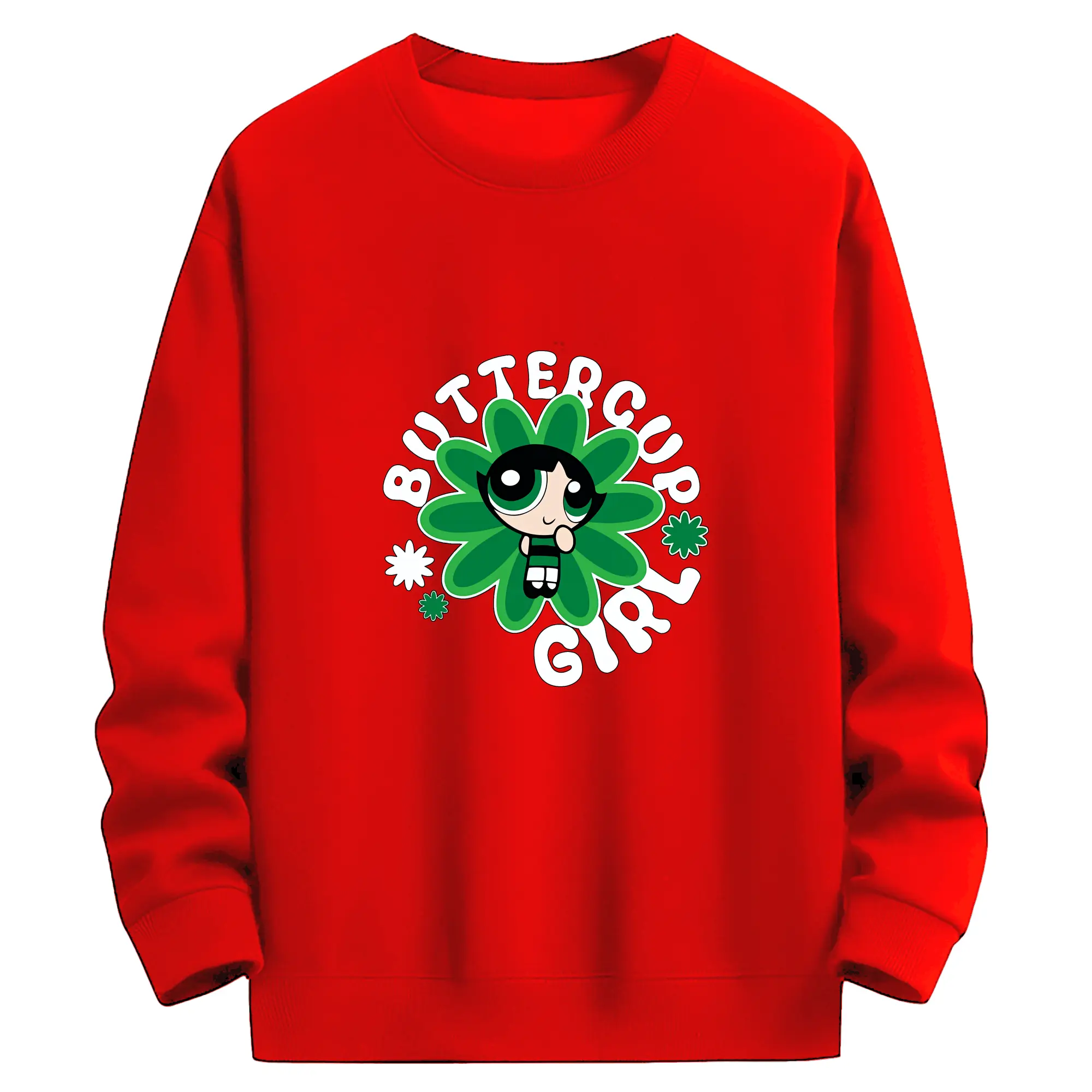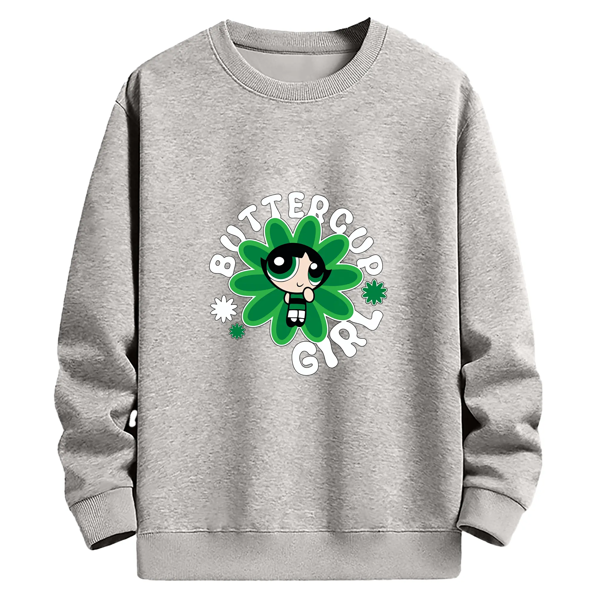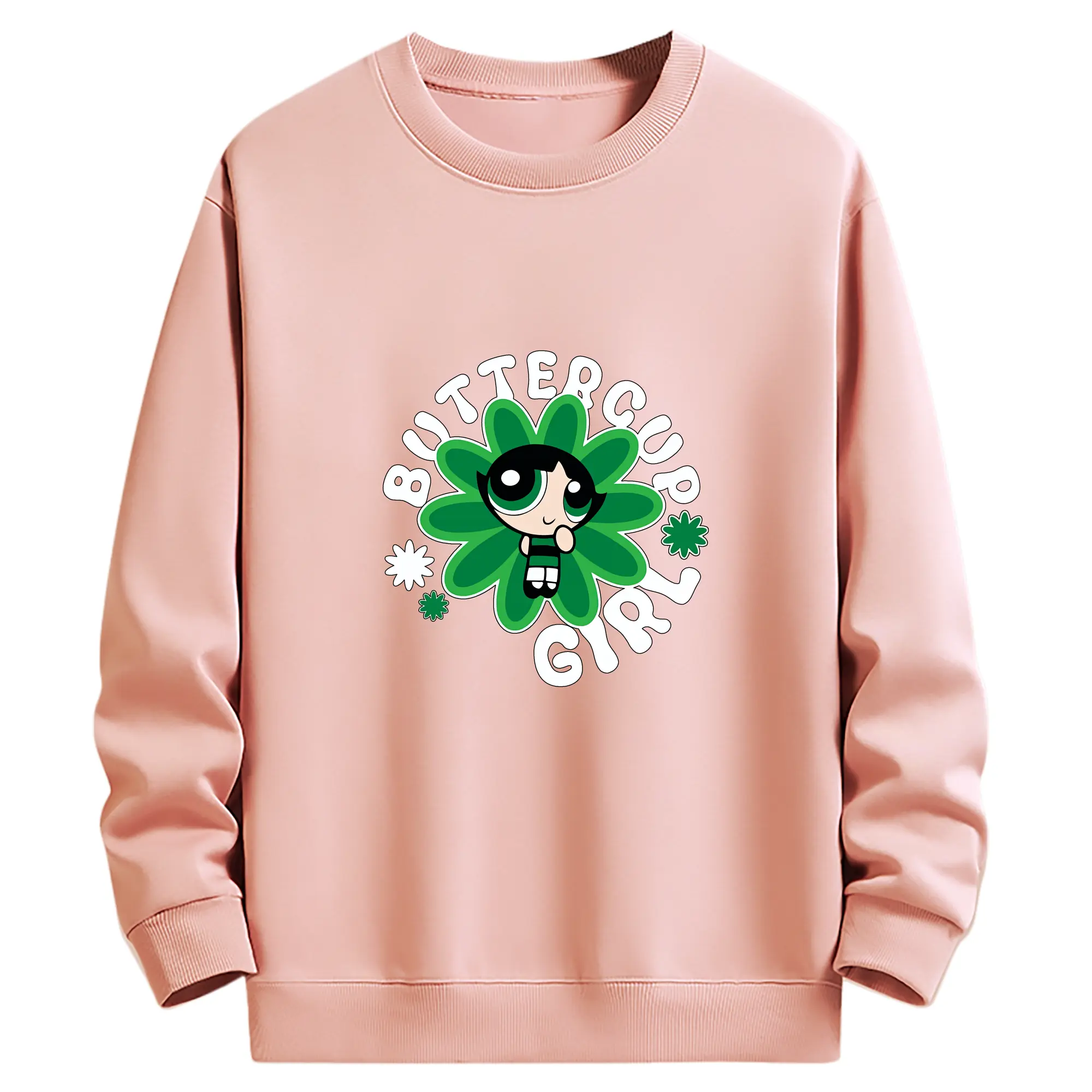 パワパフガールズ グッズ バターカップ - 薄手 クルーネック スウェット 裏毛260g · ポリエステル 春秋向け カジュアル 男女兼用 · トレーナー デイリー スポーツ 散歩に最適