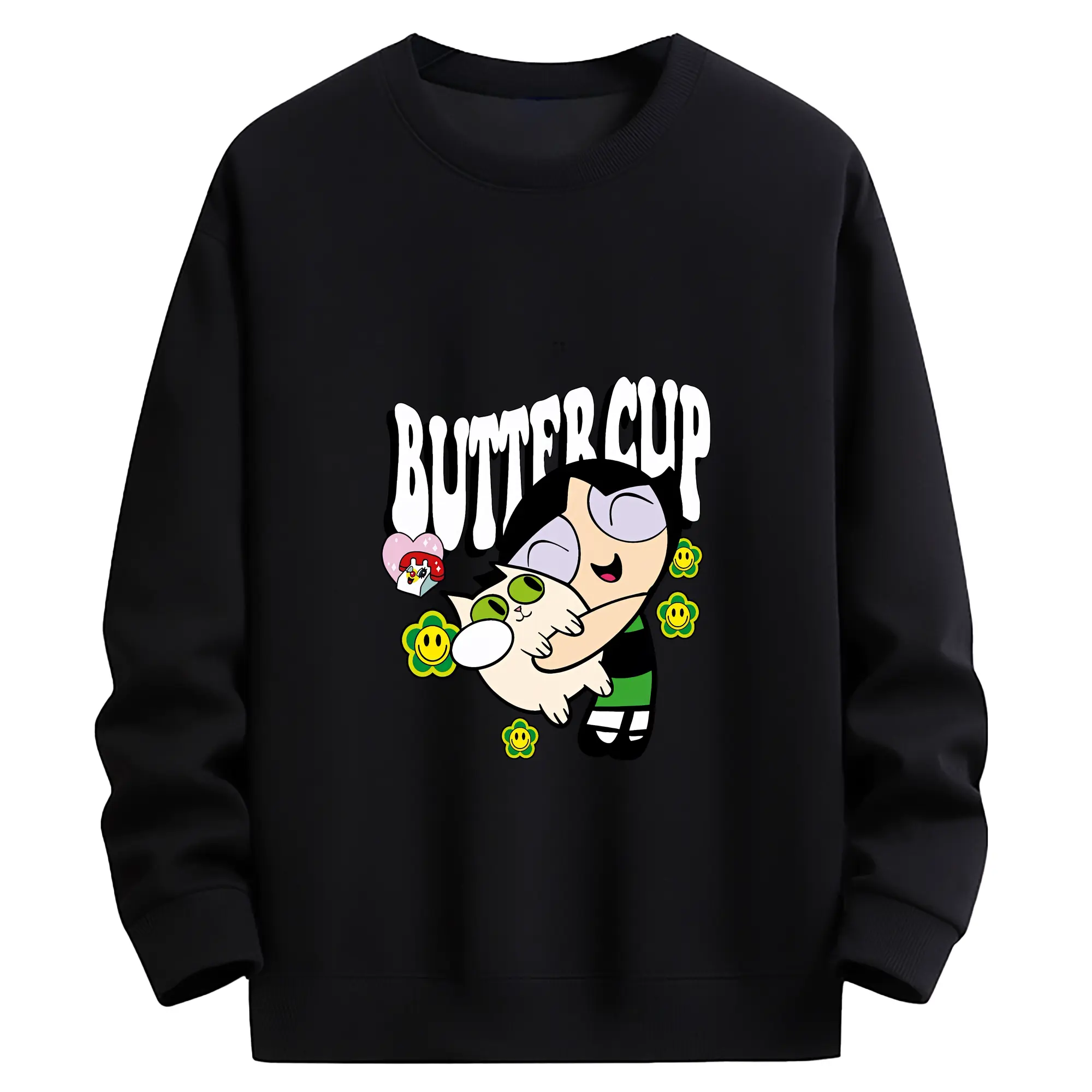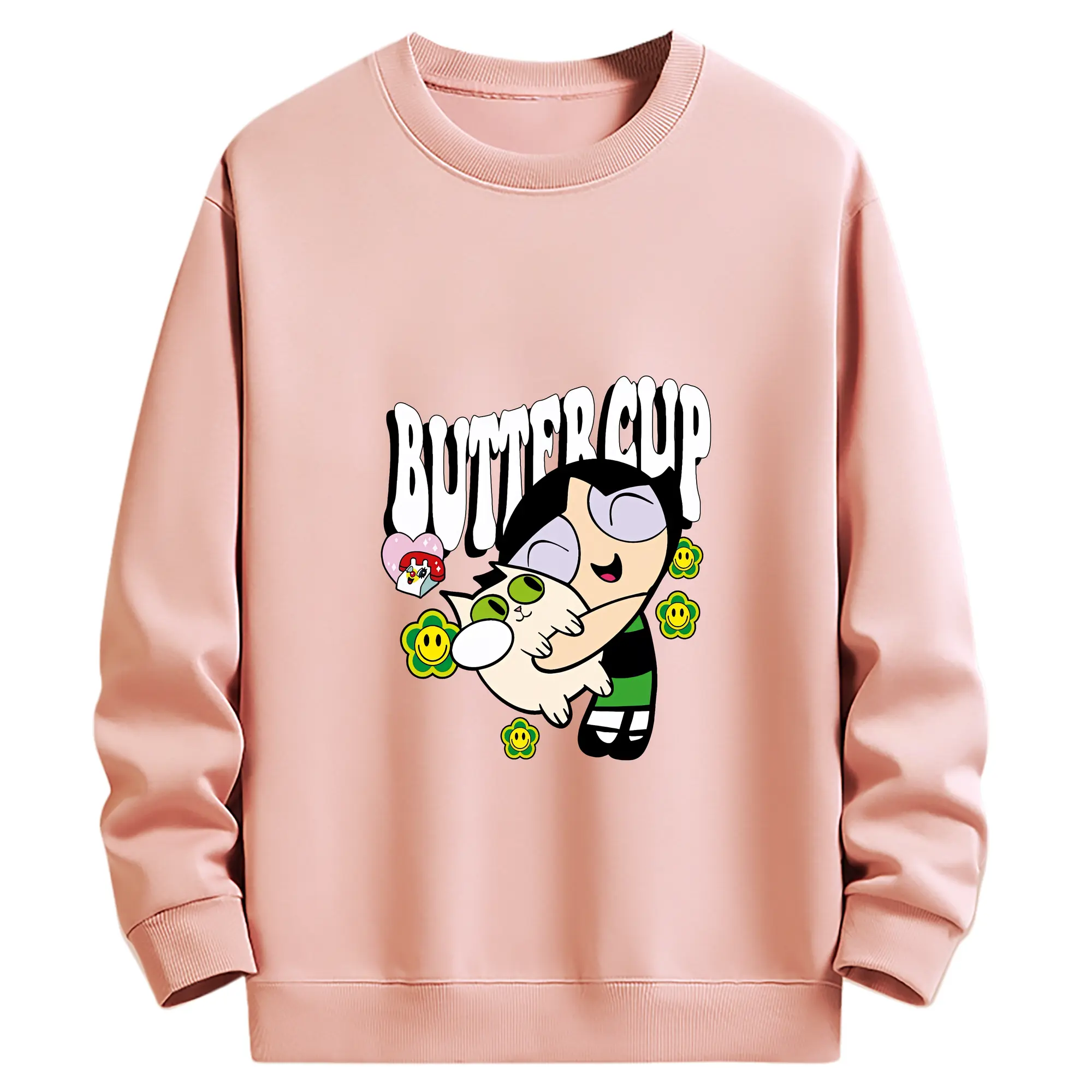 パワパフガールズ グッズ バターカップ - 薄手 クルーネック スウェット 裏毛260g · ポリエステル 春秋向け カジュアル 男女兼用 · トレーナー デイリー スポーツ 散歩に最適