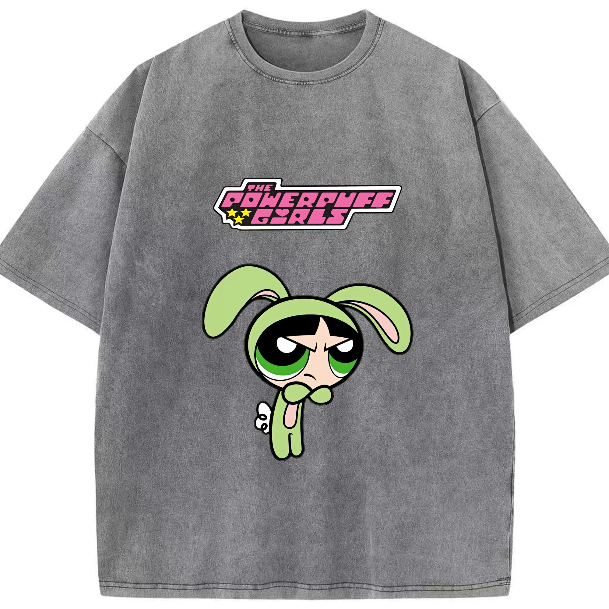 パワパフガールズ グッズ バターカップ - 綿100% ヴィンテージ風 半袖Tシャツ ・ 背面プリント ・ 柔らか肌触り ・ 通気性 快適 ・ スポーツ カジュアル 外出用