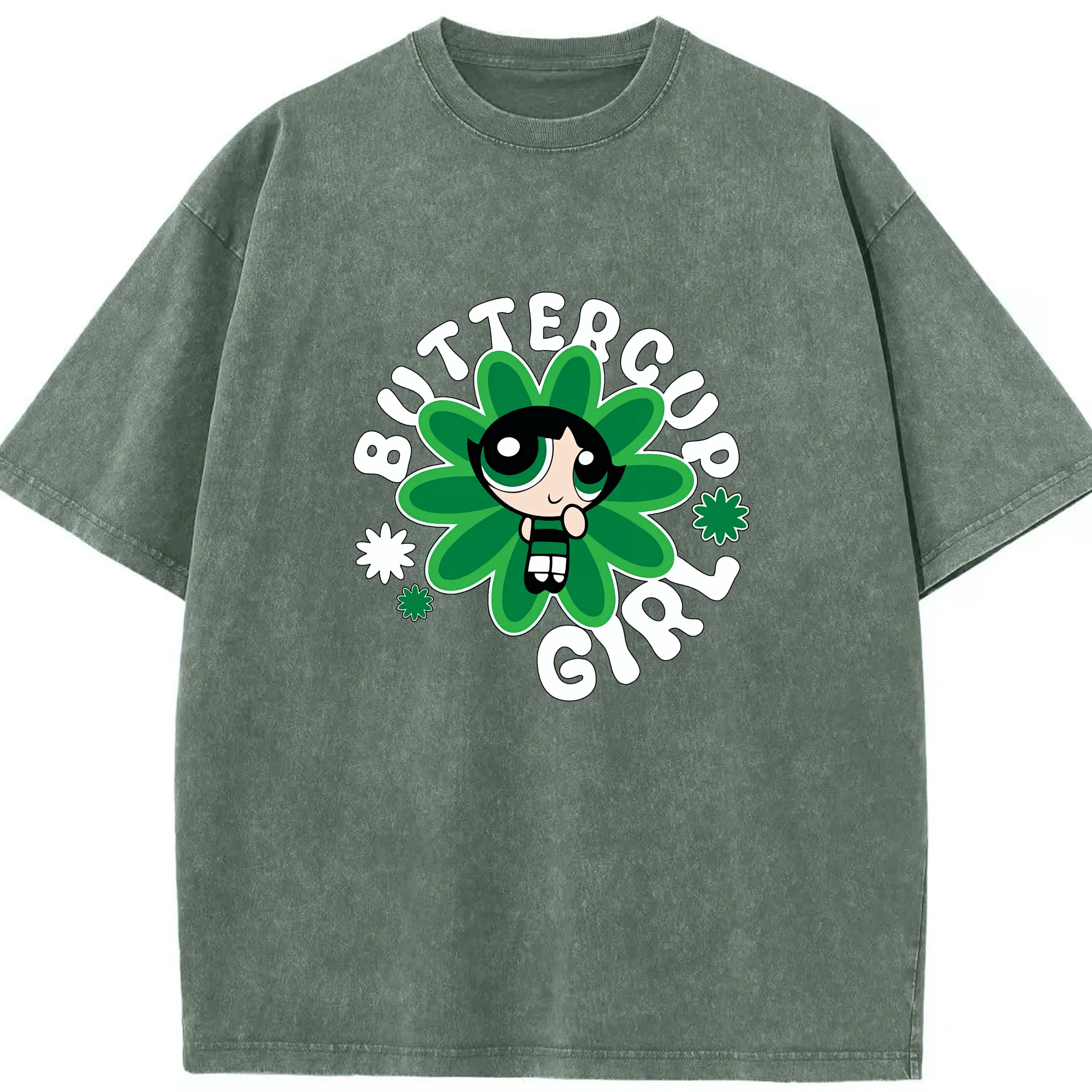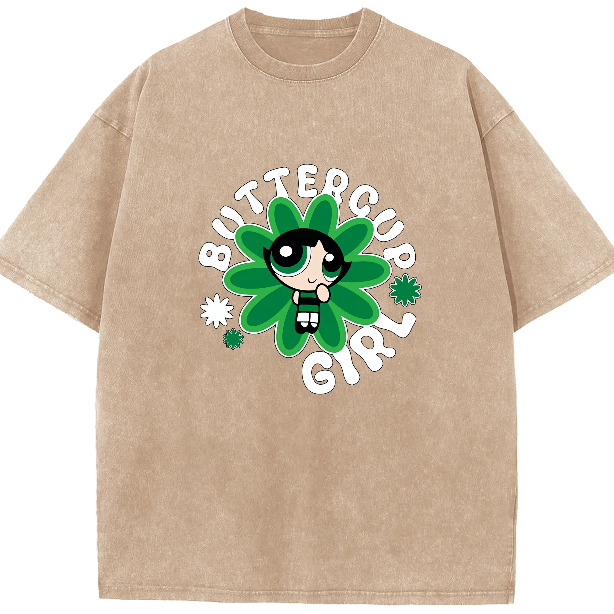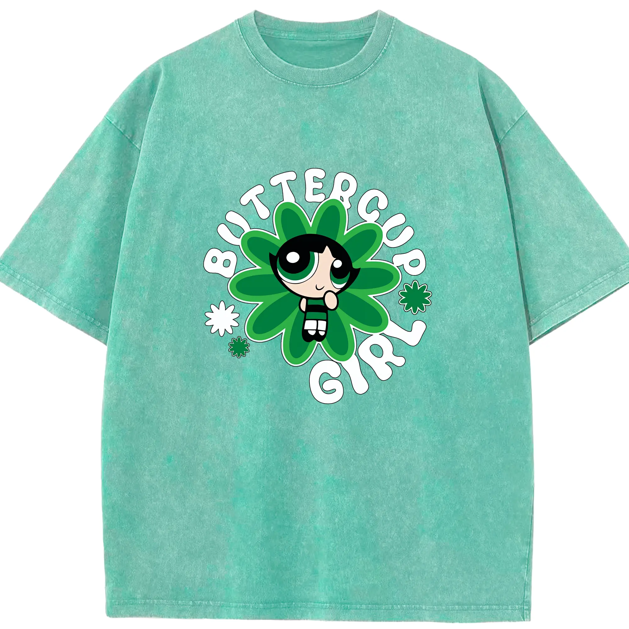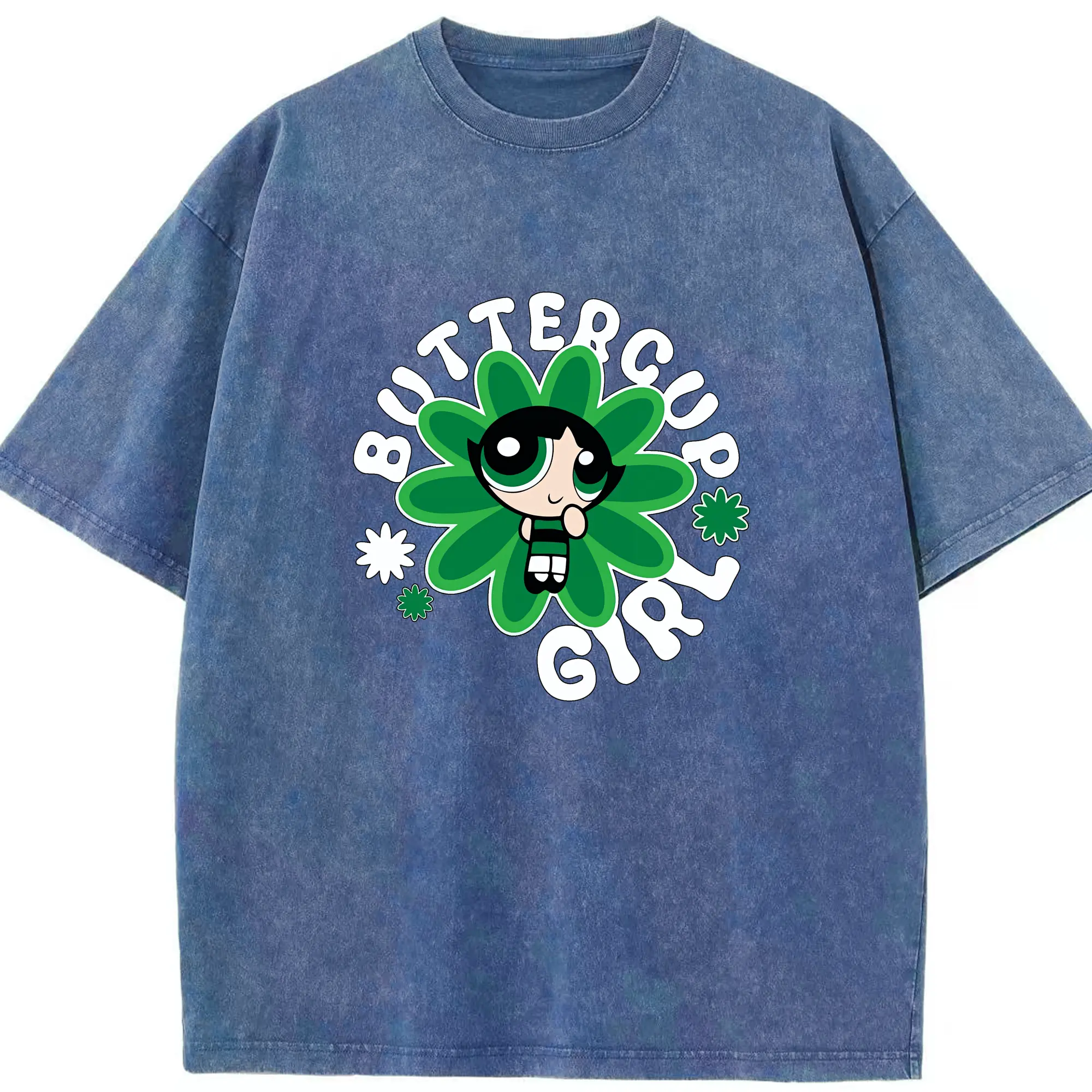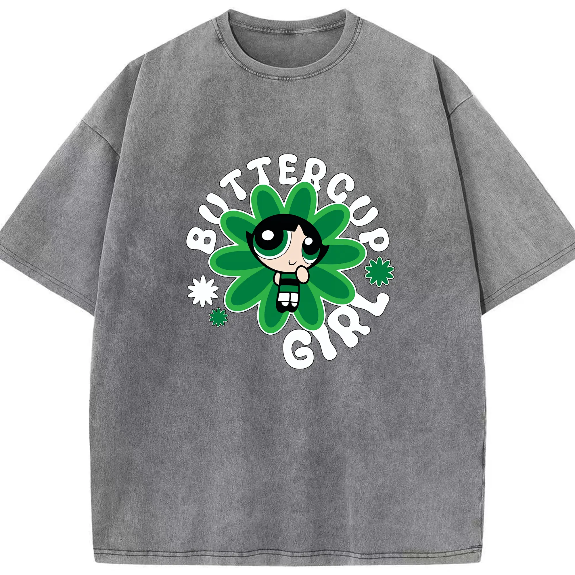 パワパフガールズ グッズ バターカップ - 綿100% ヴィンテージ風 半袖Tシャツ ・ 背面プリント ・ 柔らか肌触り ・ 通気性 快適 ・ スポーツ カジュアル 外出用