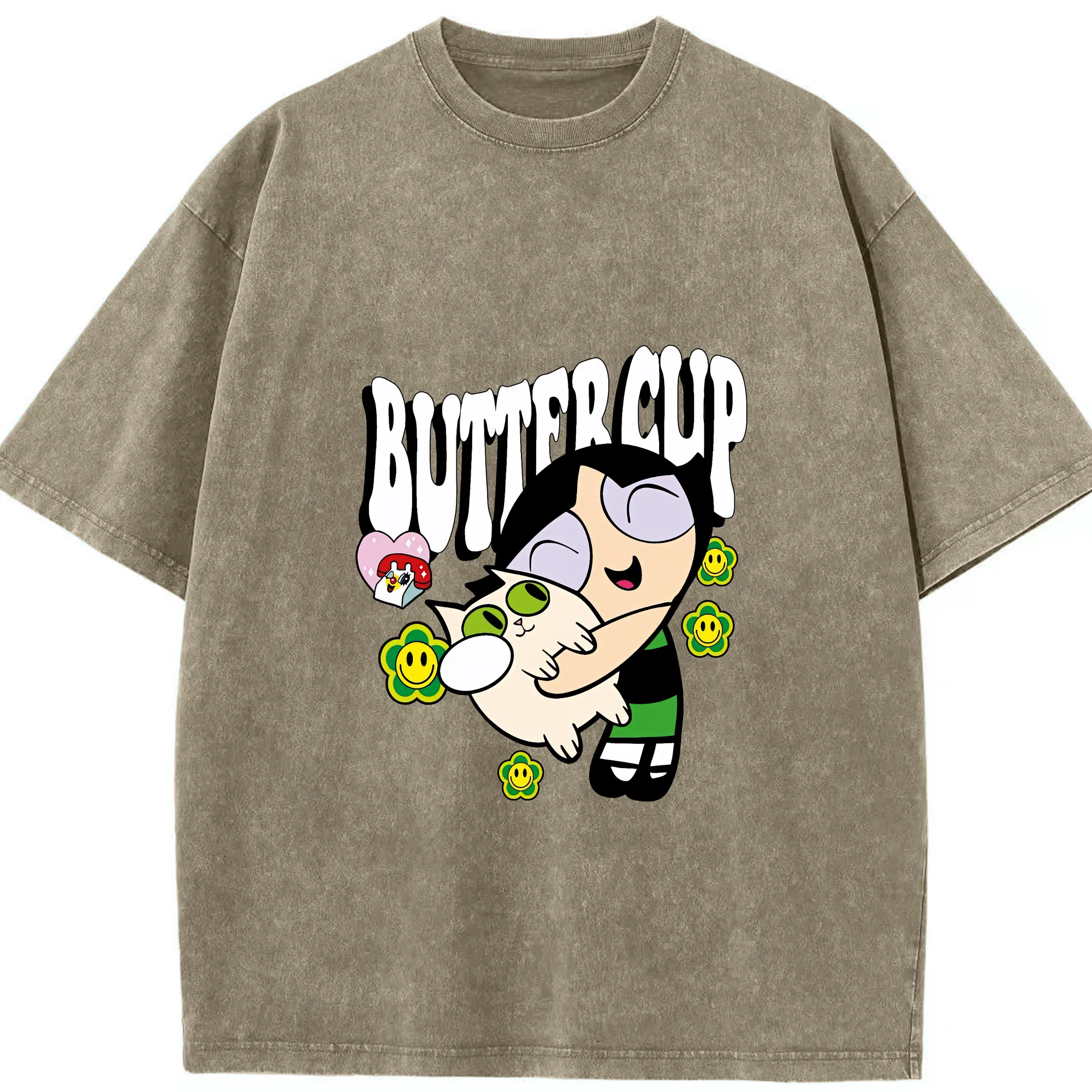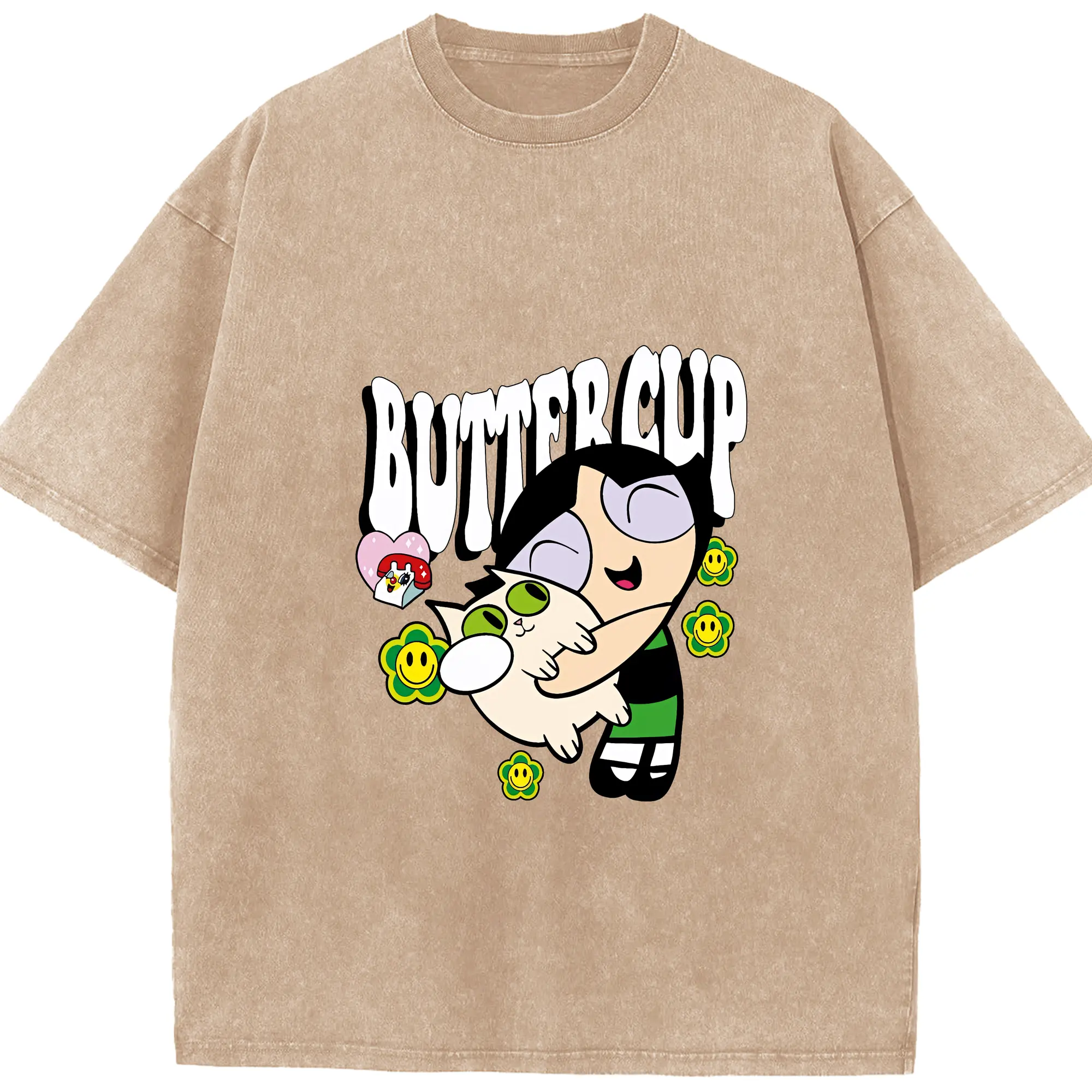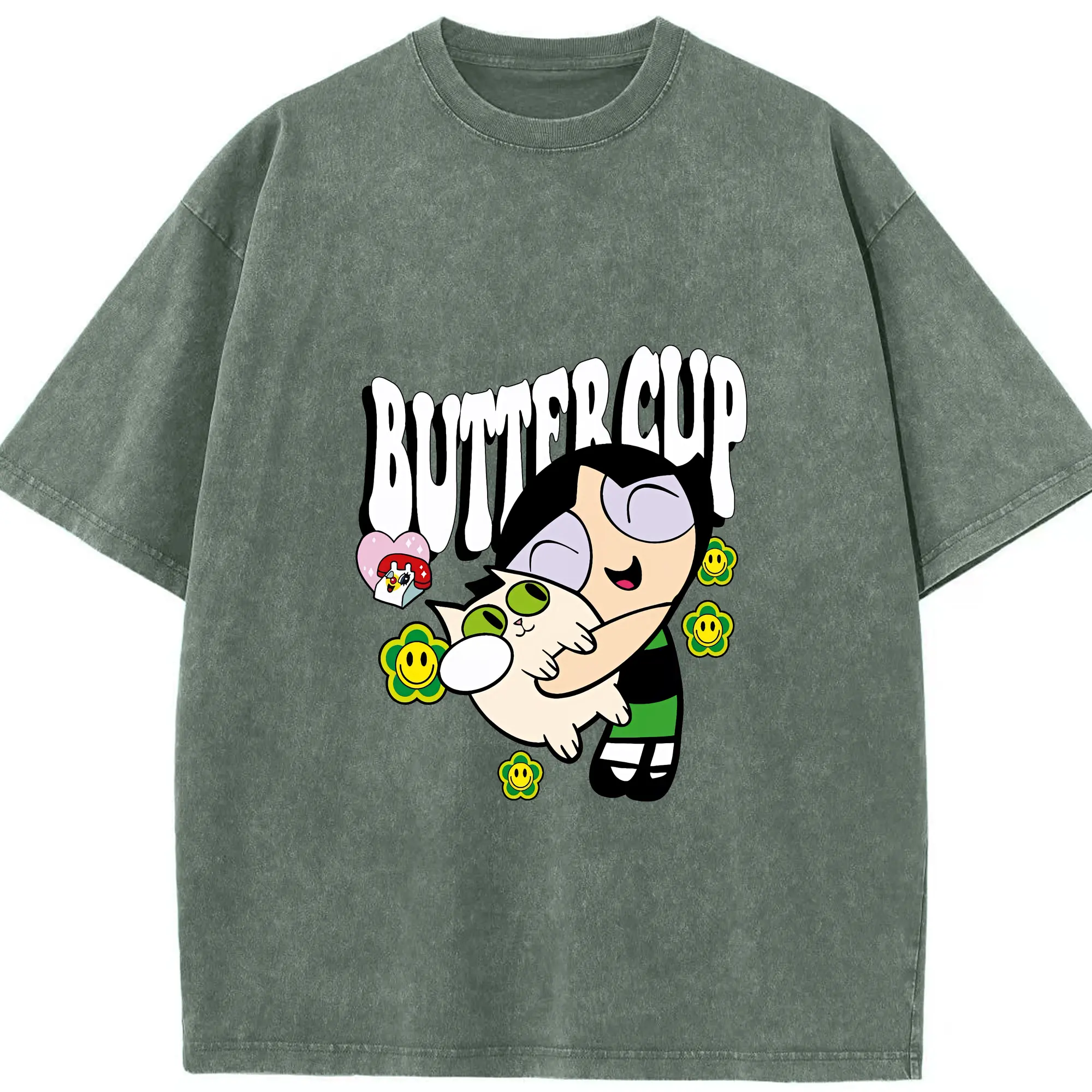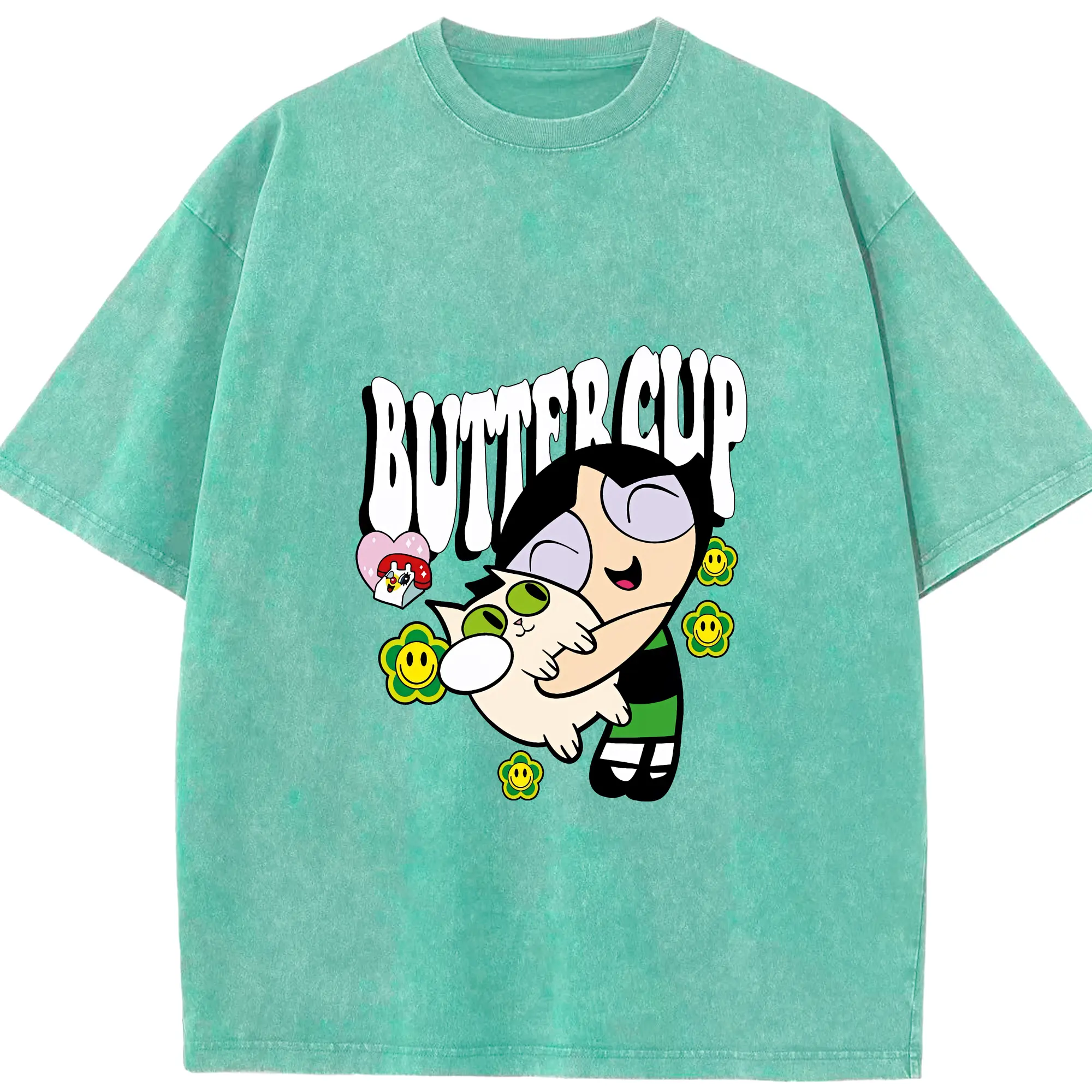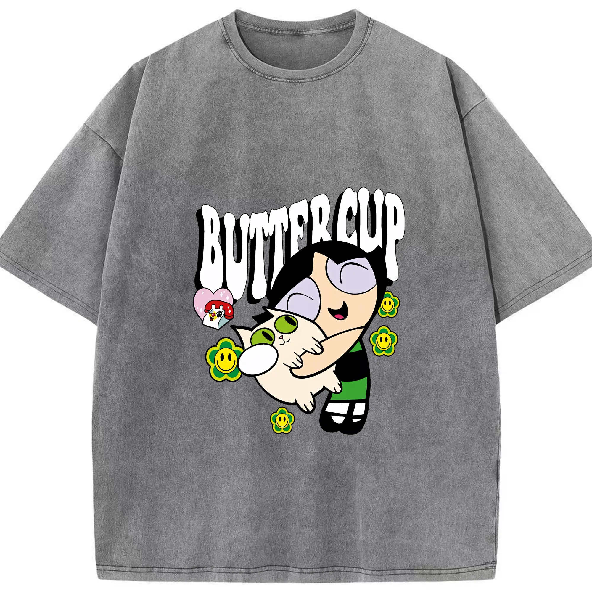 パワパフガールズ グッズ バターカップ - 綿100% ヴィンテージ風 半袖Tシャツ ・ 背面プリント ・ 柔らか肌触り ・ 通気性 快適 ・ スポーツ カジュアル 外出用