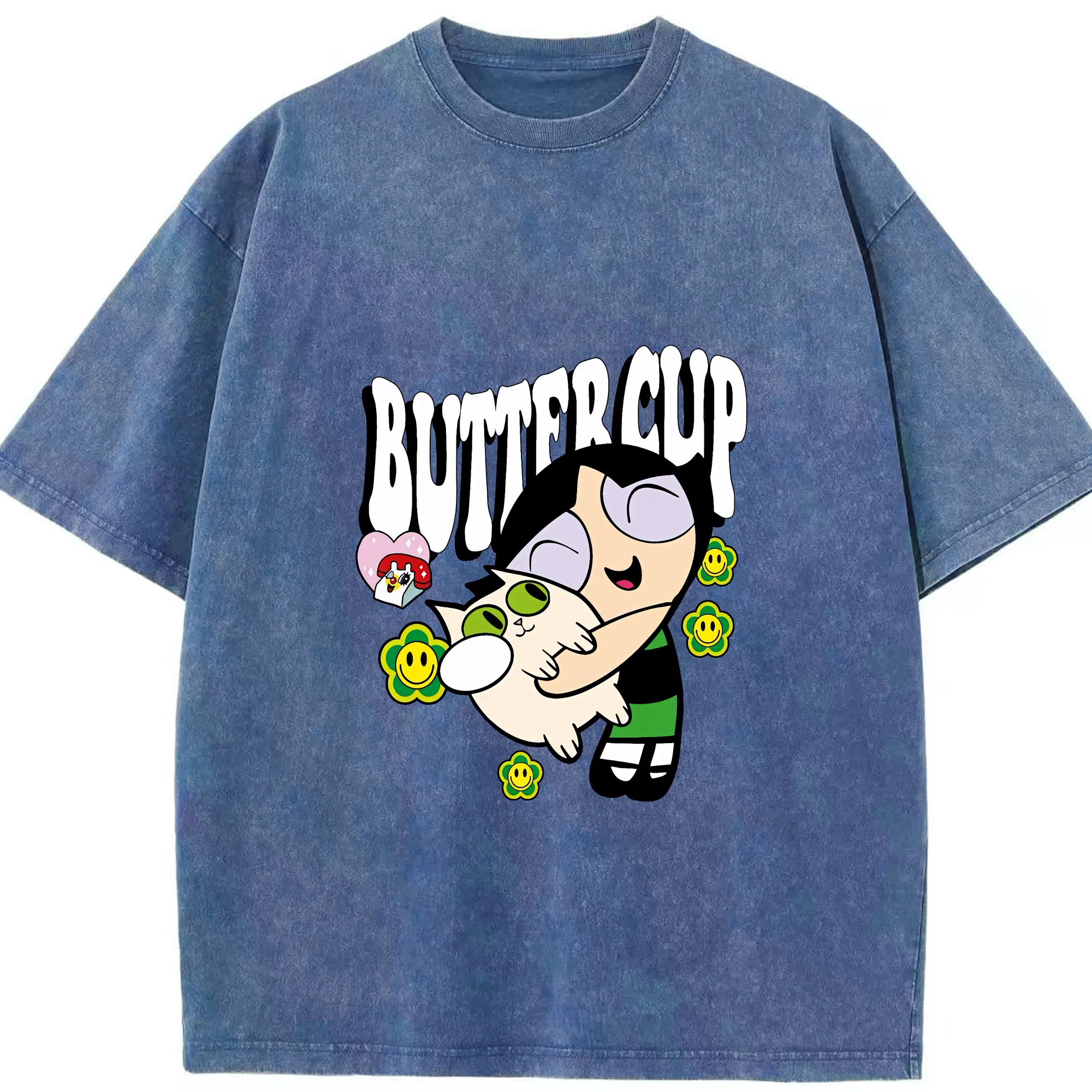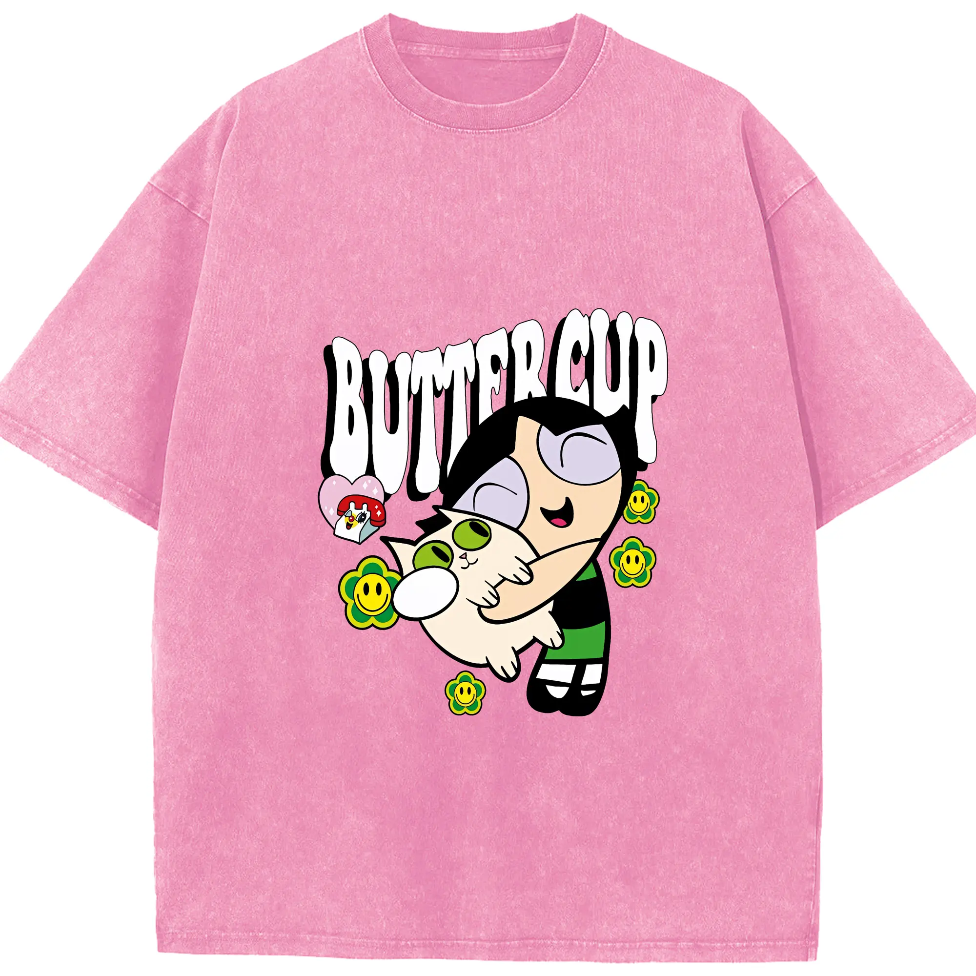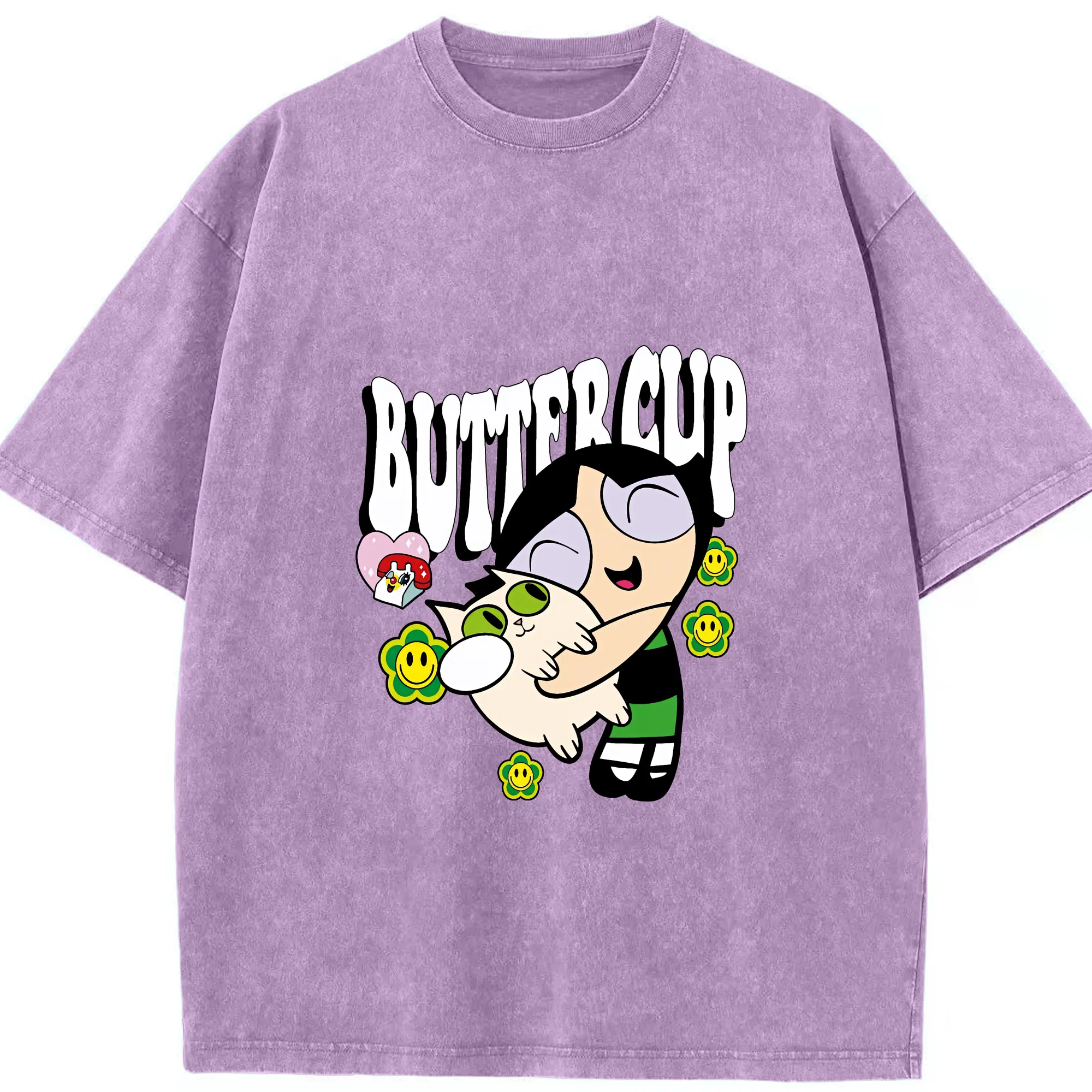 パワパフガールズ グッズ バターカップ - 綿100% 半袖Tシャツ ・ フロントプリント ・ 快適 通気性 ・ 日常使い 散歩 スポーツ用