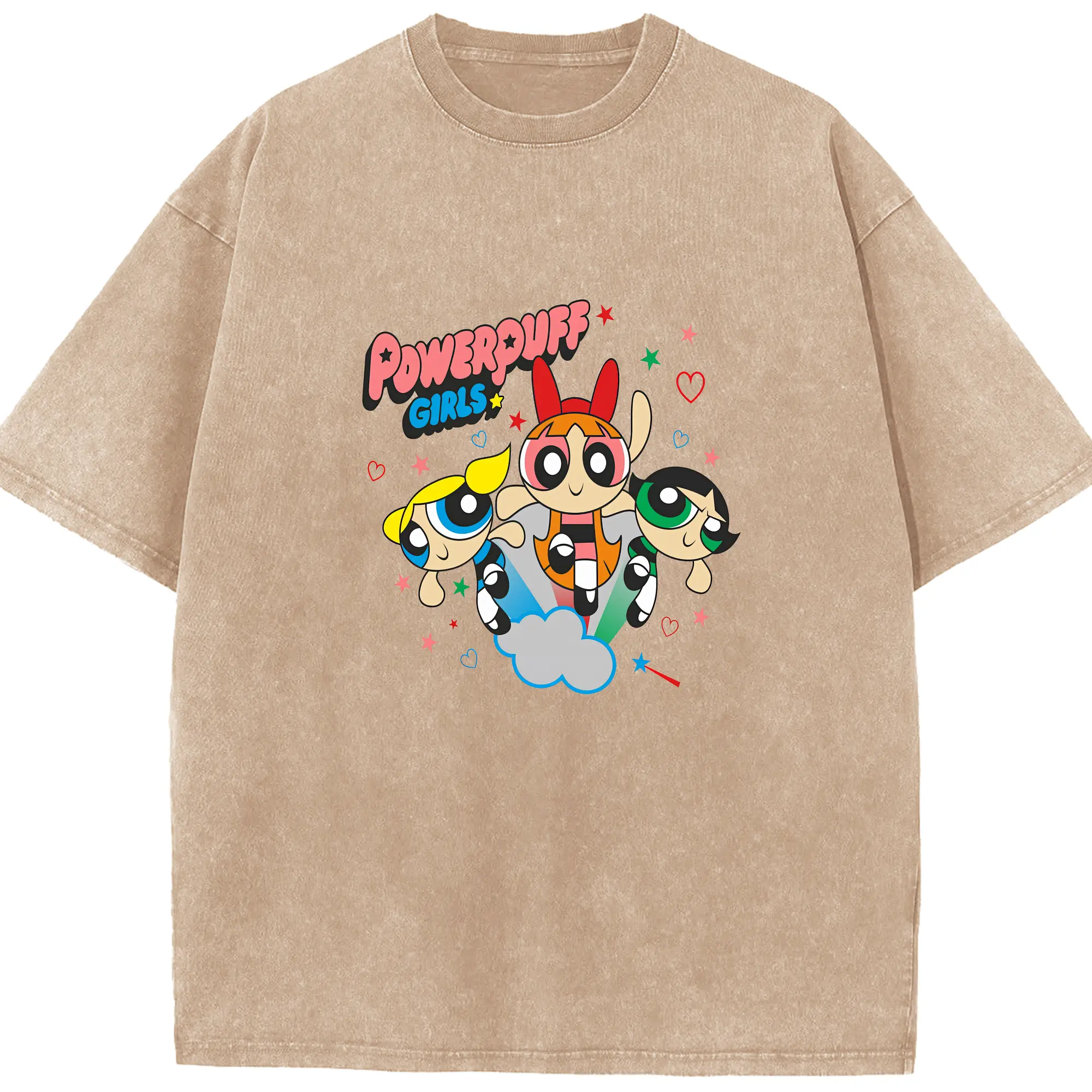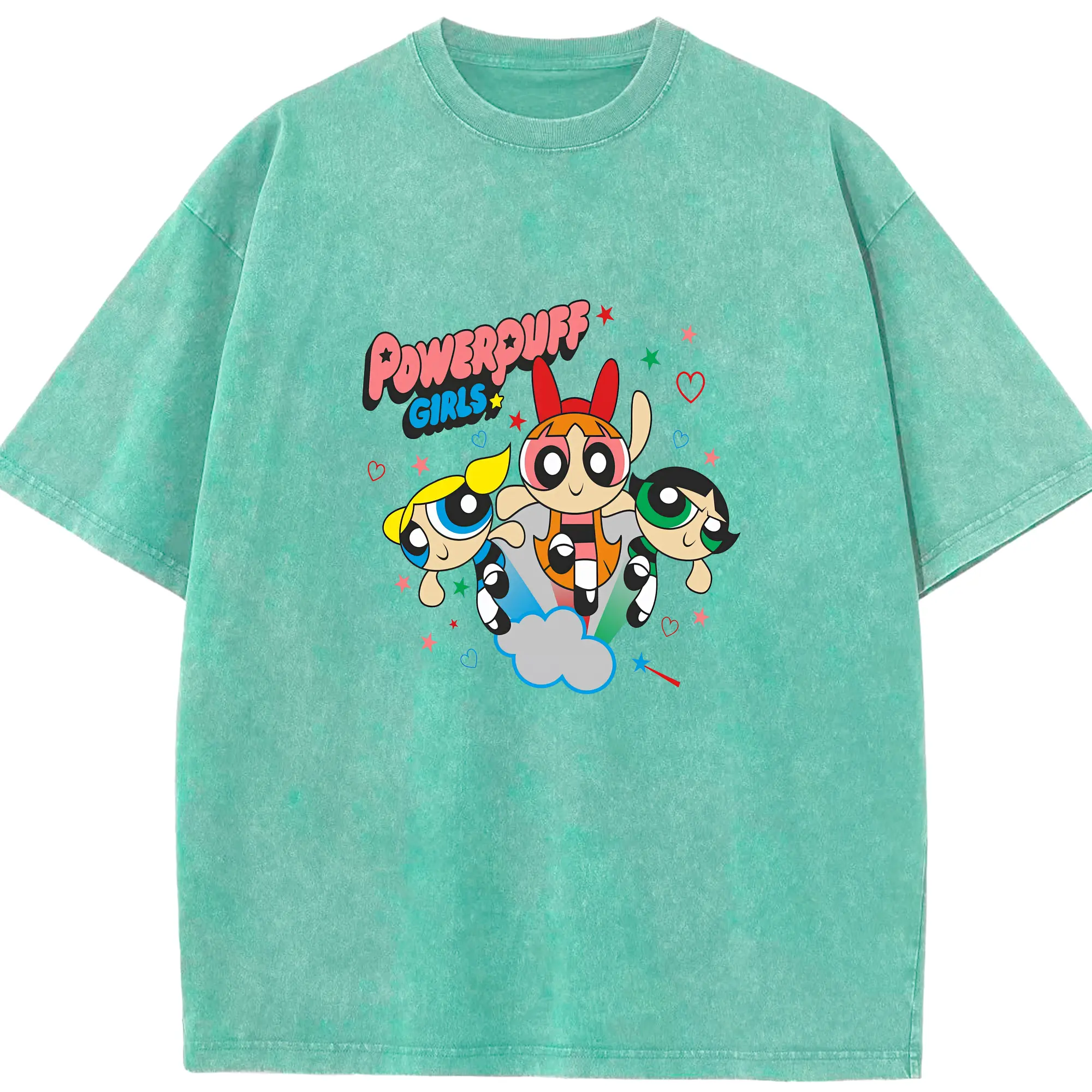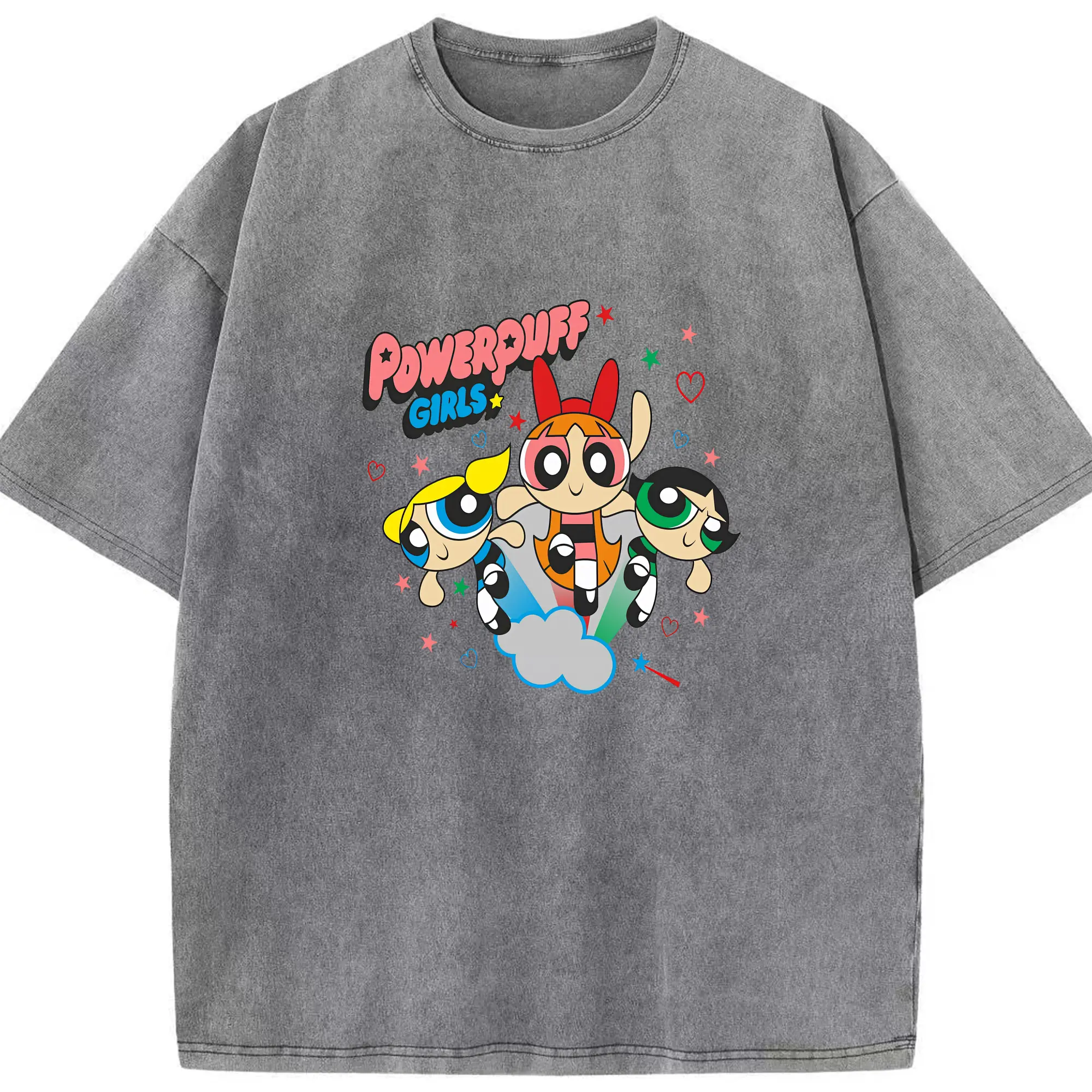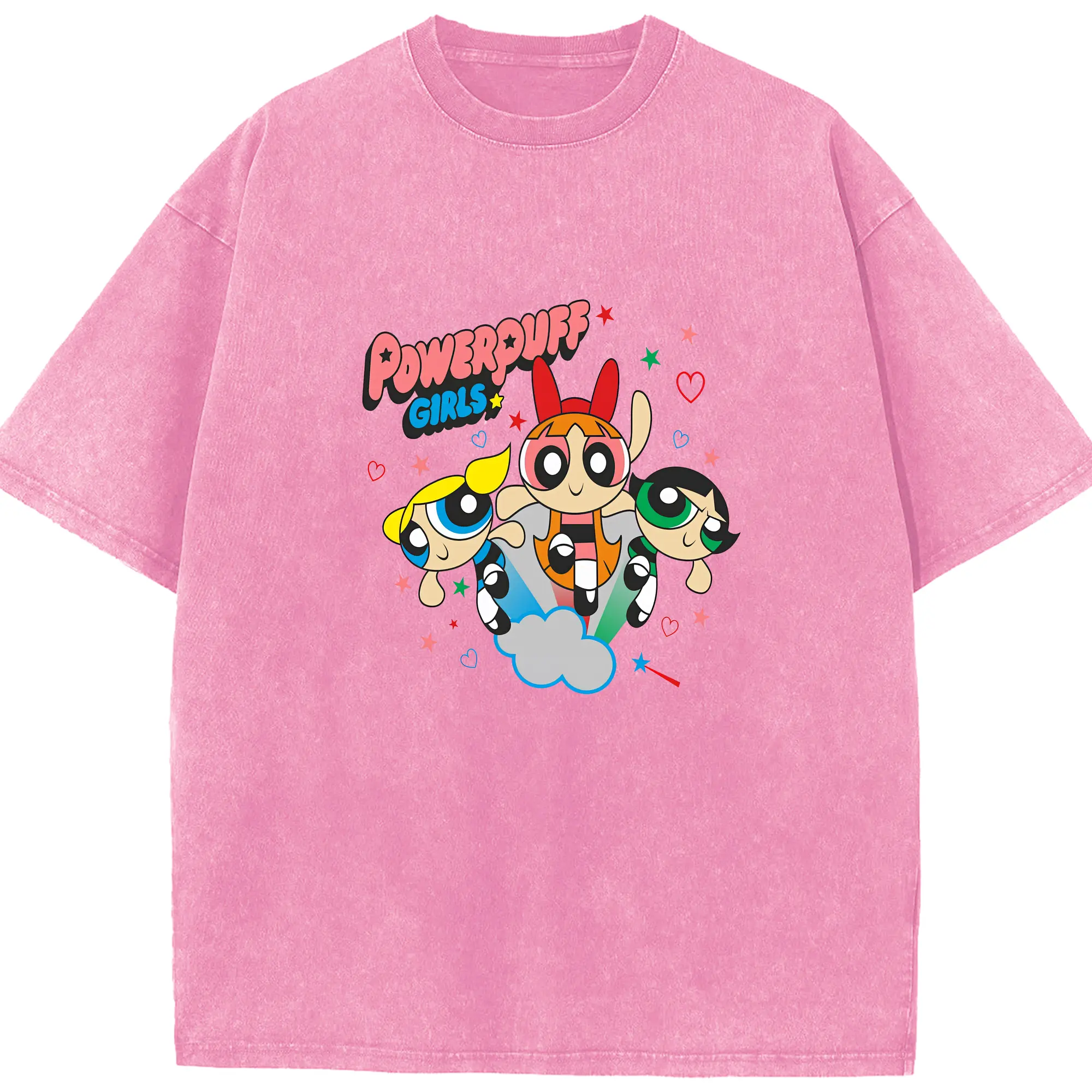 パワパフガールズ グッズ バターカップ - 綿100% ヴィンテージ風 半袖Tシャツ ・ 背面プリント ・ 柔らか肌触り ・ 通気性 快適 ・ スポーツ カジュアル 外出用