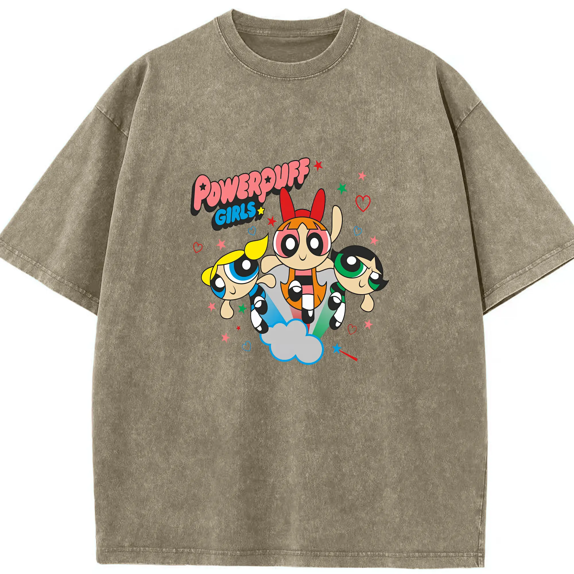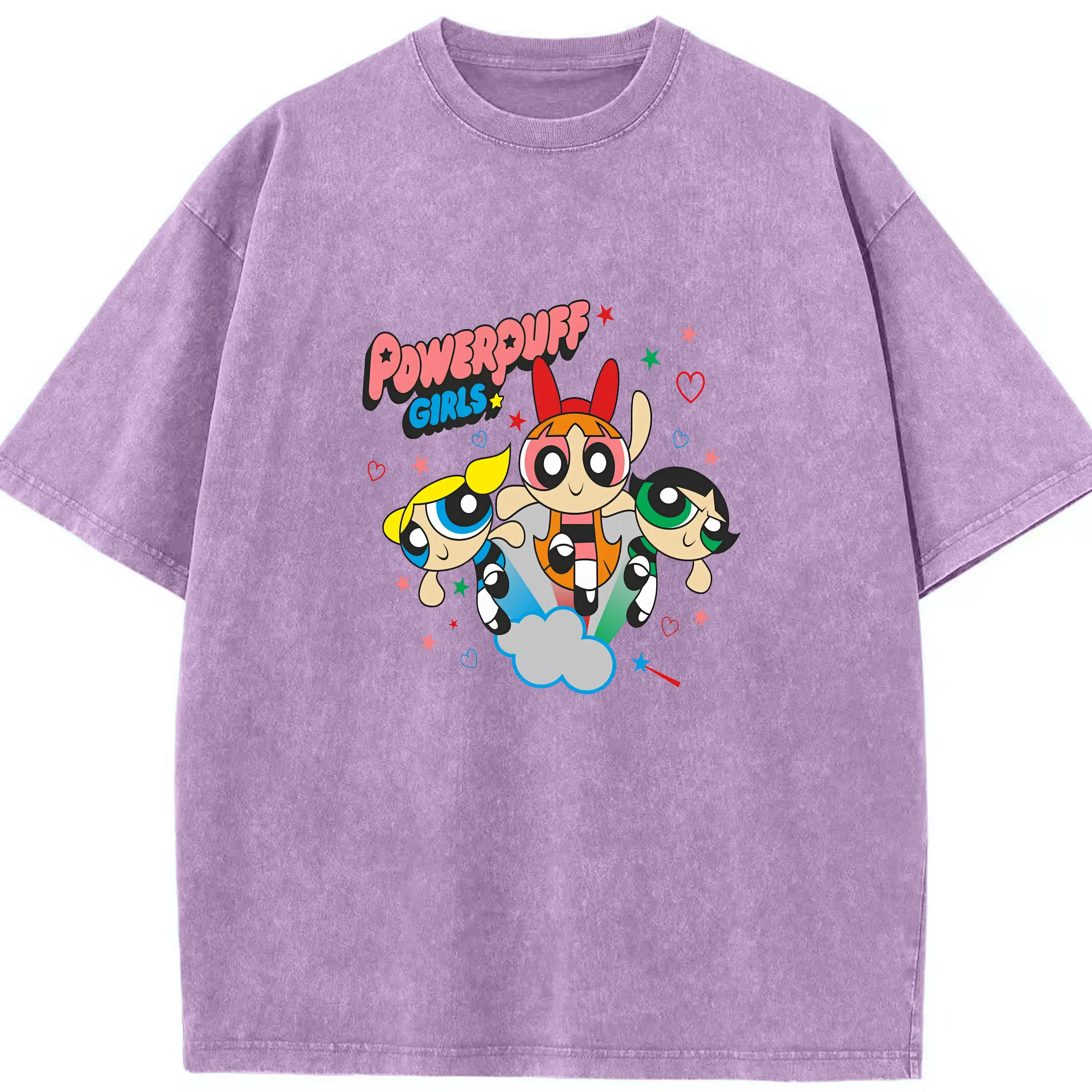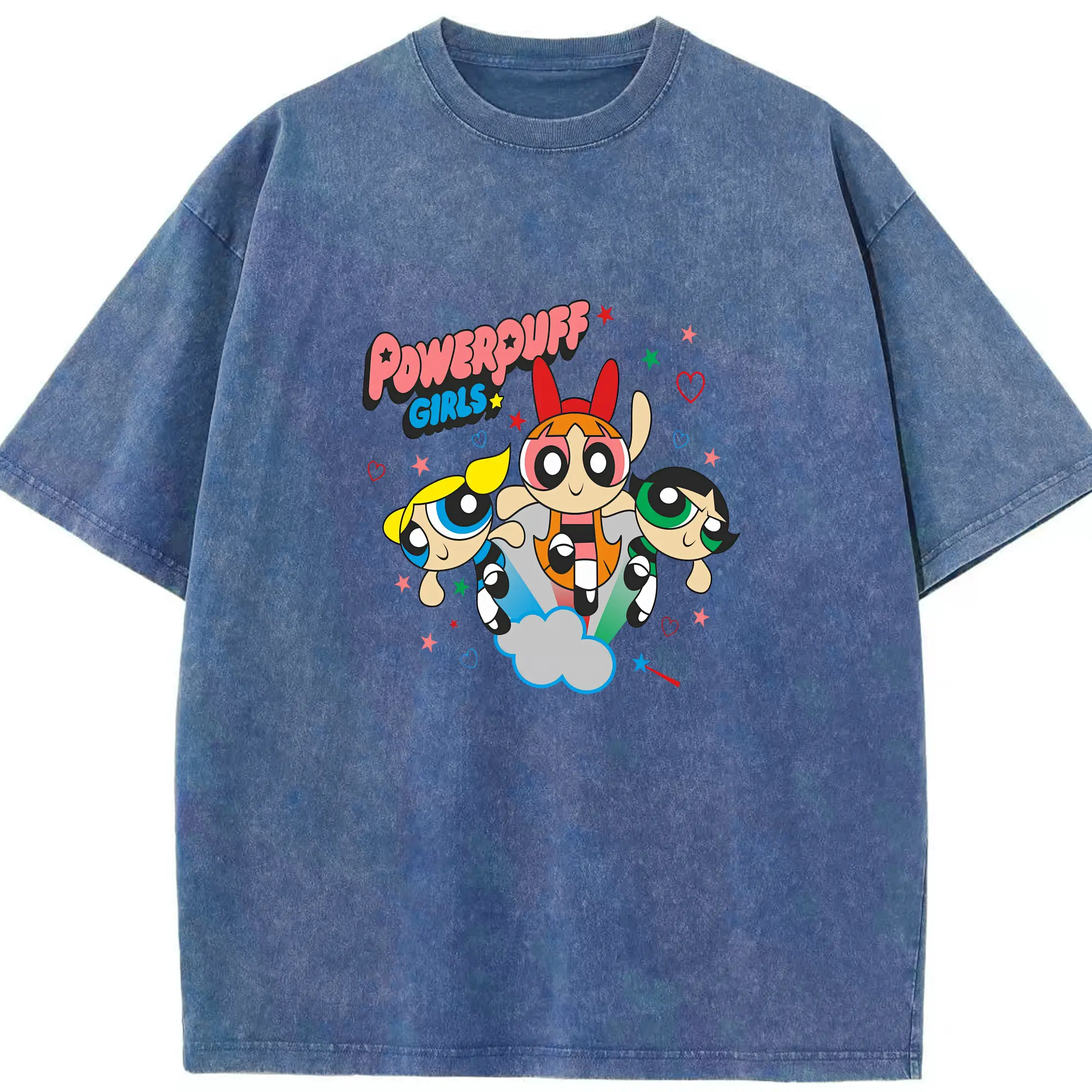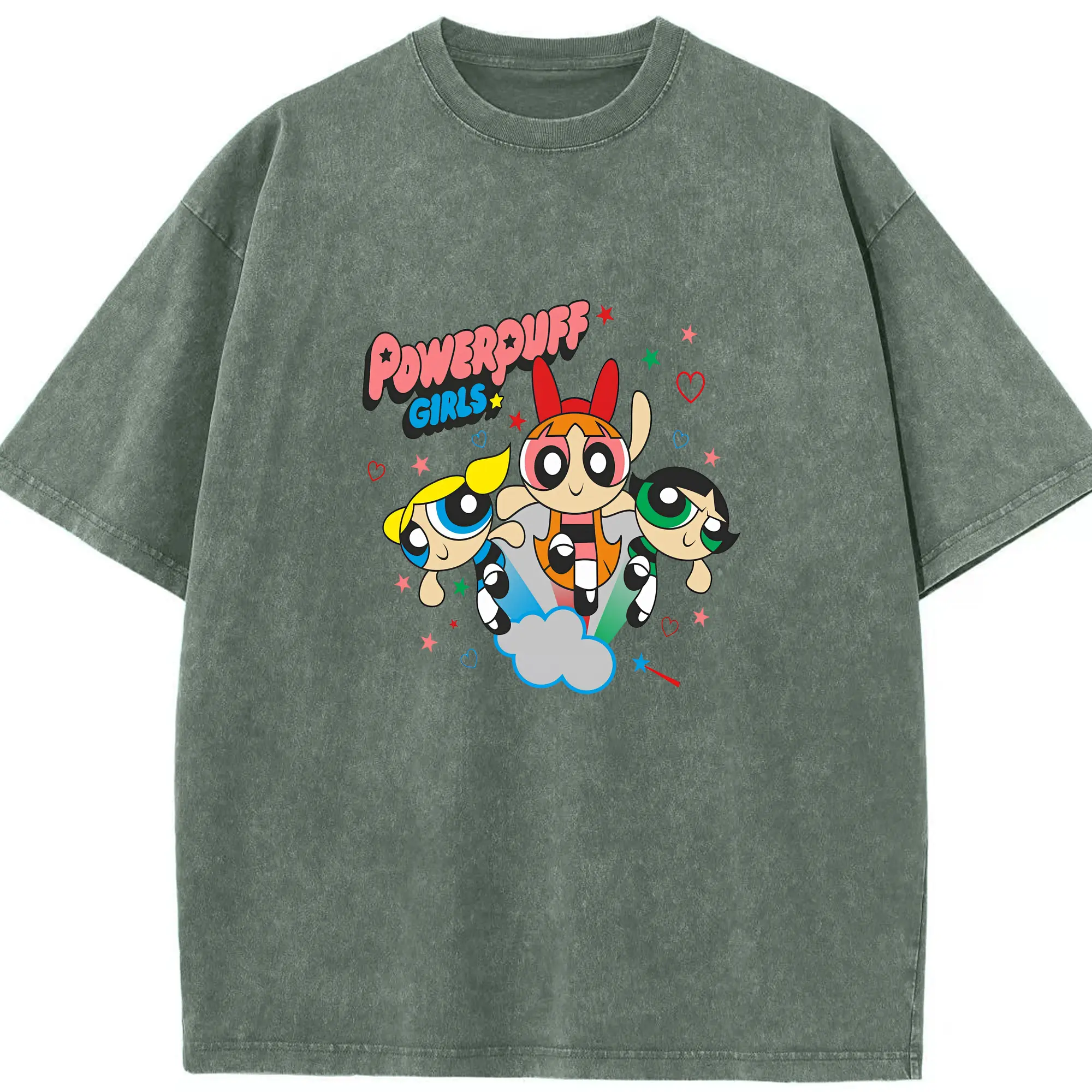 パワパフガールズ グッズ バターカップ - 綿100% ヴィンテージ風 半袖Tシャツ ・ 背面プリント ・ 柔らか肌触り ・ 通気性 快適 ・ スポーツ カジュアル 外出用