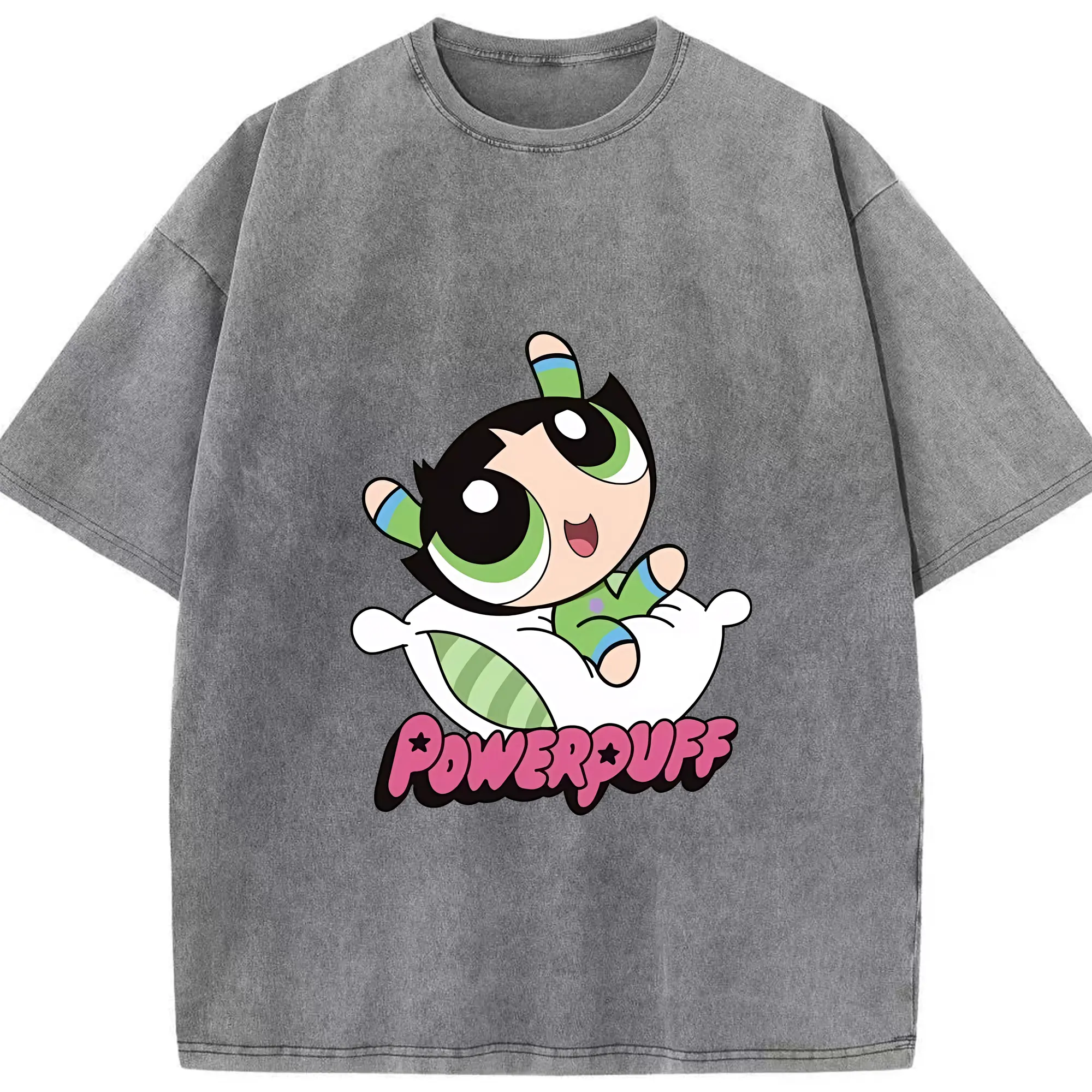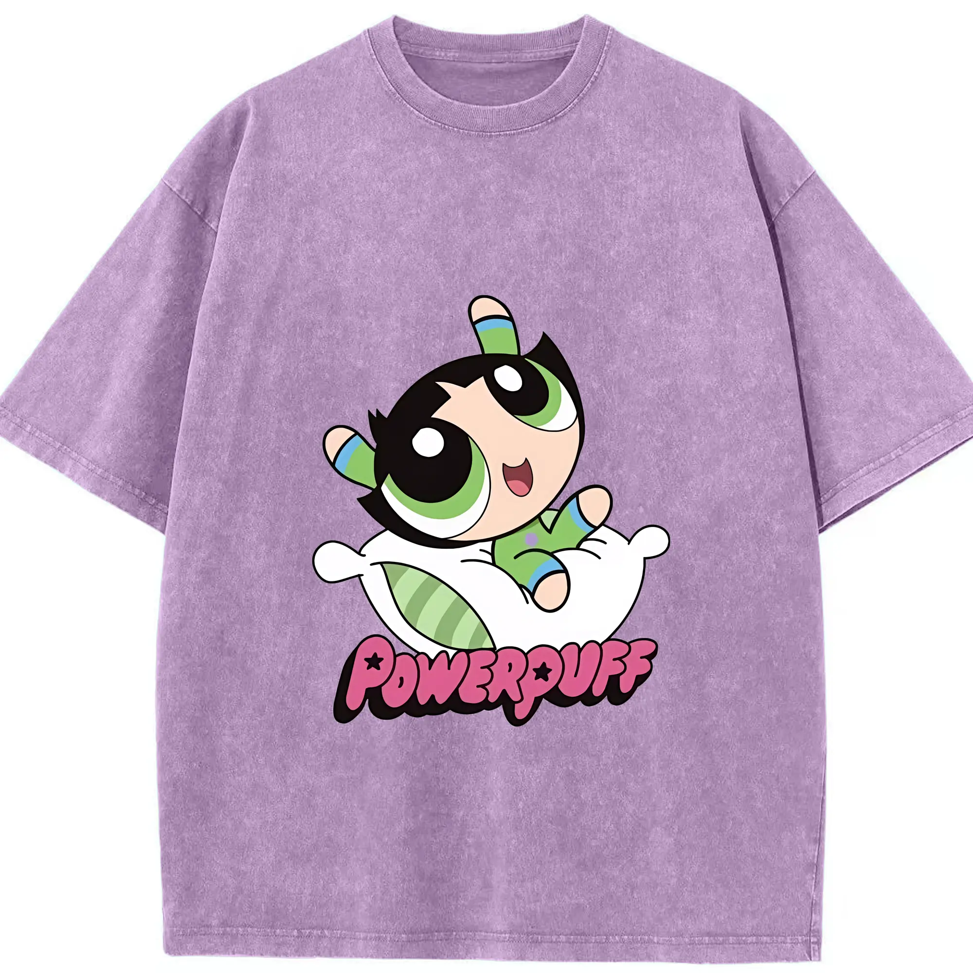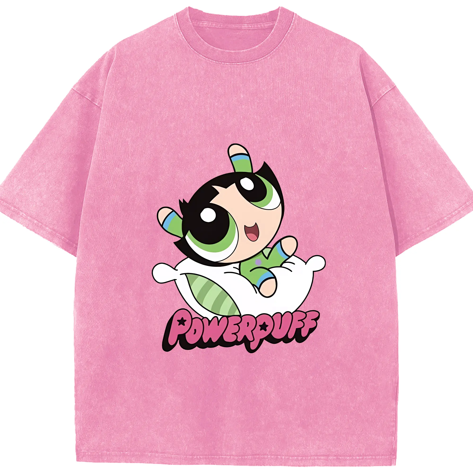 パワパフガールズ グッズ バターカップ - 綿100% ヴィンテージ風 半袖Tシャツ ・ 背面プリント ・ 柔らか肌触り ・ 通気性 快適 ・ スポーツ カジュアル 外出用