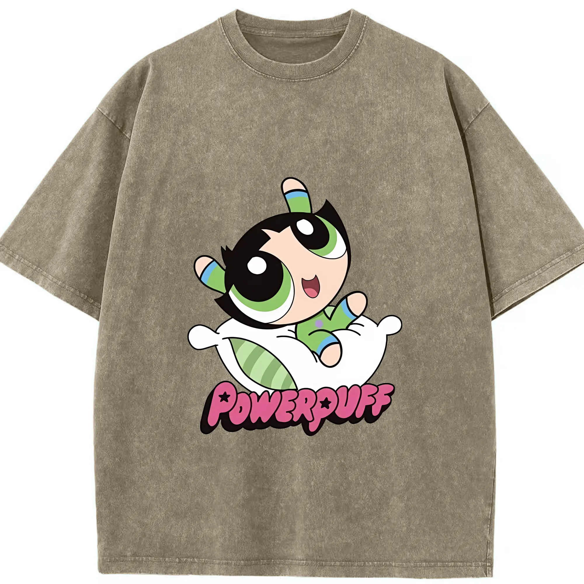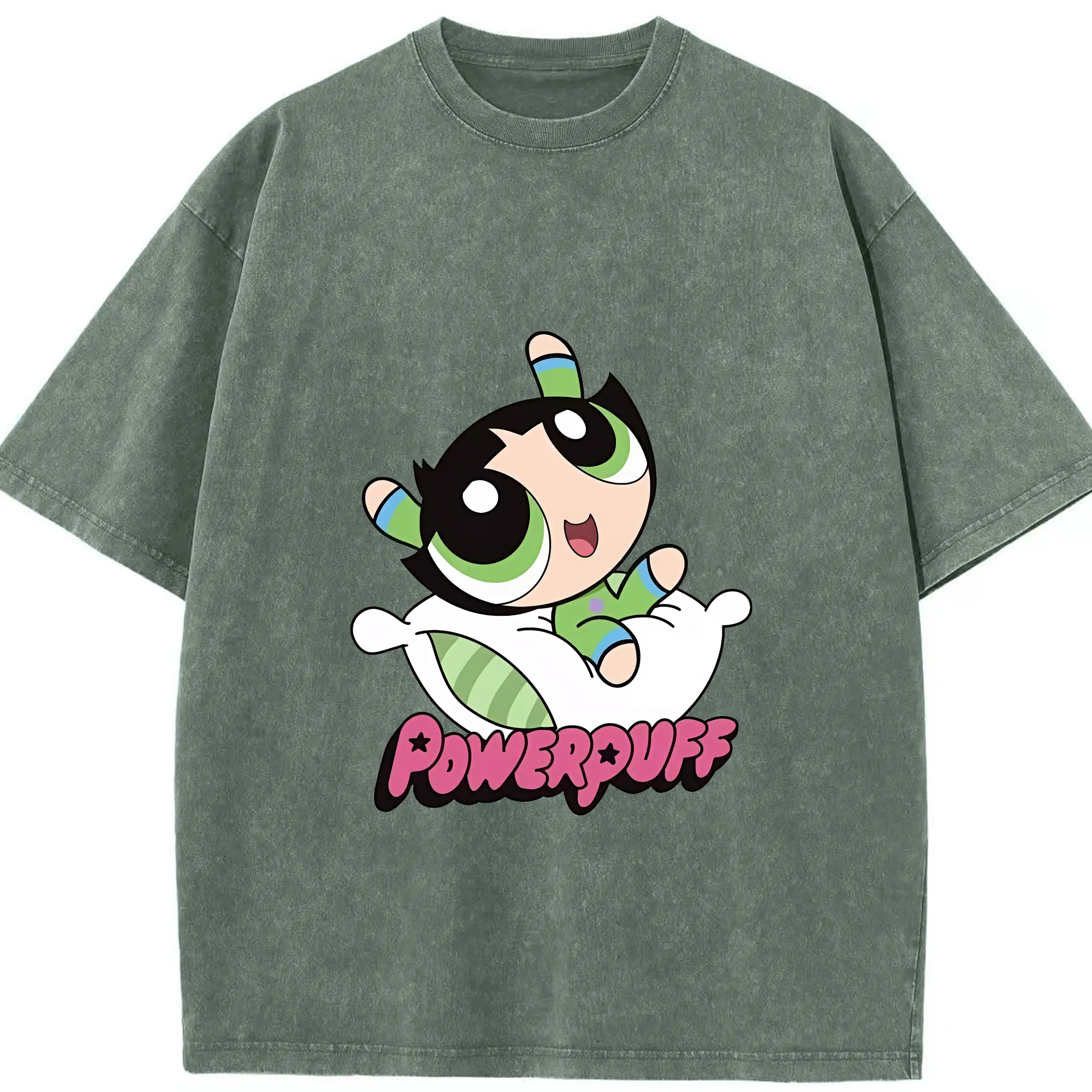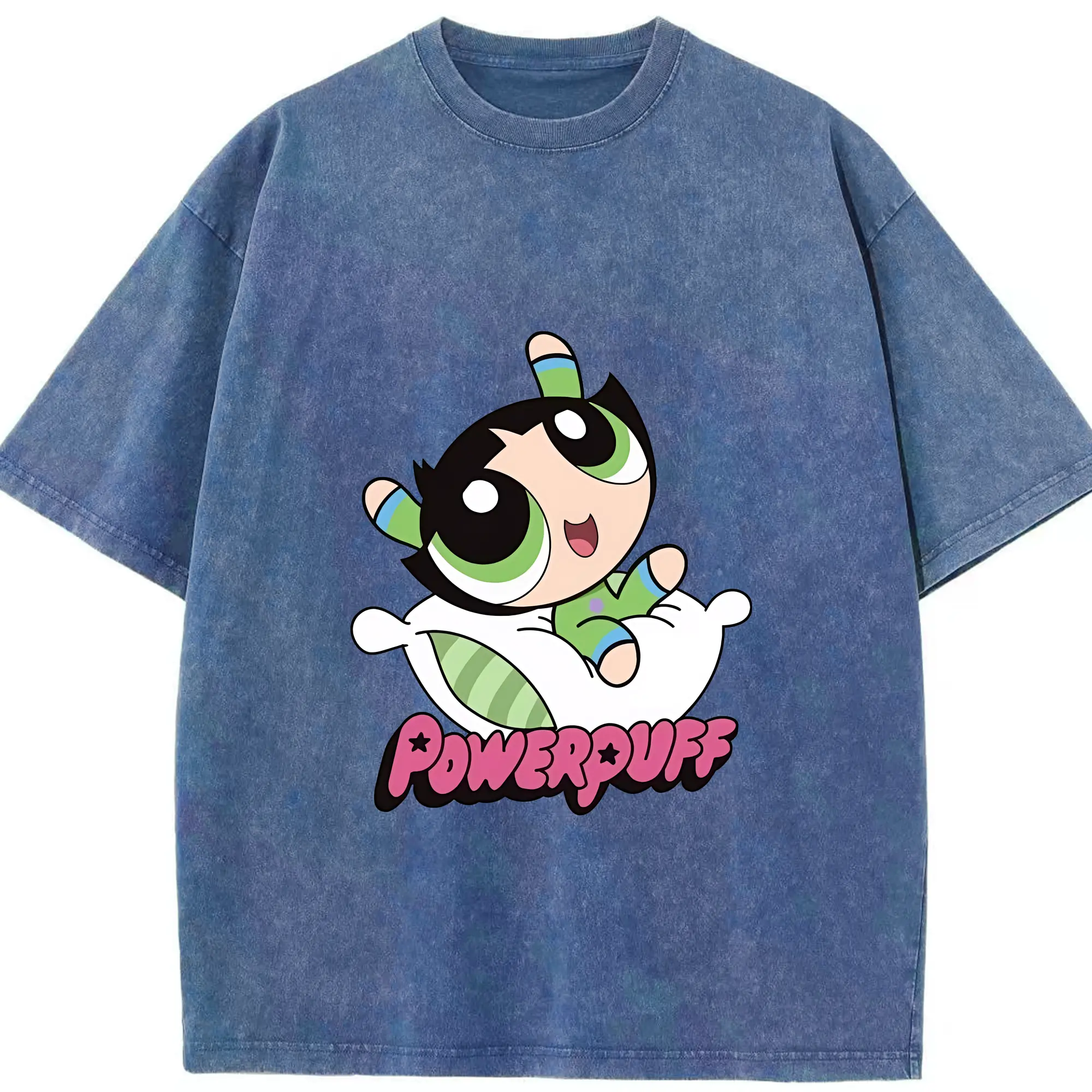 パワパフガールズ グッズ バターカップ - 綿100% ヴィンテージ風 半袖Tシャツ ・ 背面プリント ・ 柔らか肌触り ・ 通気性 快適 ・ スポーツ カジュアル 外出用