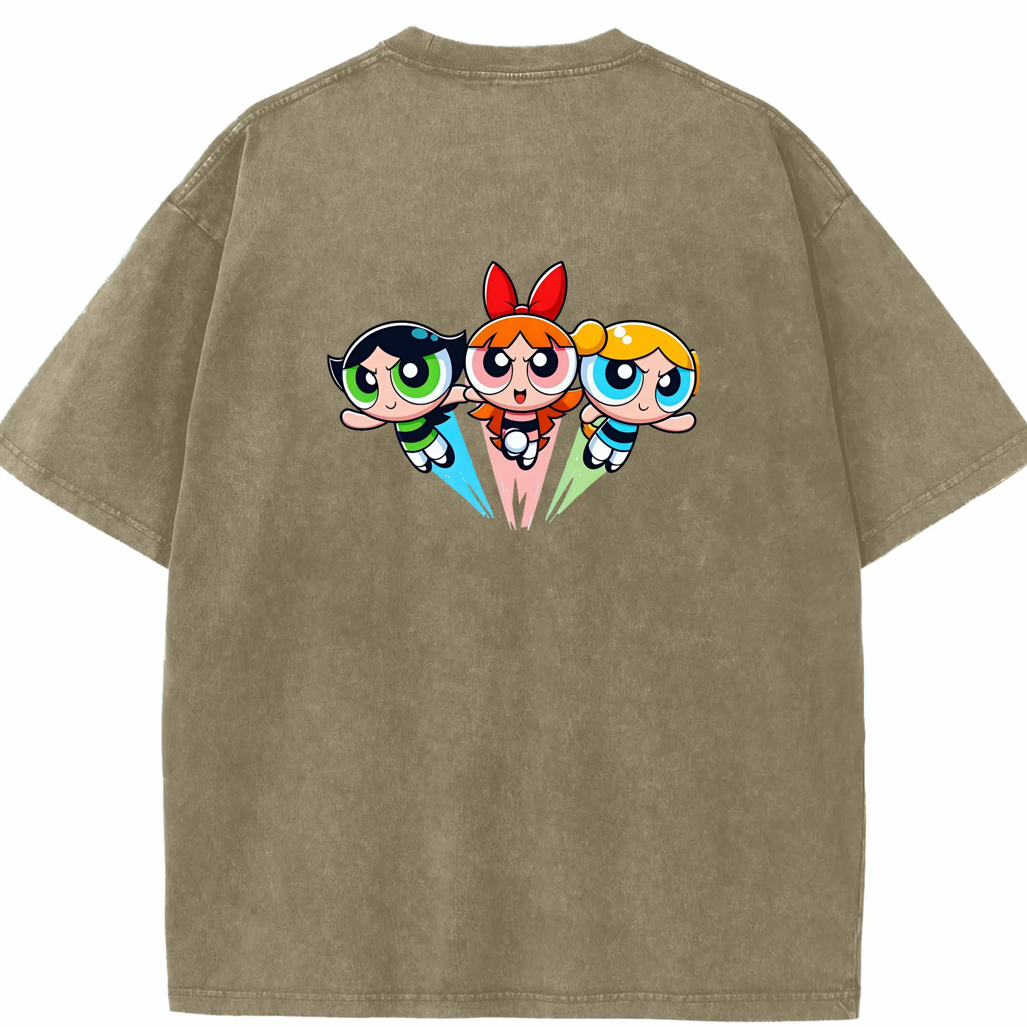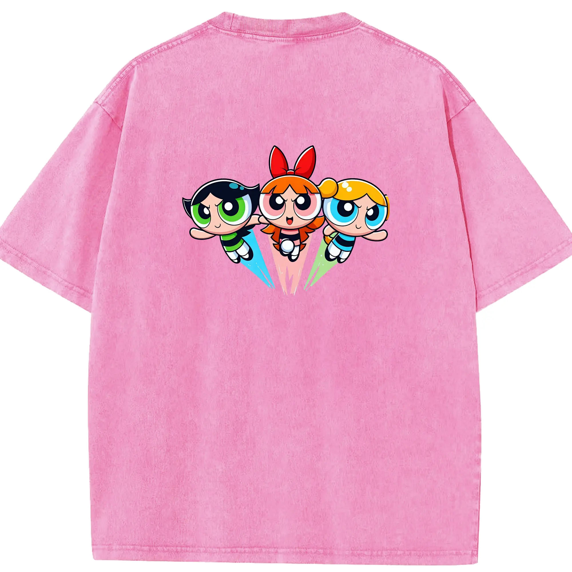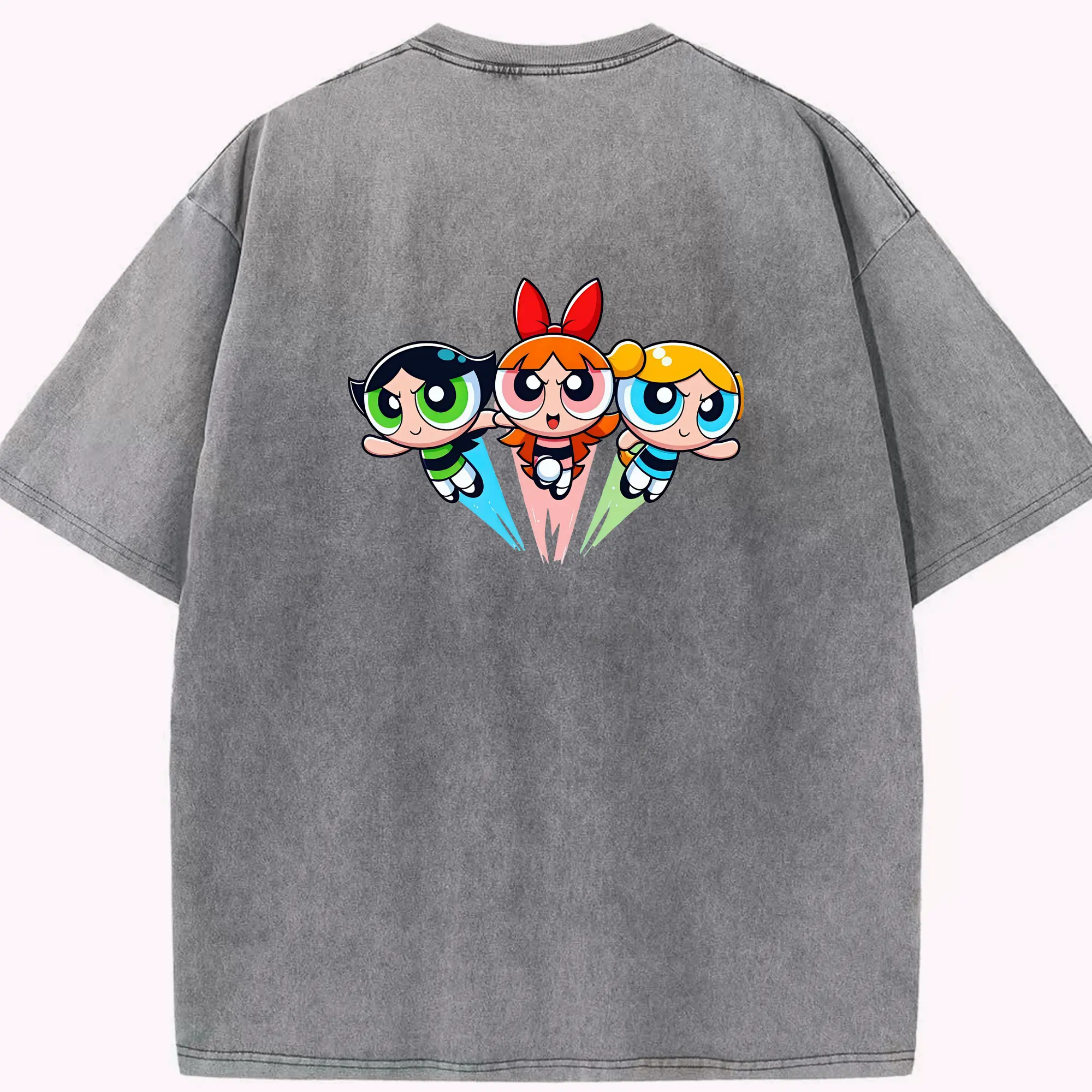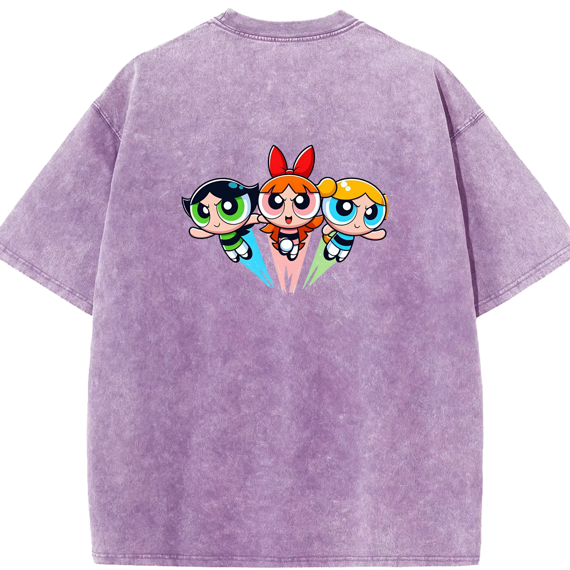パワパフガールズ グッズ バターカップ - 綿100% ヴィンテージ風 半袖Tシャツ ・ フロントプリント ・ 柔らか肌触り ・ 通気性 快適 ・ スポーツ カジュアル 外出用
