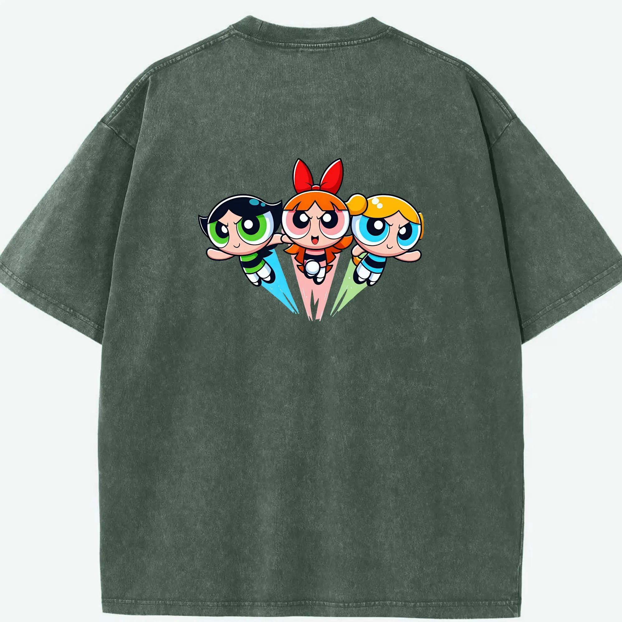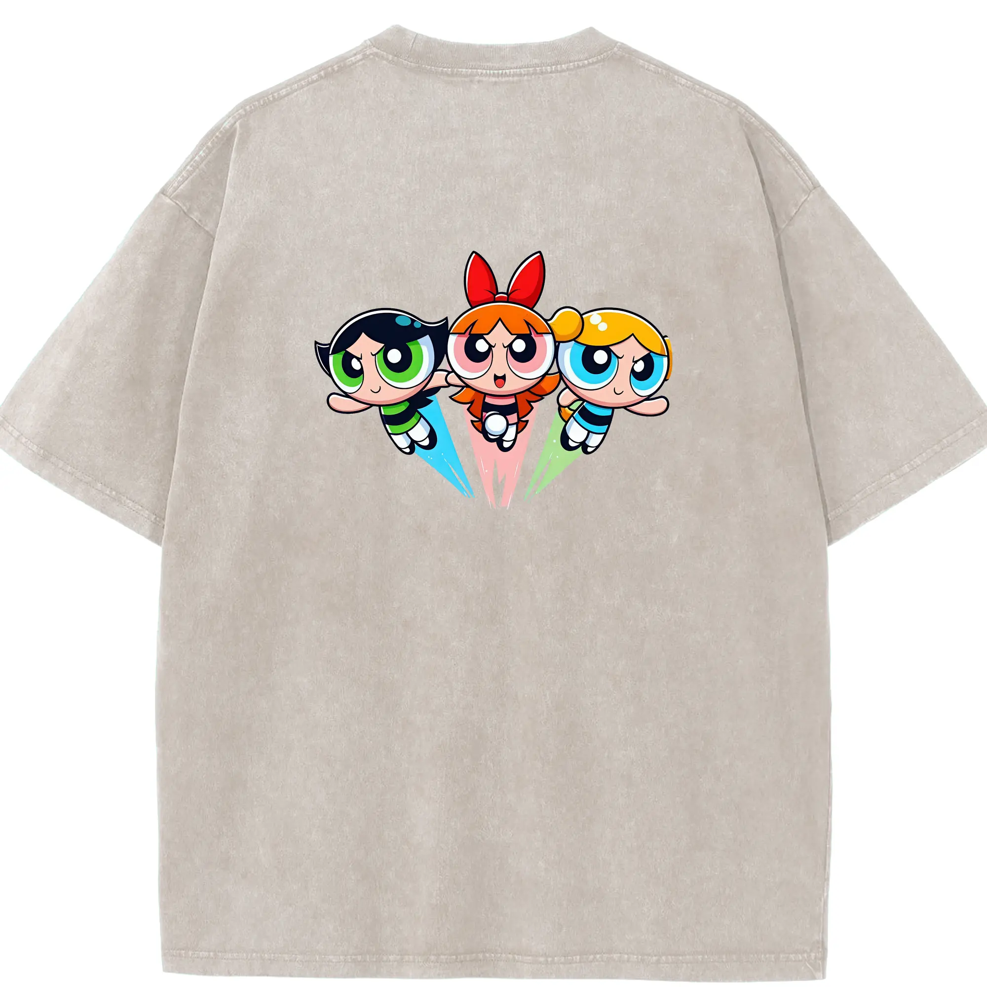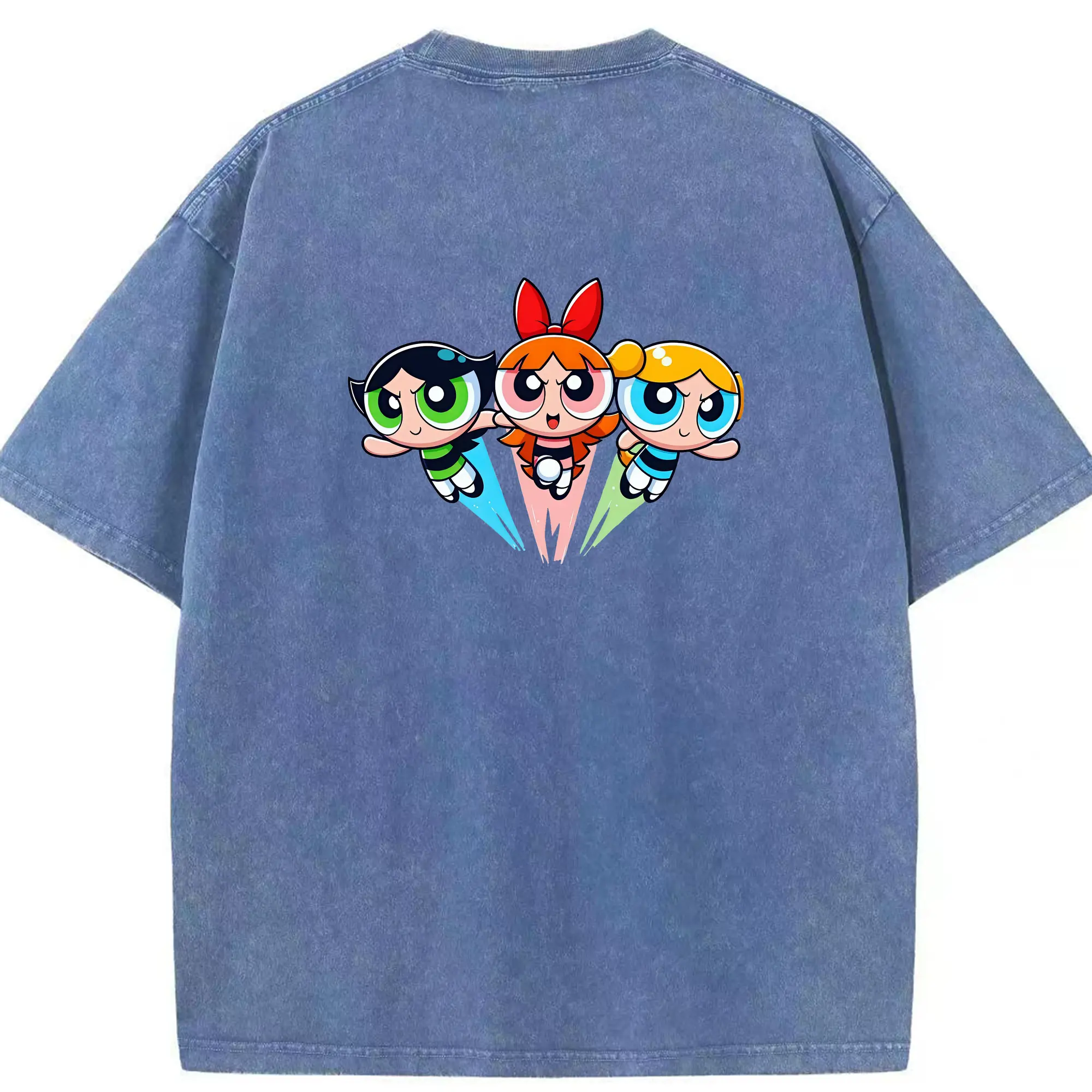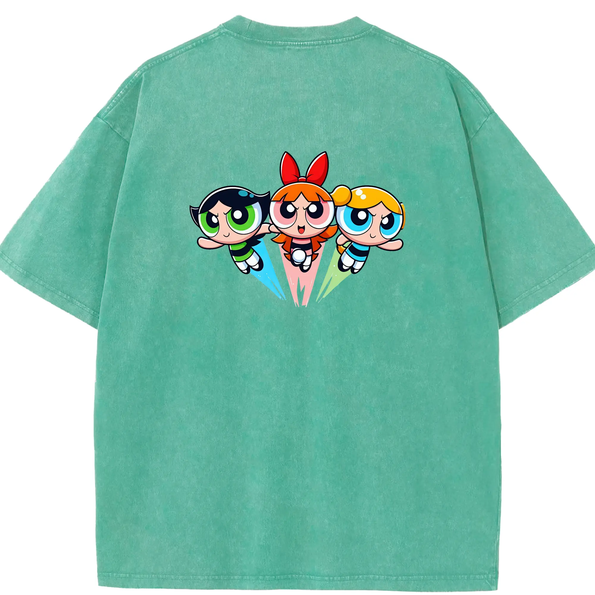 パワパフガールズ グッズ バターカップ - 綿100% ヴィンテージ風 半袖Tシャツ ・ フロントプリント ・ 柔らか肌触り ・ 通気性 快適 ・ スポーツ カジュアル 外出用