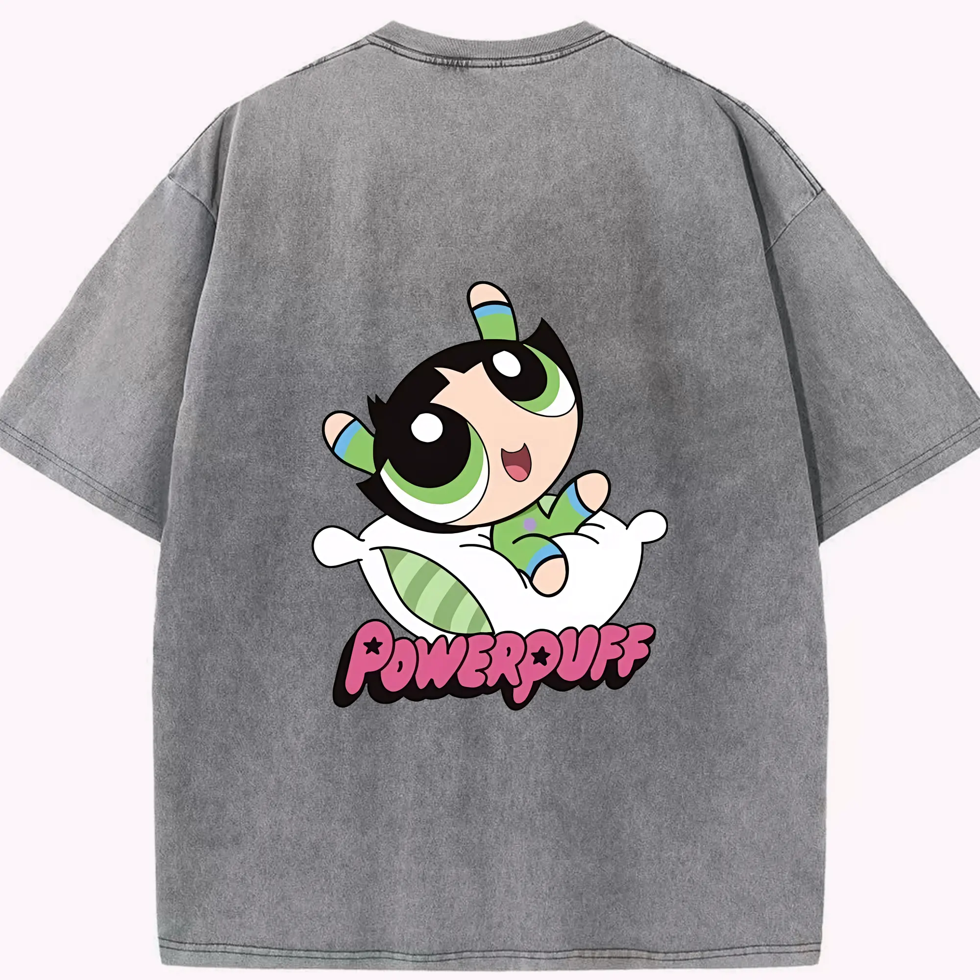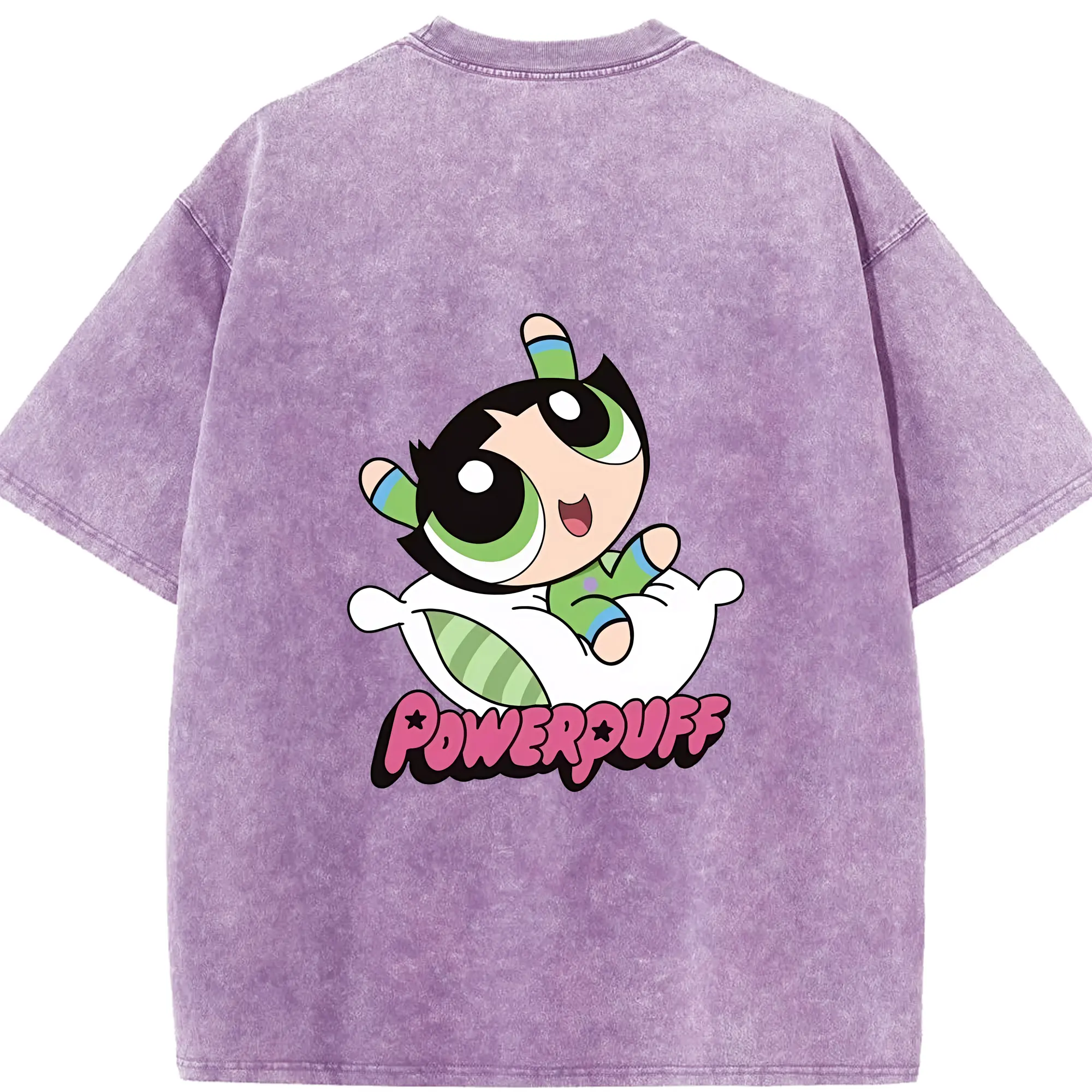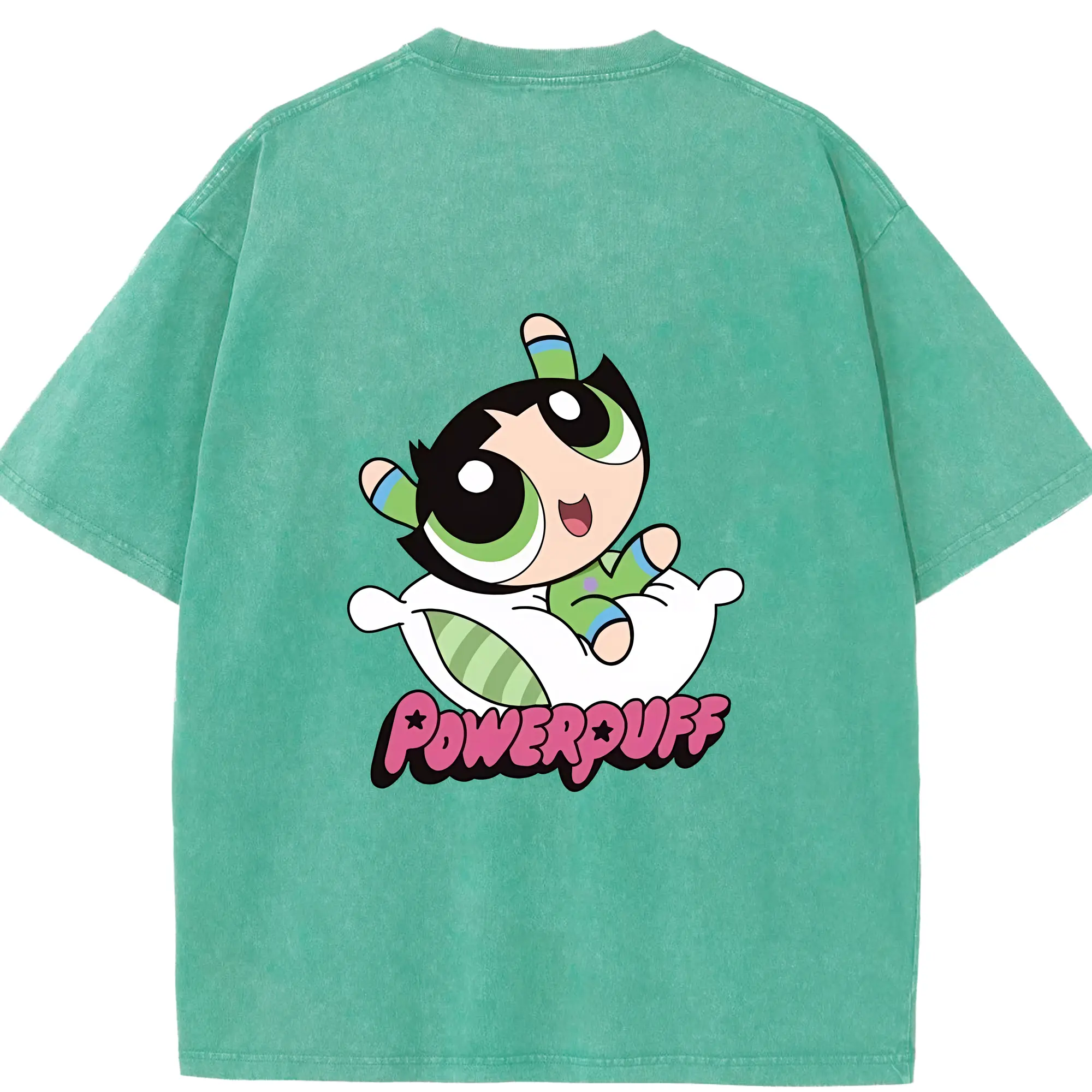 パワパフガールズ グッズ バターカップ - 綿100% ヴィンテージ風 半袖Tシャツ ・ フロントプリント ・ 柔らか肌触り ・ 通気性 快適 ・ スポーツ カジュアル 外出用