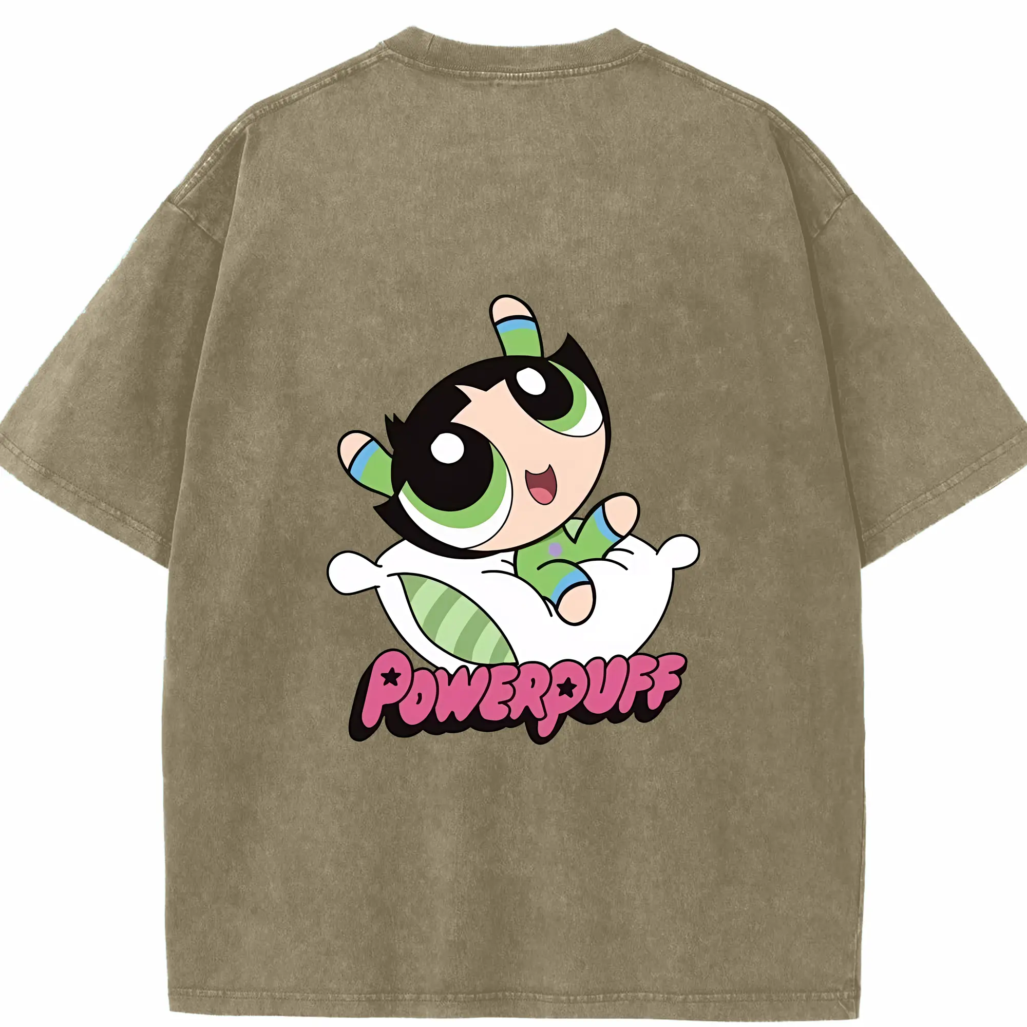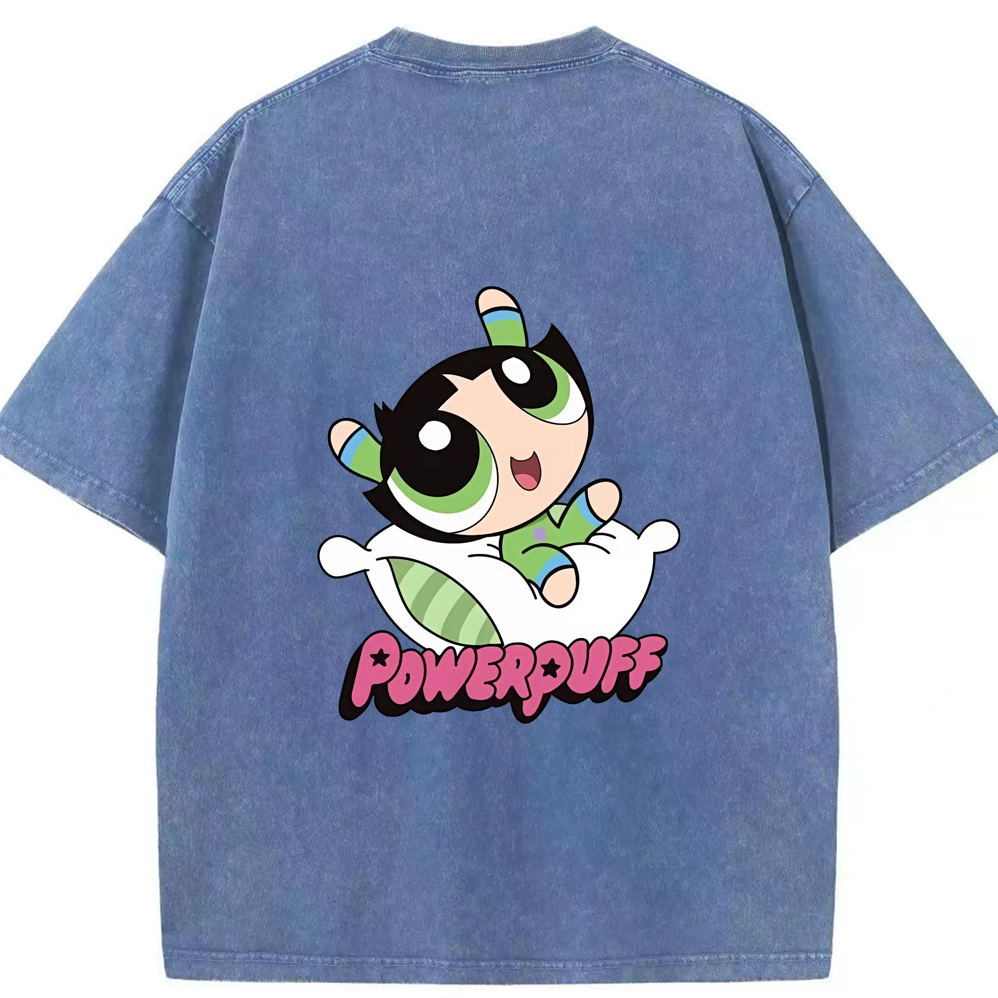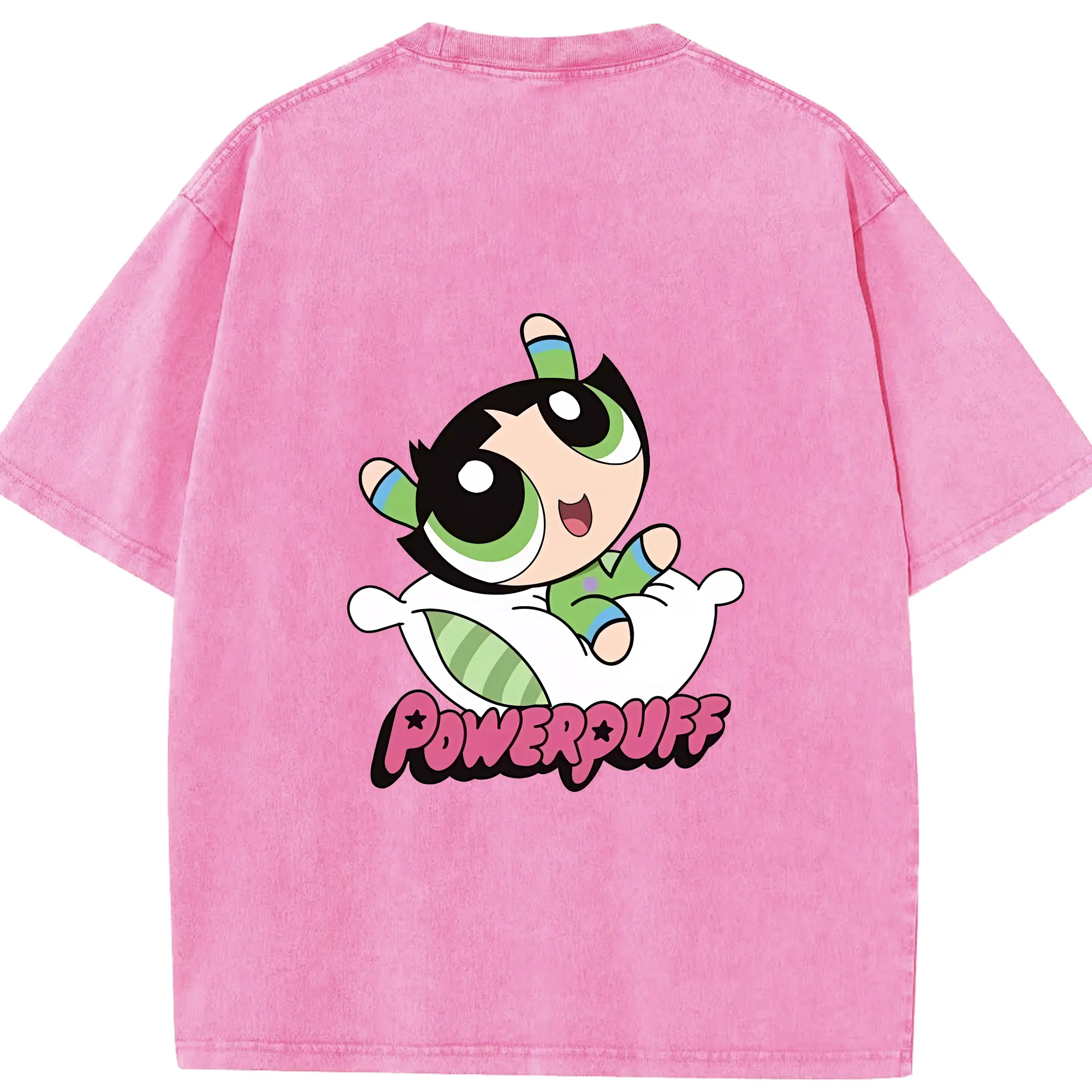 パワパフガールズ グッズ バターカップ - 綿100% ヴィンテージ風 半袖Tシャツ ・ フロントプリント ・ 柔らか肌触り ・ 通気性 快適 ・ スポーツ カジュアル 外出用