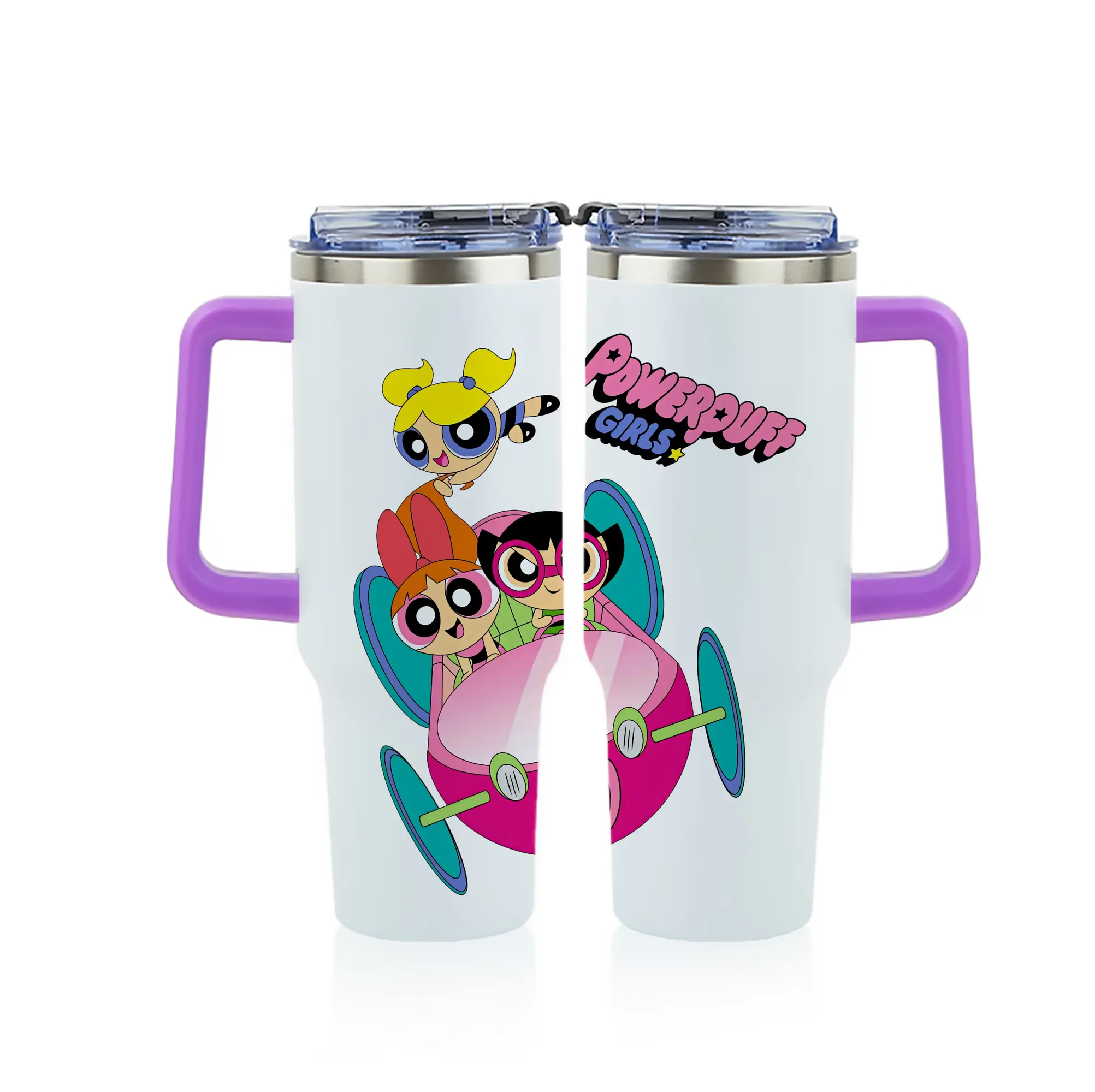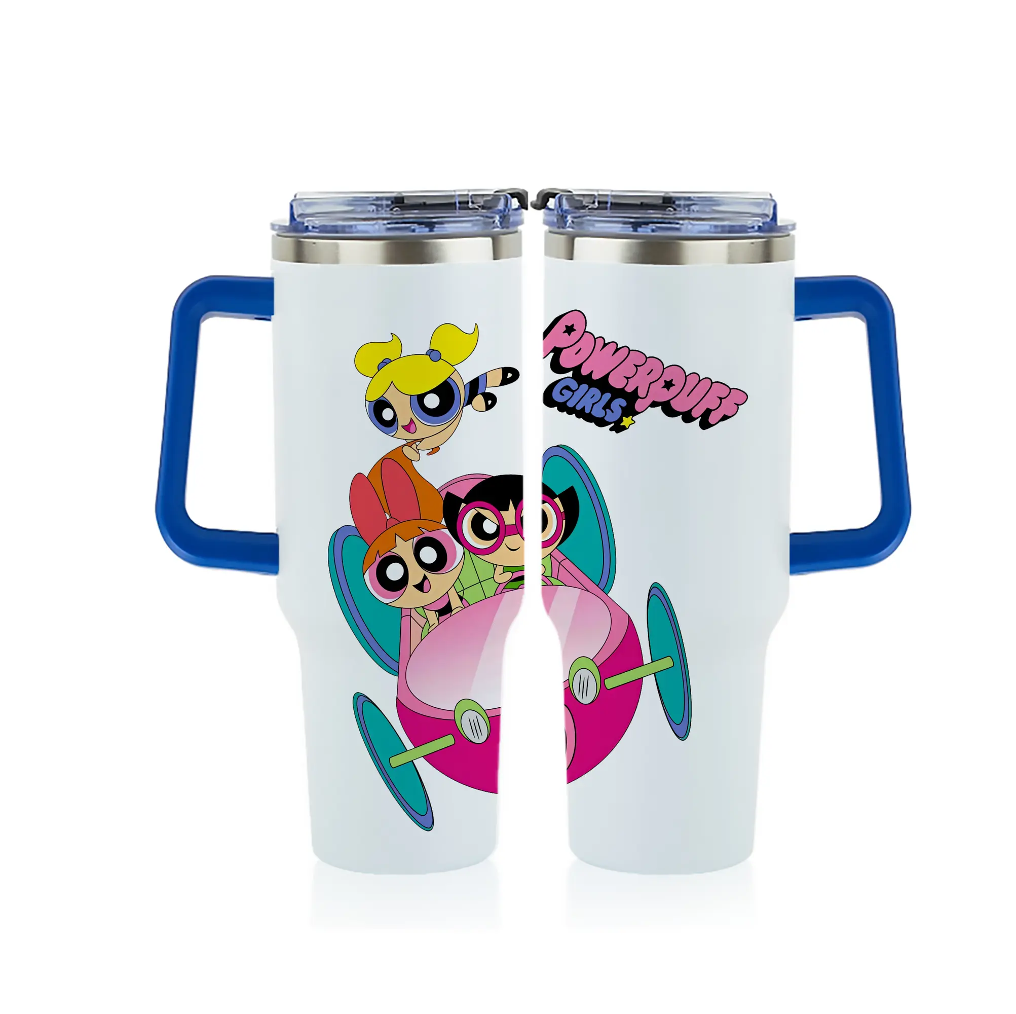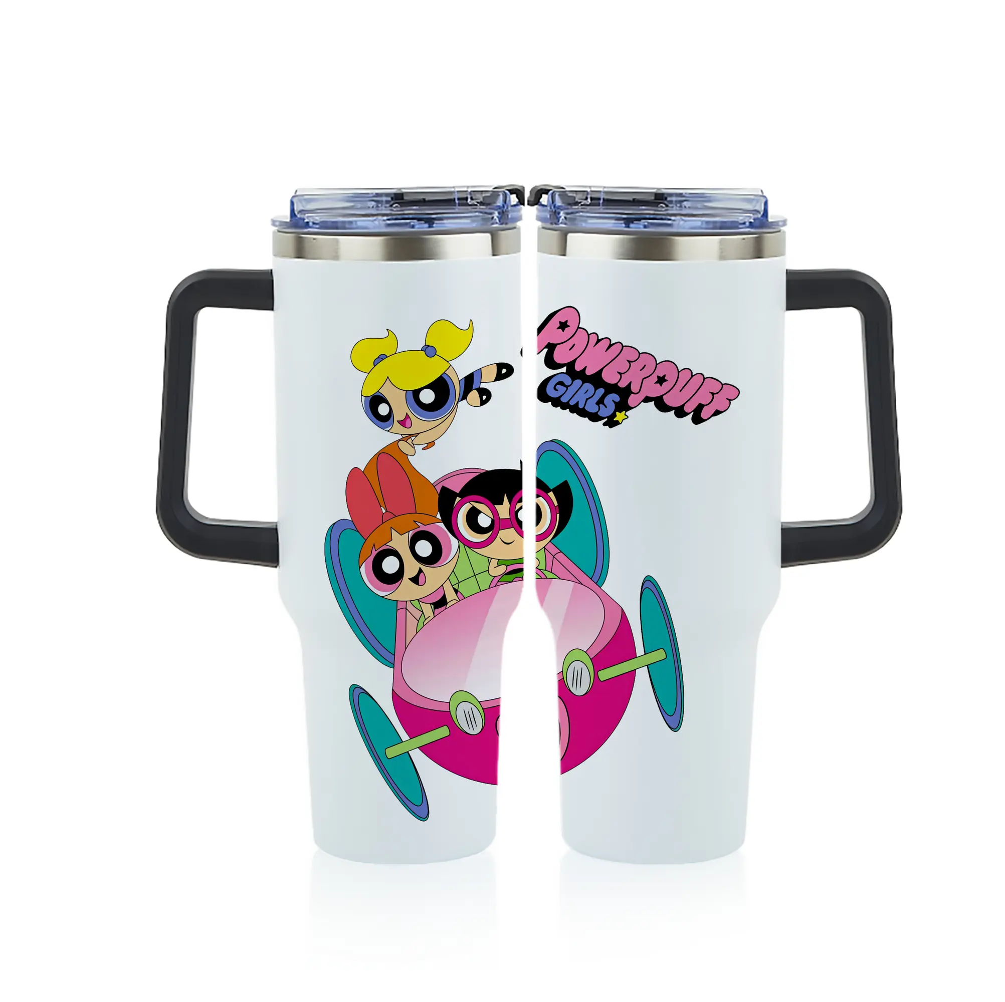 パワパフガールズ グッズ バブルス - 1200mL フルプリント車用タンブラー ・ 304ステンレス 内側 ・ 201ステンレス 外側 ・ 保温 保冷 ・ 通勤 ドライブ アウトドア用