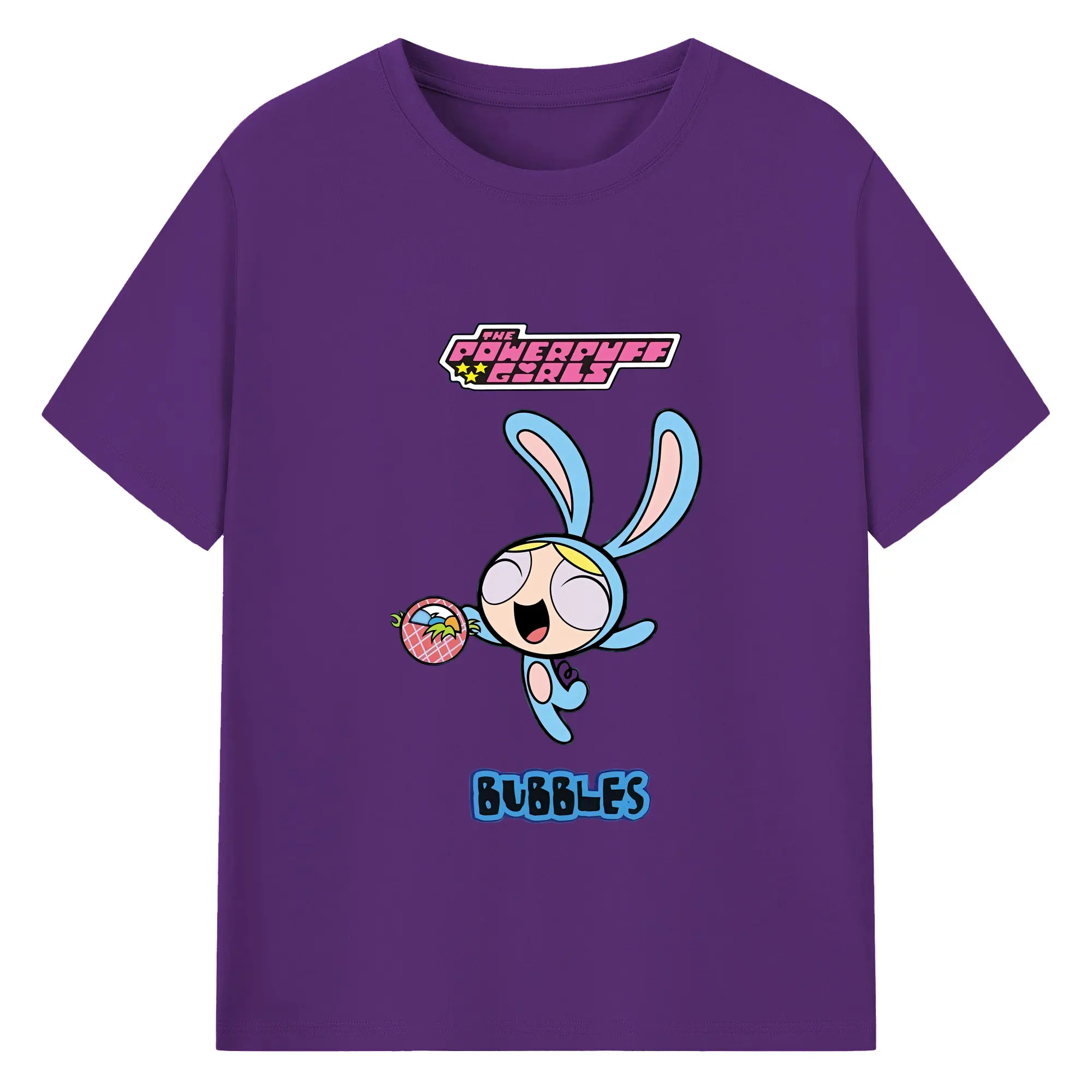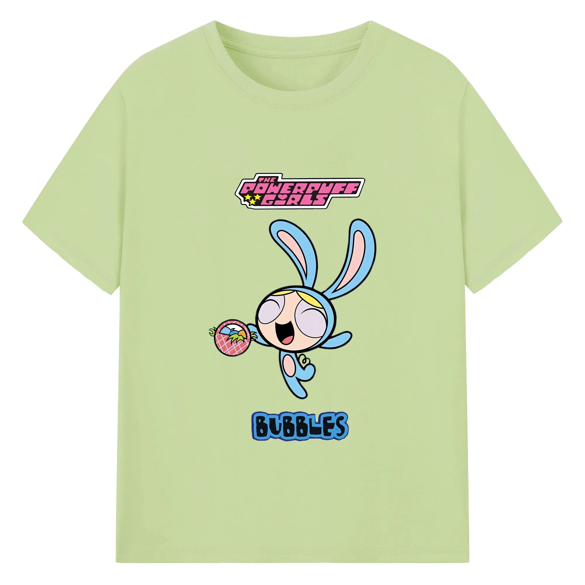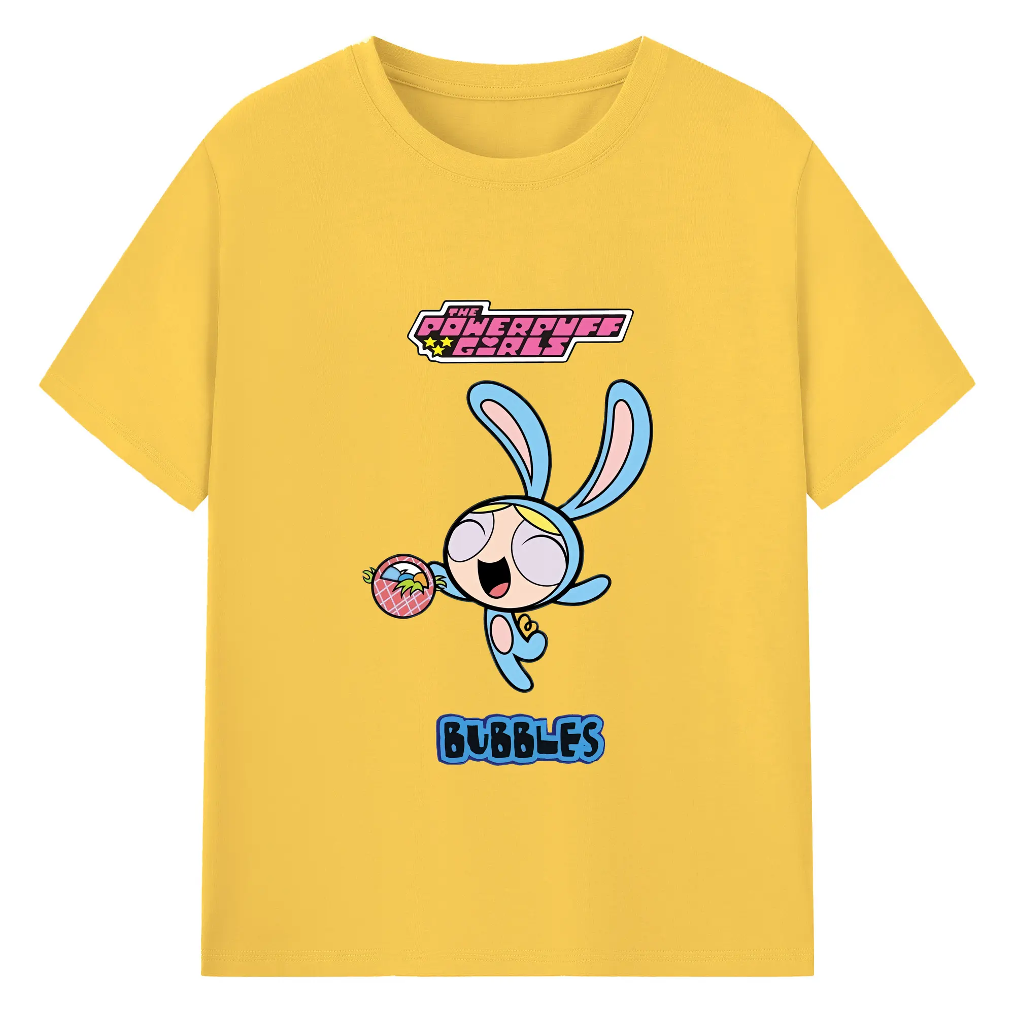パワパフガールズ グッズ バブルス - 綿100% キッズTシャツ ・ フロントプリント ・ 快適 通気性 ・ スポーツ カジュアル 散歩用