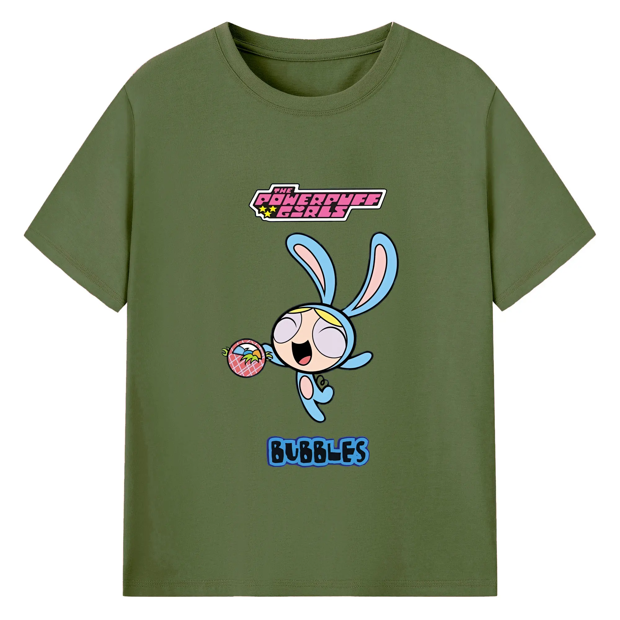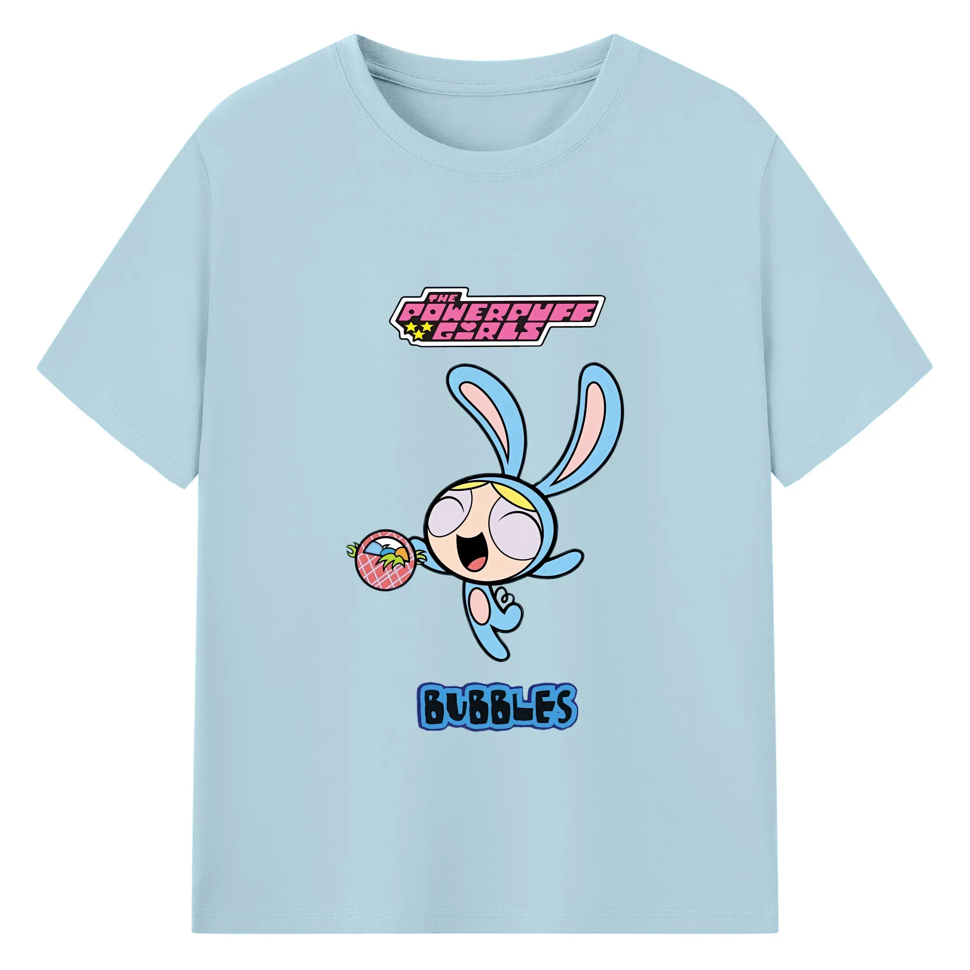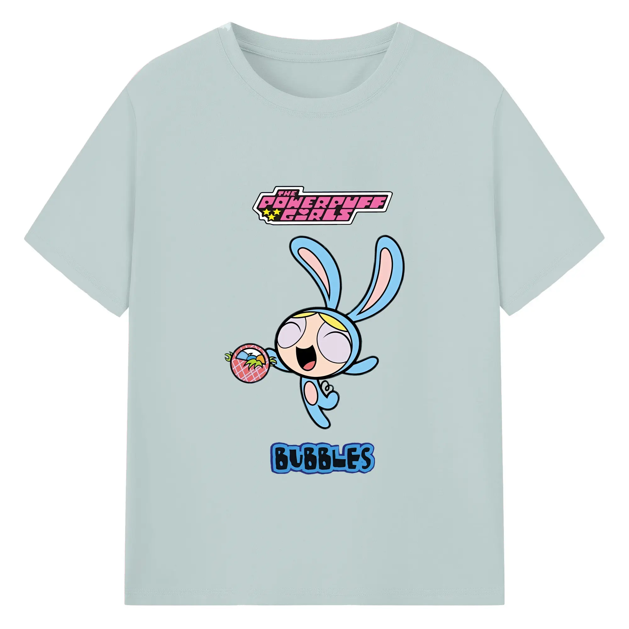 パワパフガールズ グッズ バブルス - 綿100% キッズTシャツ ・ フロントプリント ・ 快適 通気性 ・ スポーツ カジュアル 散歩用