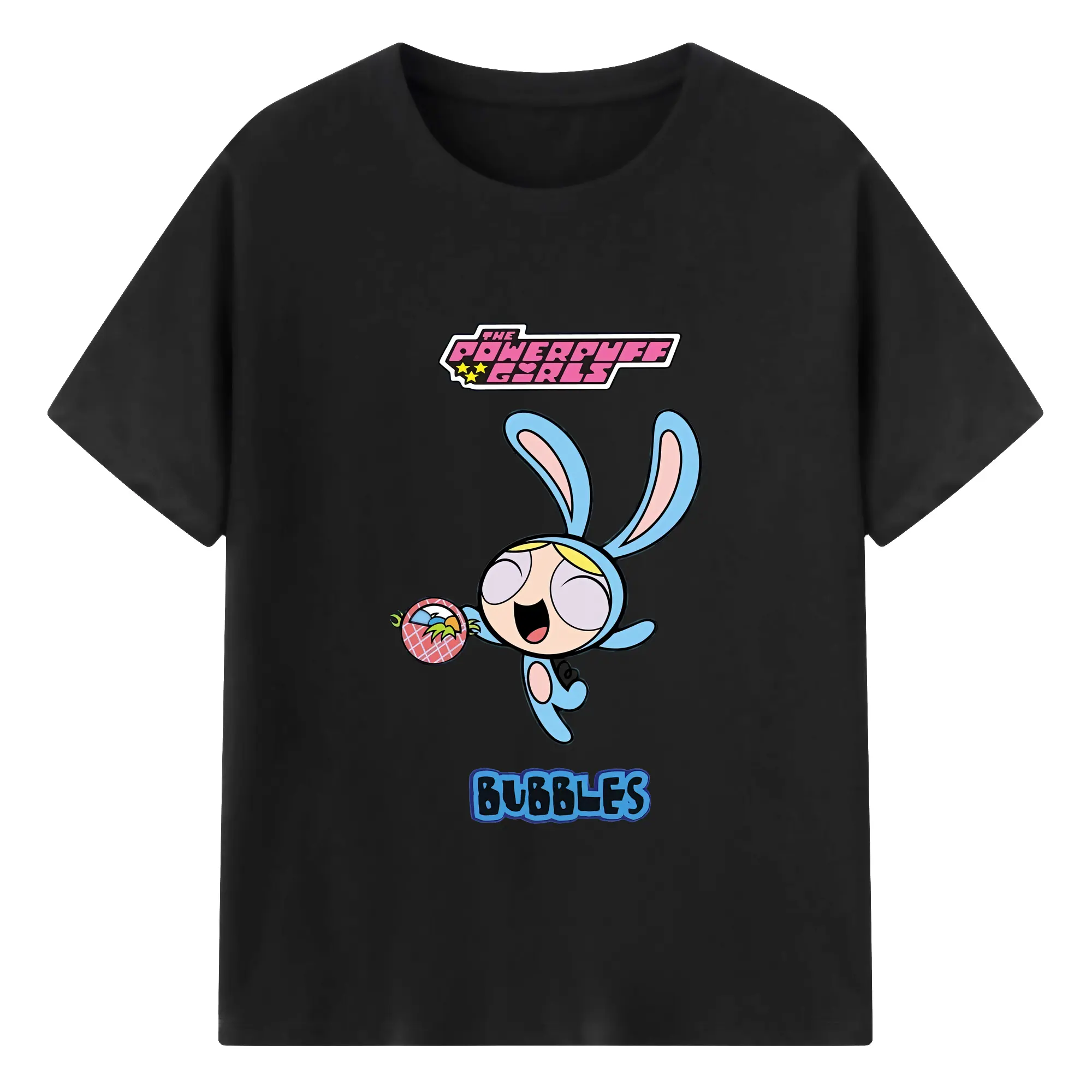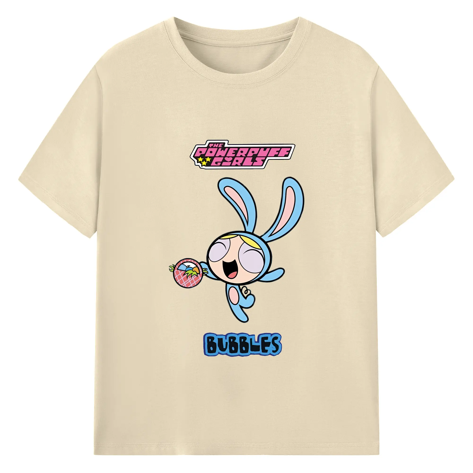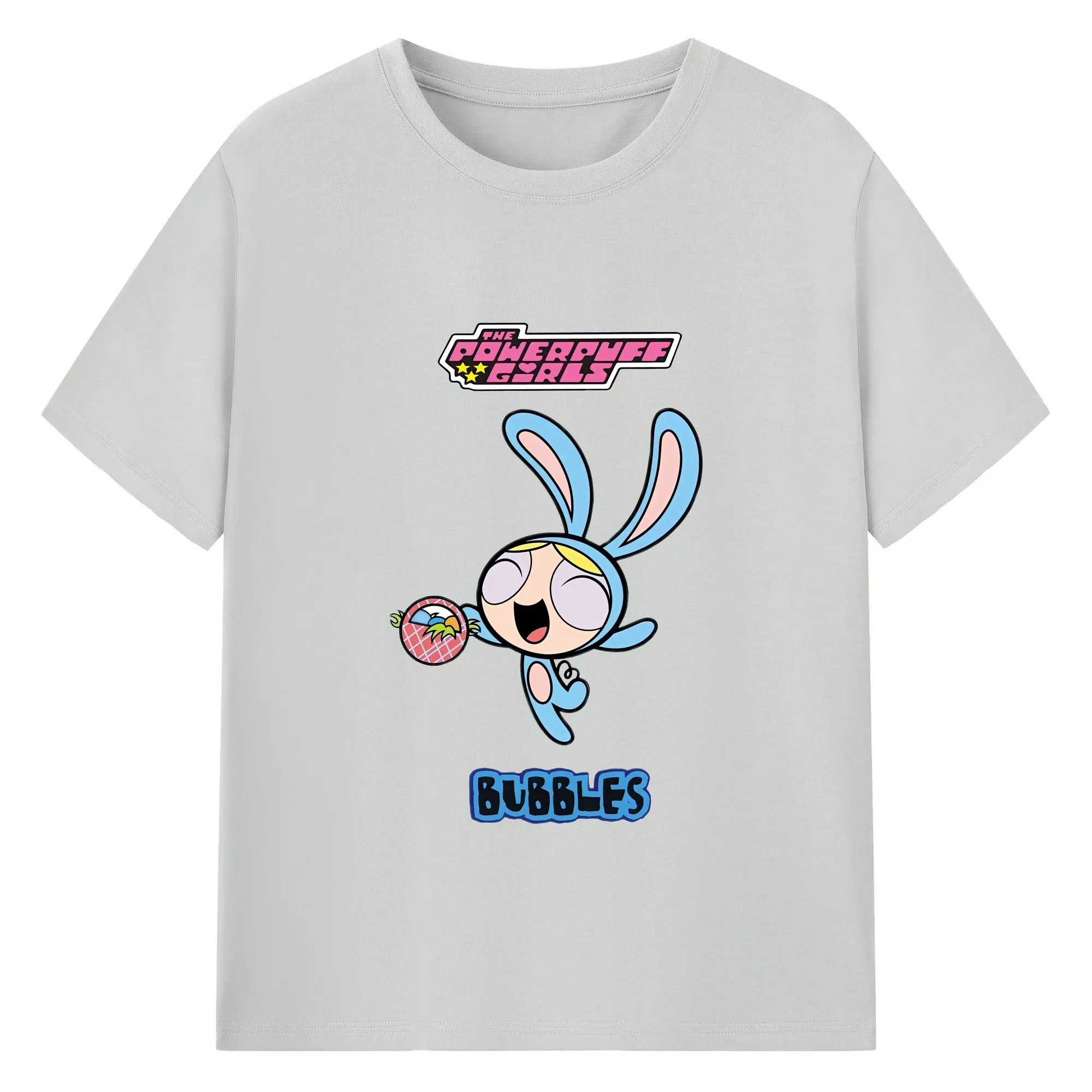 パワパフガールズ グッズ バブルス - 綿100% 半袖Tシャツ ・ バックプリント ・ 快適 通気性 ・ 日常使い 散歩 スポーツ用