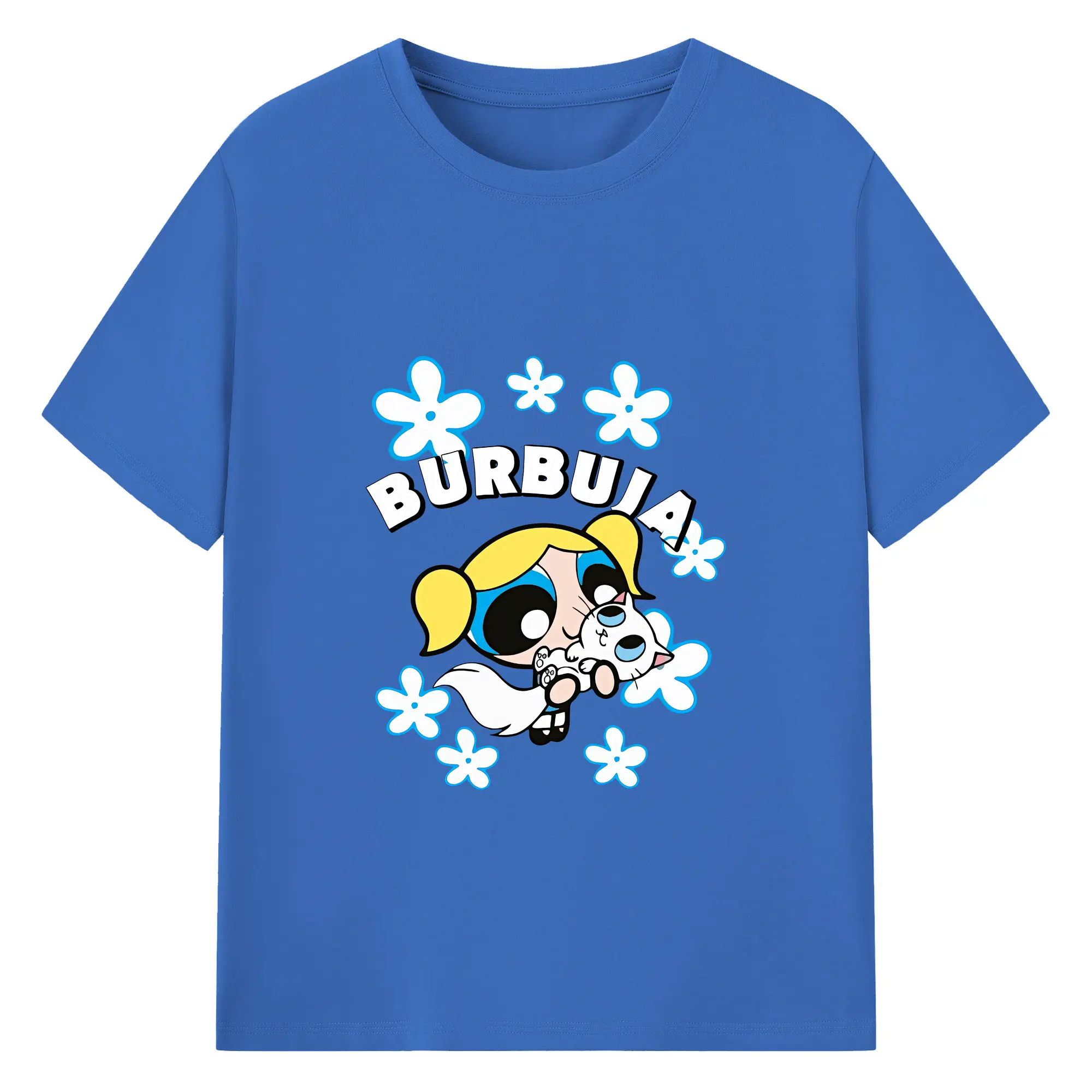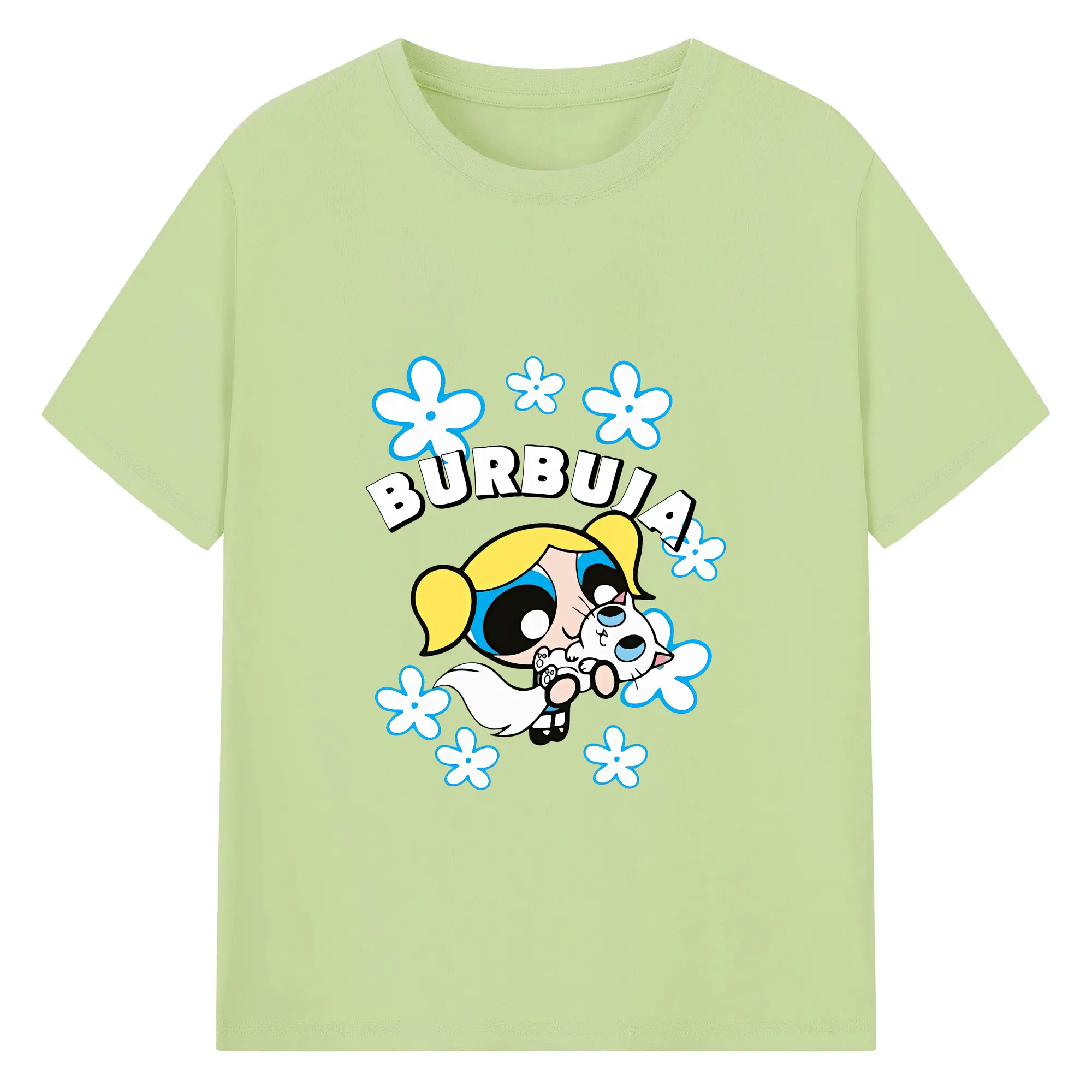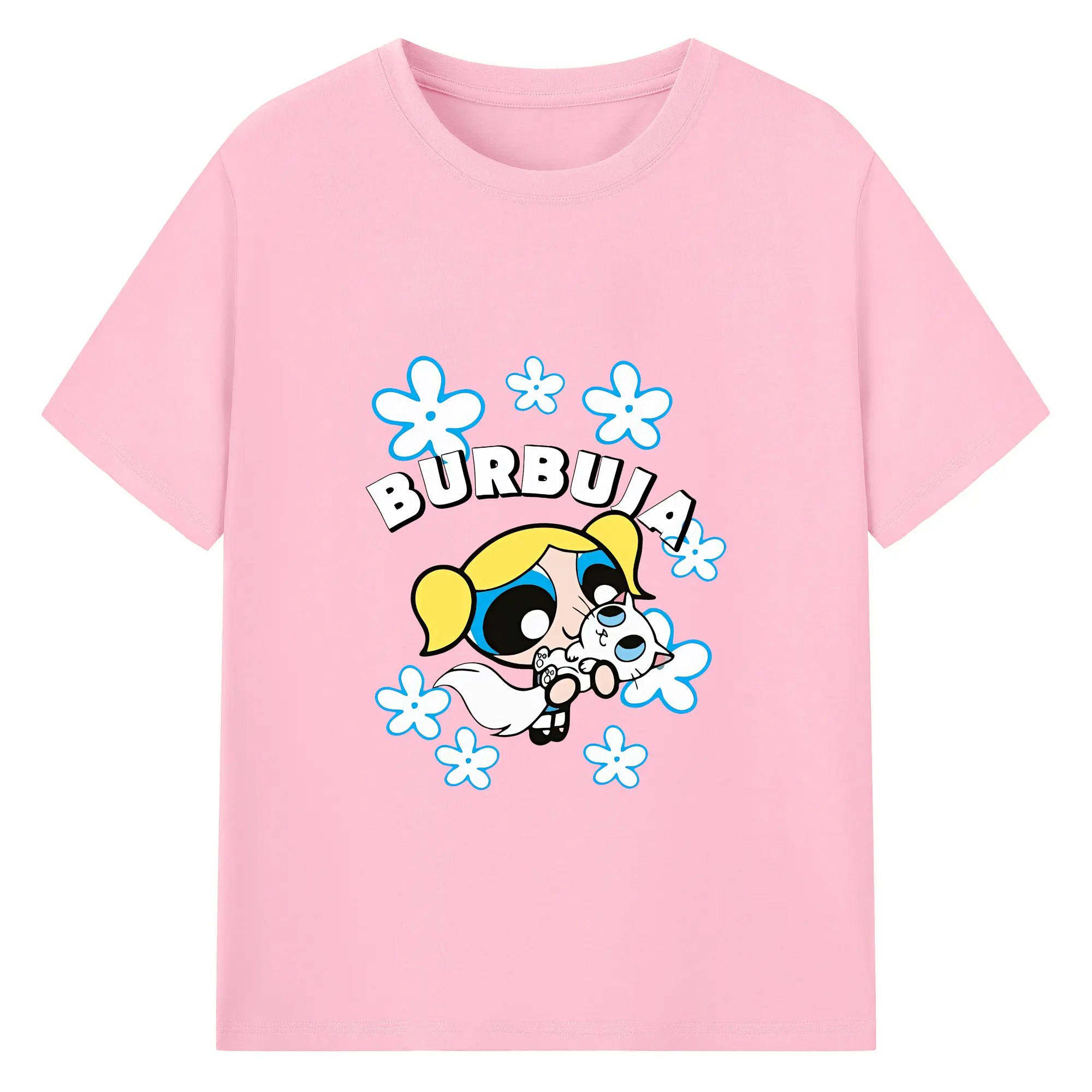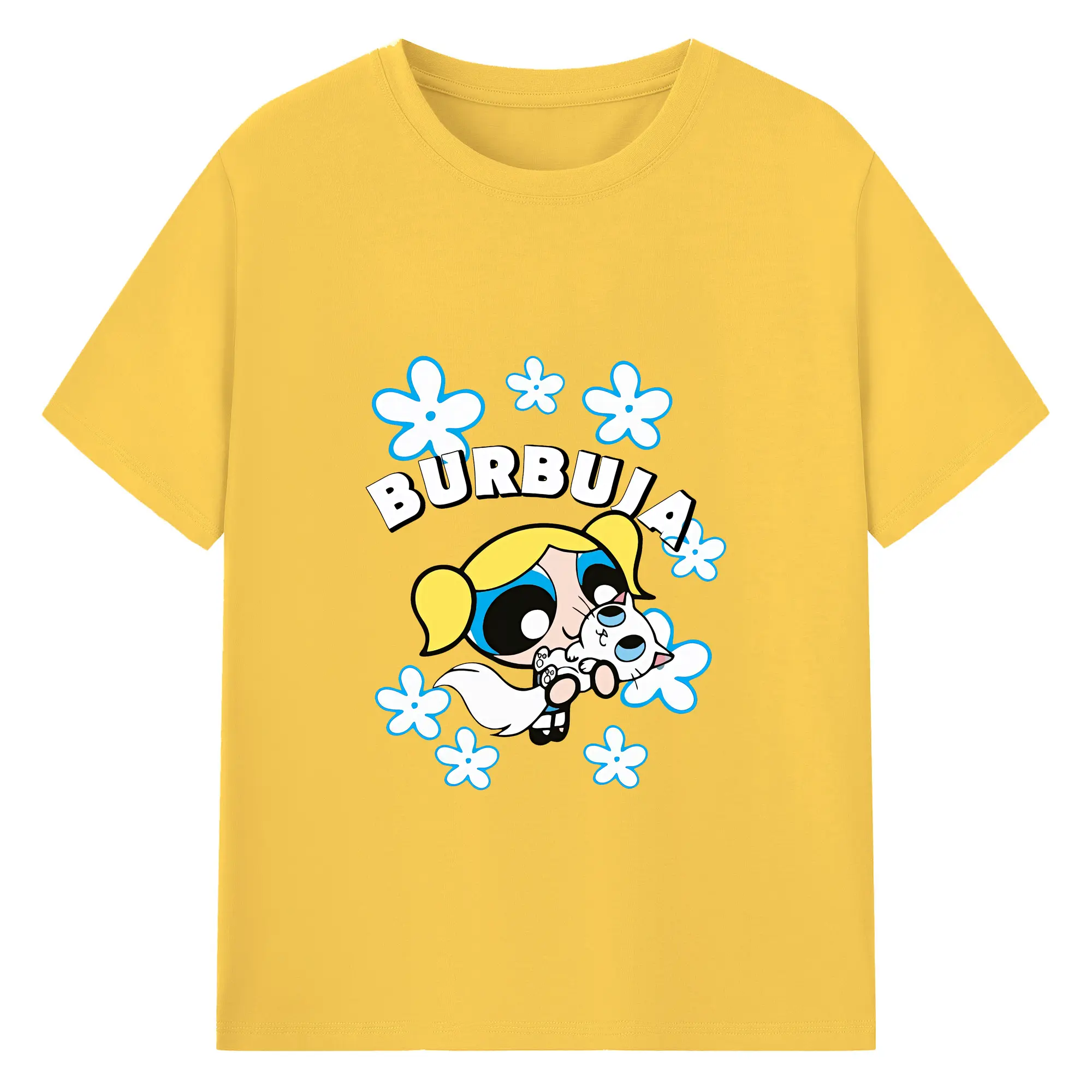 パワパフガールズ グッズ バブルス - 綿100% 半袖Tシャツ ・ バックプリント ・ 快適 通気性 ・ 日常使い 散歩 スポーツ用