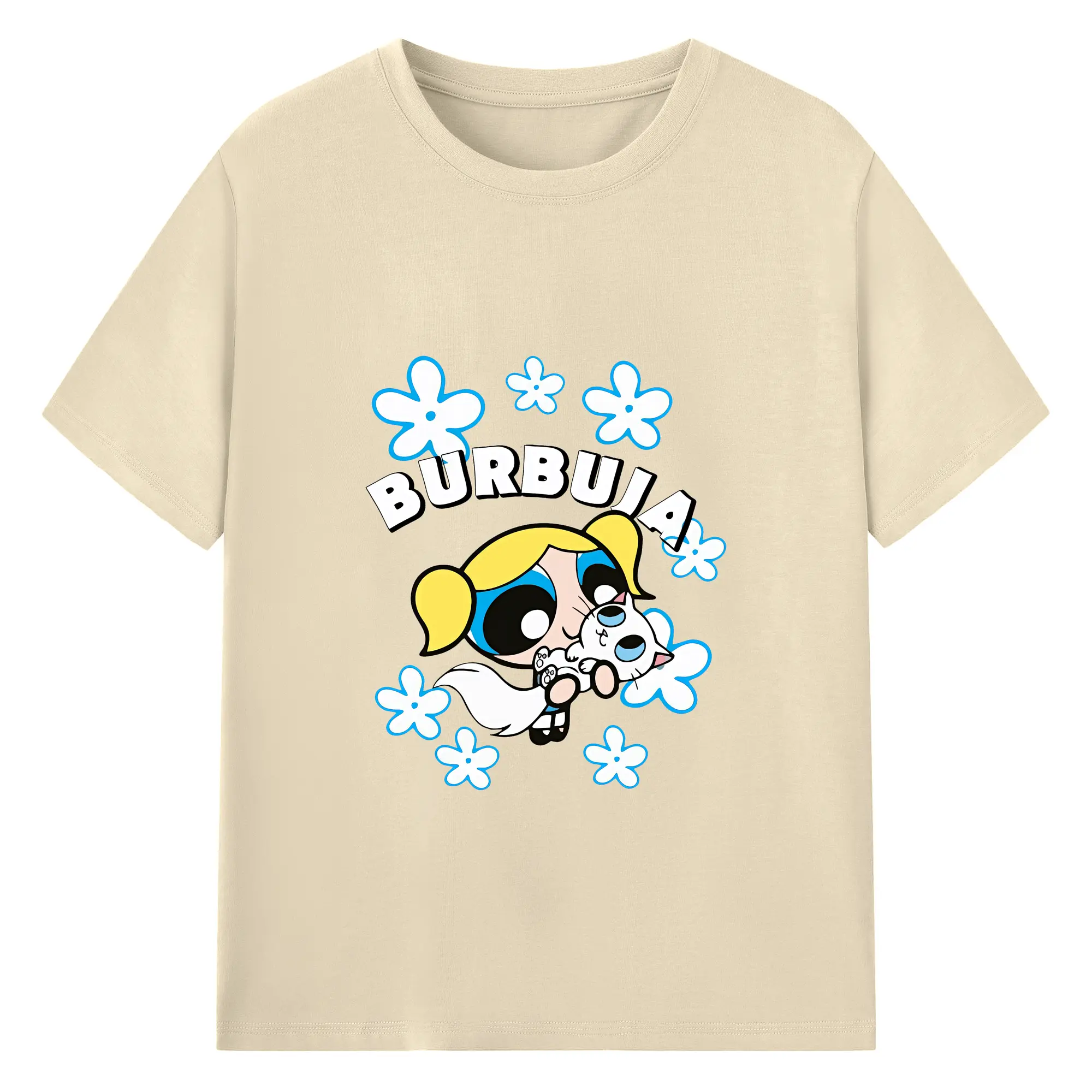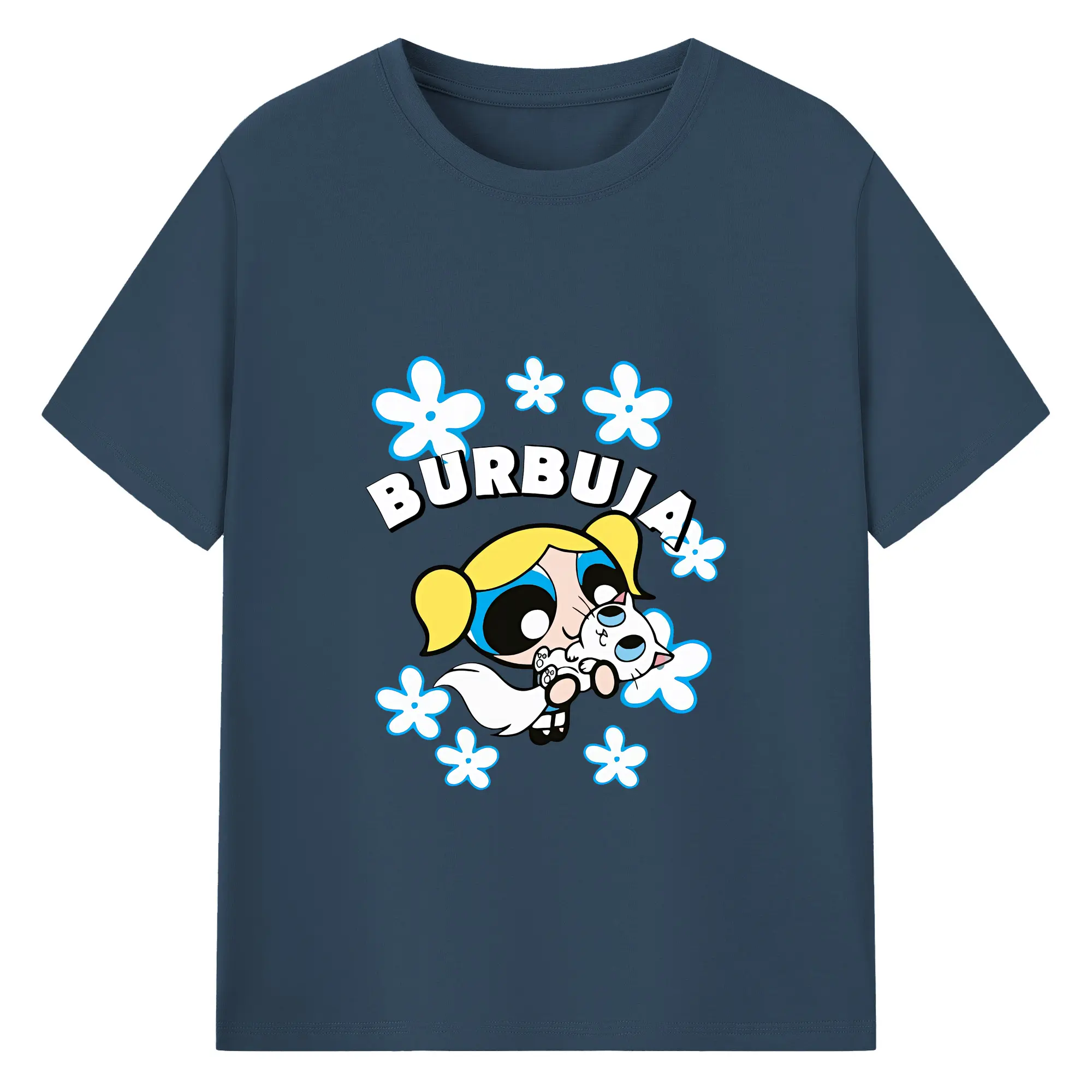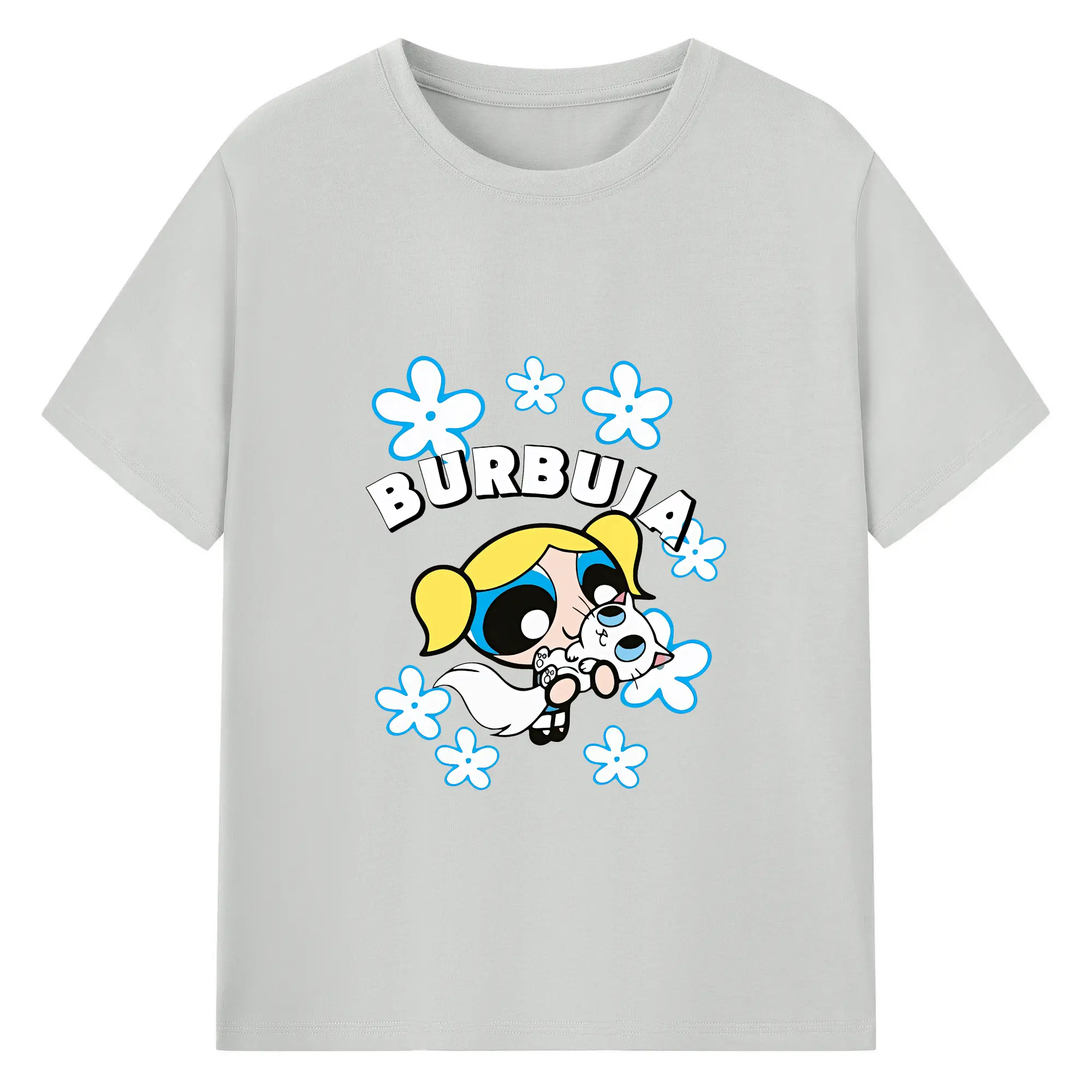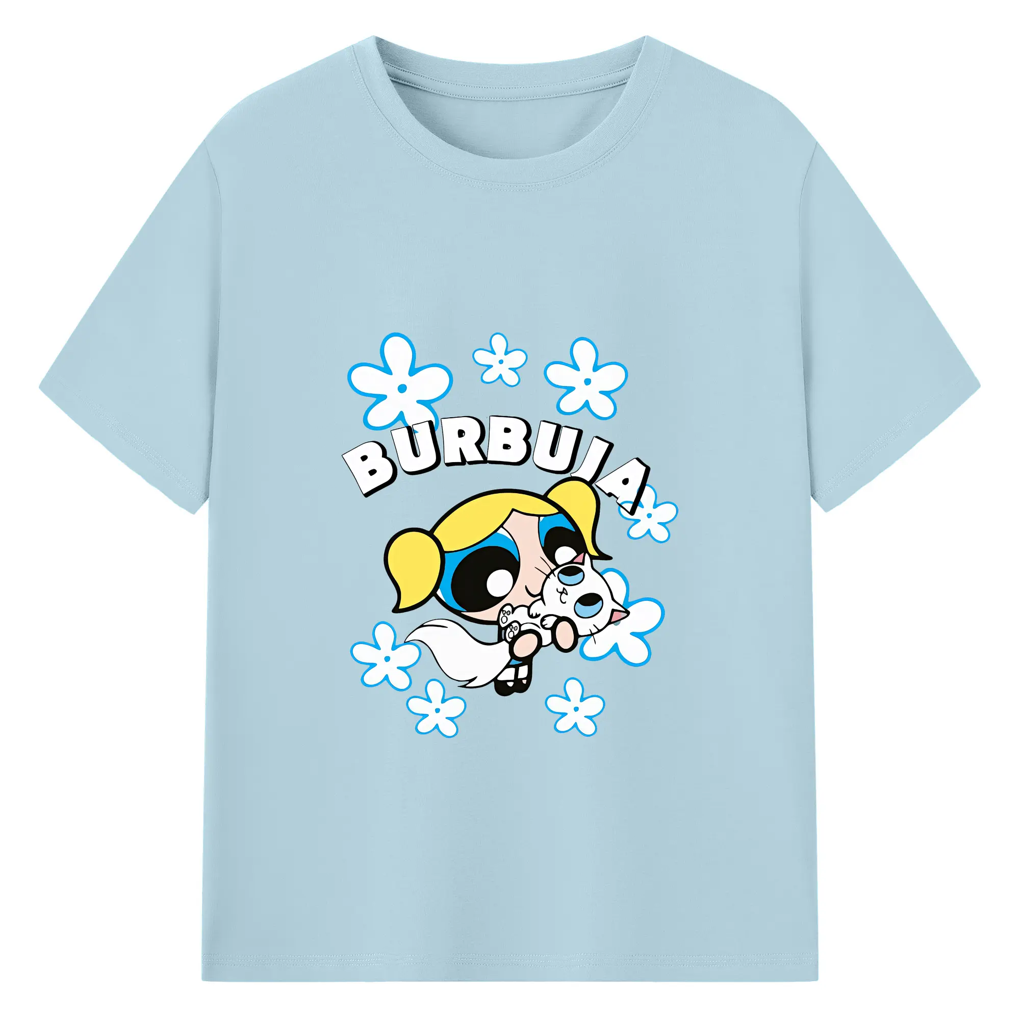 パワパフガールズ グッズ バブルス - 綿100% 半袖Tシャツ ・ バックプリント ・ 快適 通気性 ・ 日常使い 散歩 スポーツ用