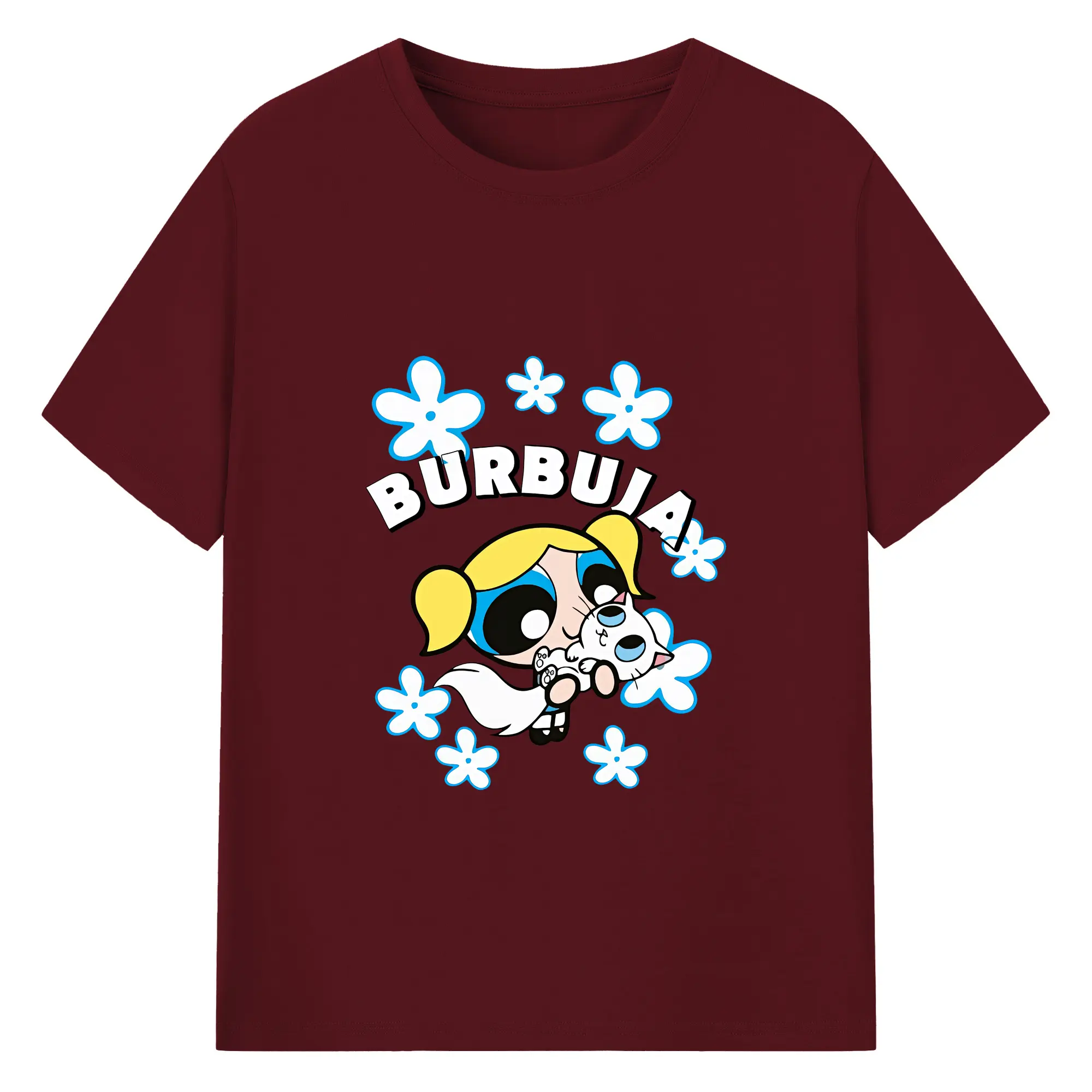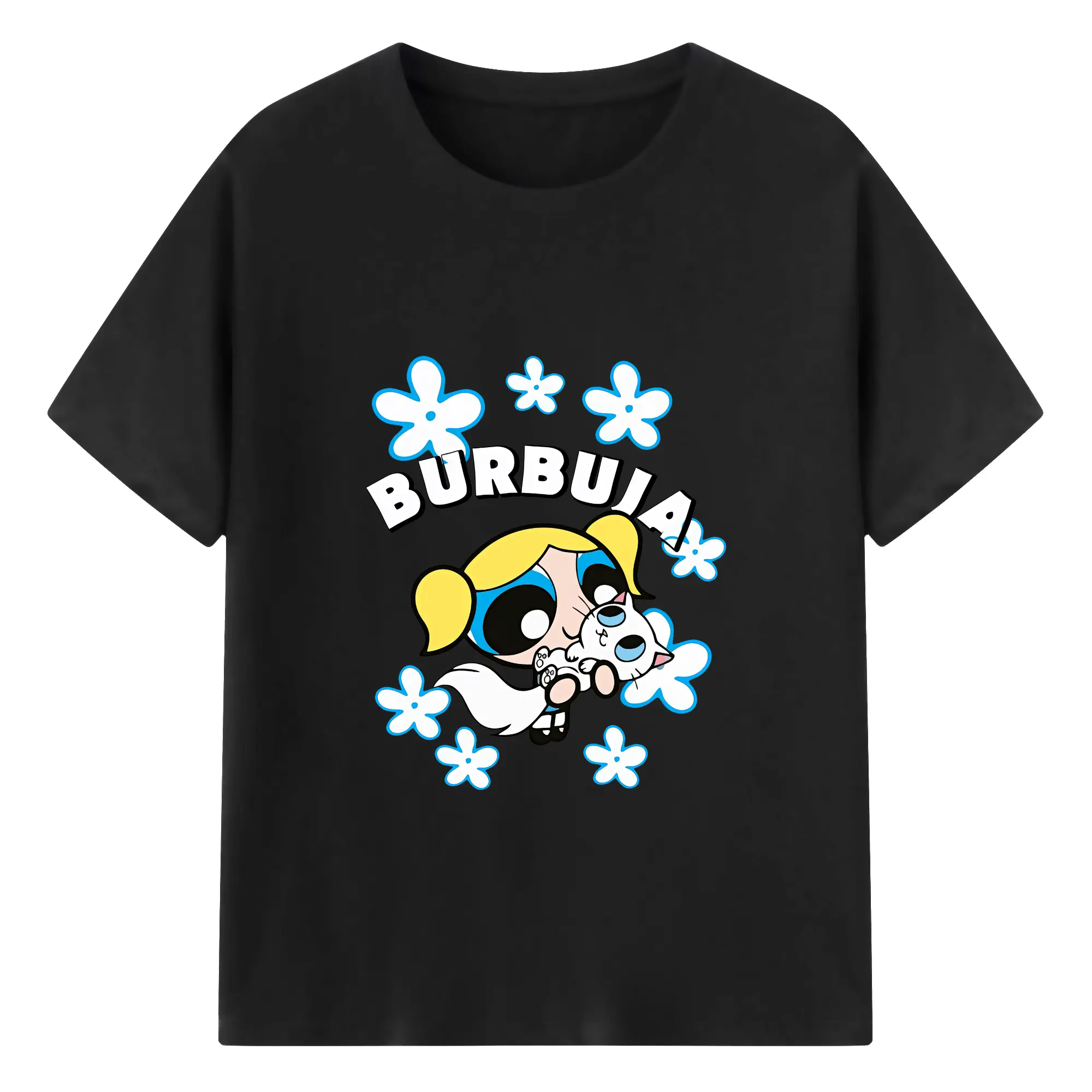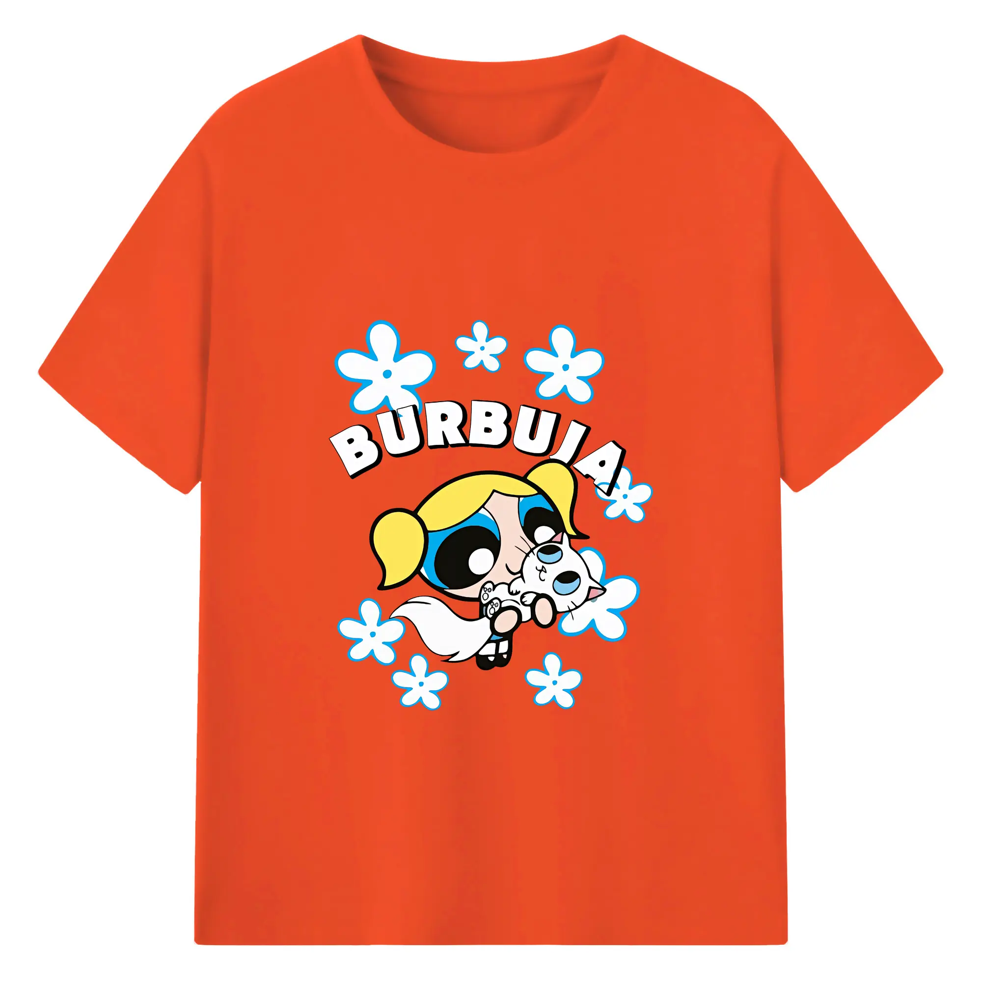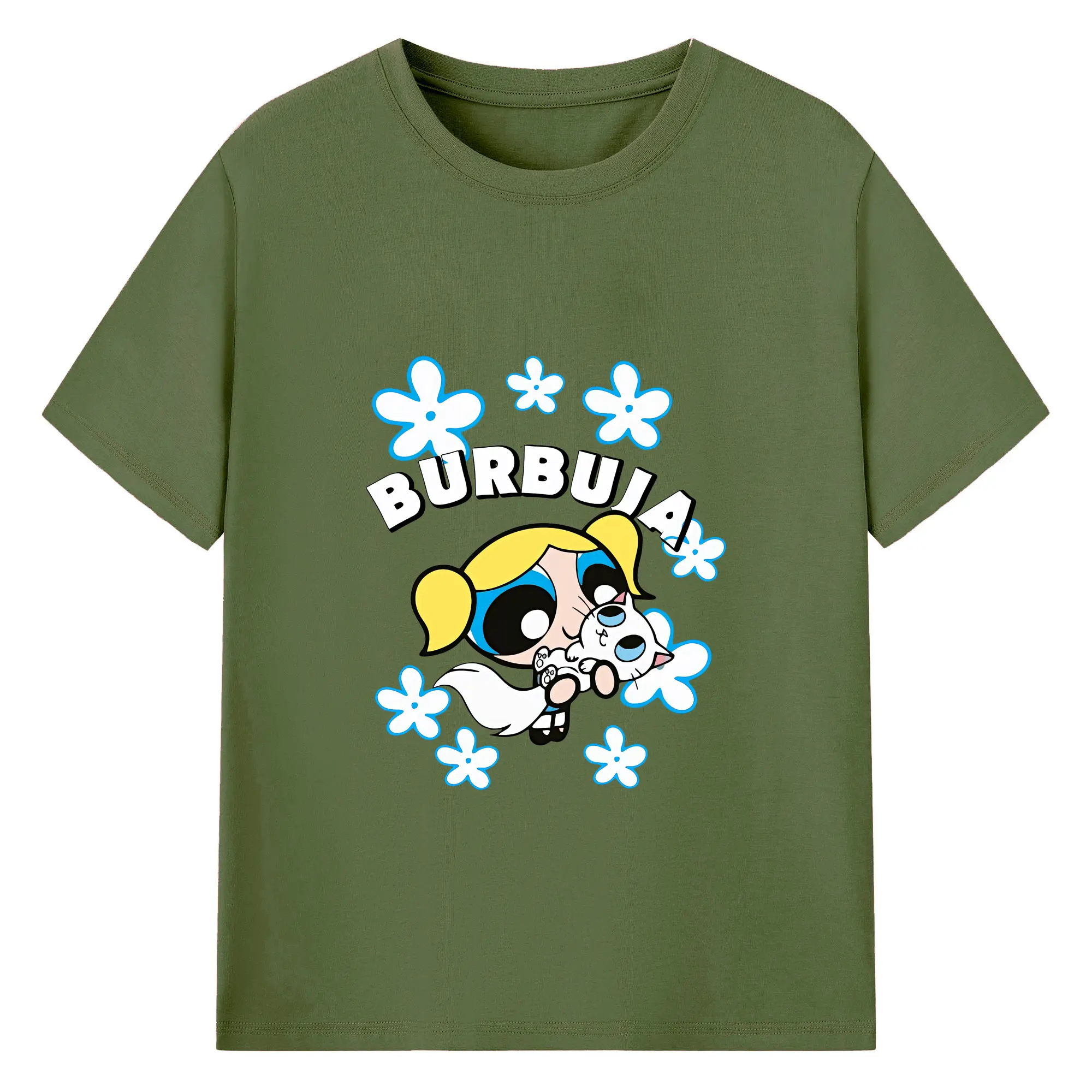 パワパフガールズ グッズ バブルス - 綿100% 半袖Tシャツ ・ バックプリント ・ 快適 通気性 ・ 日常使い 散歩 スポーツ用